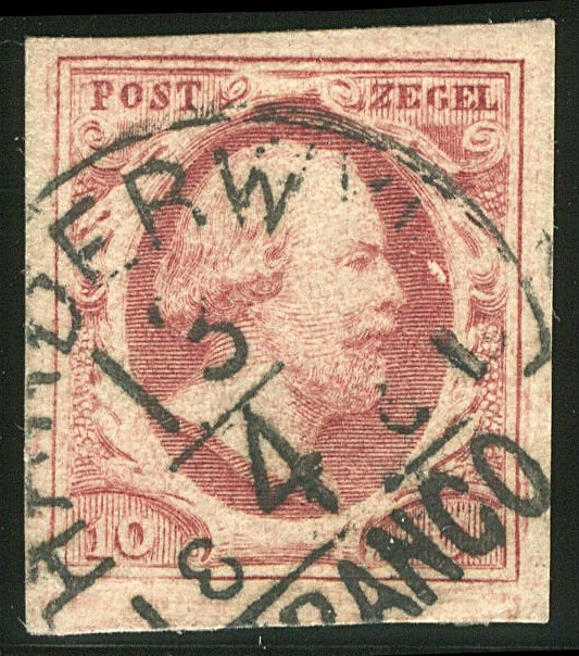 HARDERWYK C klein (EY.150) op 10 cent nr. 2l-Pl.VI-57. Breed gerand prachtex. met mooie, late afst. van 13-4-1861