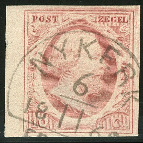 NYKERK C (EY.700) op 10 cent nr. 2j-Pl.V. Pracht randstuk met bijzonder mooie afdruk van dit zeldzame stempel