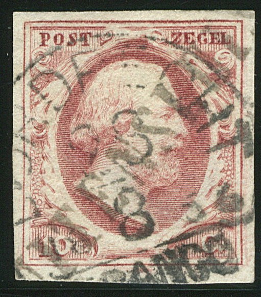 BUITENSLUIS (EY.RR) op 10 cent. Prachtex. met diagonale, zeer duidelijke afst. en Dordrecht C met datum 28-8-1856. Mogelijk uniek