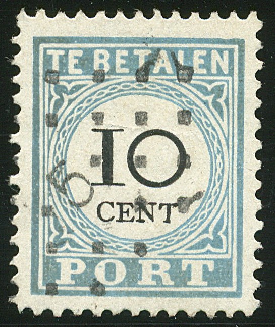 P7BIV, 10 cent lichtblauw, Kt.12½ x 12, type IV, gebruikt prachtex. met puntstempel 5 € 350