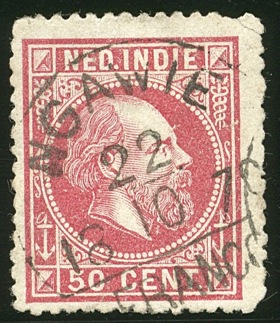 Halfrond-franco NGAWIE op 50c nr. 15. Zeer fraaie zegel met volledige afst. van 22-10-1870