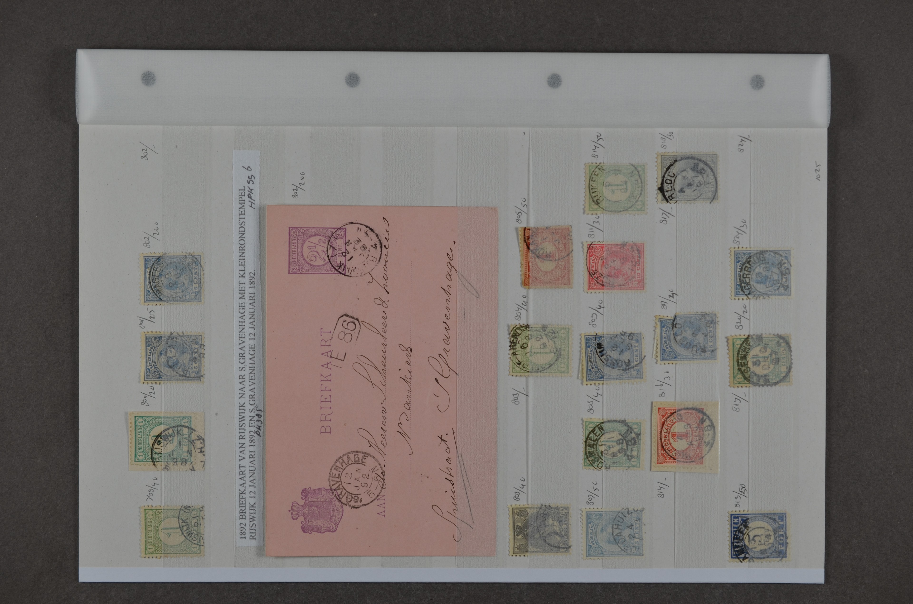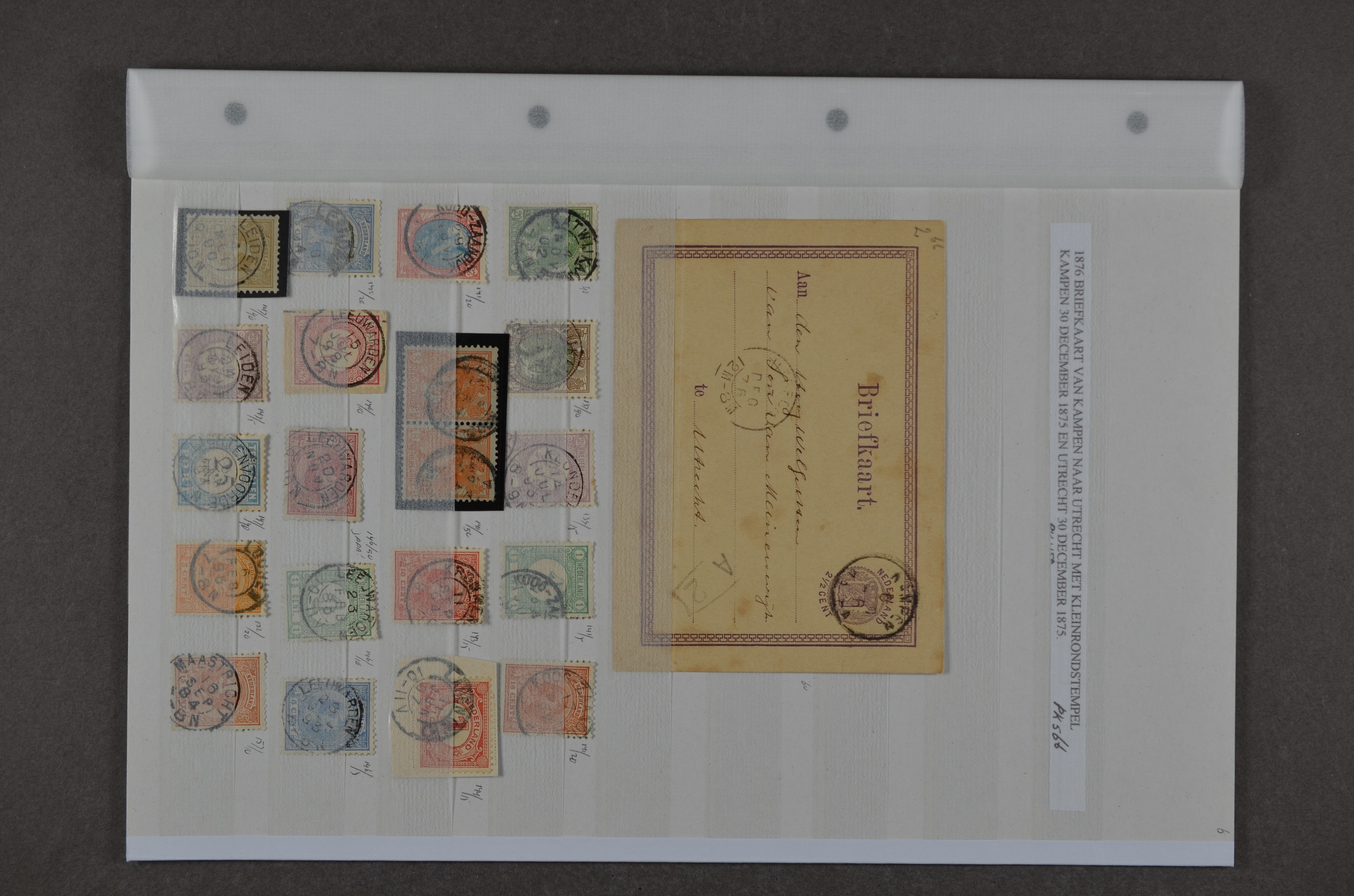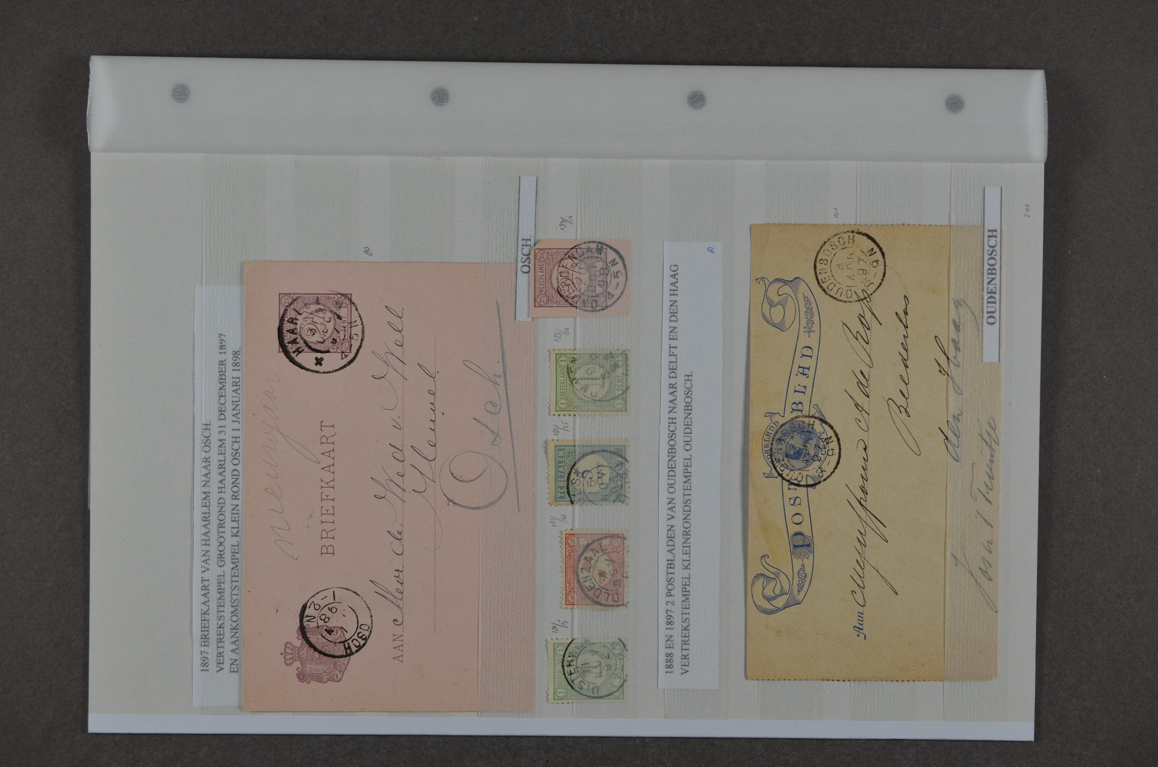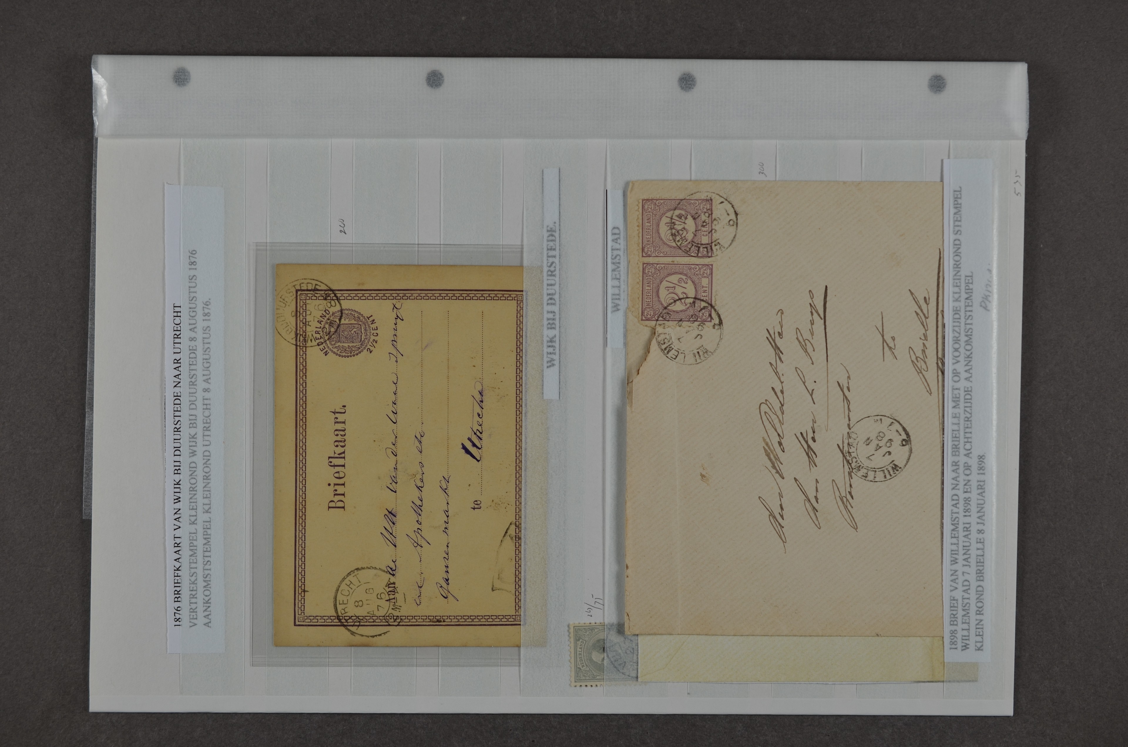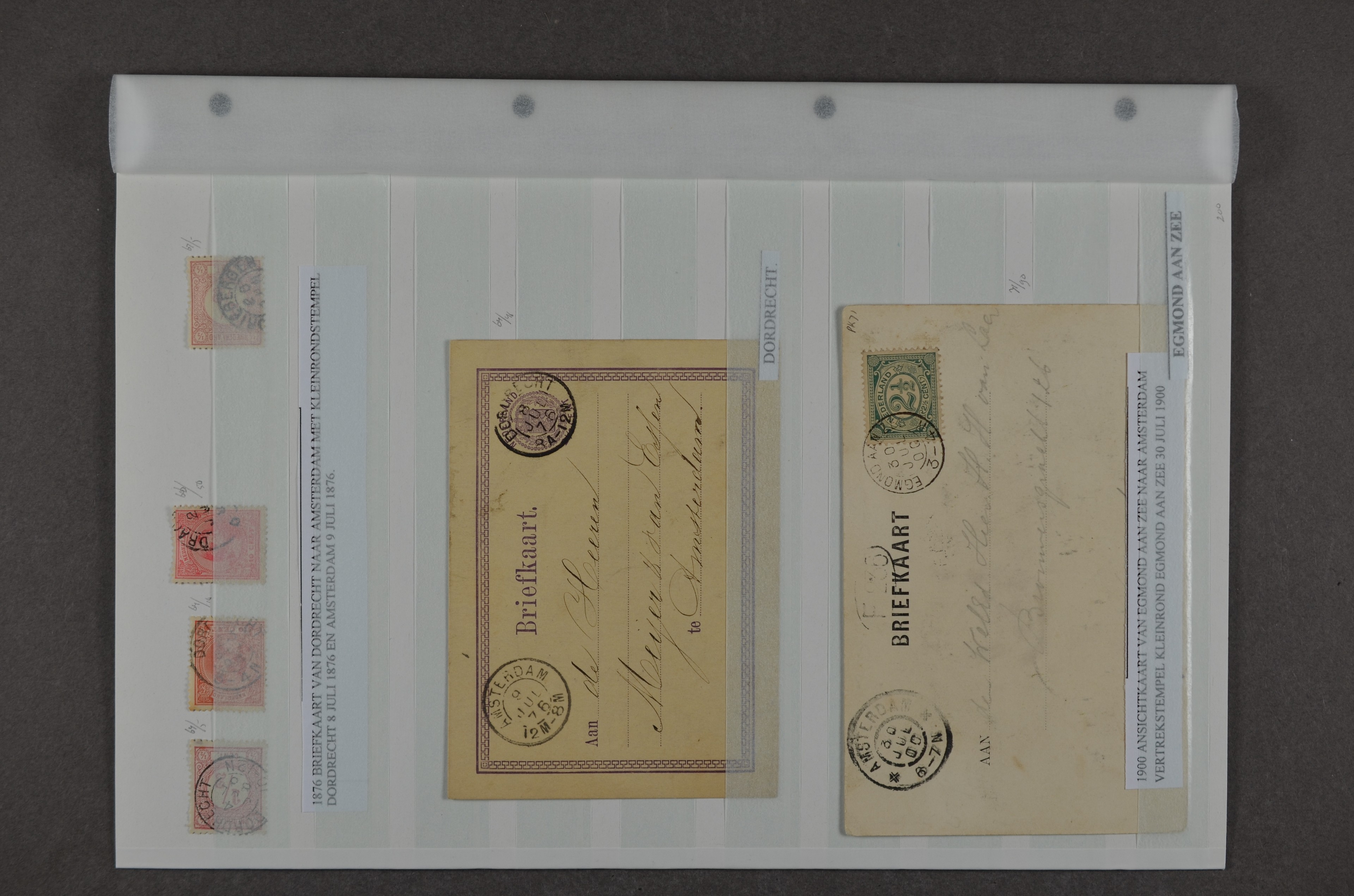KLEINRONDSTEMPELS, vrij uitgebreide verzameling van vnl. post- en hulppostkantoren op losse zegels en poststukken, met wat schaarse kantoren waarbij diverse mooie afstempelingen, op insteekbladen in 5 kloeke ringbanden