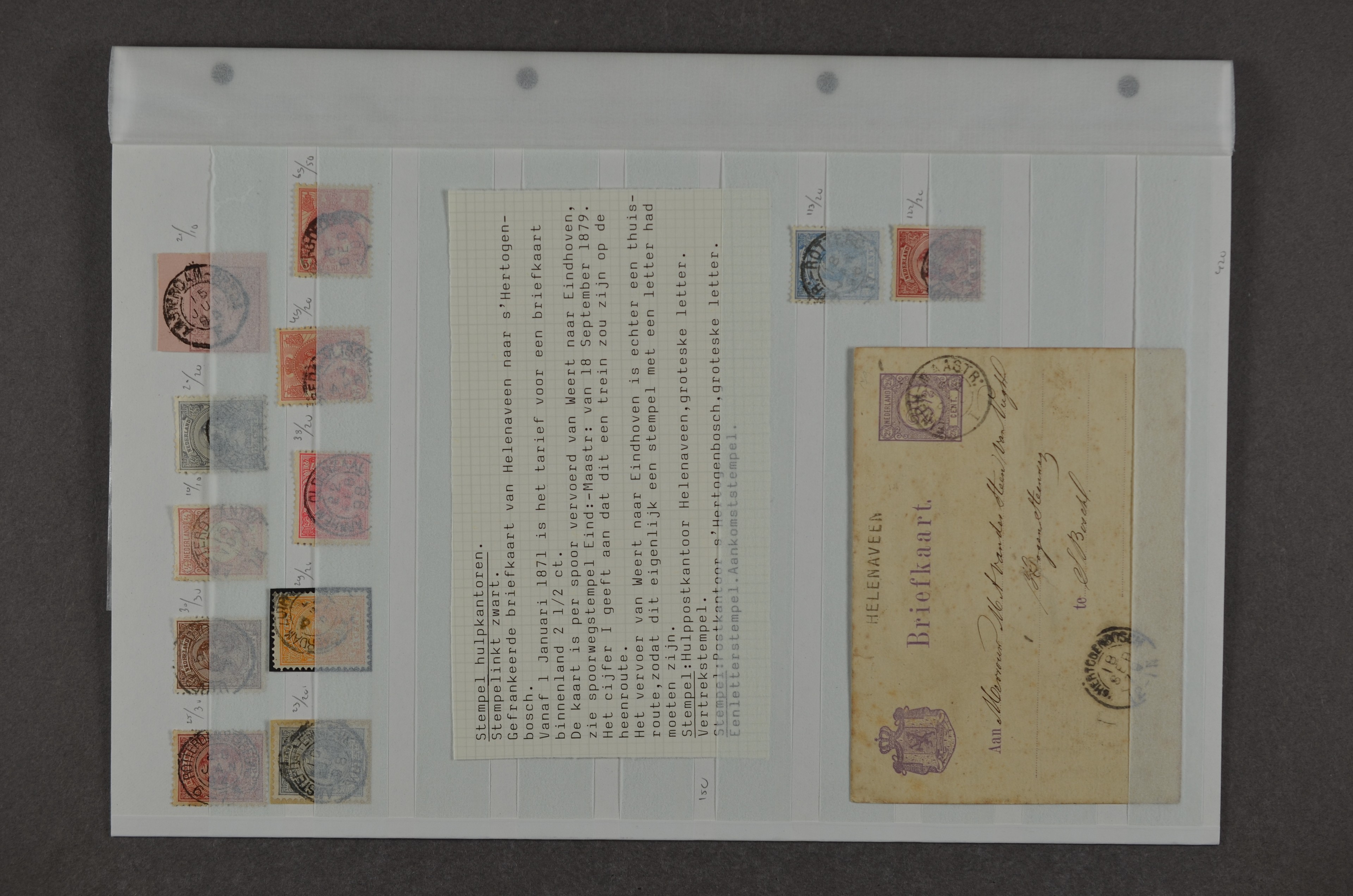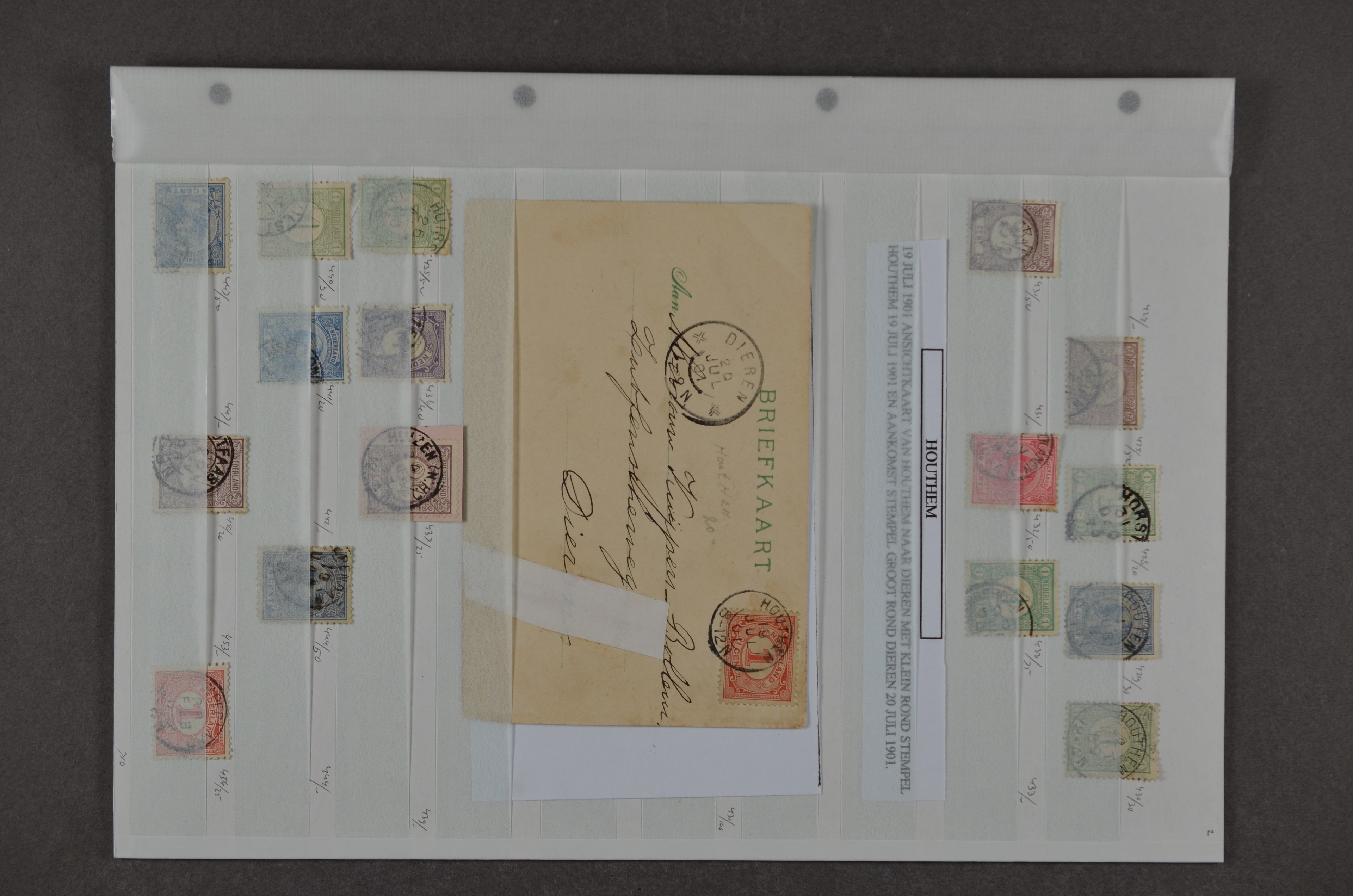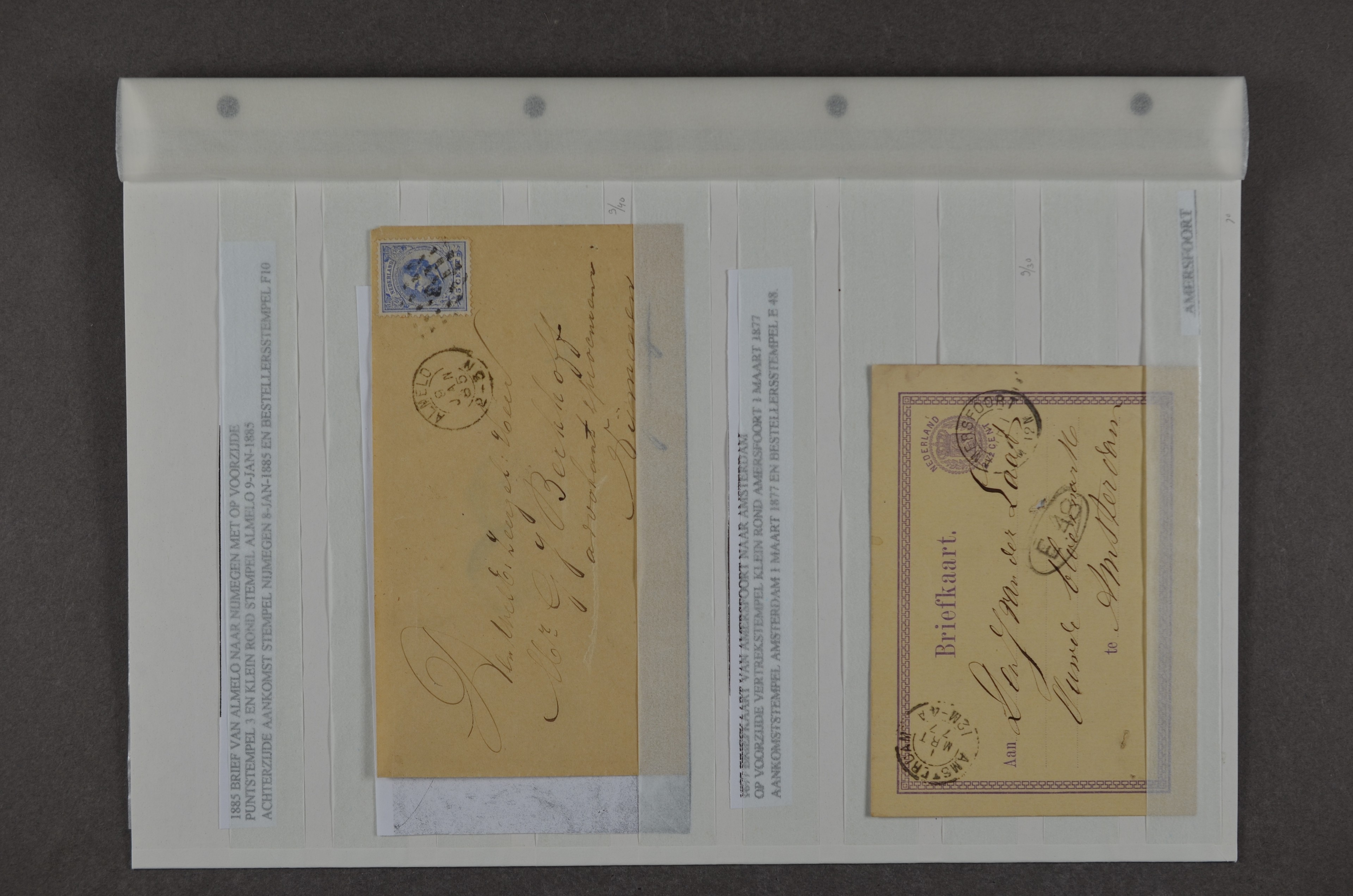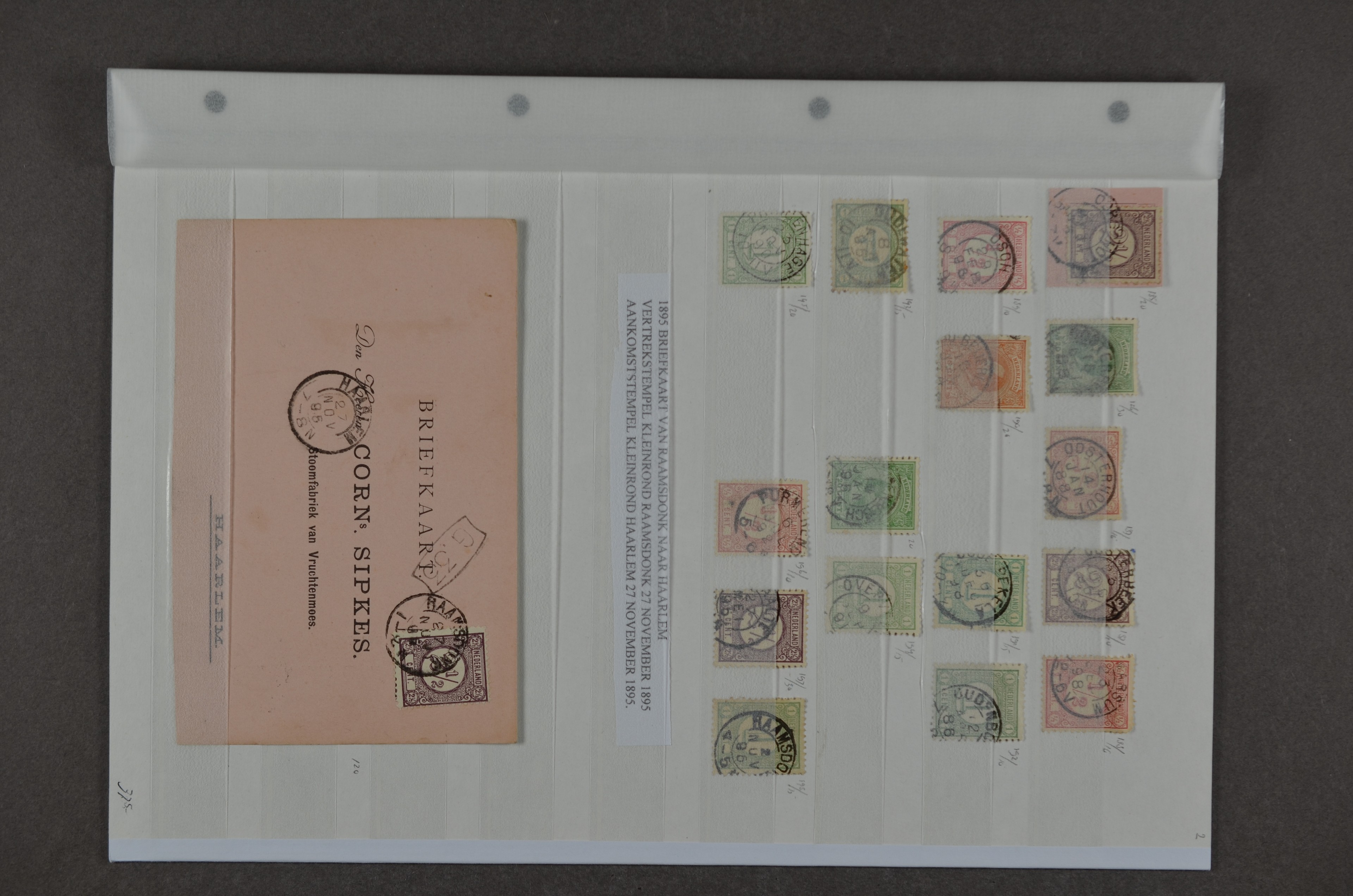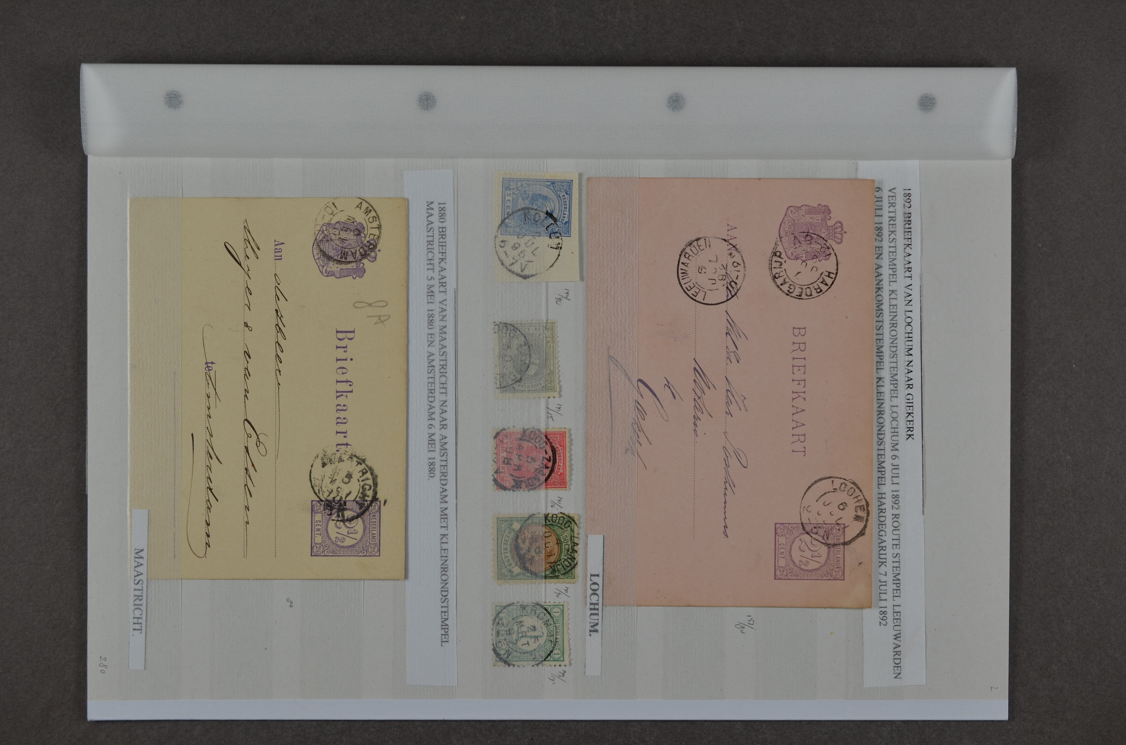 KLEINRONDSTEMPELS, vrij uitgebreide verzameling van vnl. post- en hulppostkantoren op losse zegels en poststukken, met wat schaarse kantoren waarbij diverse mooie afstempelingen, op insteekbladen in 5 kloeke ringbanden