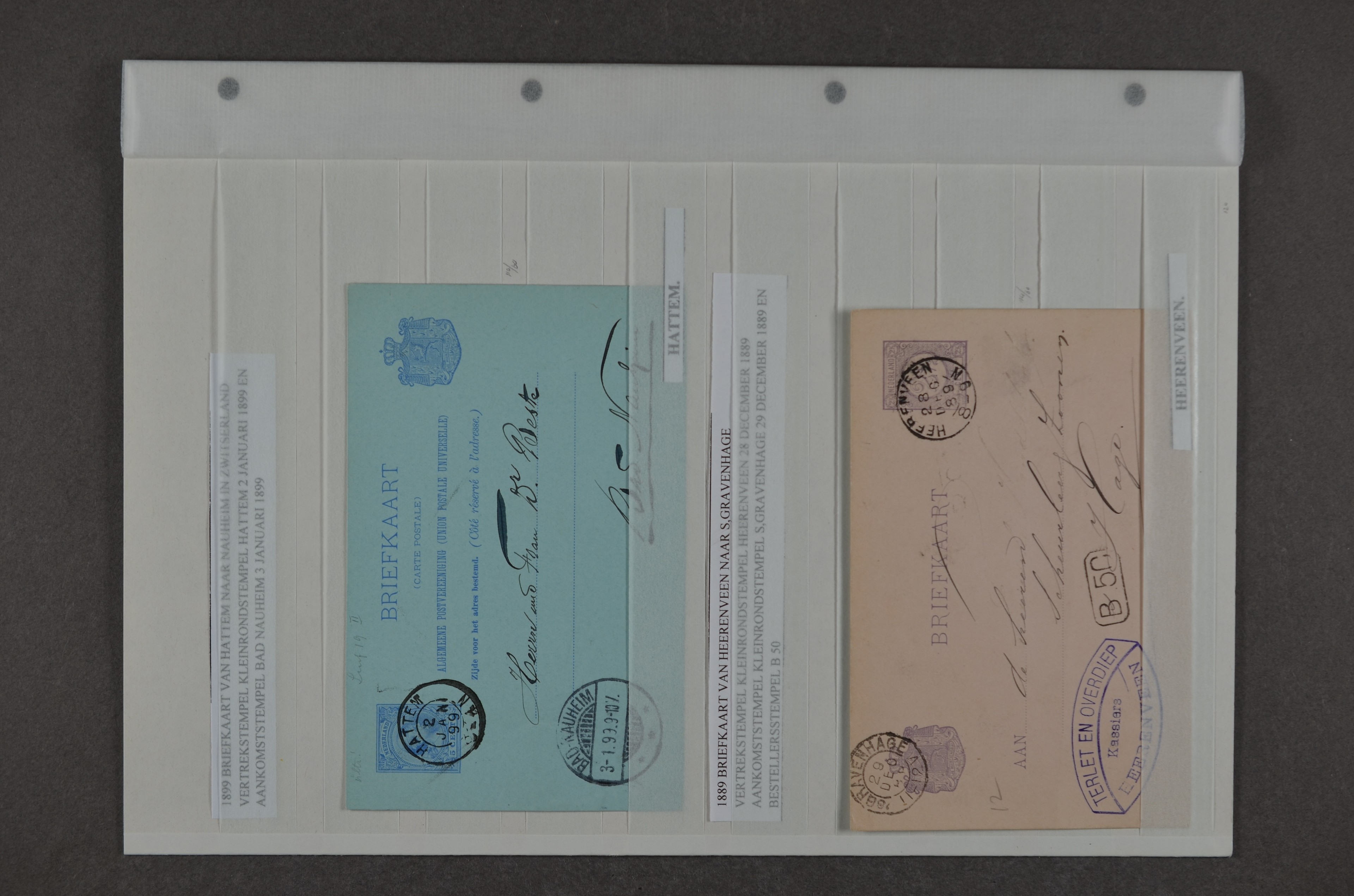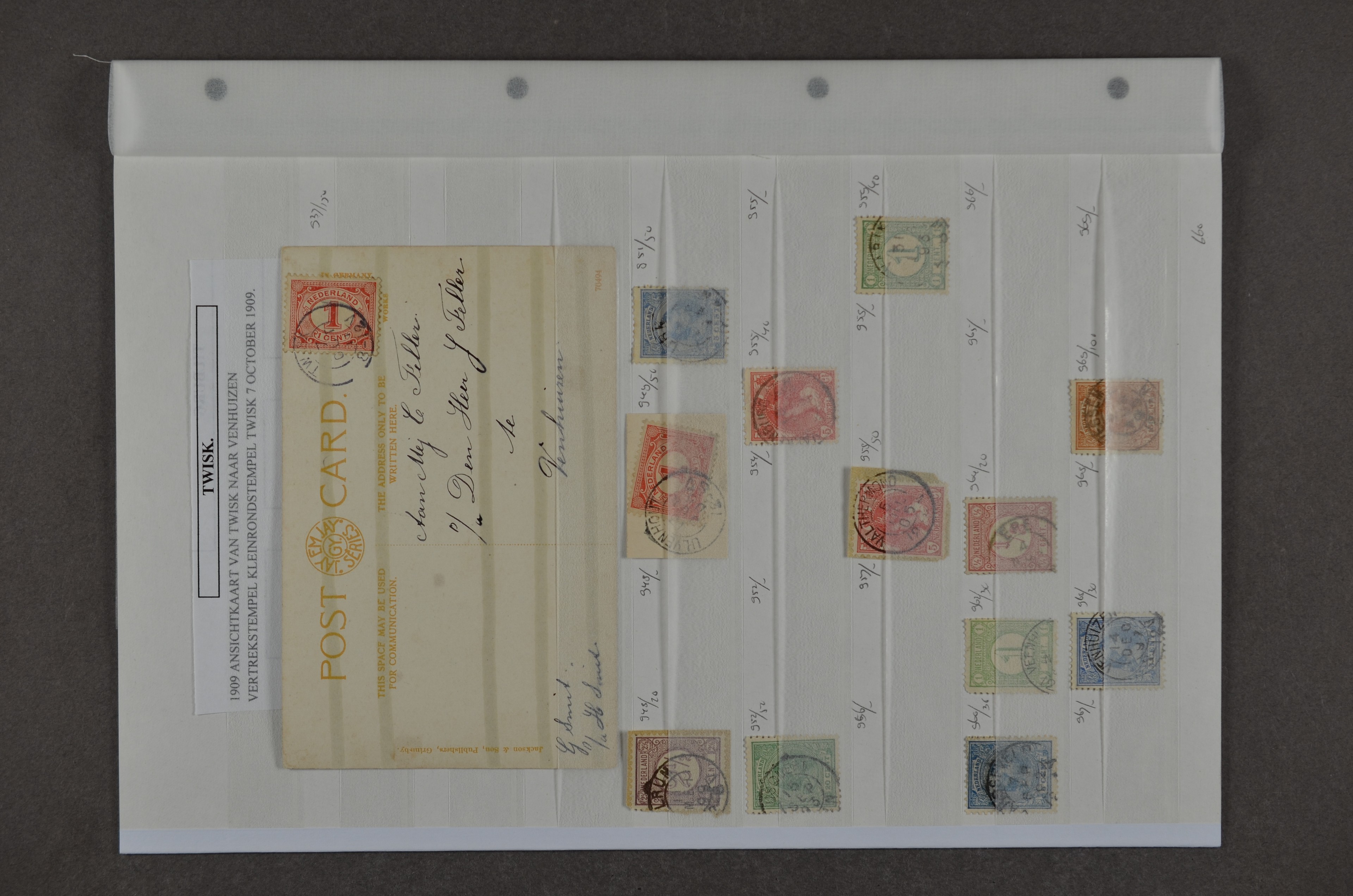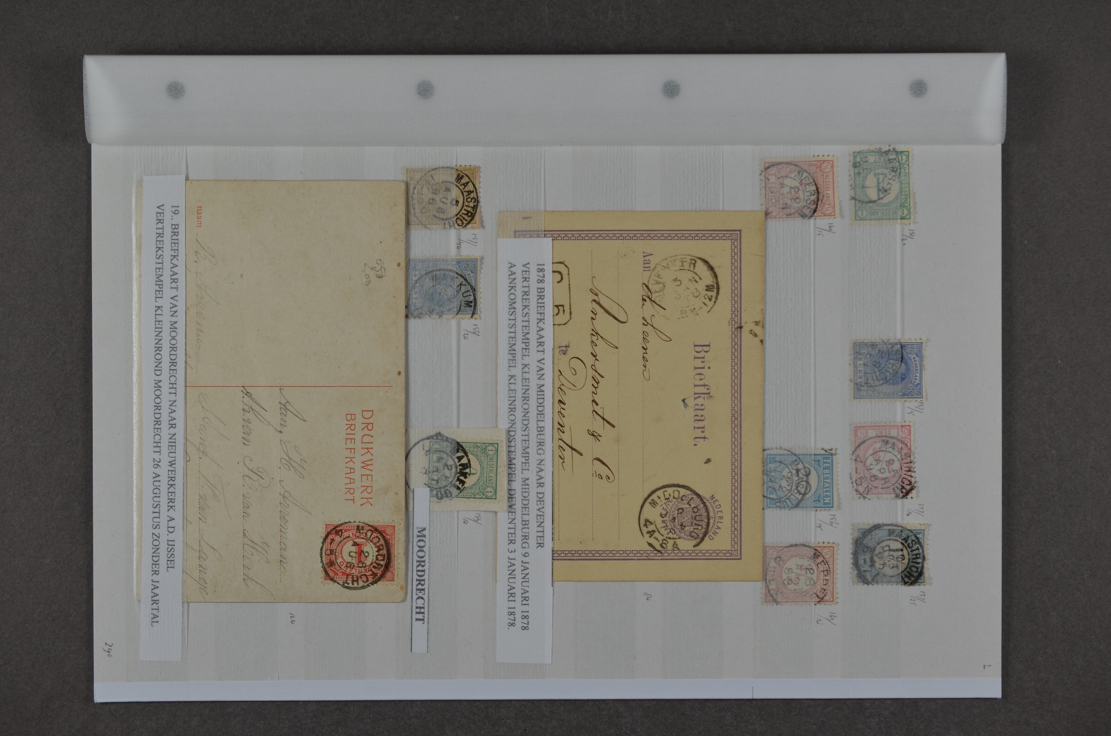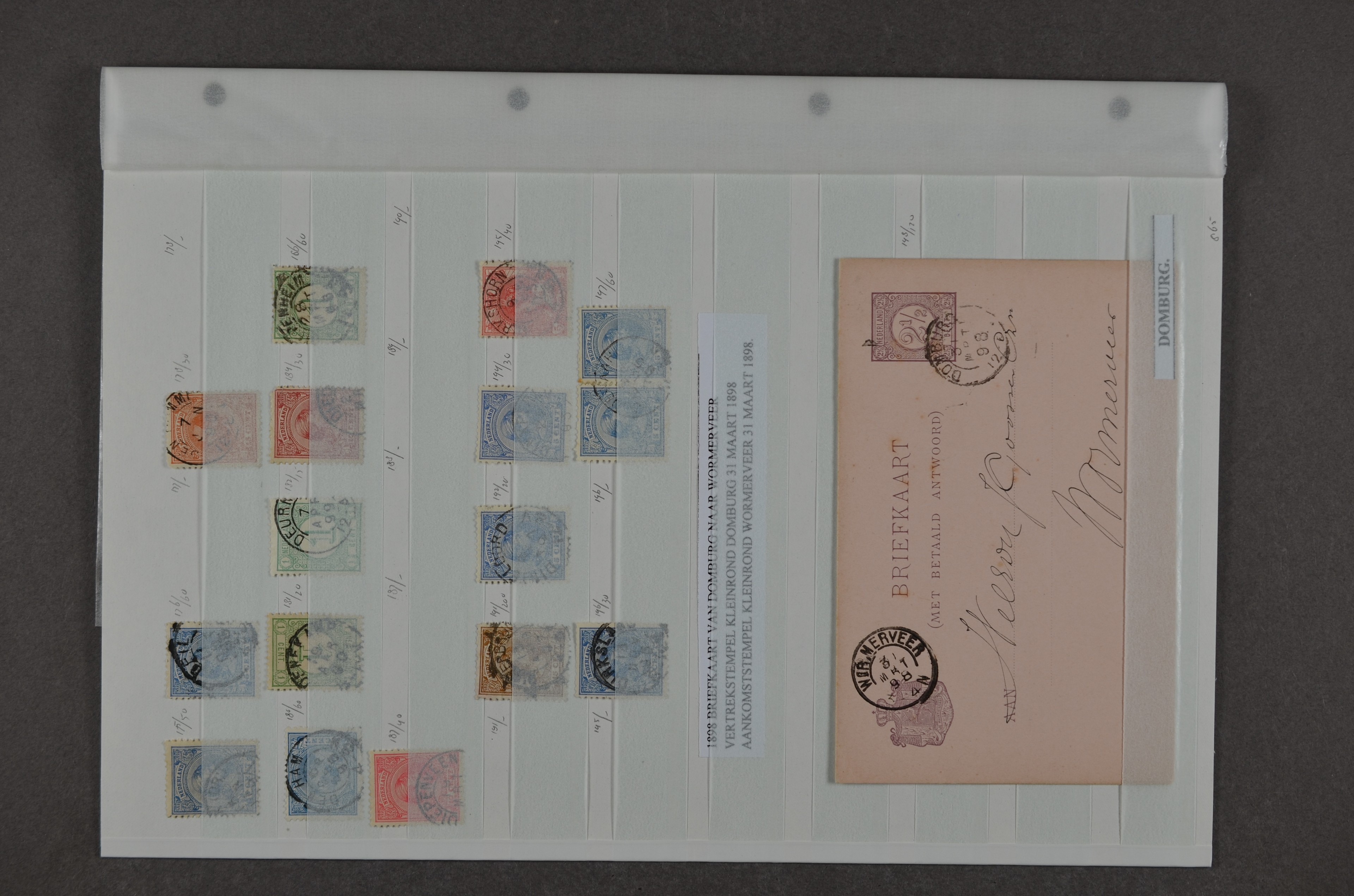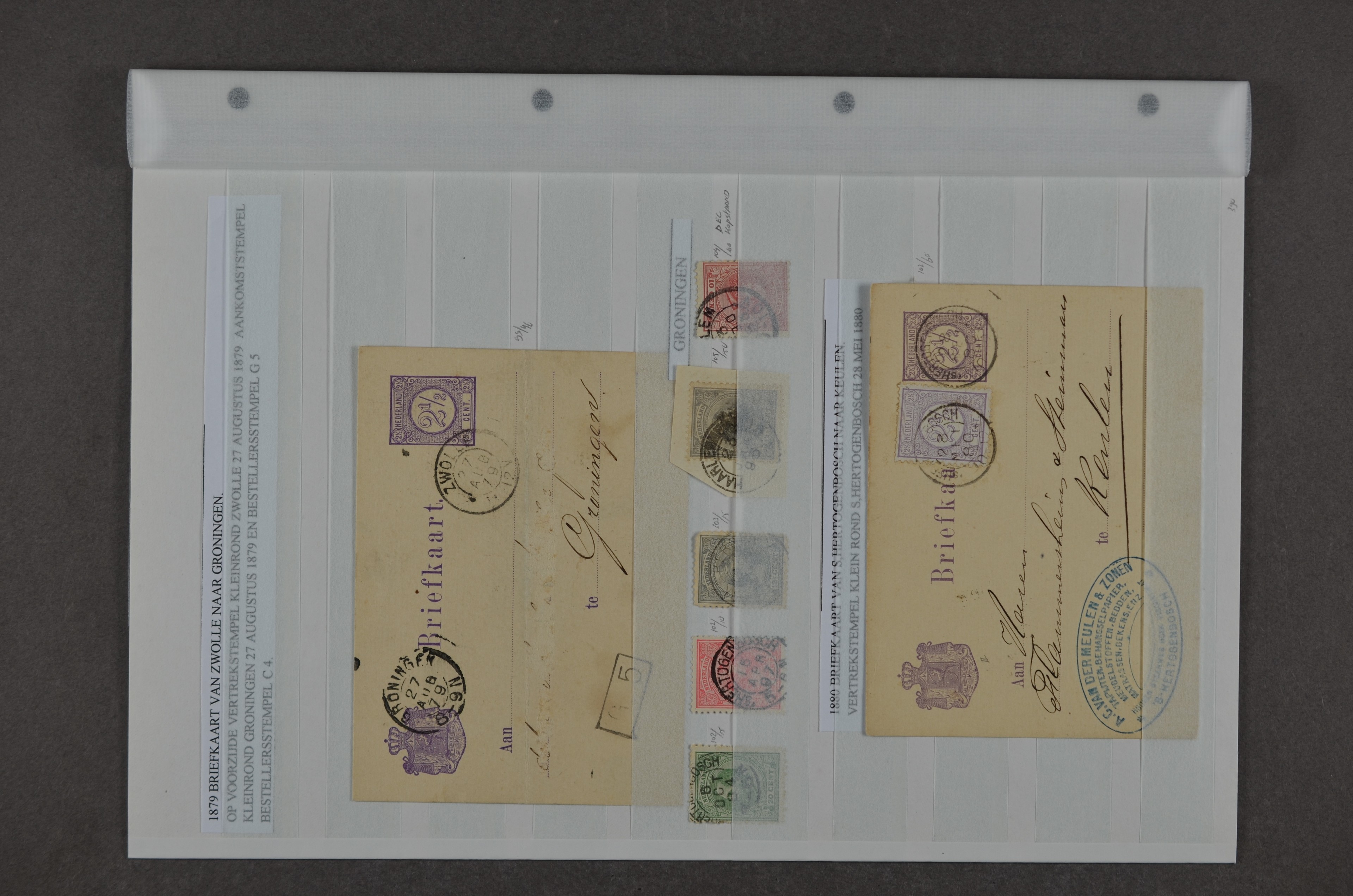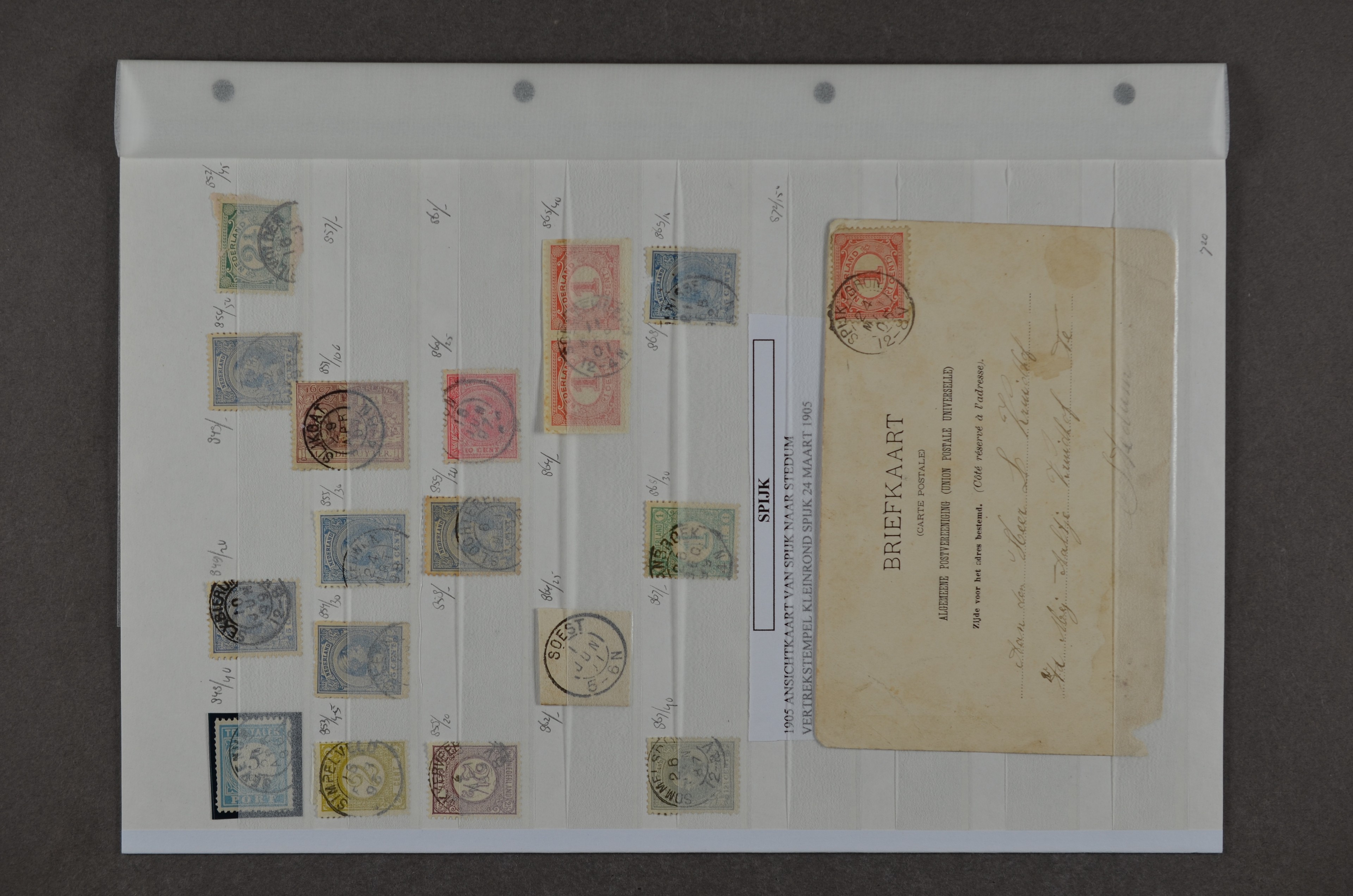 KLEINRONDSTEMPELS, vrij uitgebreide verzameling van vnl. post- en hulppostkantoren op losse zegels en poststukken, met wat schaarse kantoren waarbij diverse mooie afstempelingen, op insteekbladen in 5 kloeke ringbanden