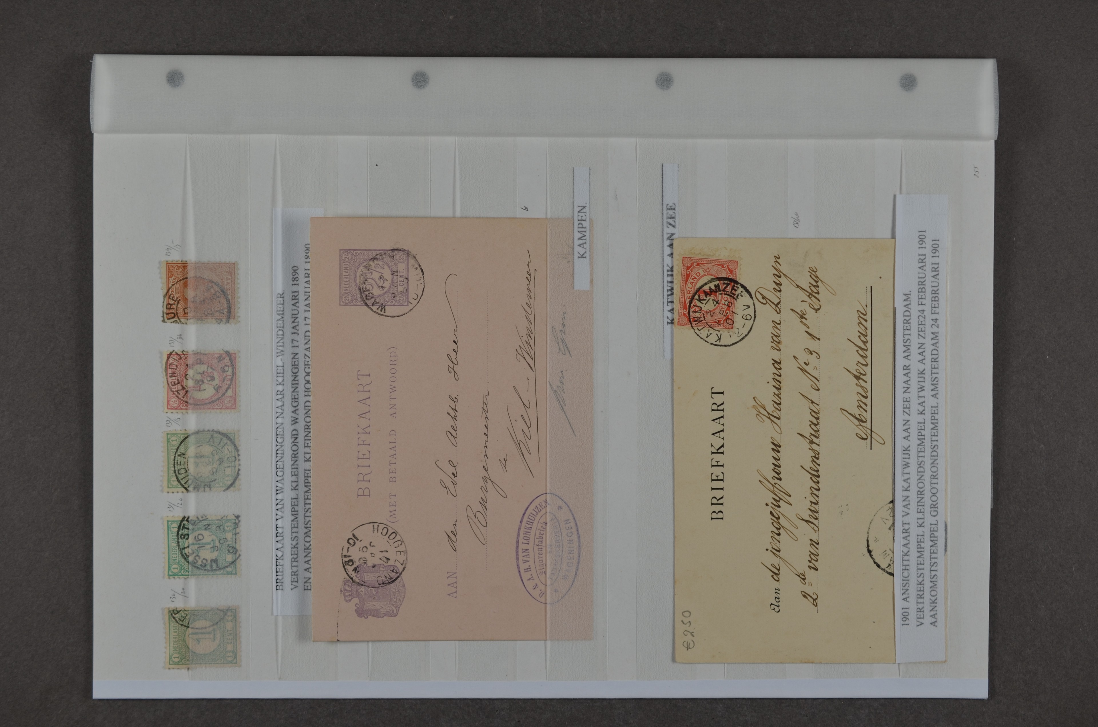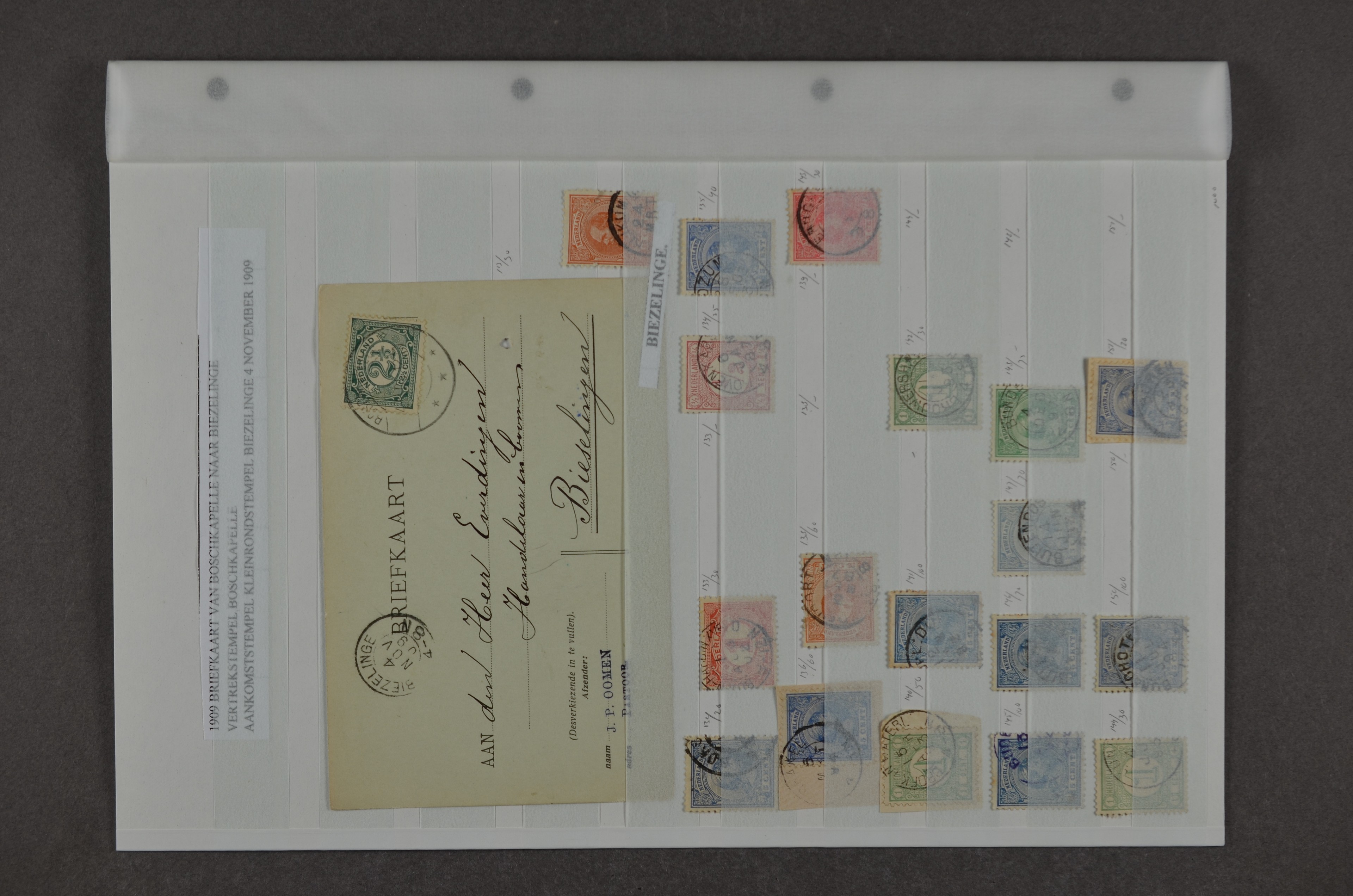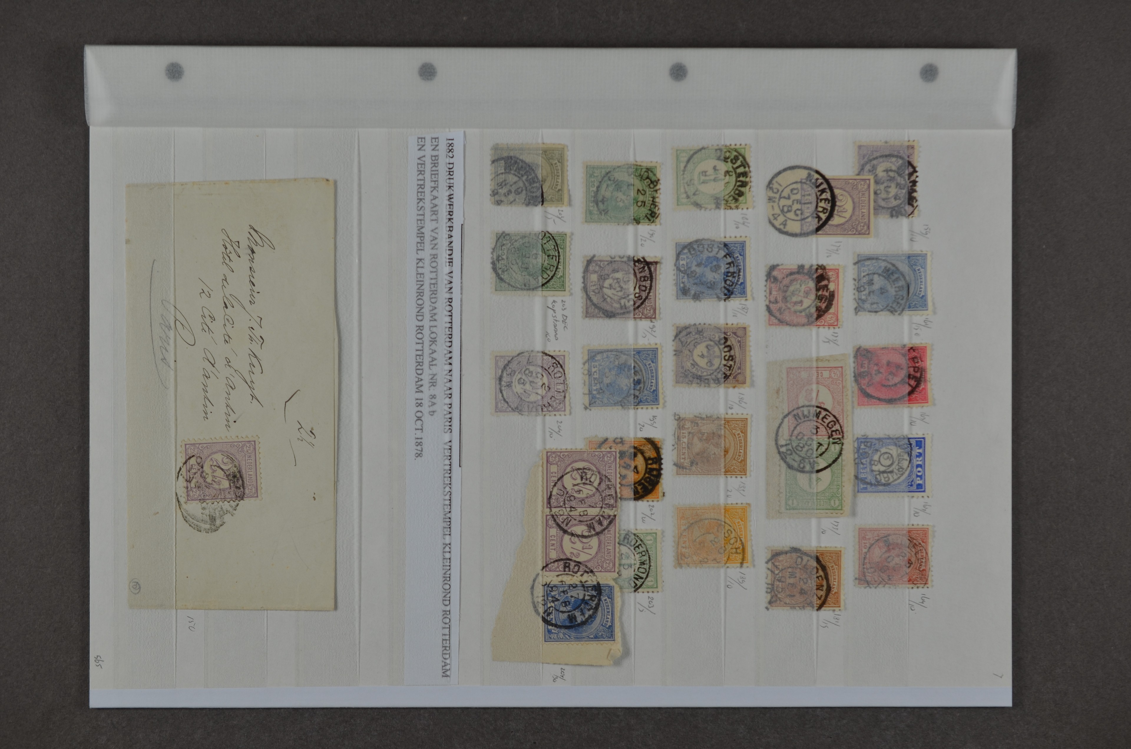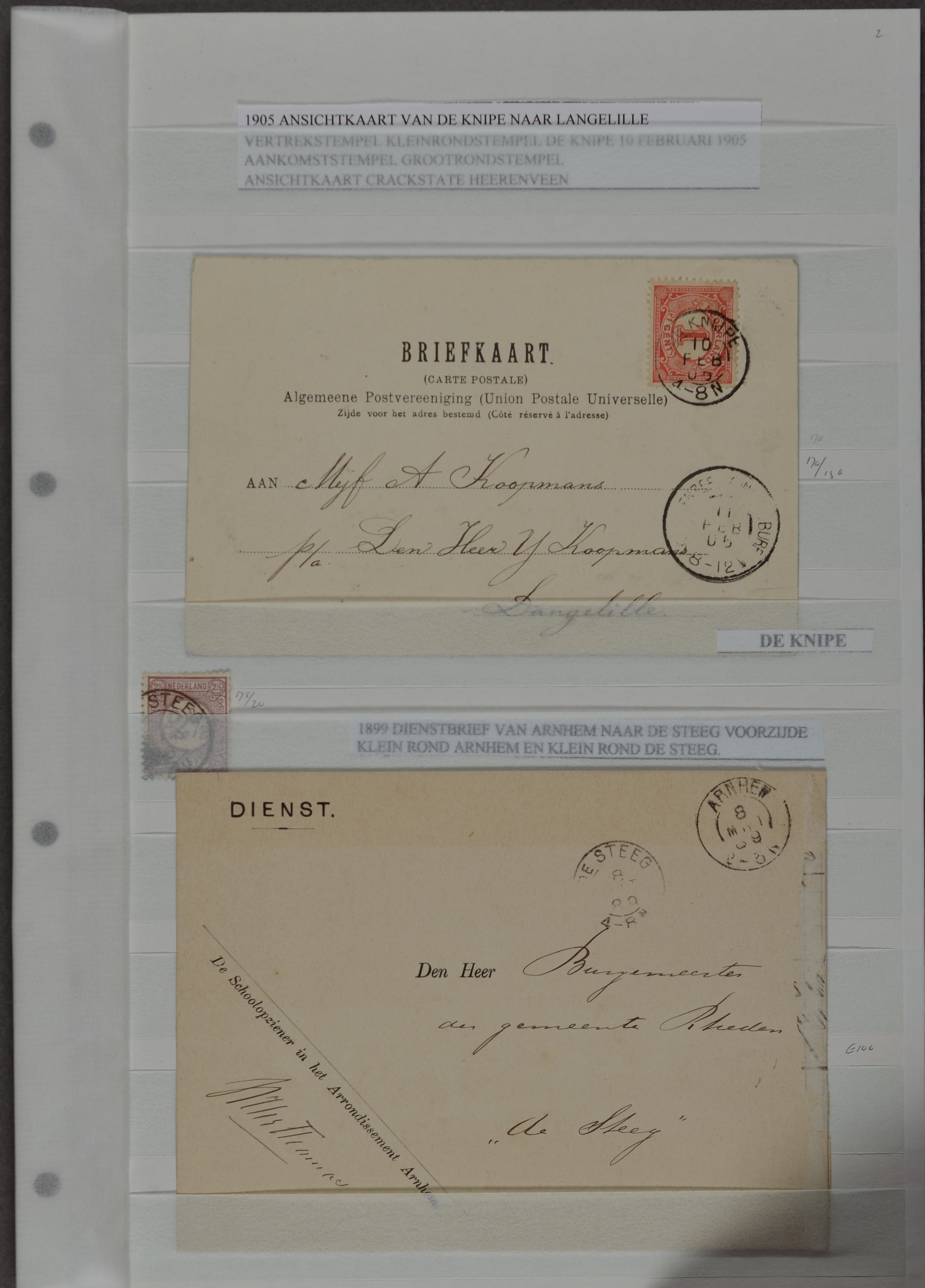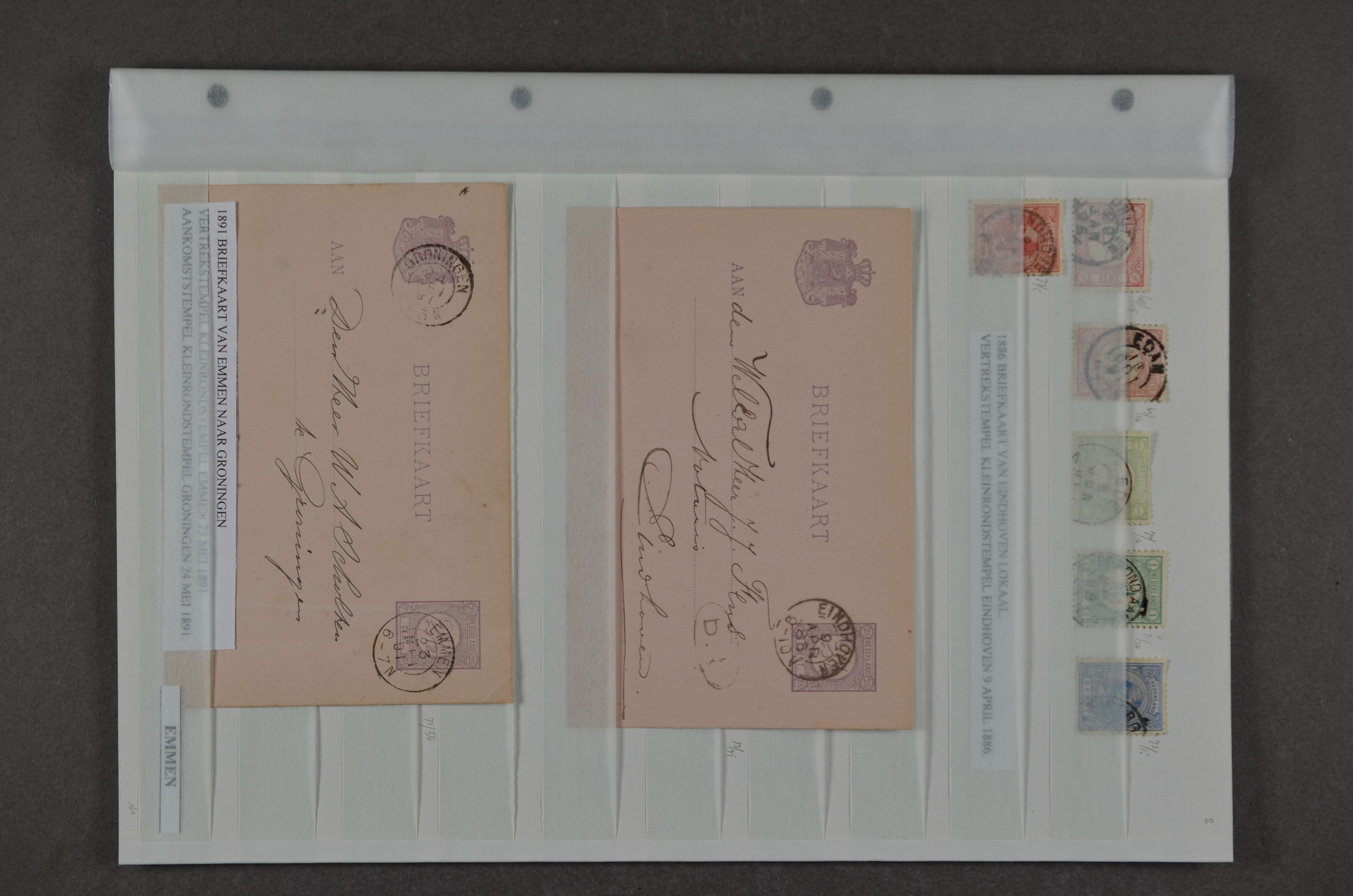 KLEINRONDSTEMPELS, vrij uitgebreide verzameling van vnl. post- en hulppostkantoren op losse zegels en poststukken, met wat schaarse kantoren waarbij diverse mooie afstempelingen, op insteekbladen in 5 kloeke ringbanden