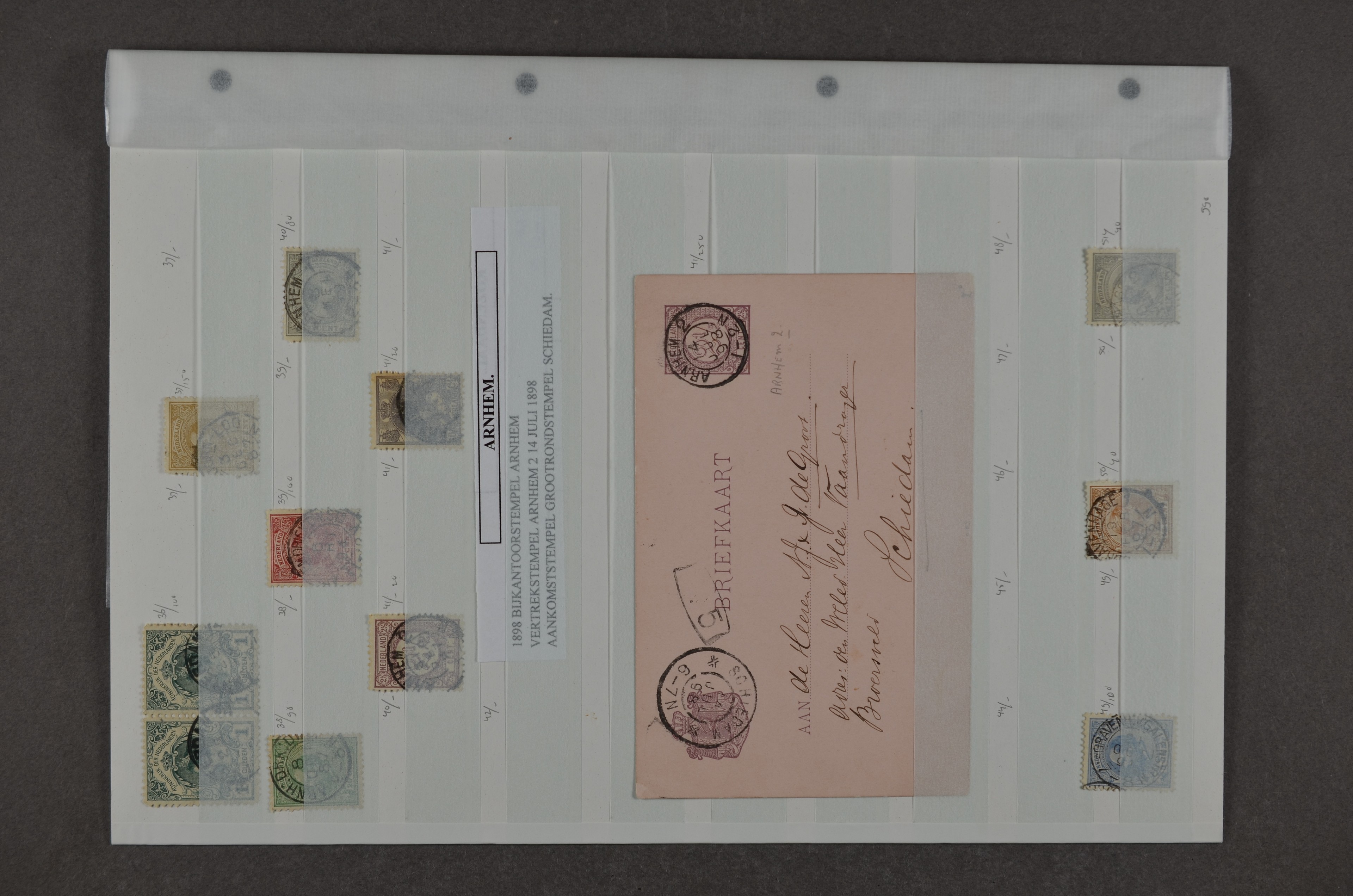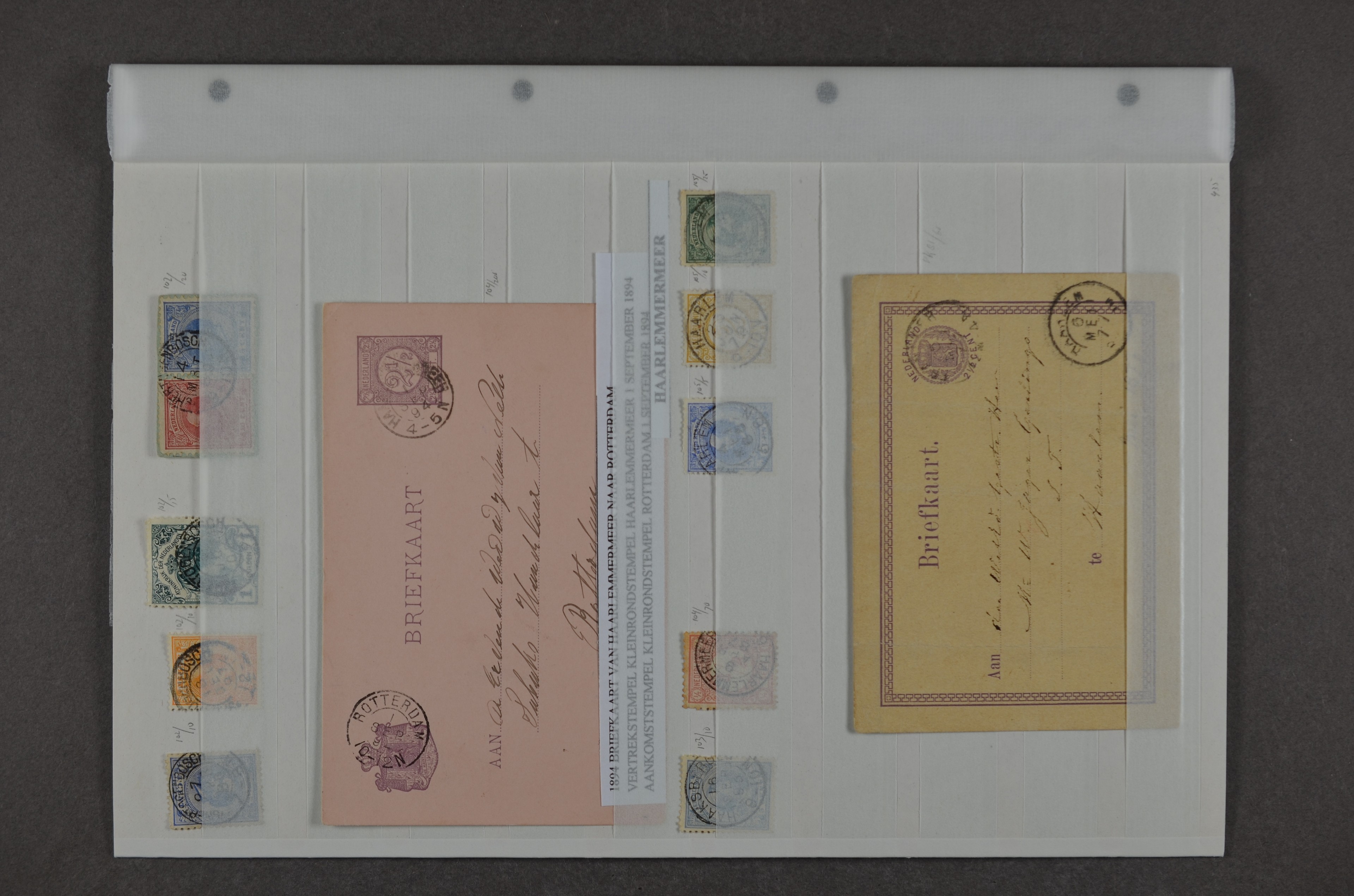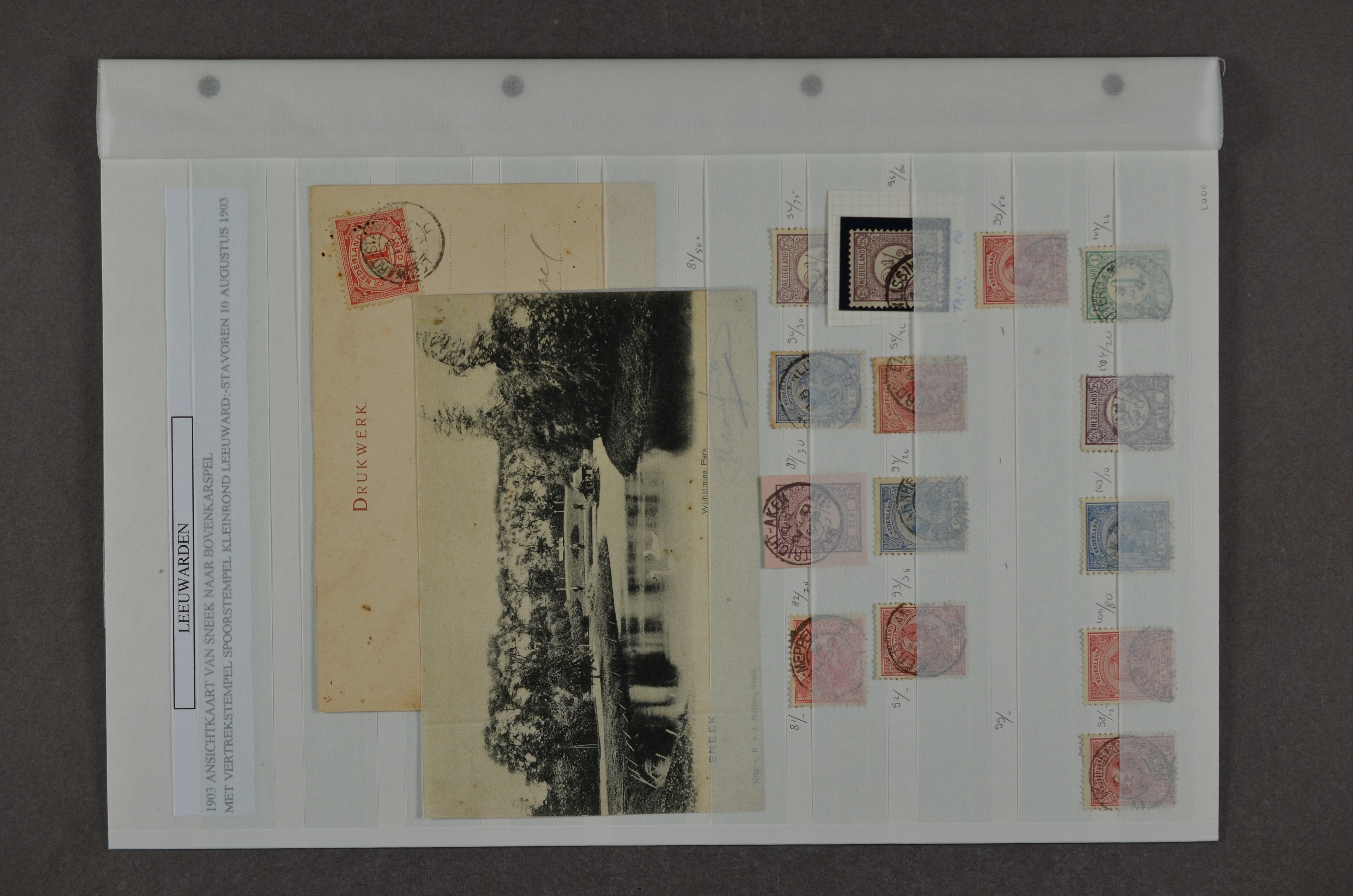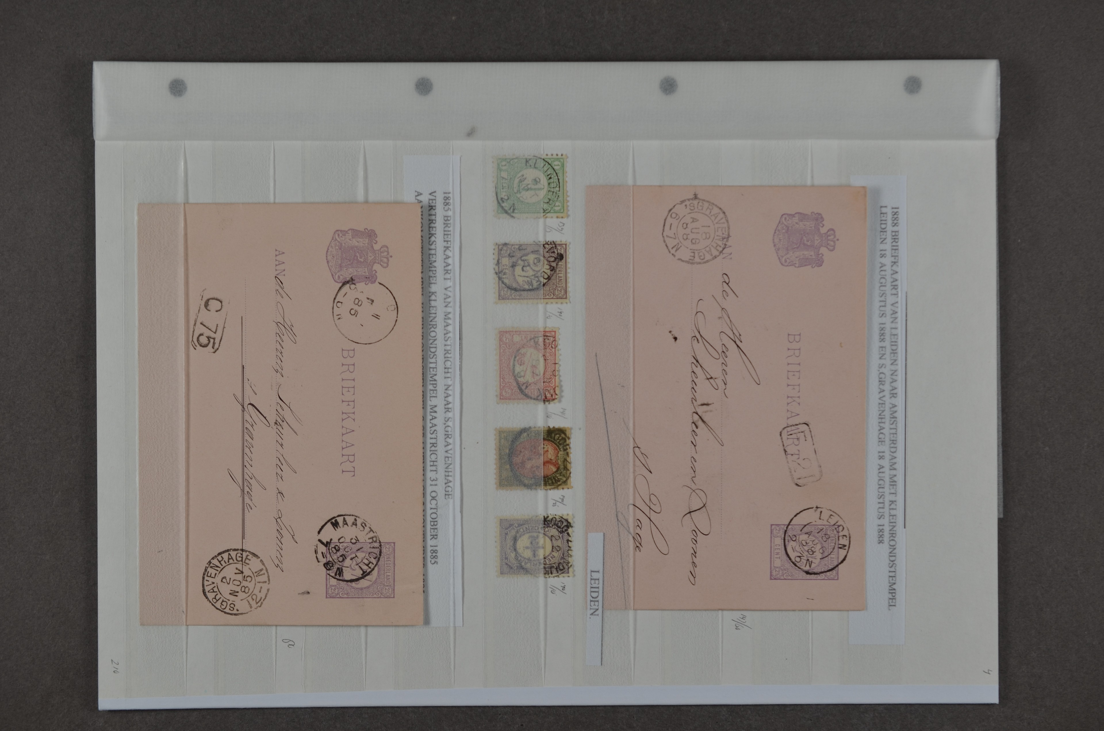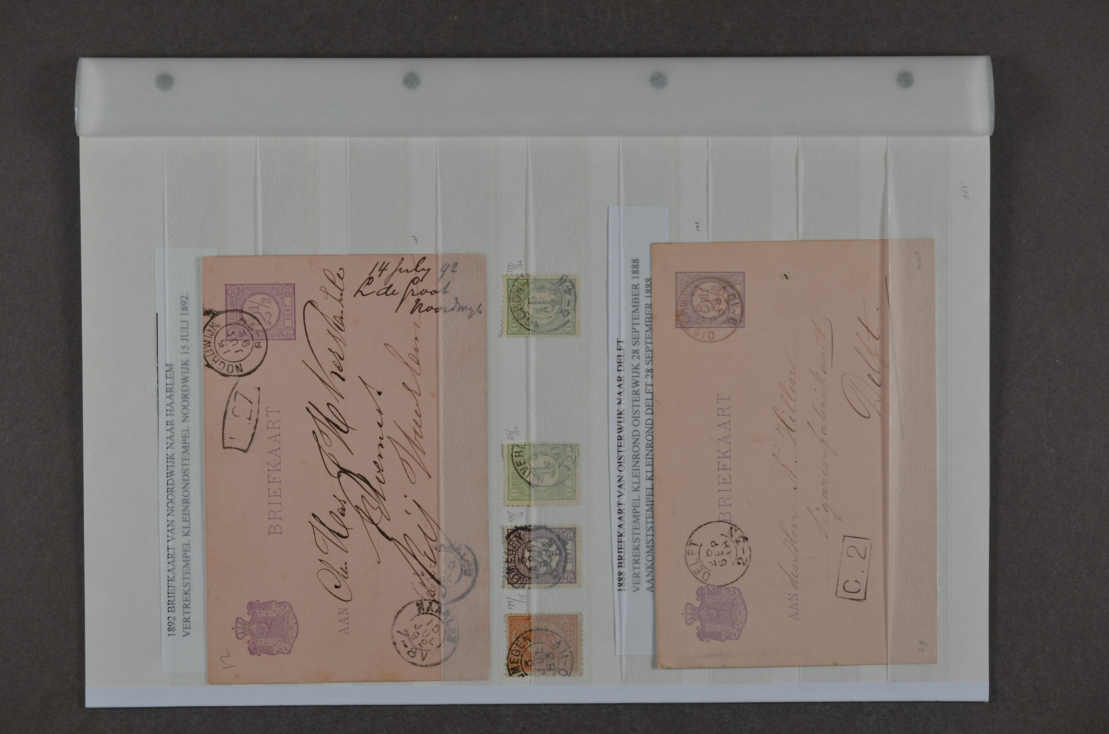 KLEINRONDSTEMPELS, vrij uitgebreide verzameling van vnl. post- en hulppostkantoren op losse zegels en poststukken, met wat schaarse kantoren waarbij diverse mooie afstempelingen, op insteekbladen in 5 kloeke ringbanden