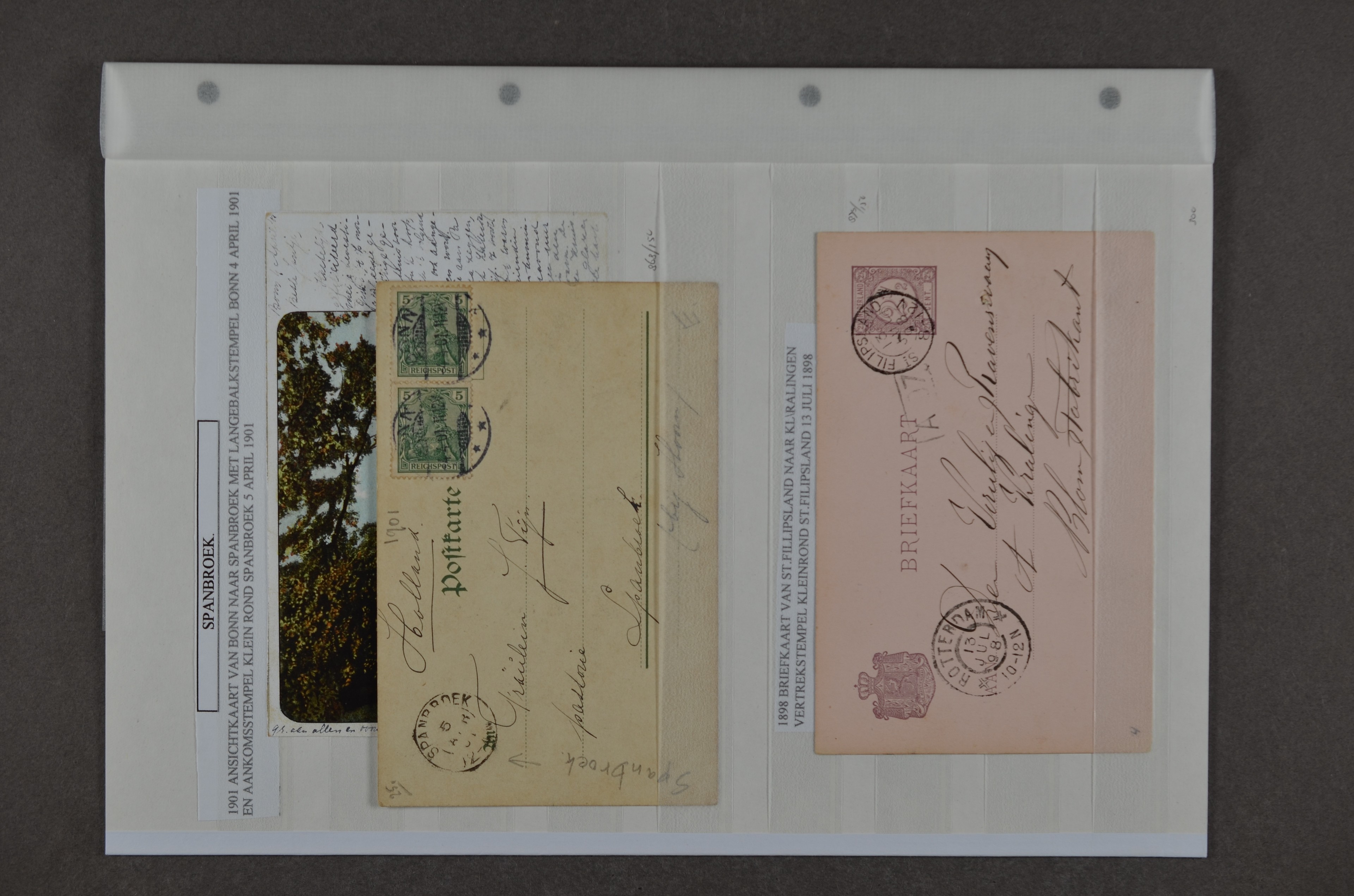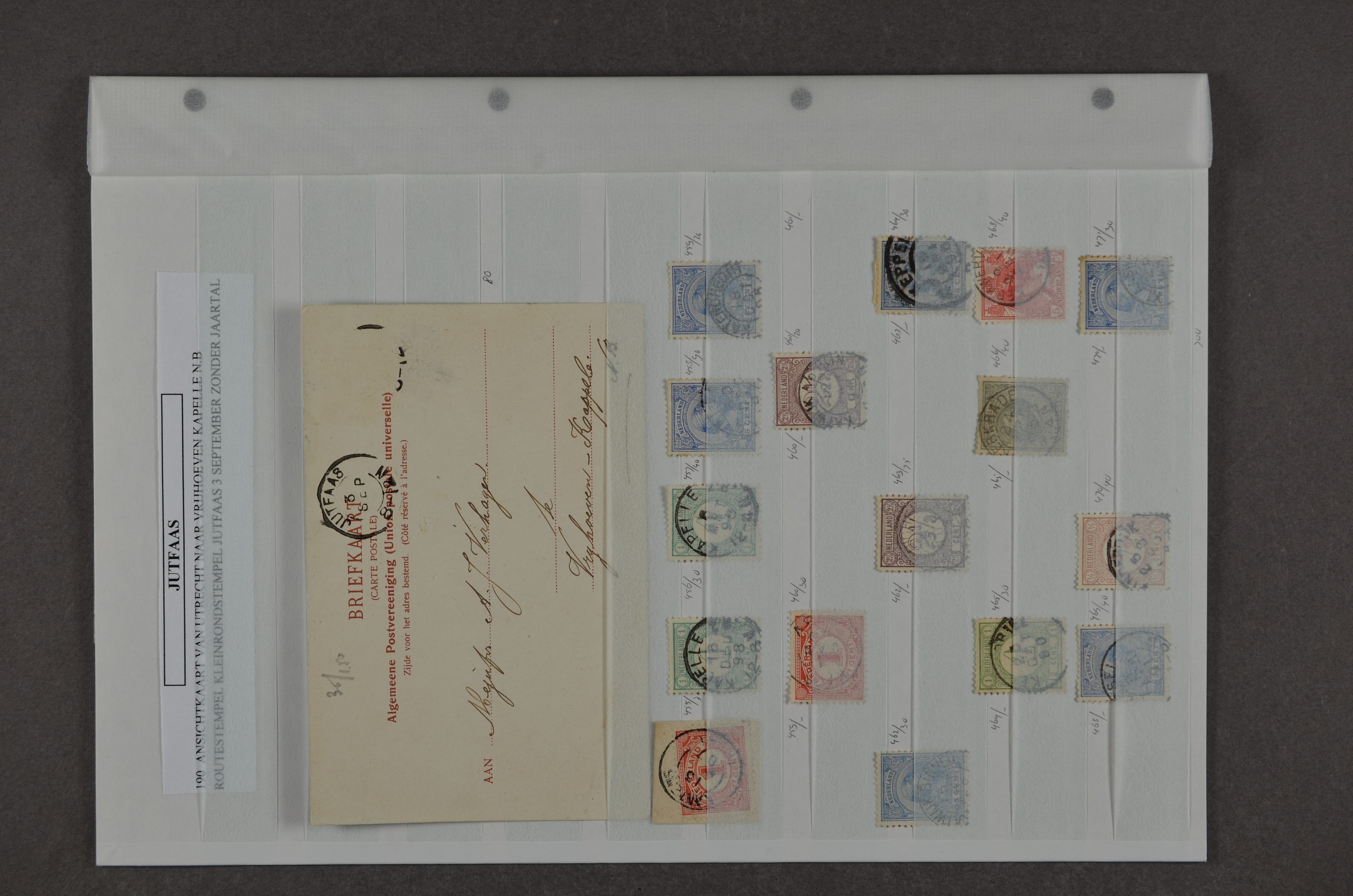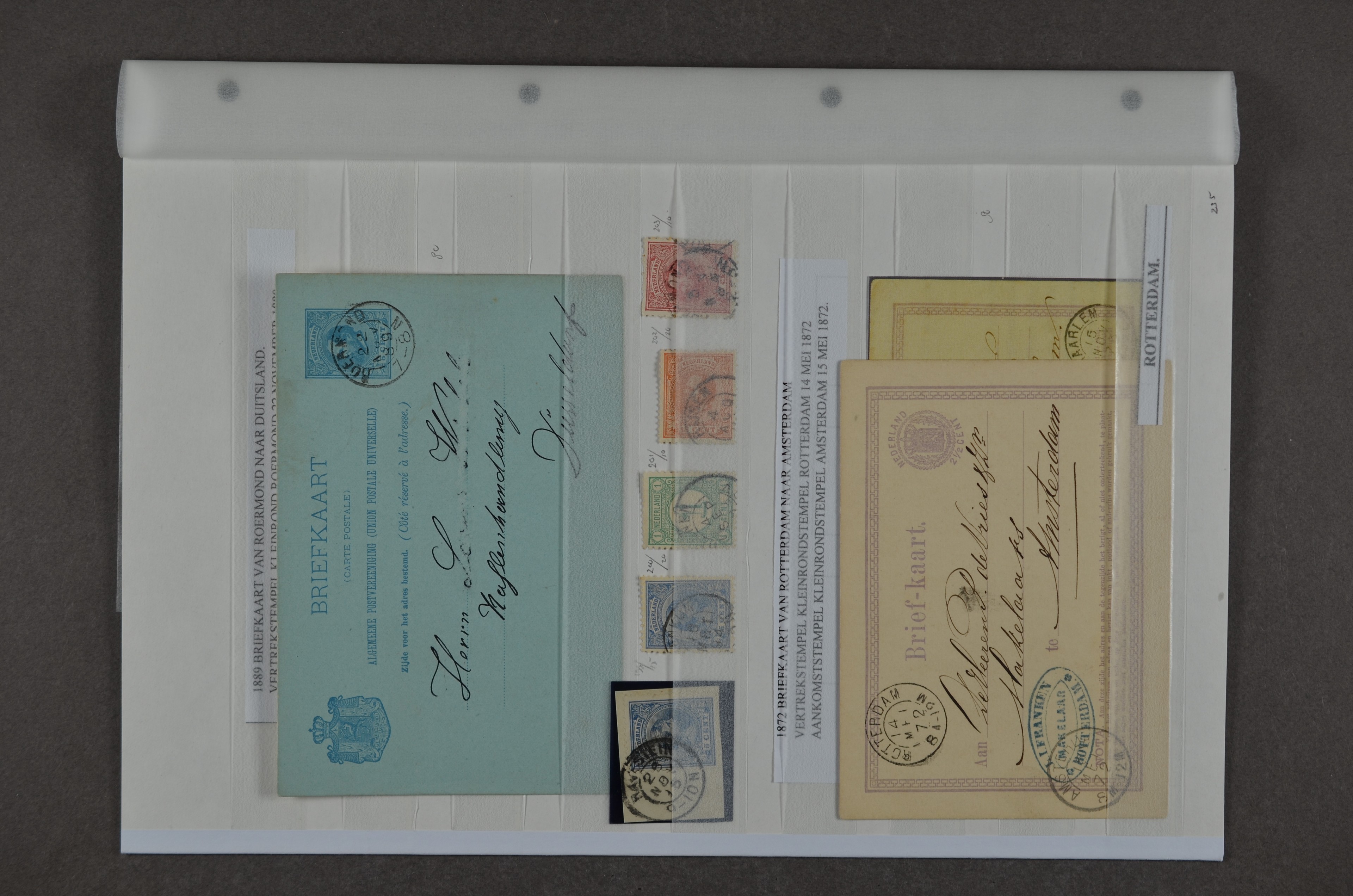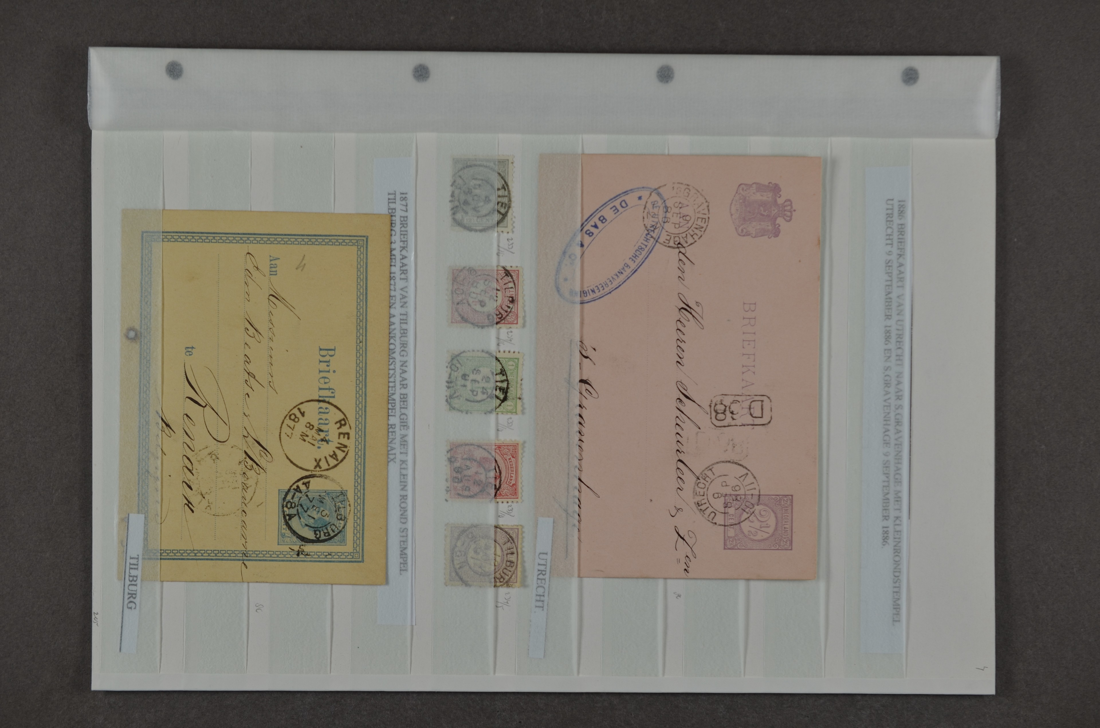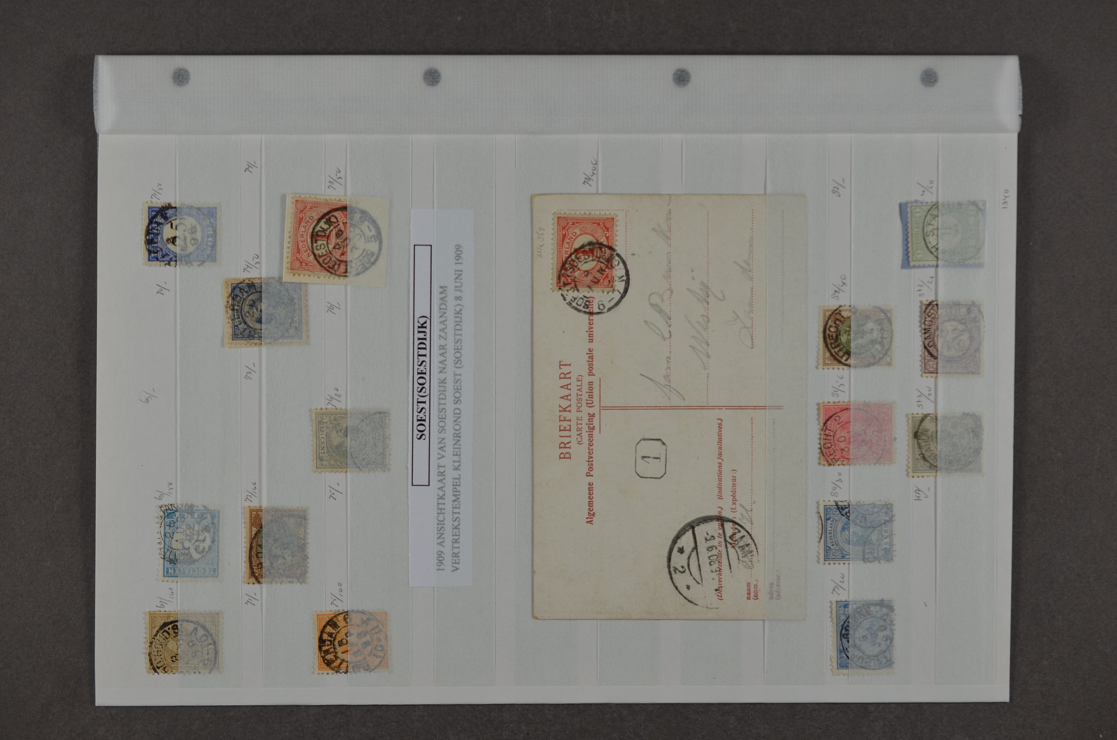 KLEINRONDSTEMPELS, vrij uitgebreide verzameling van vnl. post- en hulppostkantoren op losse zegels en poststukken, met wat schaarse kantoren waarbij diverse mooie afstempelingen, op insteekbladen in 5 kloeke ringbanden