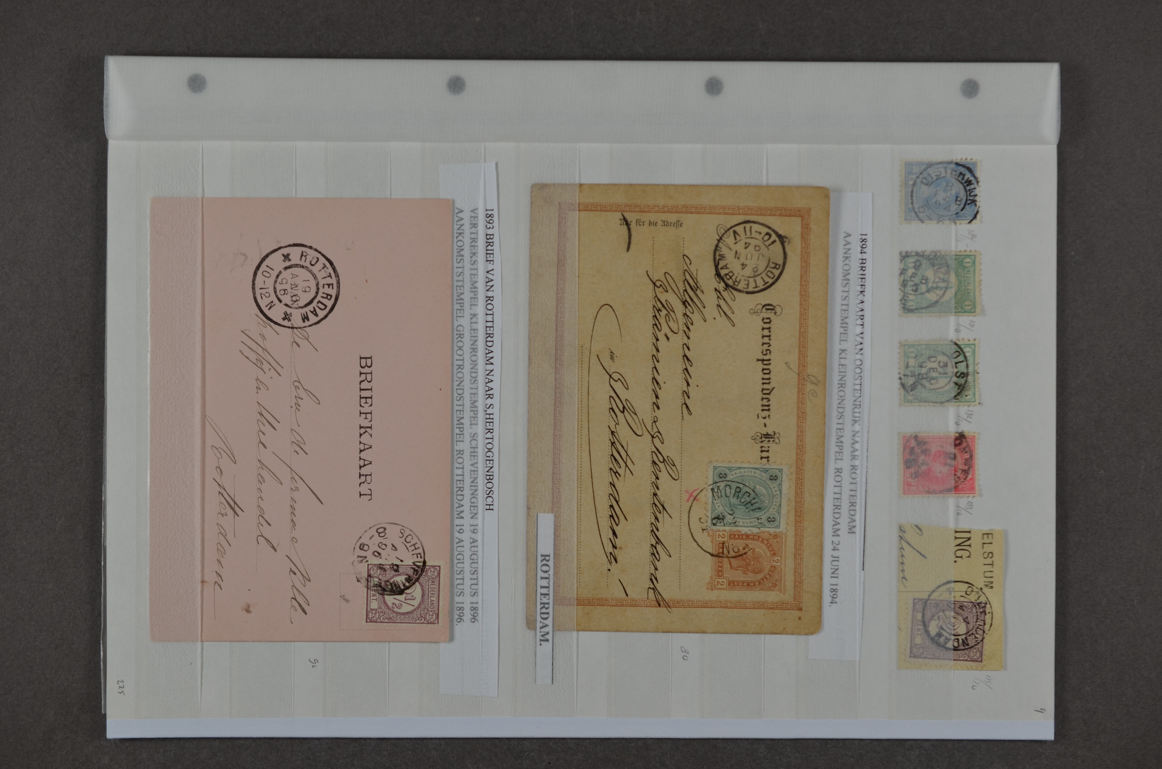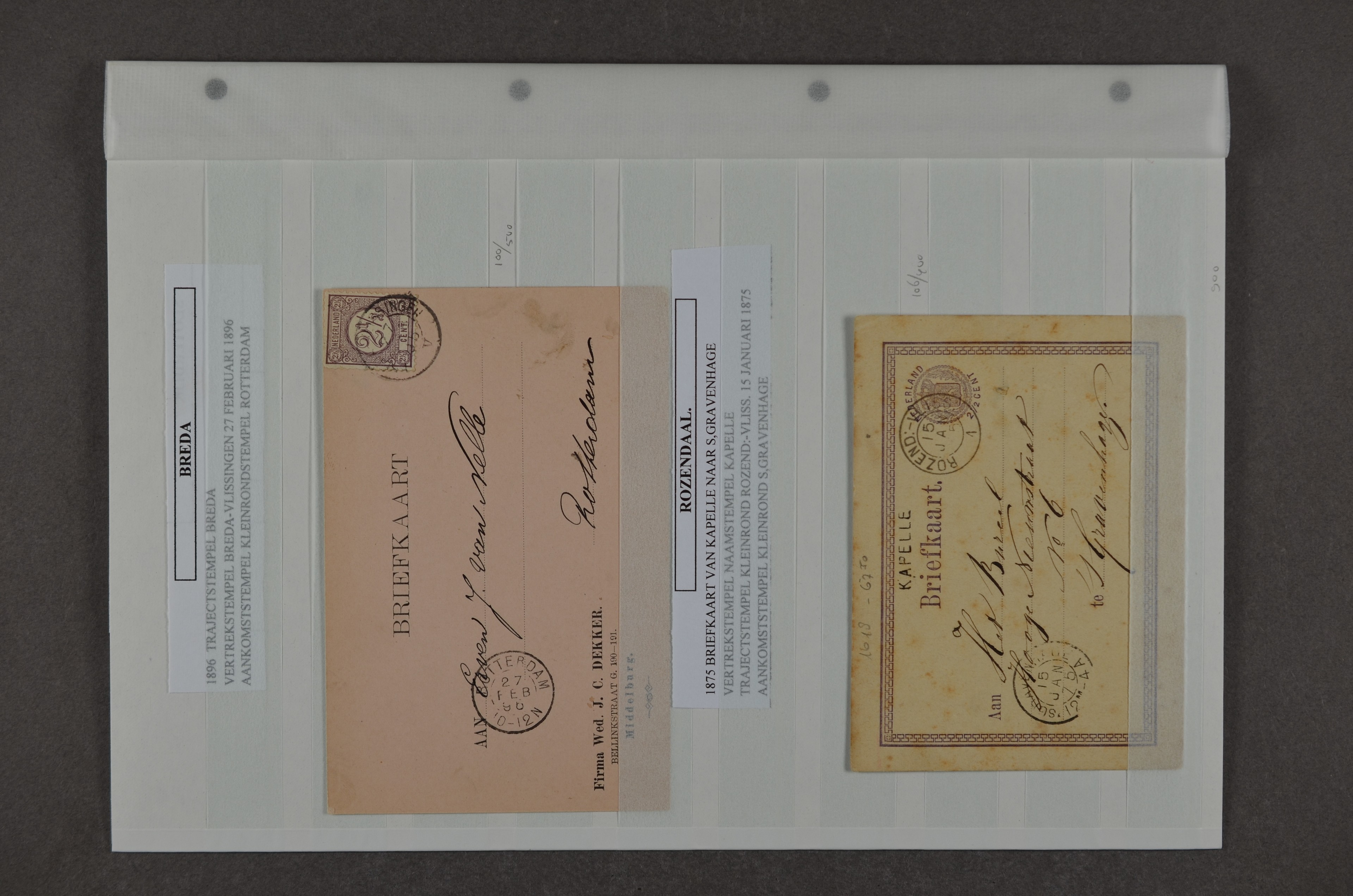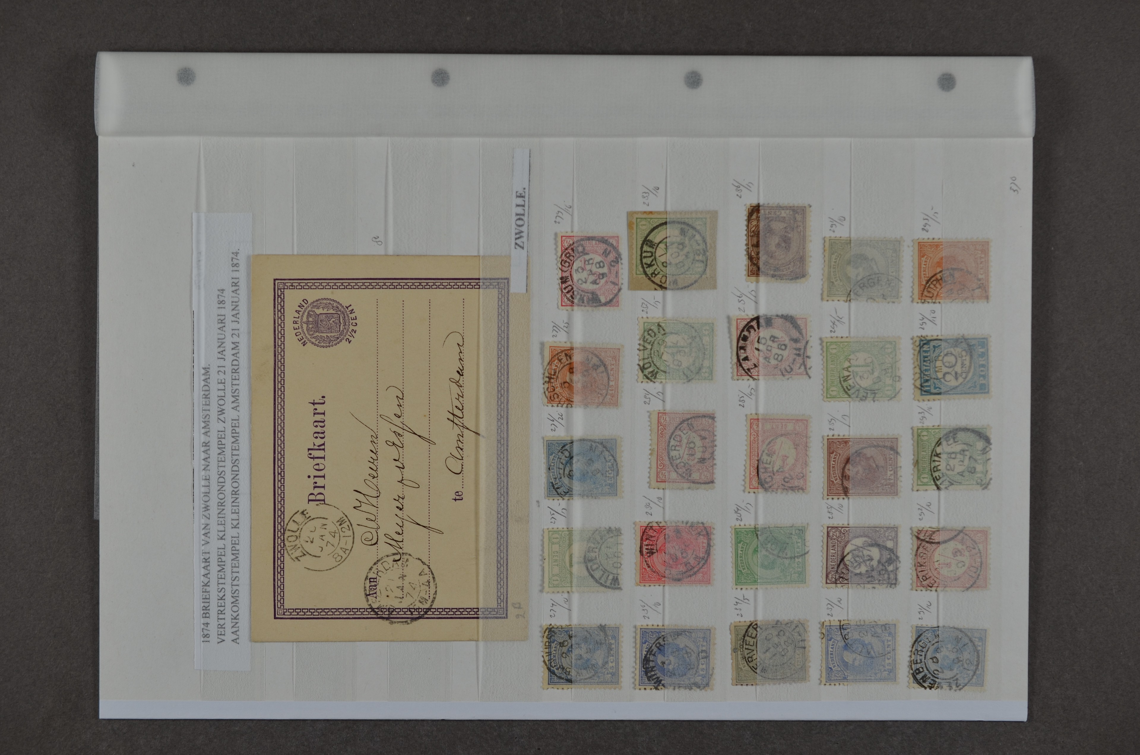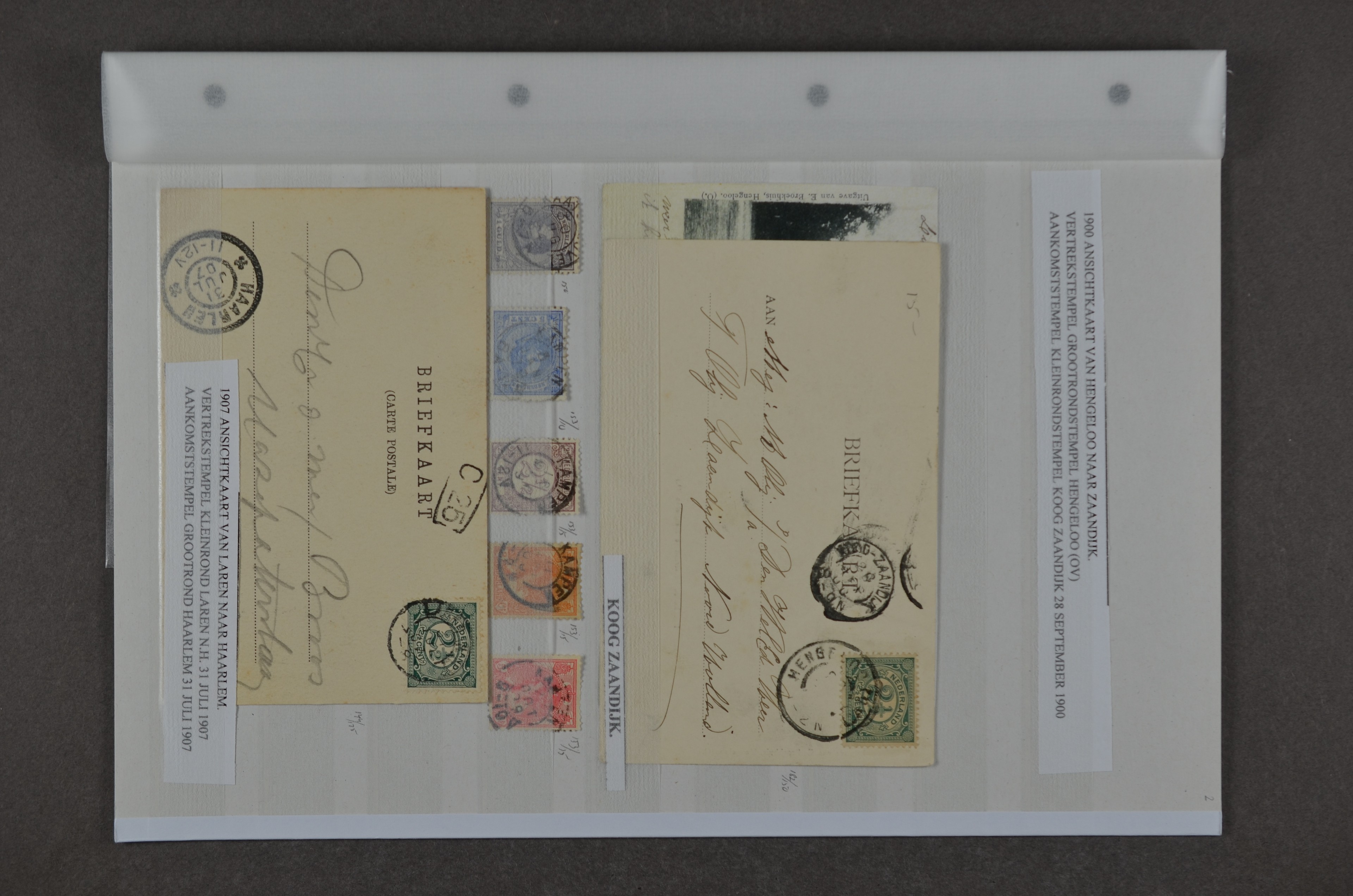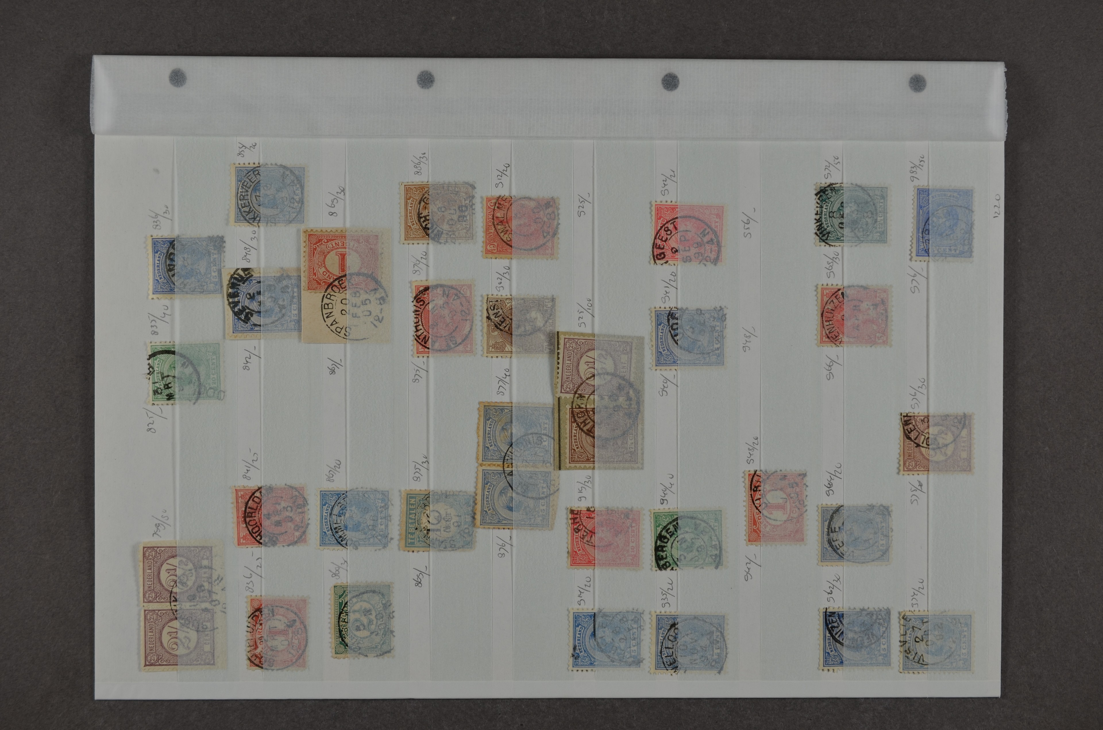 KLEINRONDSTEMPELS, vrij uitgebreide verzameling van vnl. post- en hulppostkantoren op losse zegels en poststukken, met wat schaarse kantoren waarbij diverse mooie afstempelingen, op insteekbladen in 5 kloeke ringbanden