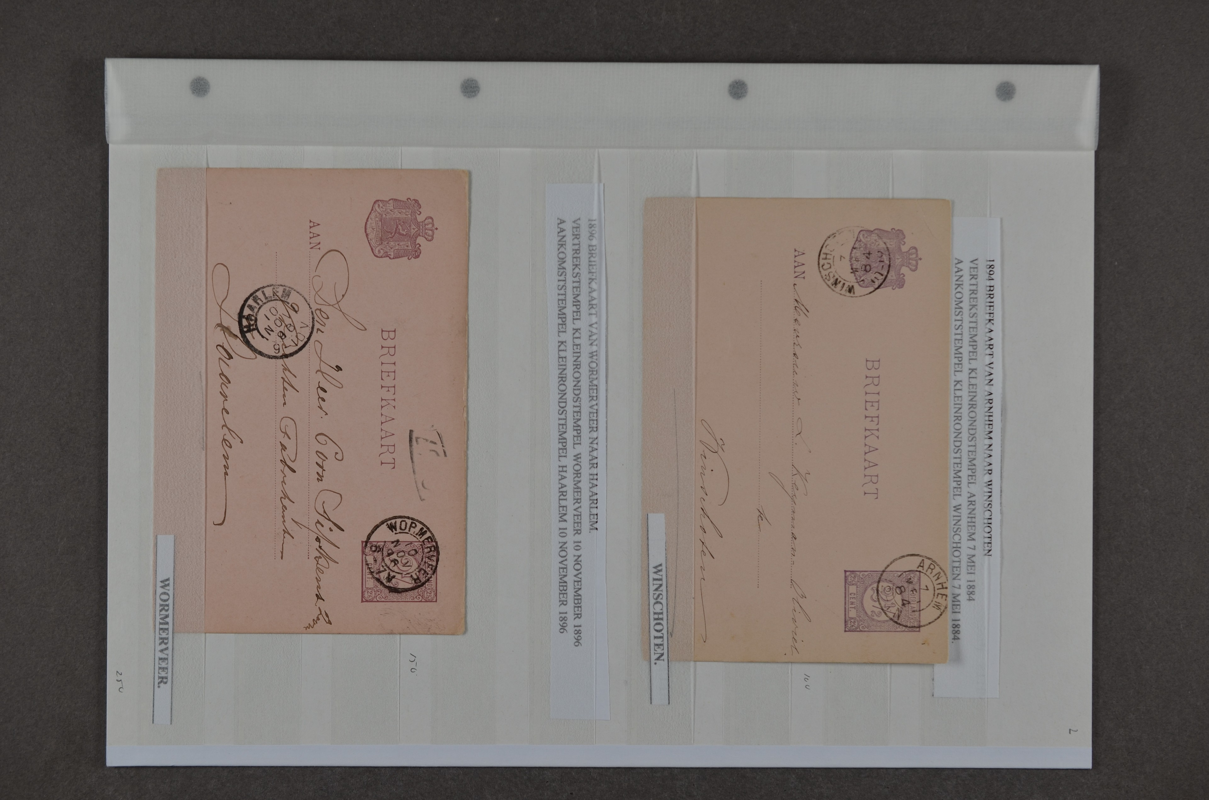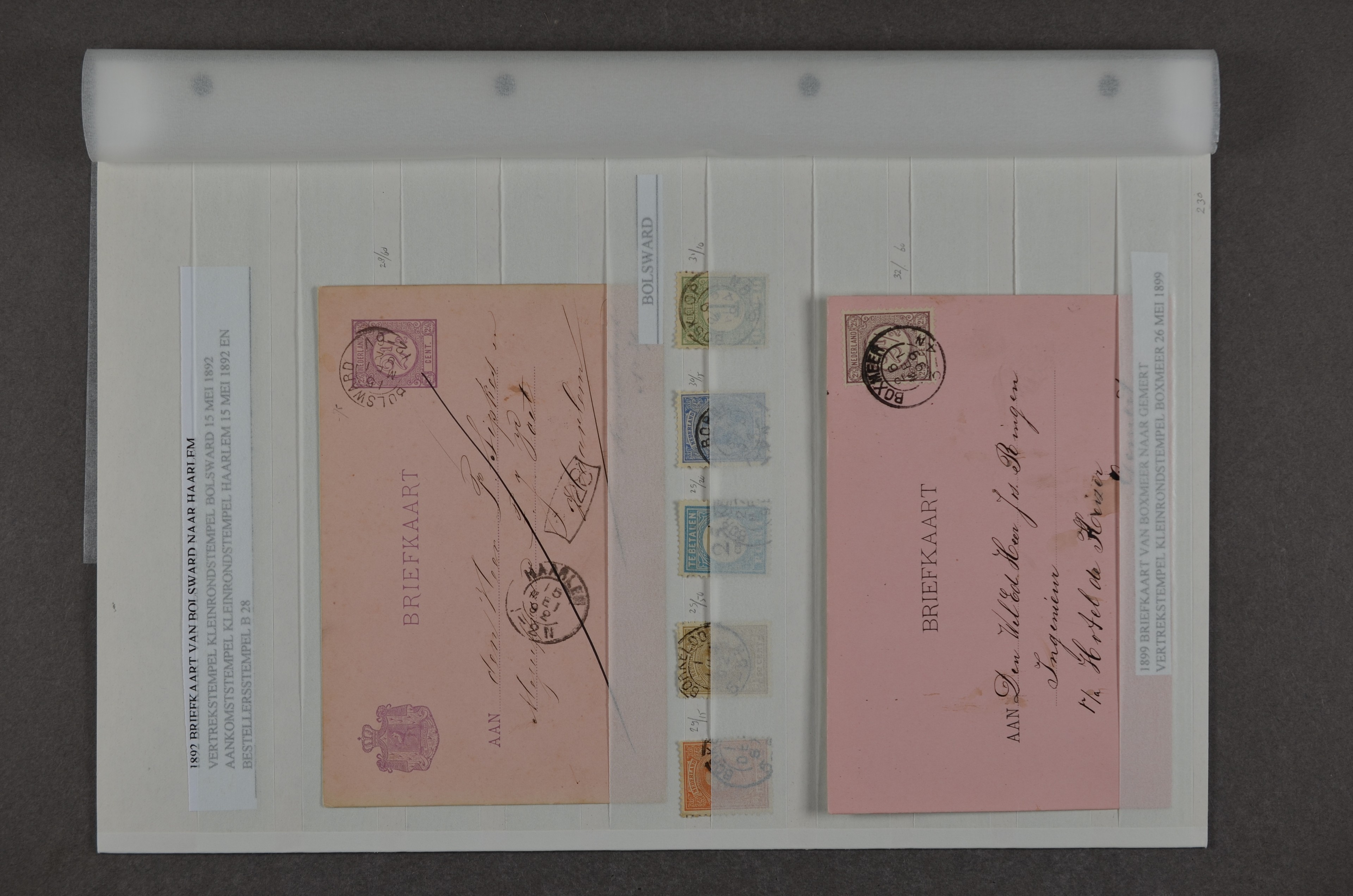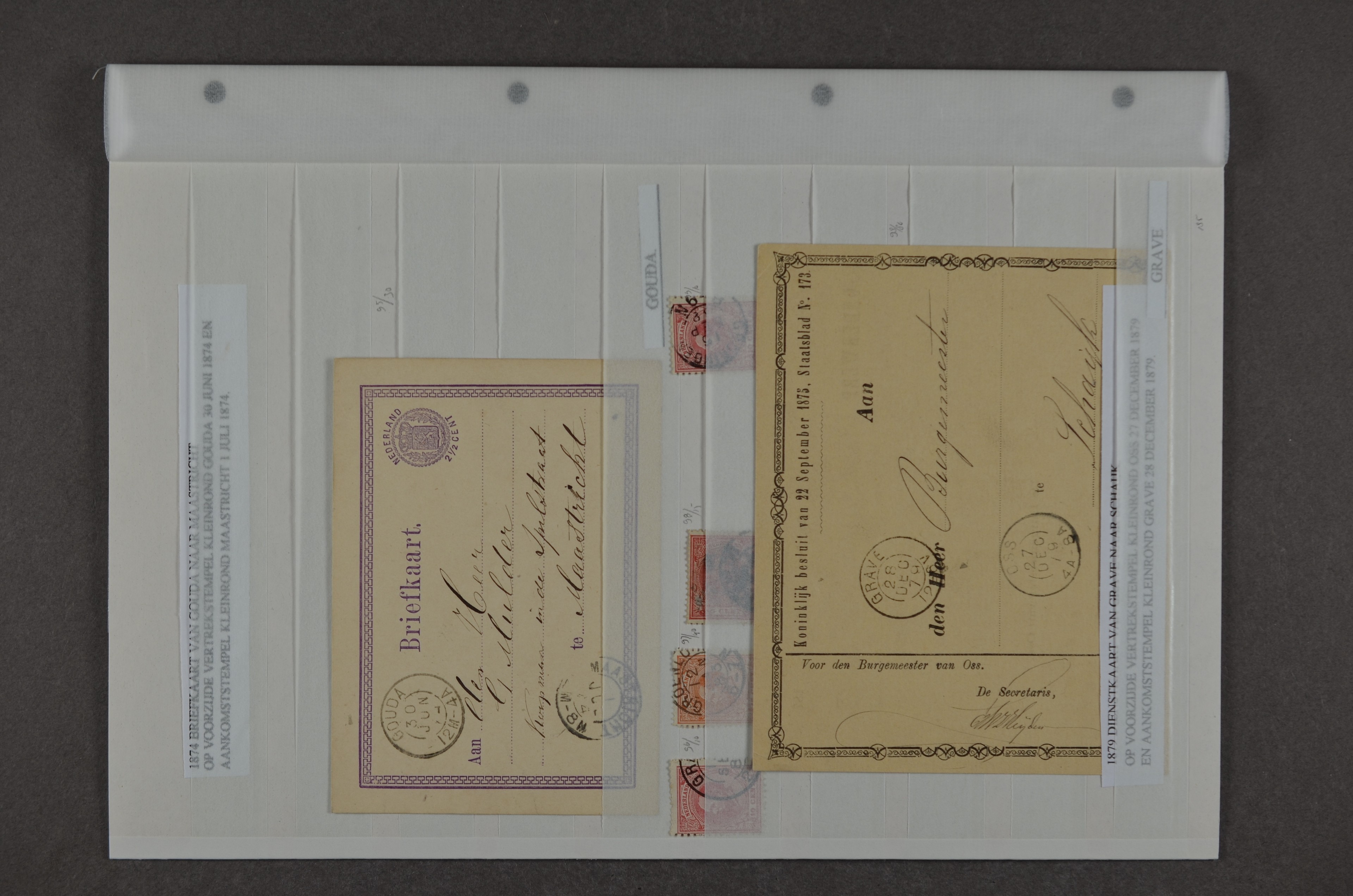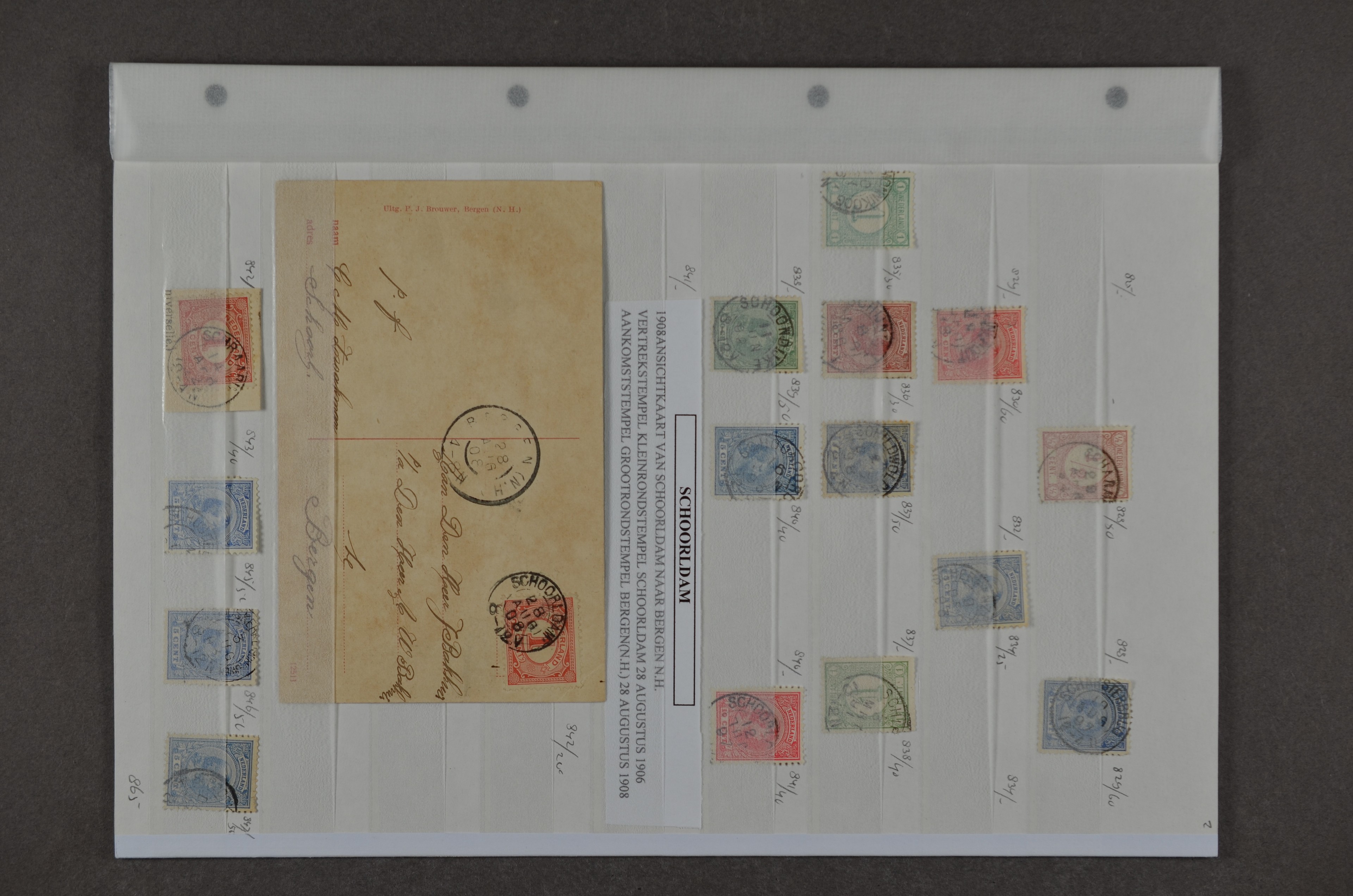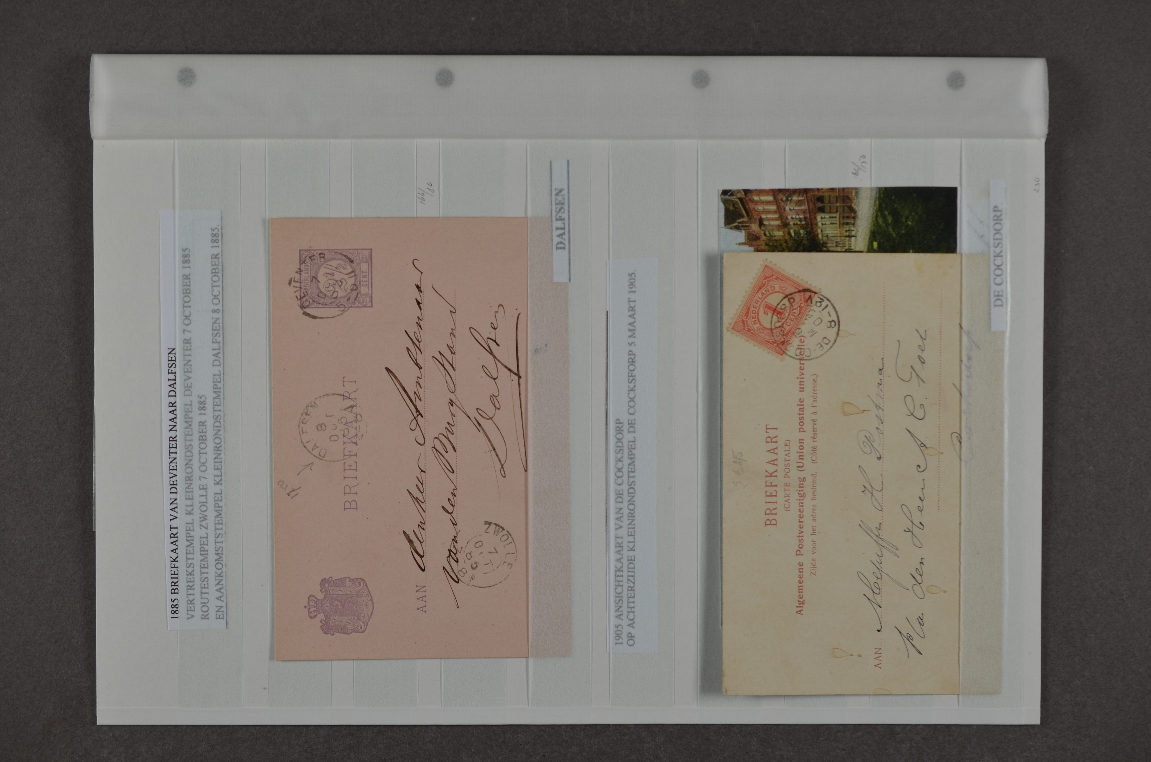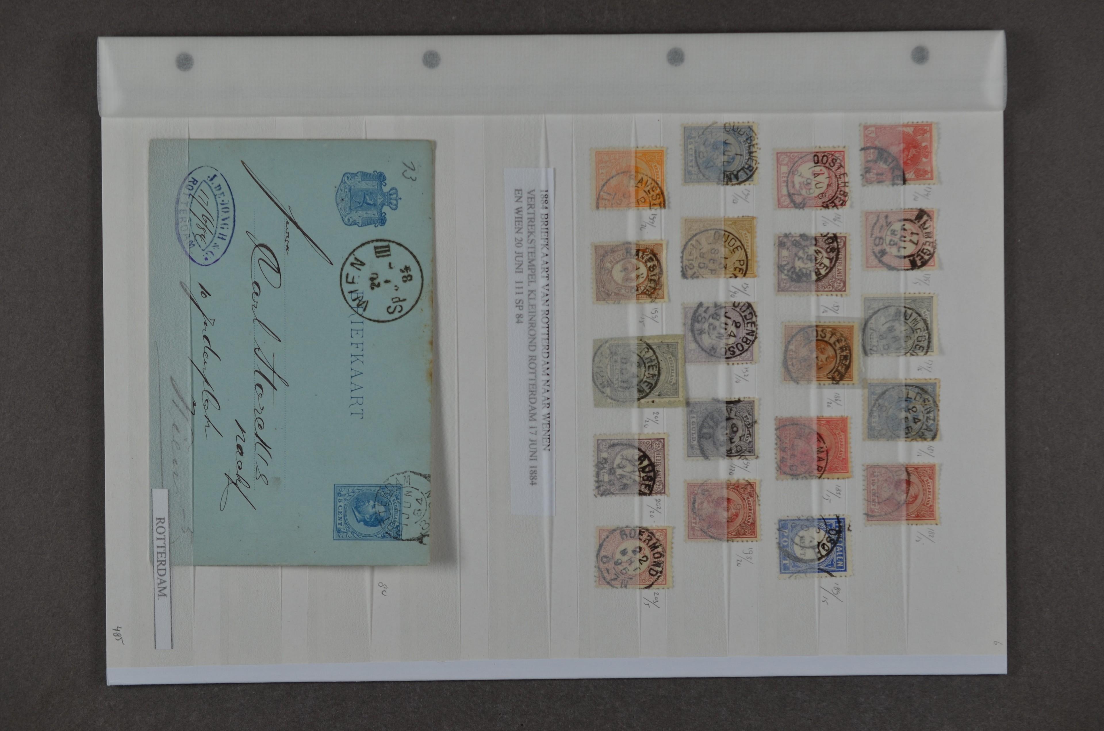 KLEINRONDSTEMPELS, vrij uitgebreide verzameling van vnl. post- en hulppostkantoren op losse zegels en poststukken, met wat schaarse kantoren waarbij diverse mooie afstempelingen, op insteekbladen in 5 kloeke ringbanden