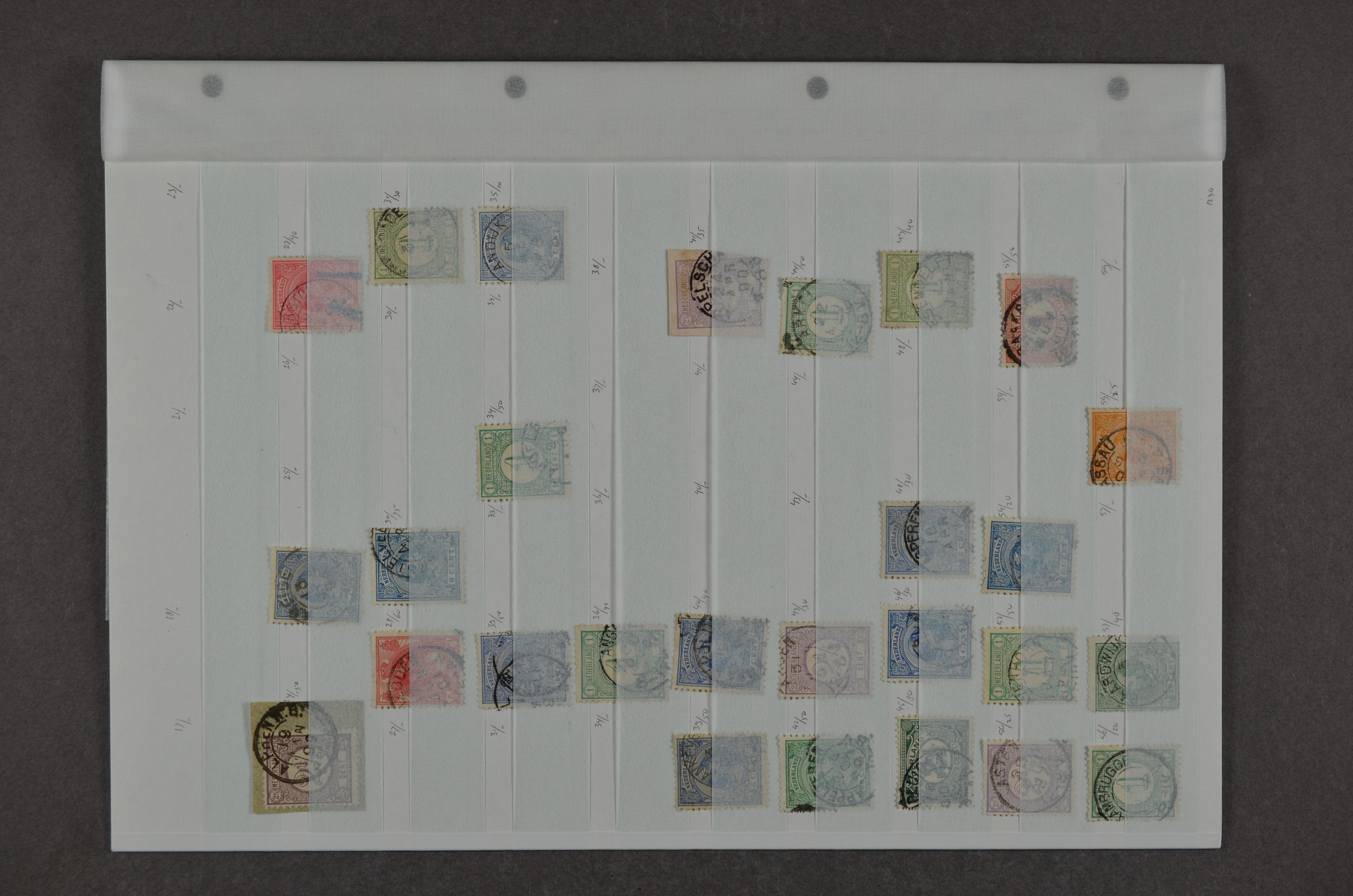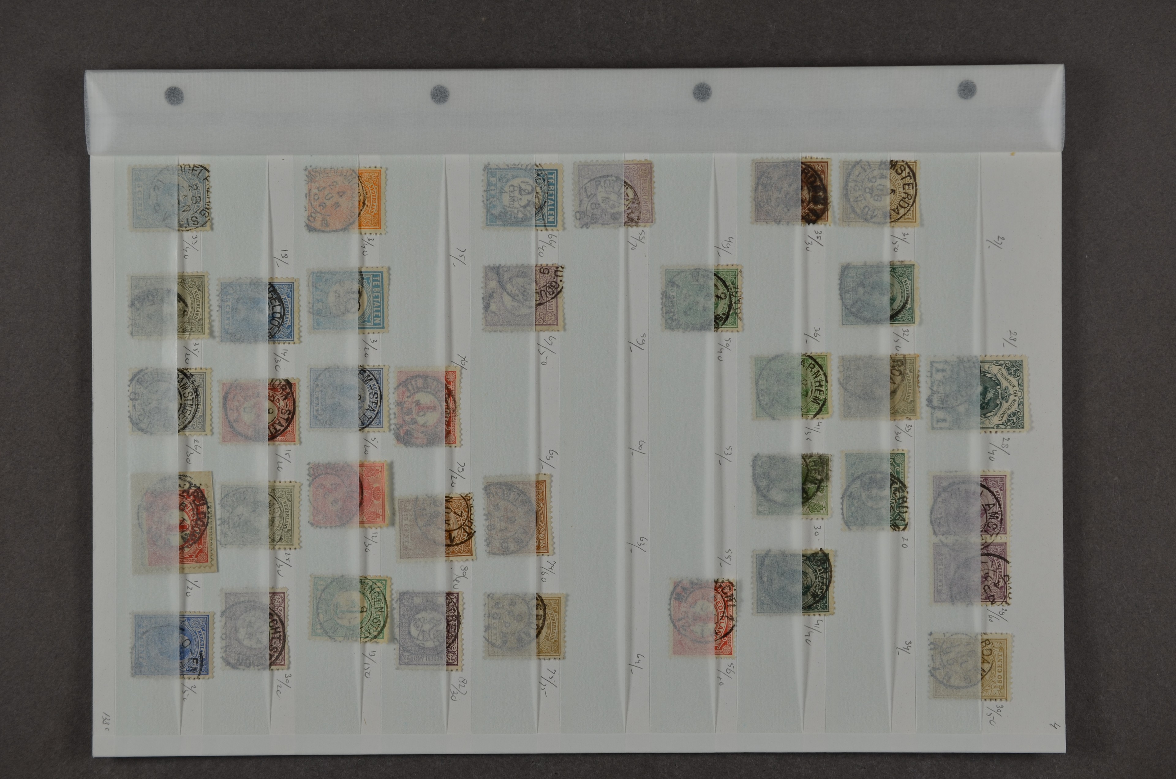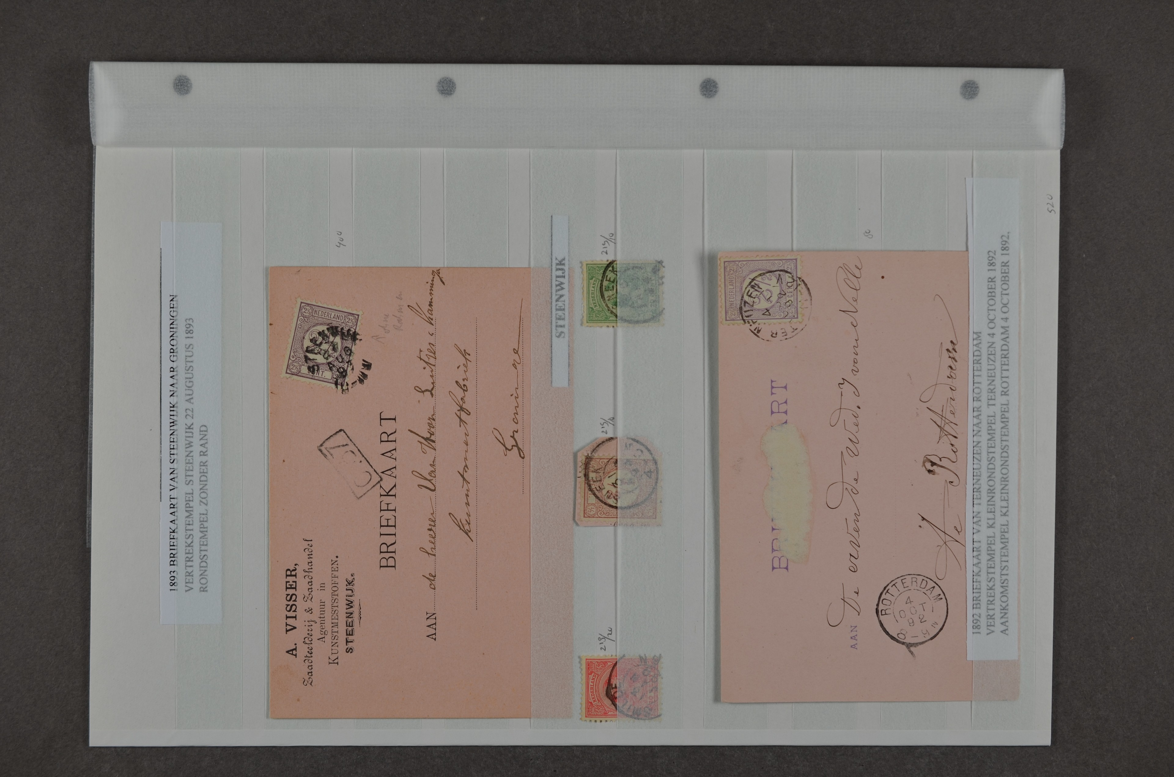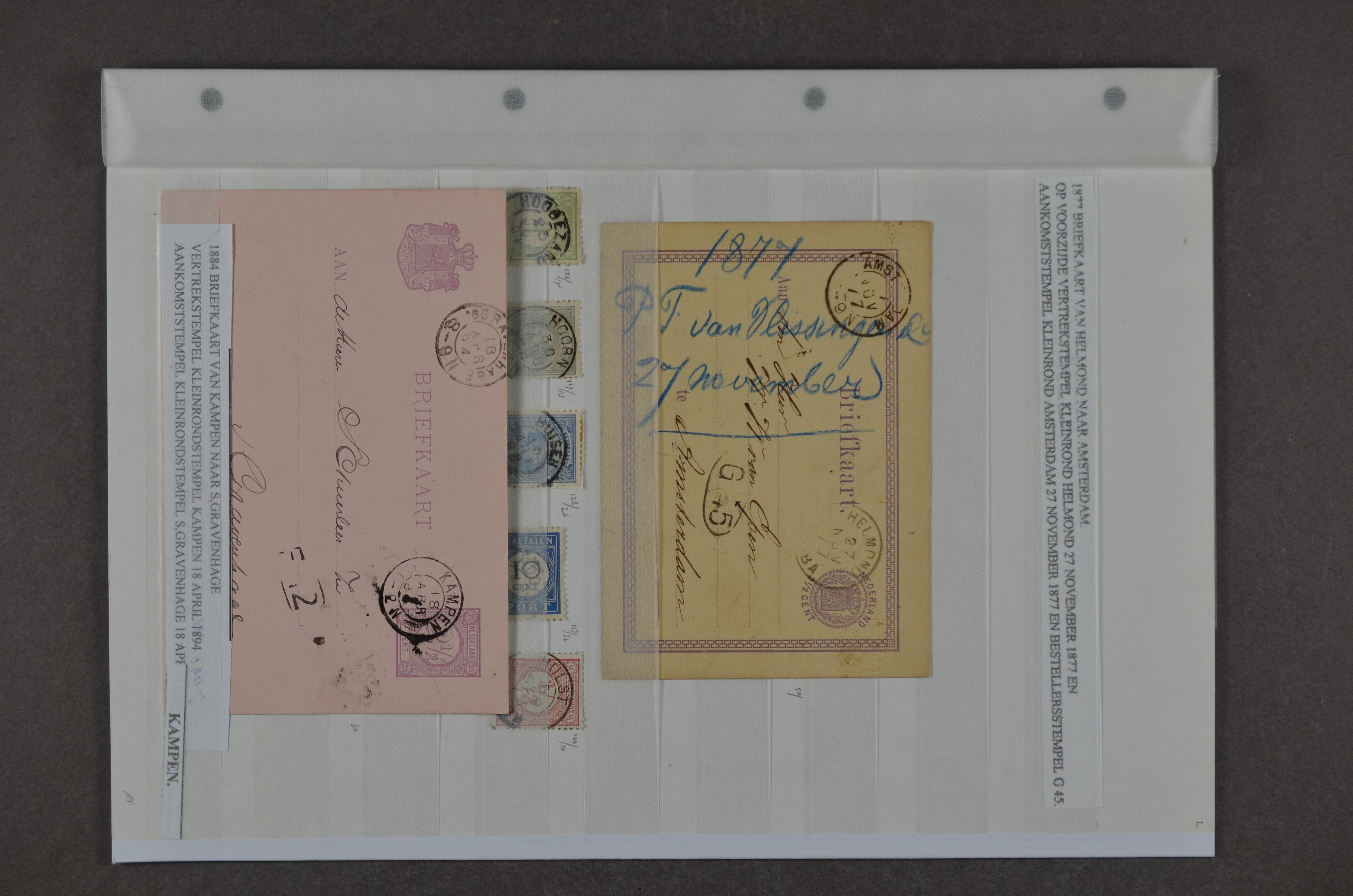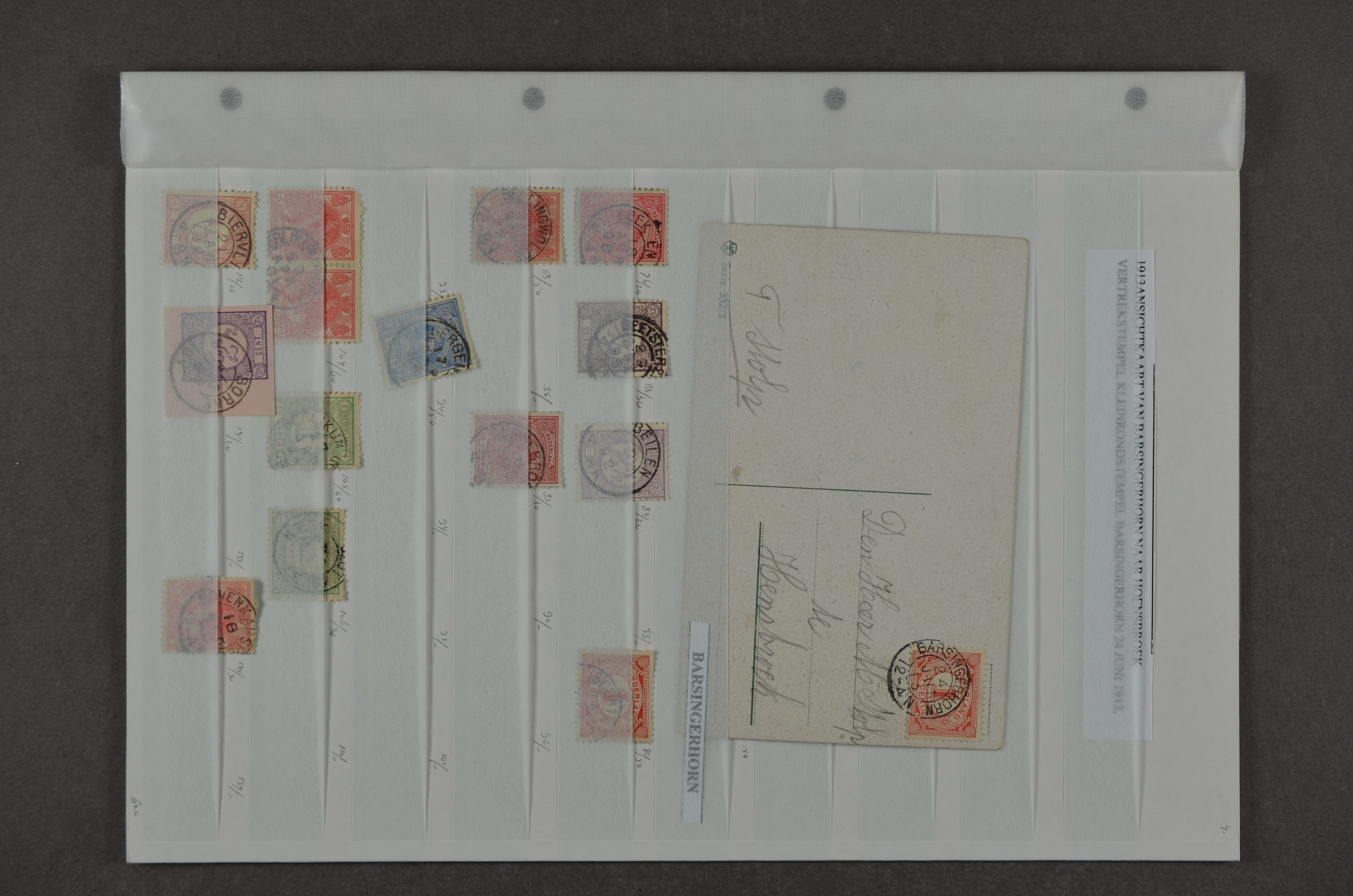 KLEINRONDSTEMPELS, vrij uitgebreide verzameling van vnl. post- en hulppostkantoren op losse zegels en poststukken, met wat schaarse kantoren waarbij diverse mooie afstempelingen, op insteekbladen in 5 kloeke ringbanden