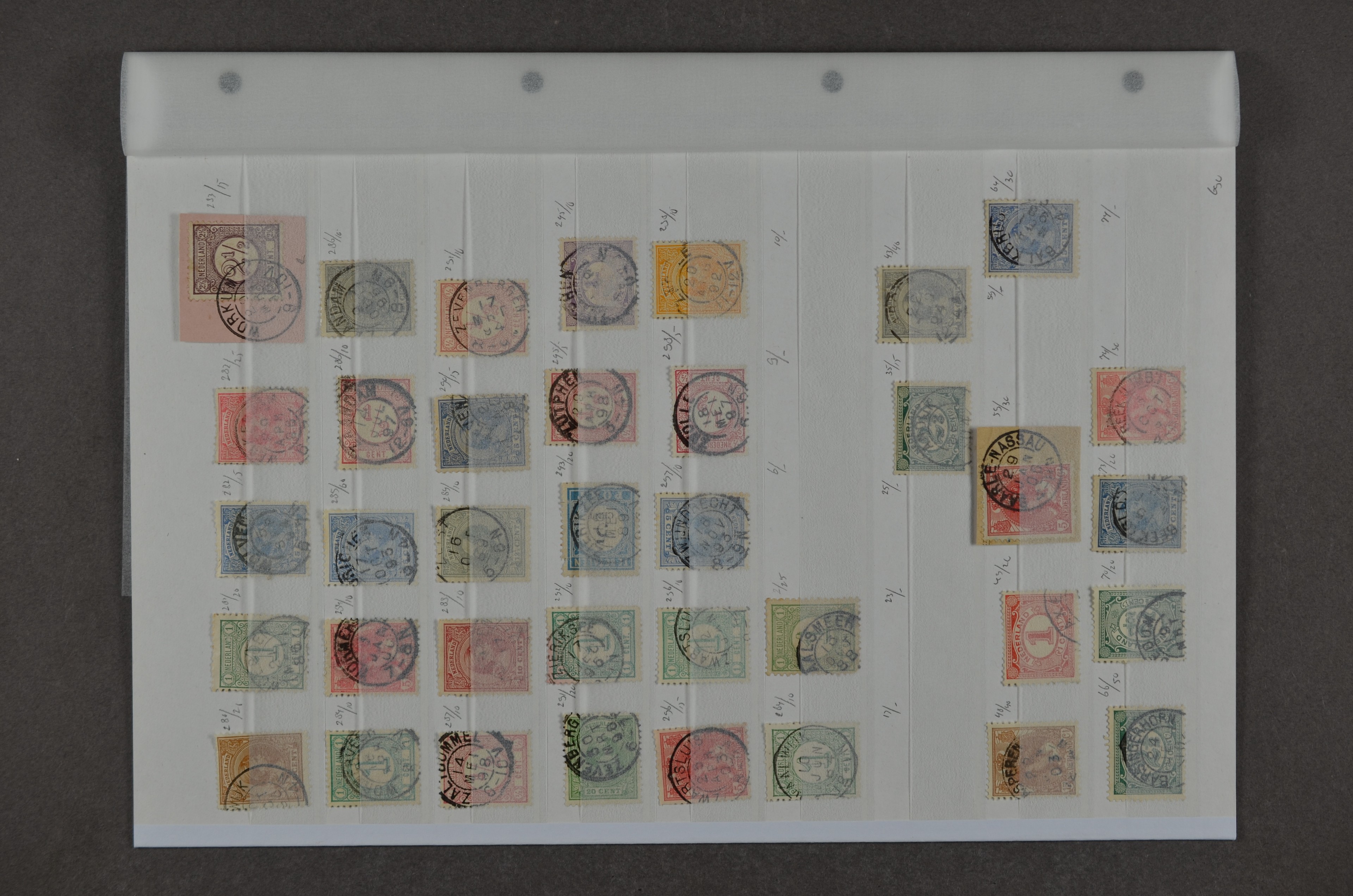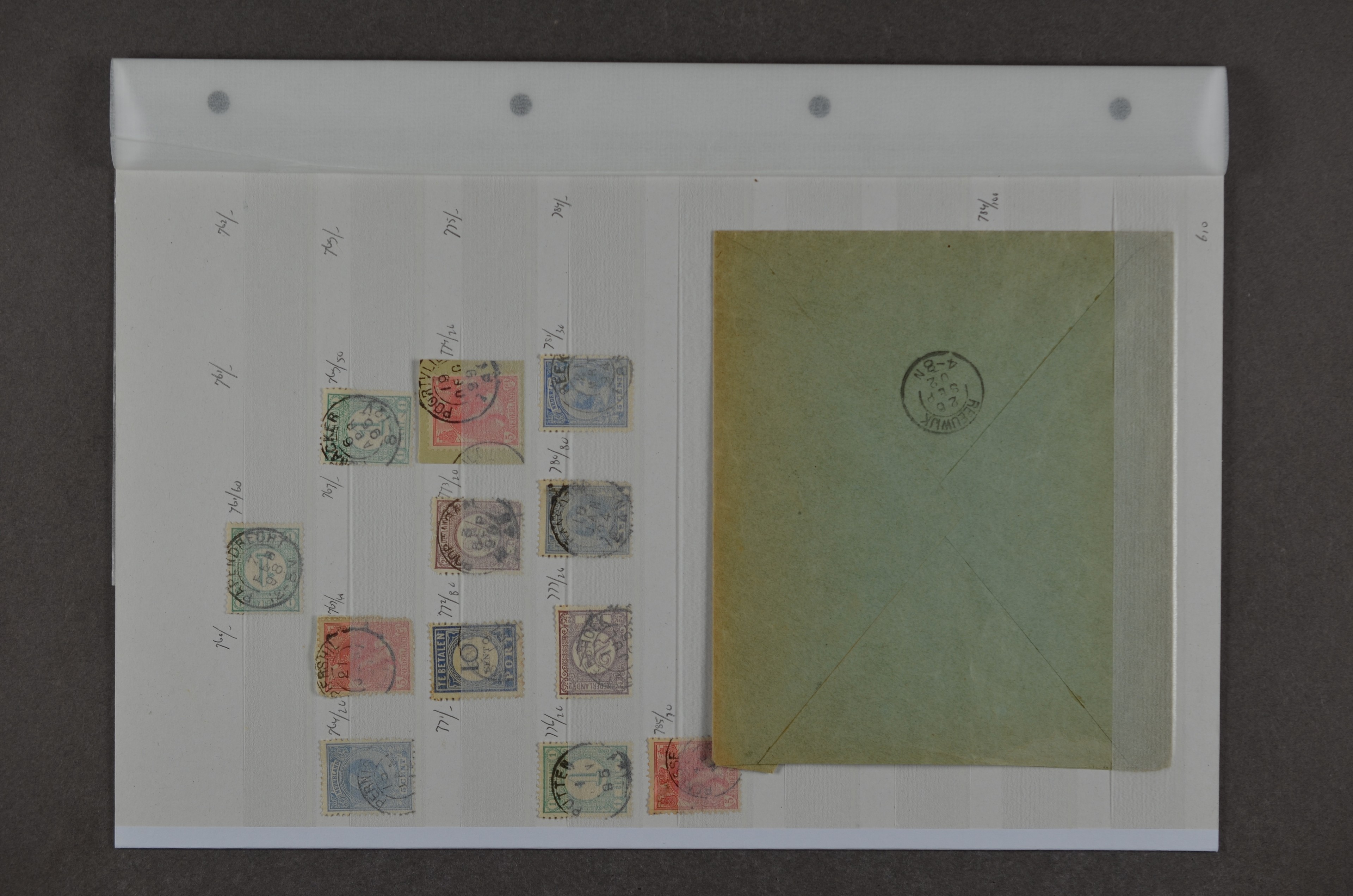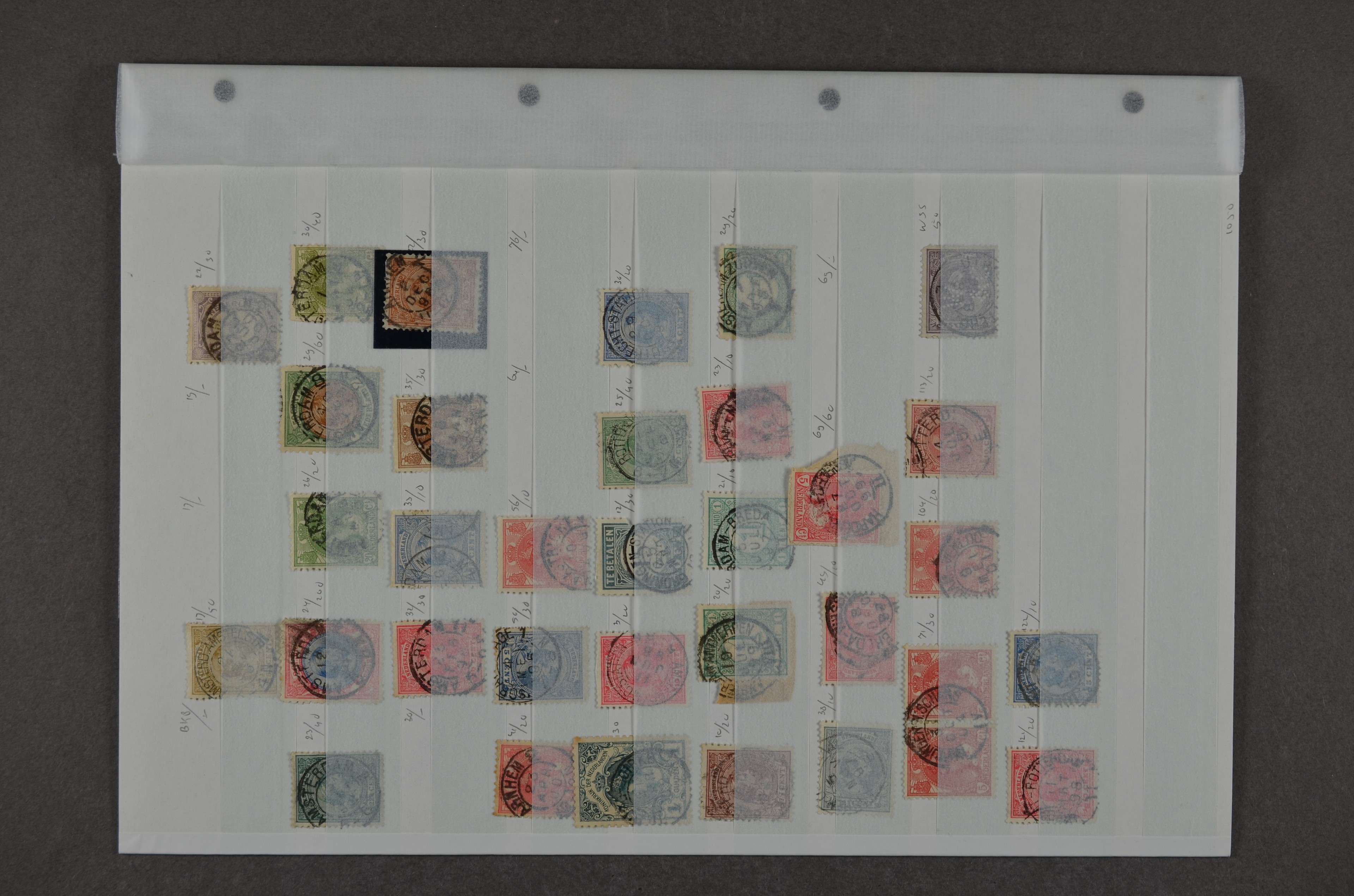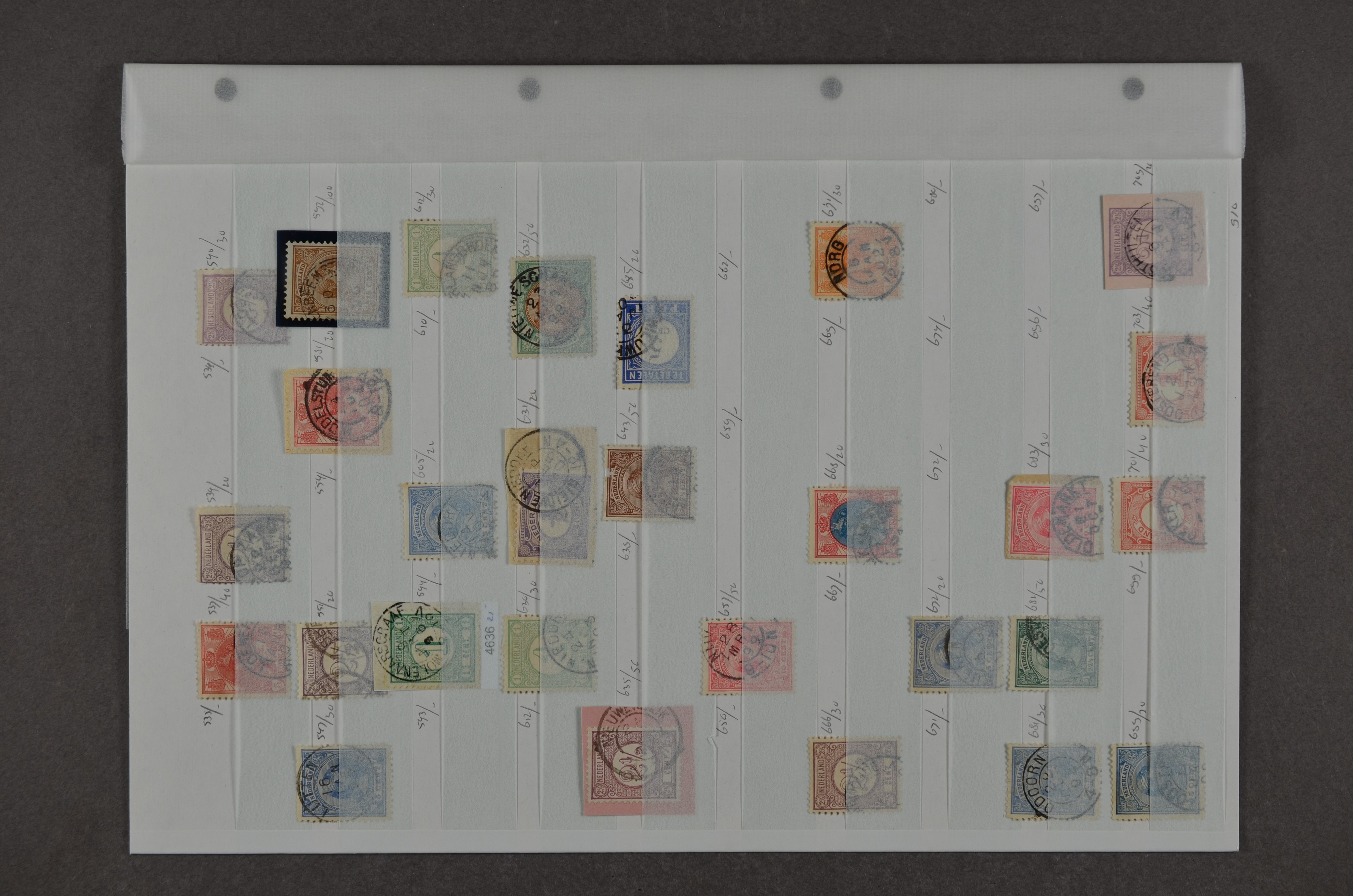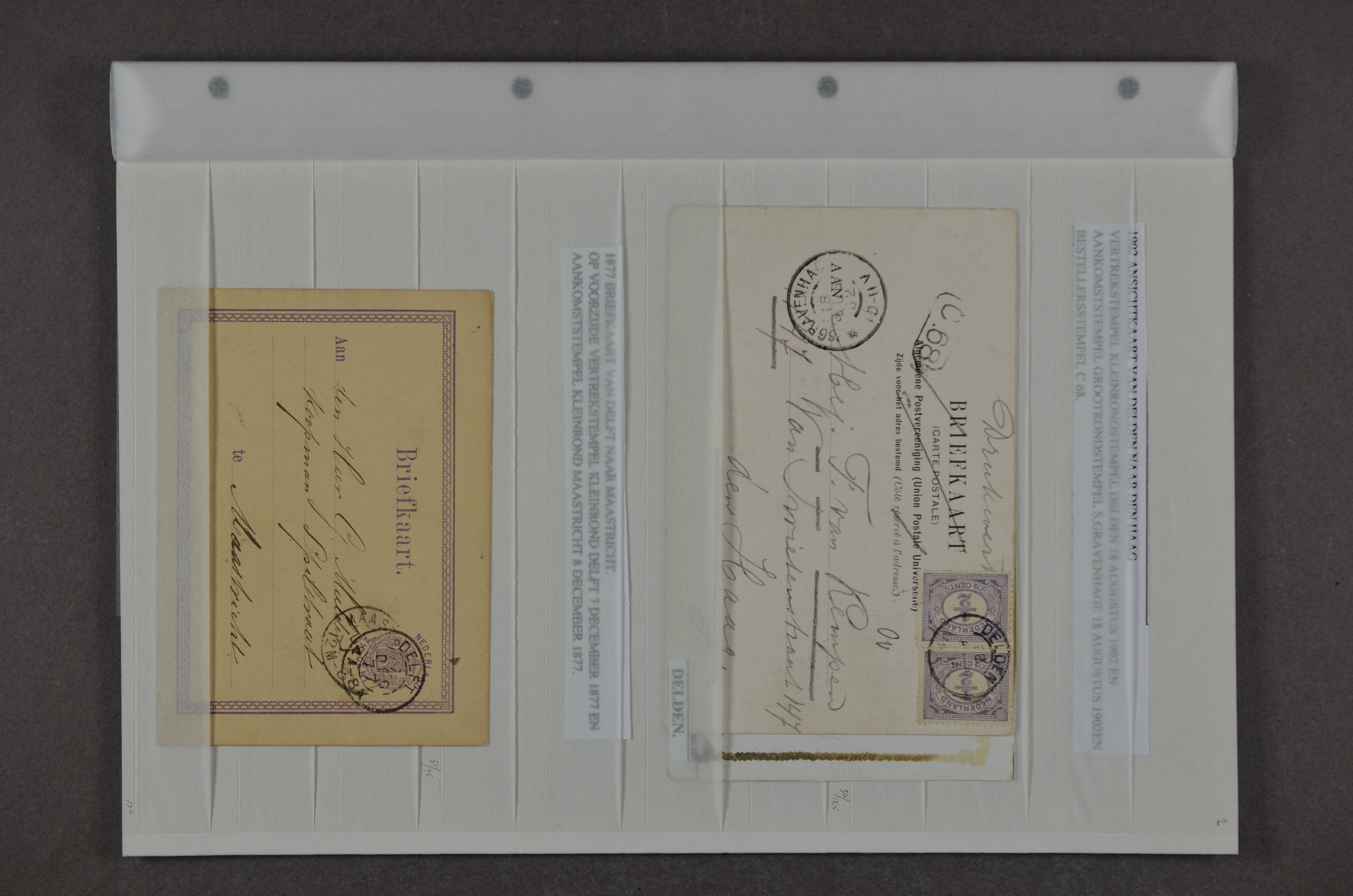 KLEINRONDSTEMPELS, vrij uitgebreide verzameling van vnl. post- en hulppostkantoren op losse zegels en poststukken, met wat schaarse kantoren waarbij diverse mooie afstempelingen, op insteekbladen in 5 kloeke ringbanden