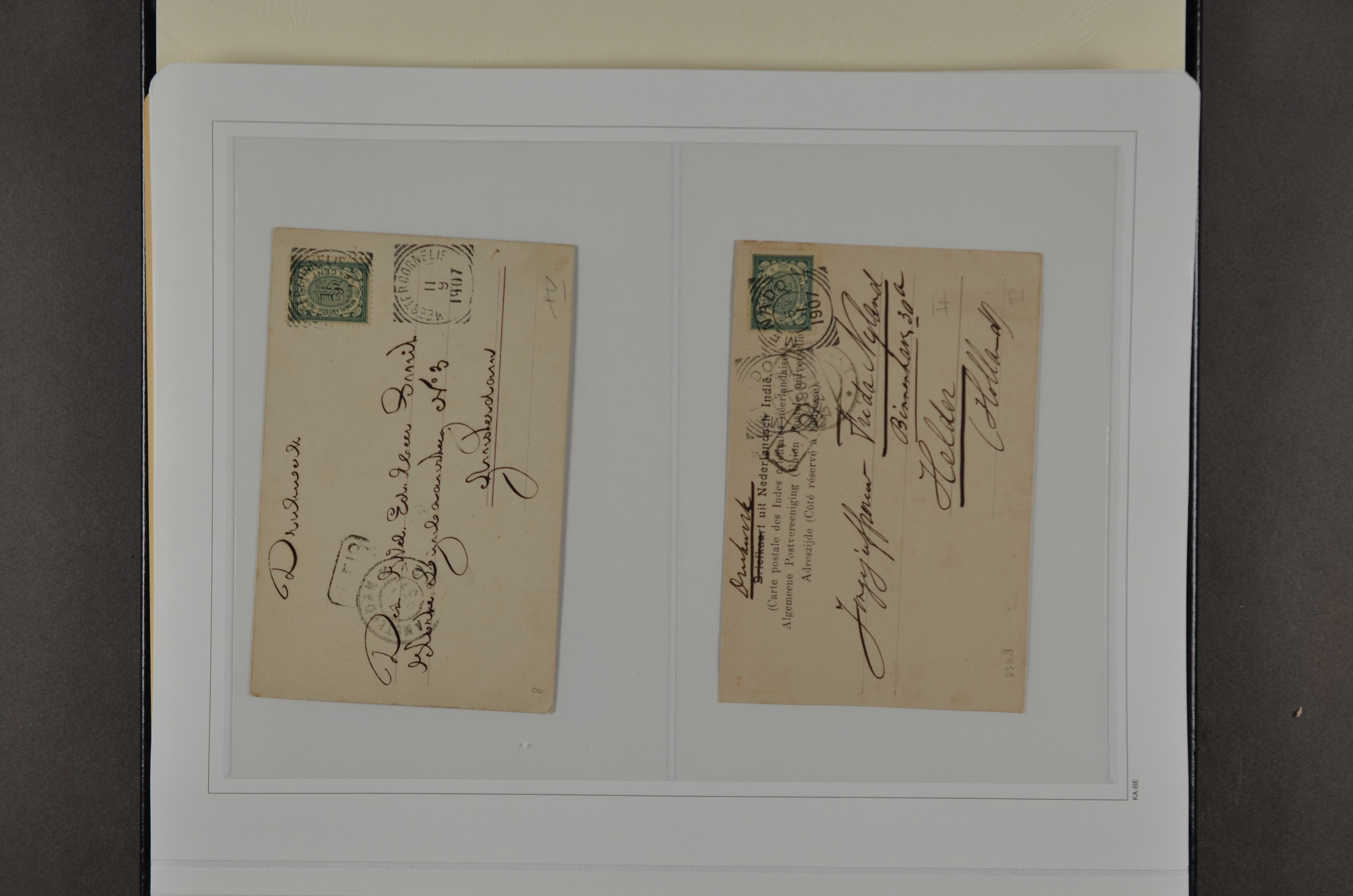 NED.- INDIË, 175 poststukken met vierkantstempels w.o. veel mooie afdrukken, enkele betere kantoren, typen, aangetekend, etc. in 2 KaBe-ringbanden