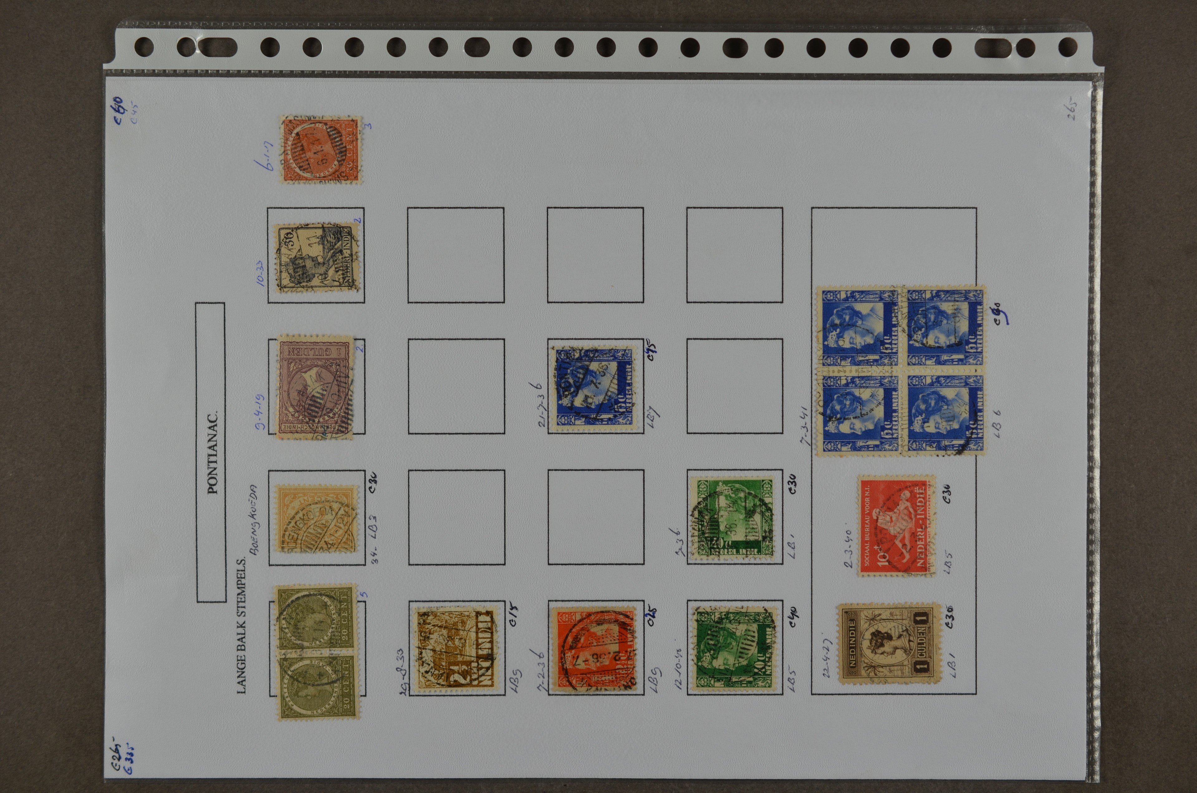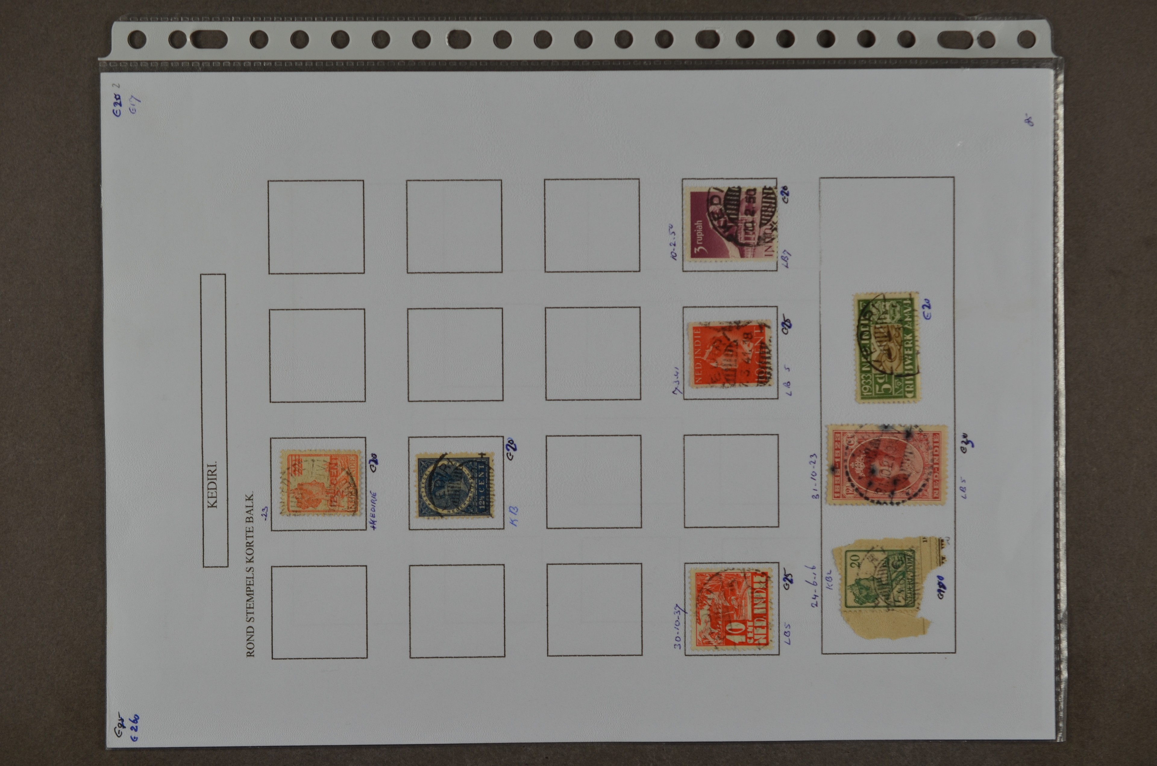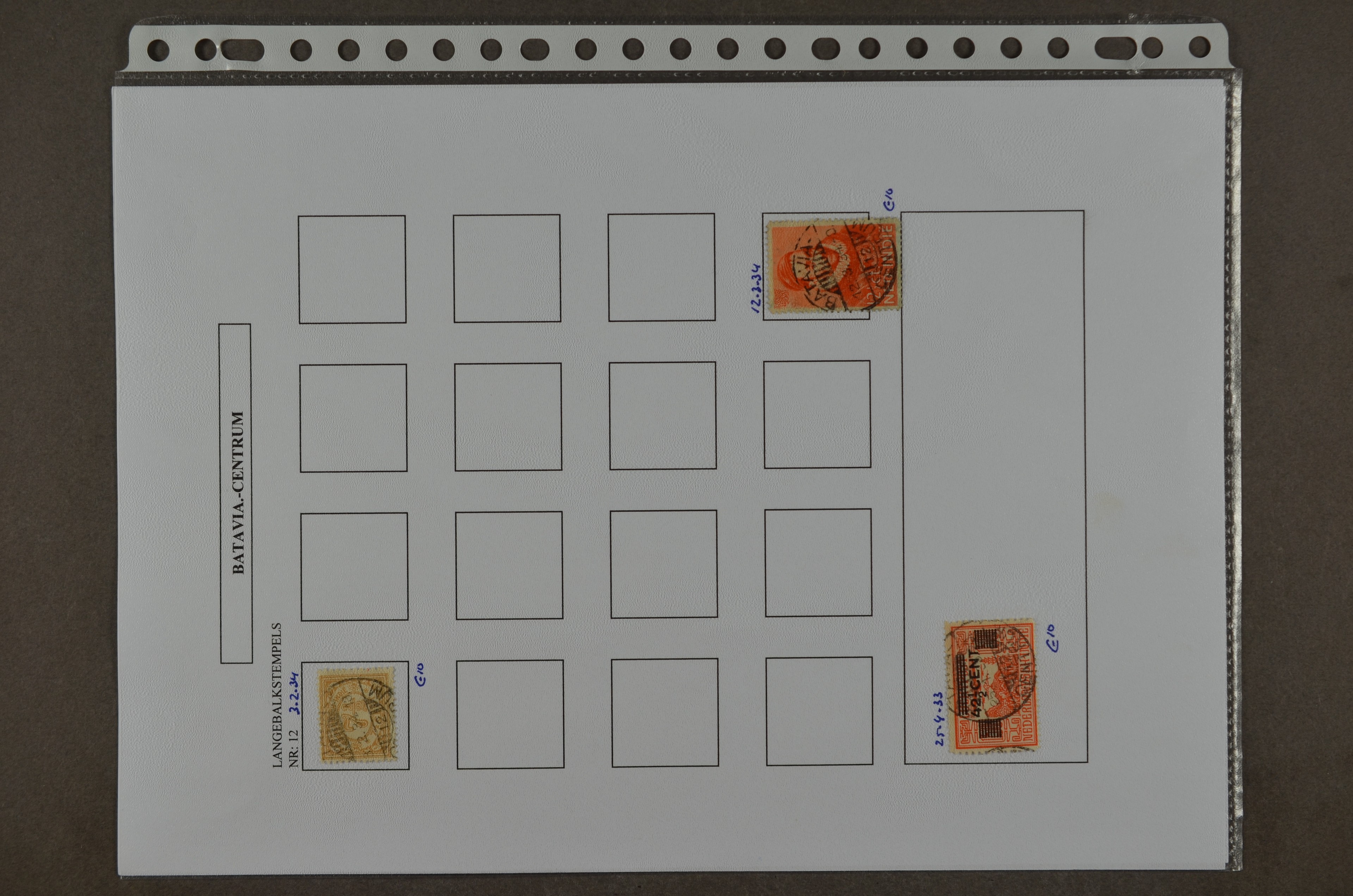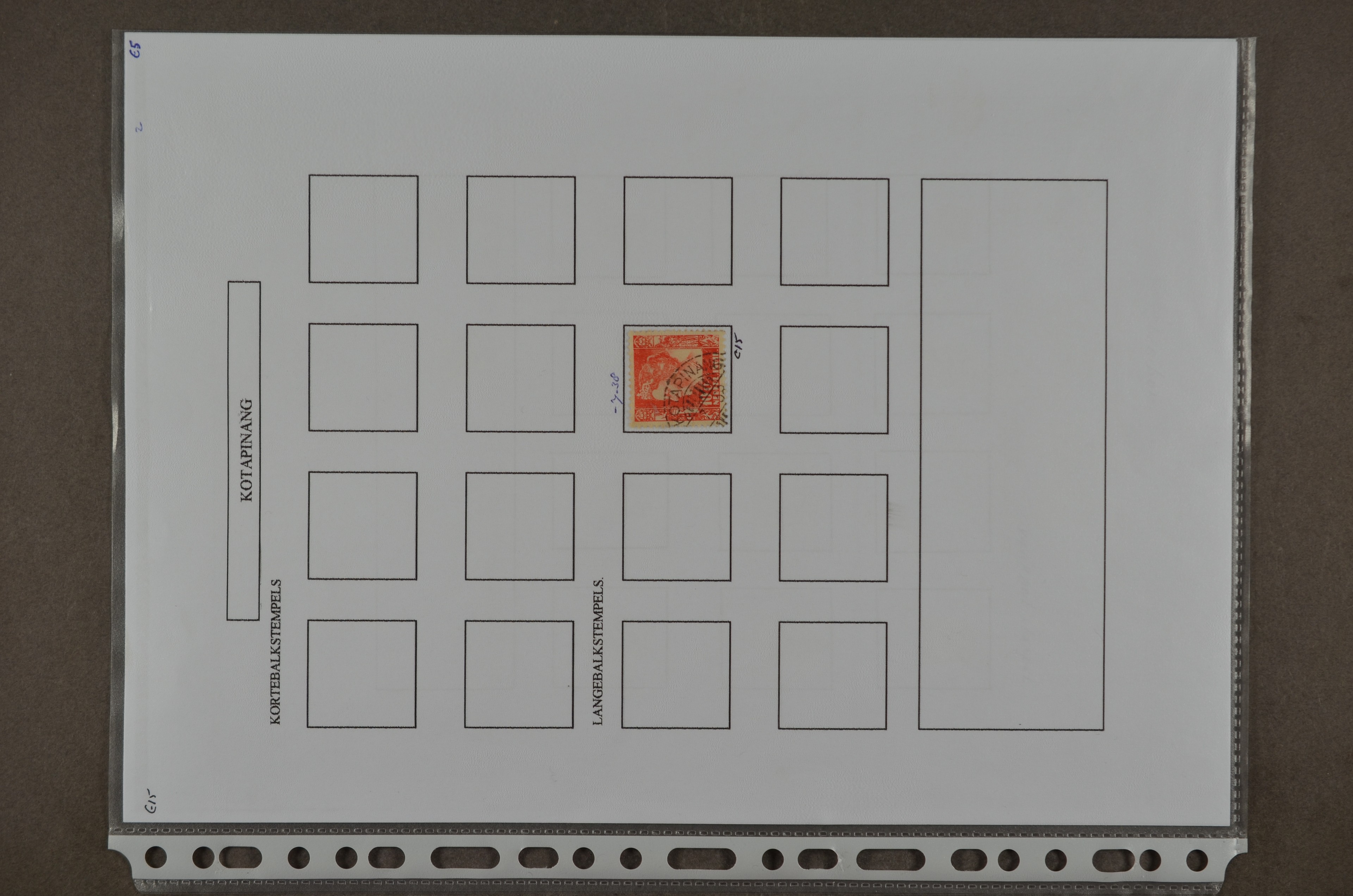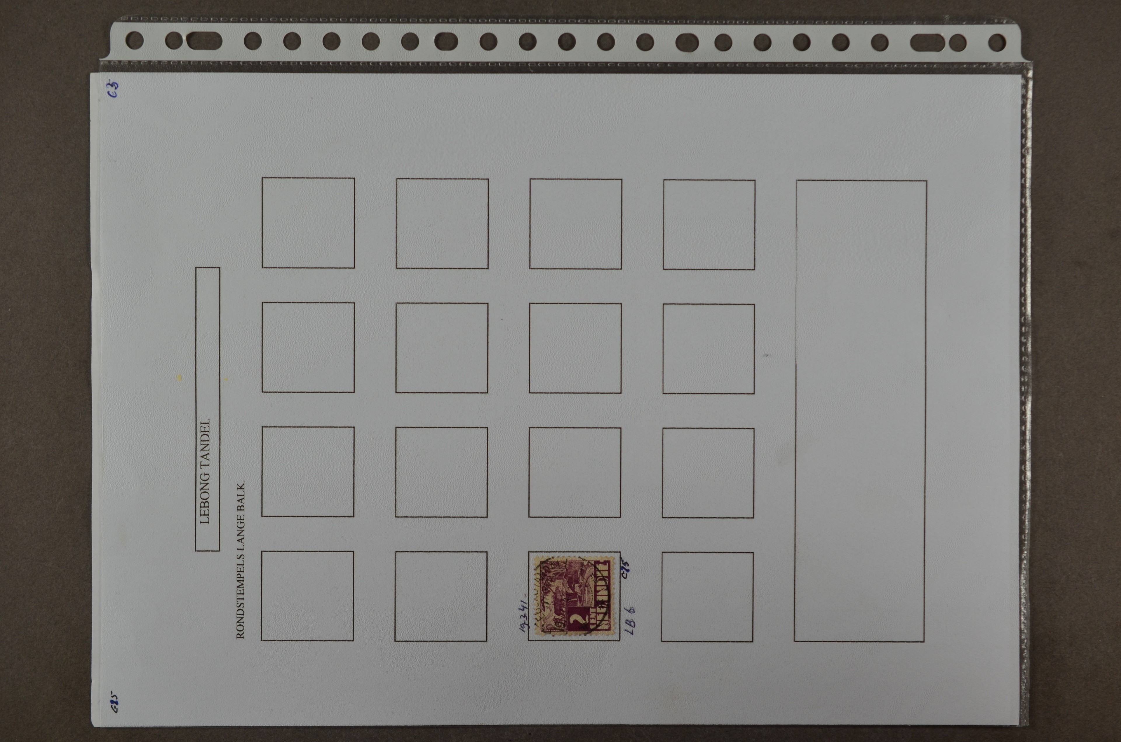NED.- INDIË Langebalkstempels vanaf 1917, uitgebreide collectie met meerdere schaarse kantoren, verschillende typen per kantoor, veel mooie afstempelingen, ook andere typen als KB, PV1, PV2, LBnr, opgezet op bladen (w.o. door verzamelaar diverse foutief genoemde kantoornamen) in 8 ringbanden