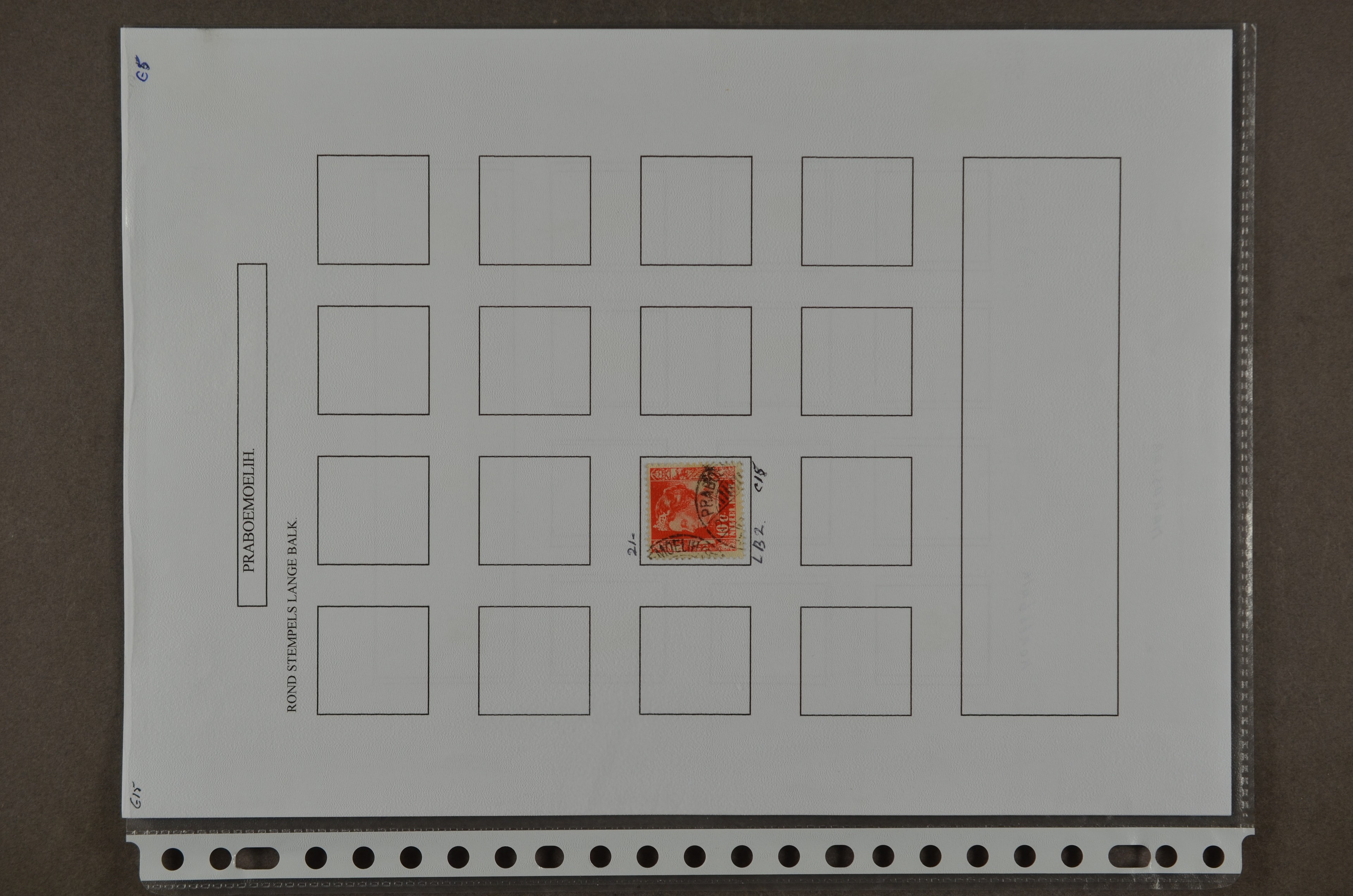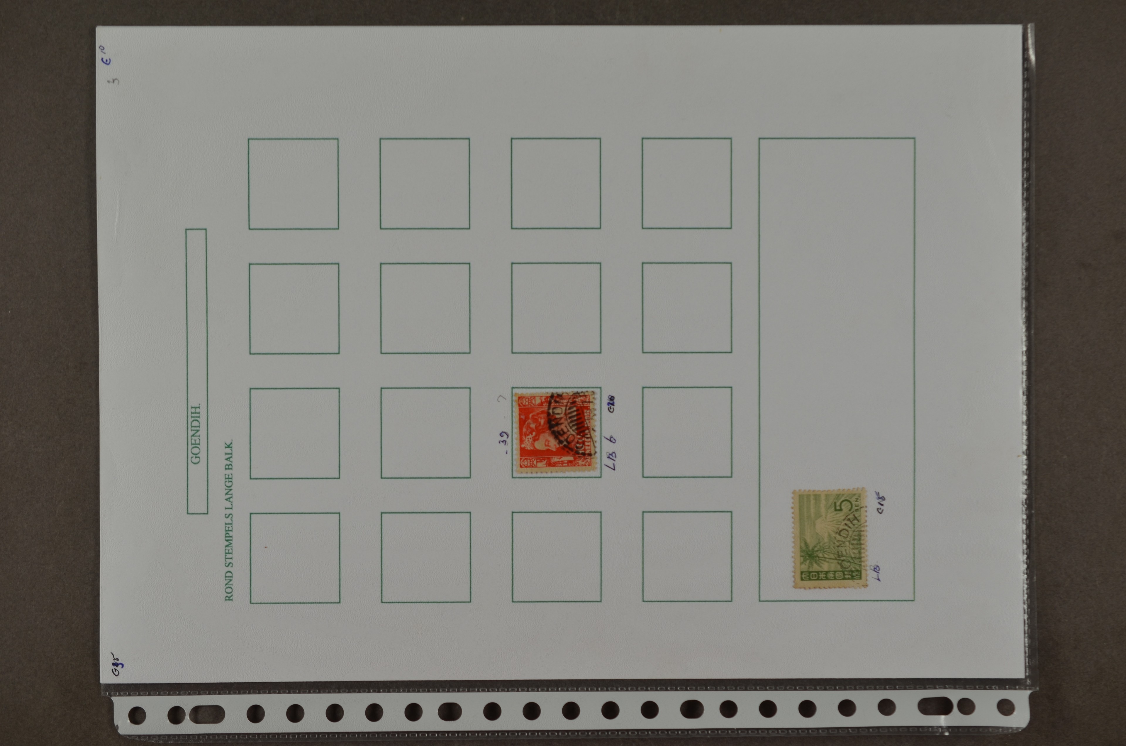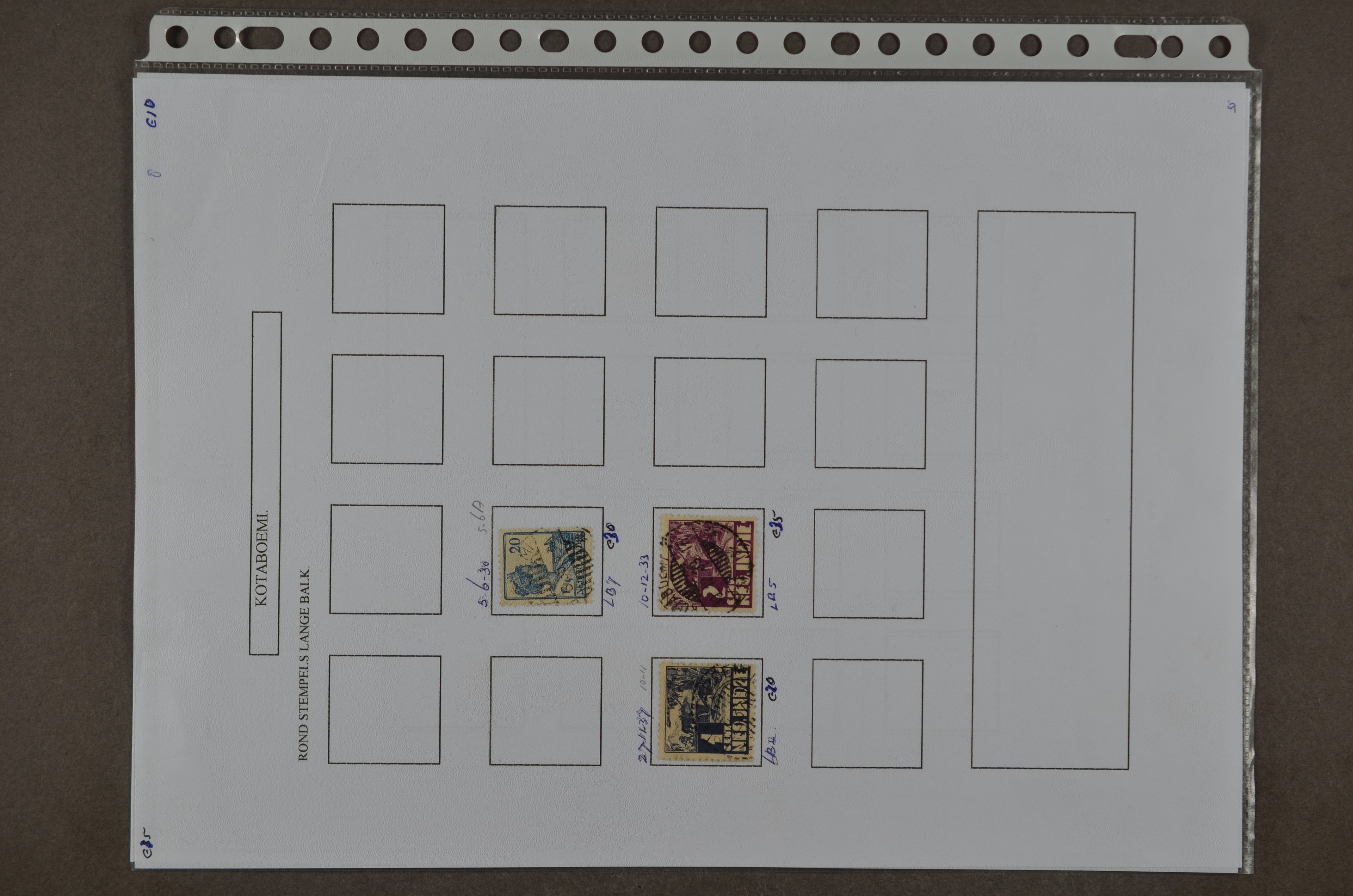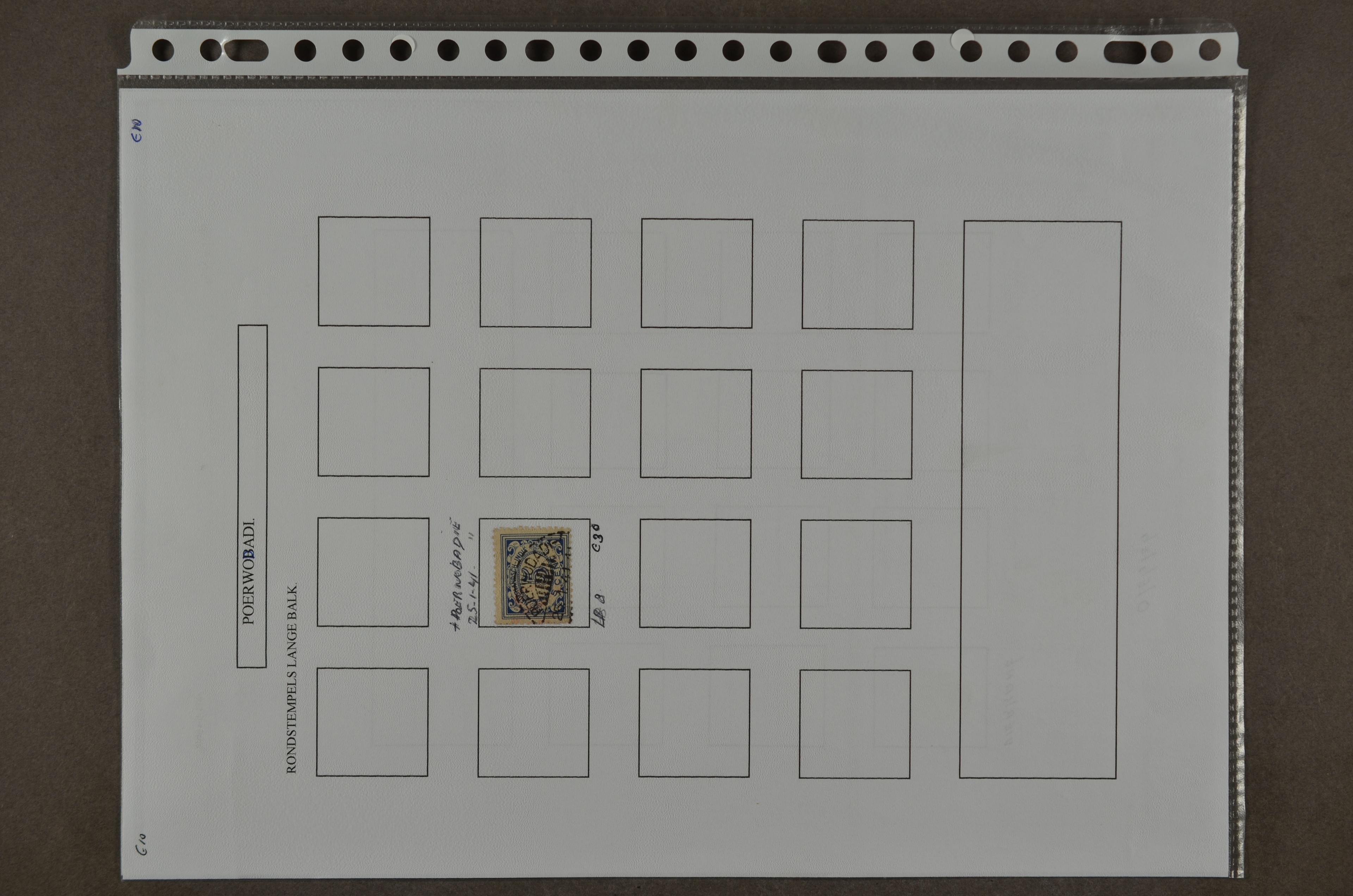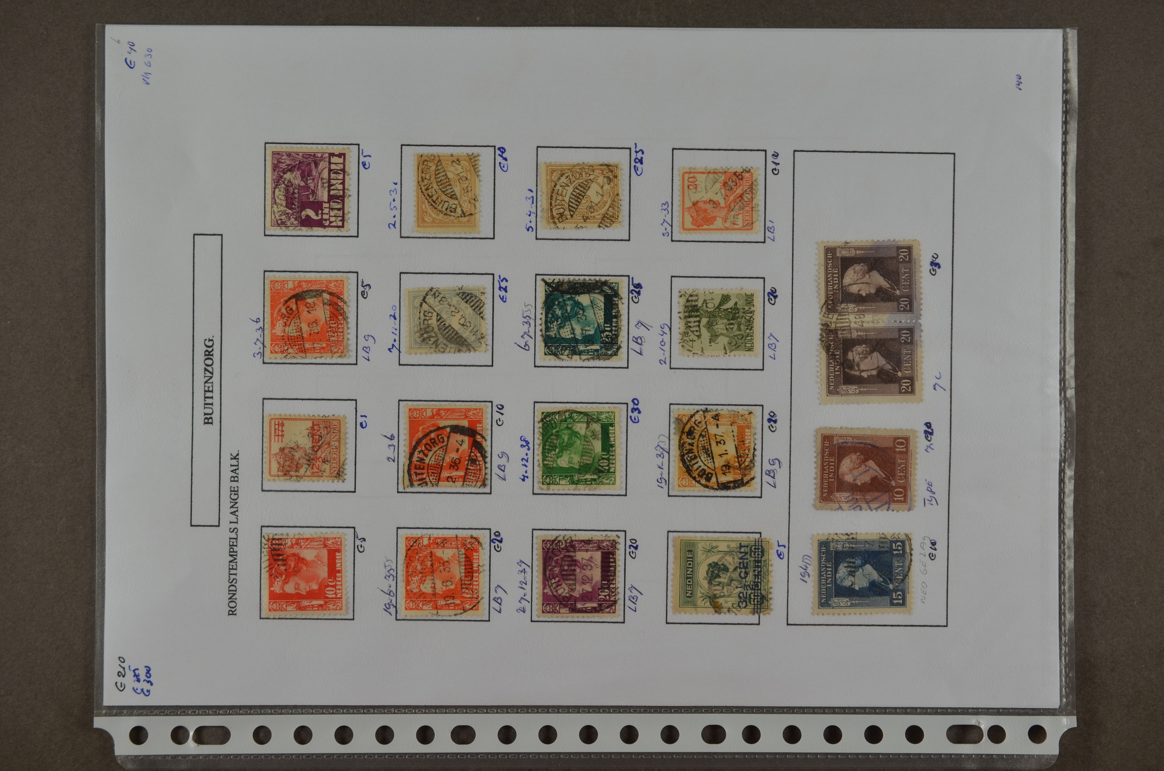 NED.- INDIË Langebalkstempels vanaf 1917, uitgebreide collectie met meerdere schaarse kantoren, verschillende typen per kantoor, veel mooie afstempelingen, ook andere typen als KB, PV1, PV2, LBnr, opgezet op bladen (w.o. door verzamelaar diverse foutief genoemde kantoornamen) in 8 ringbanden
