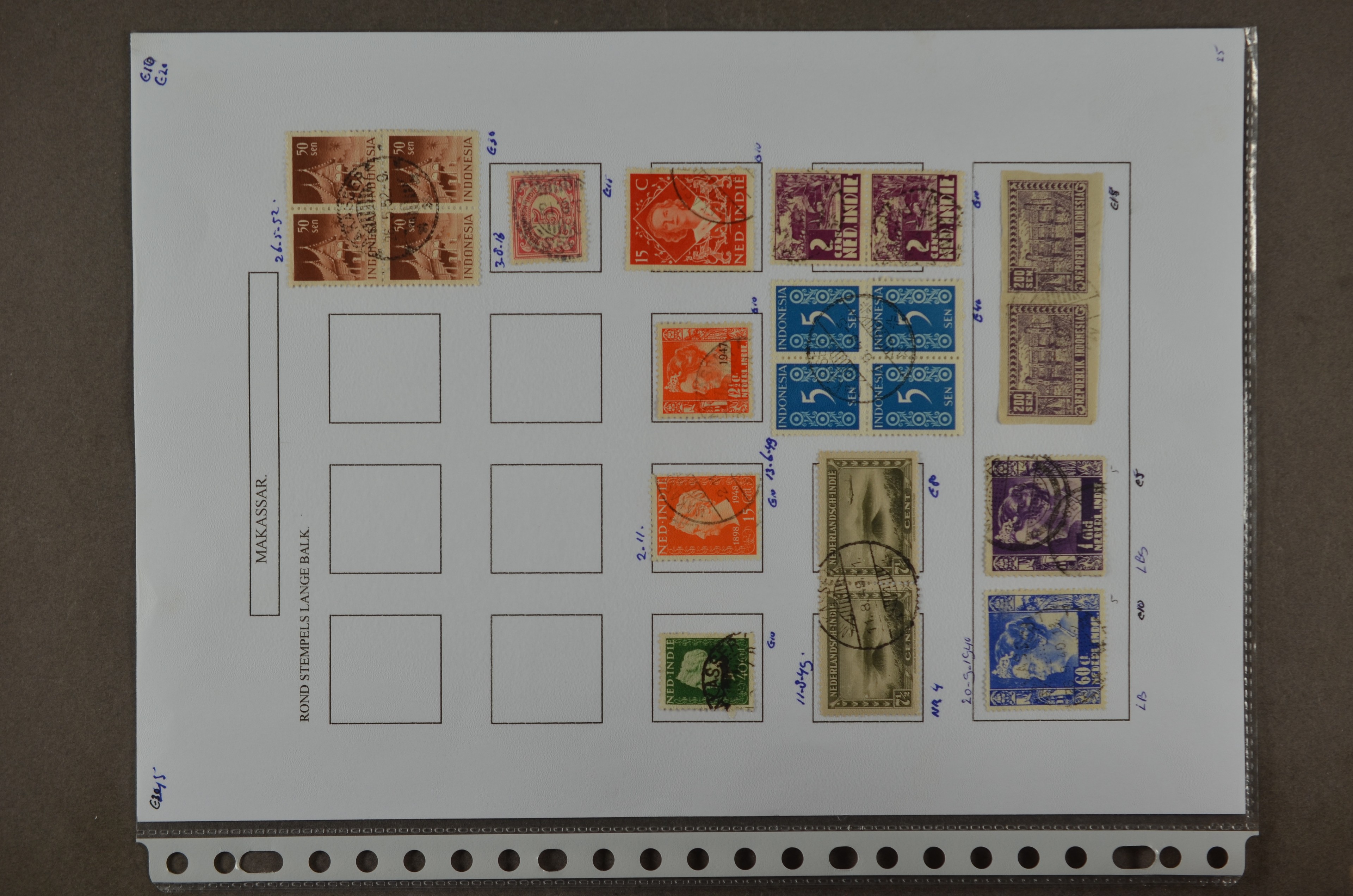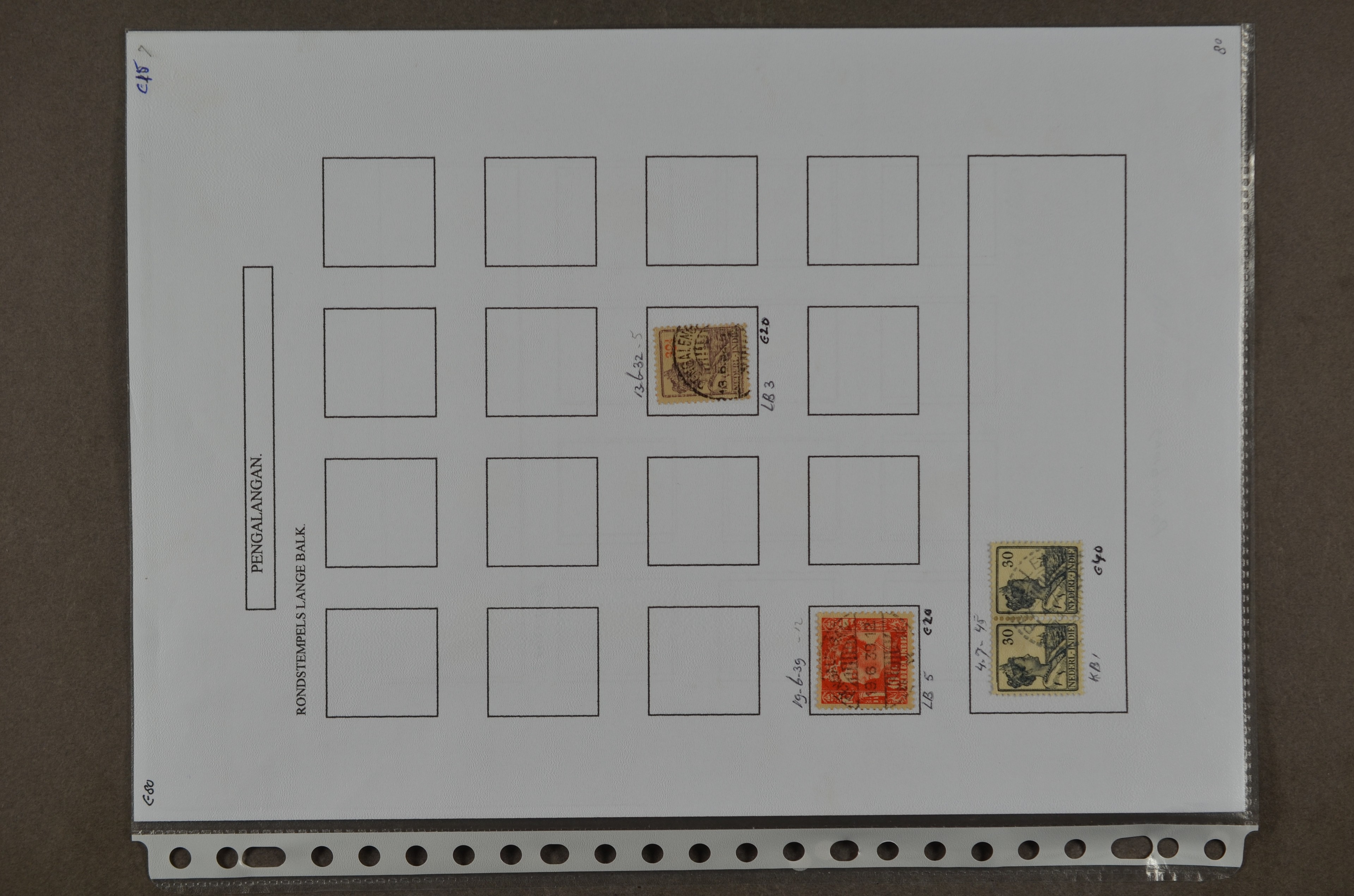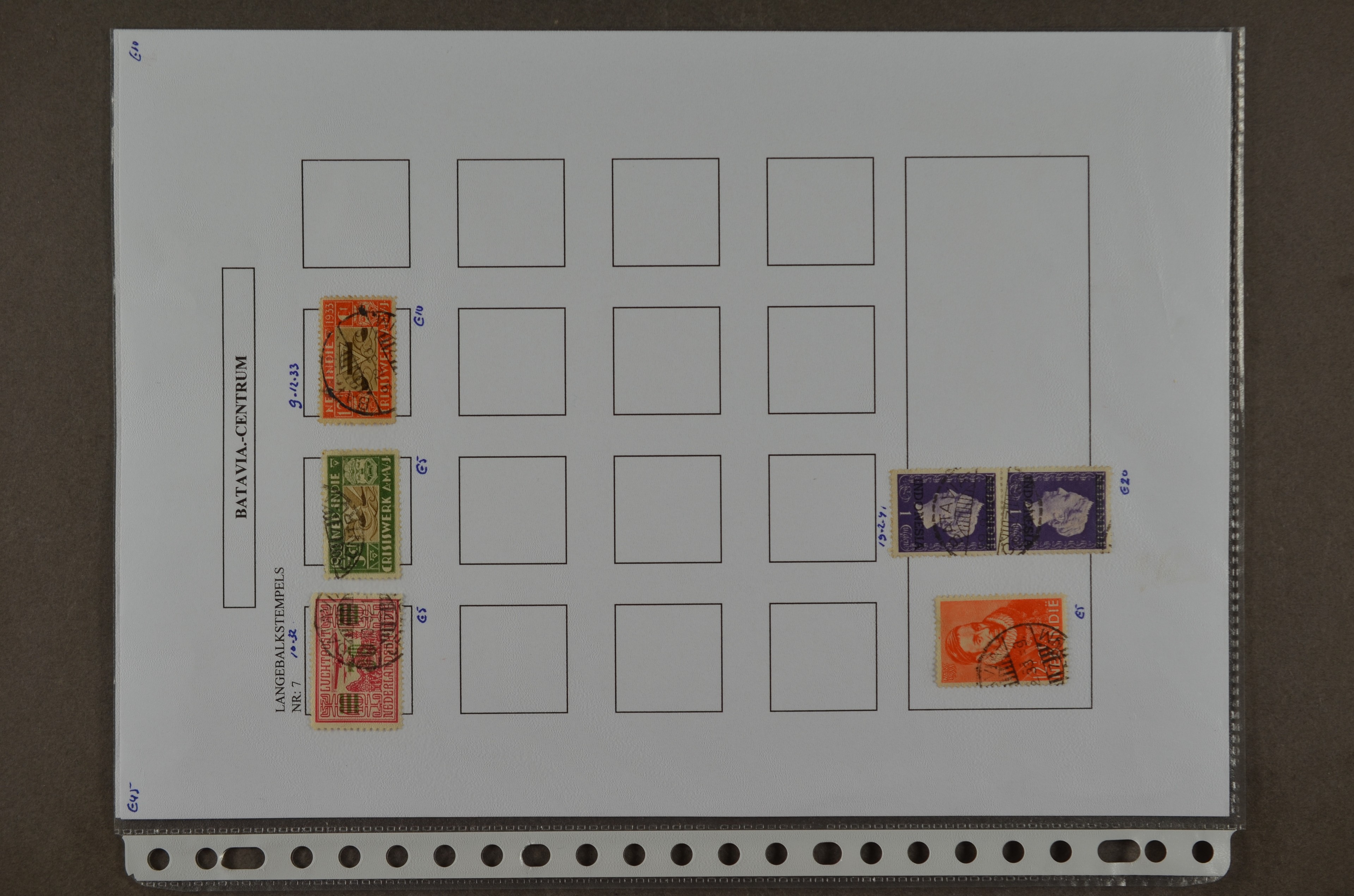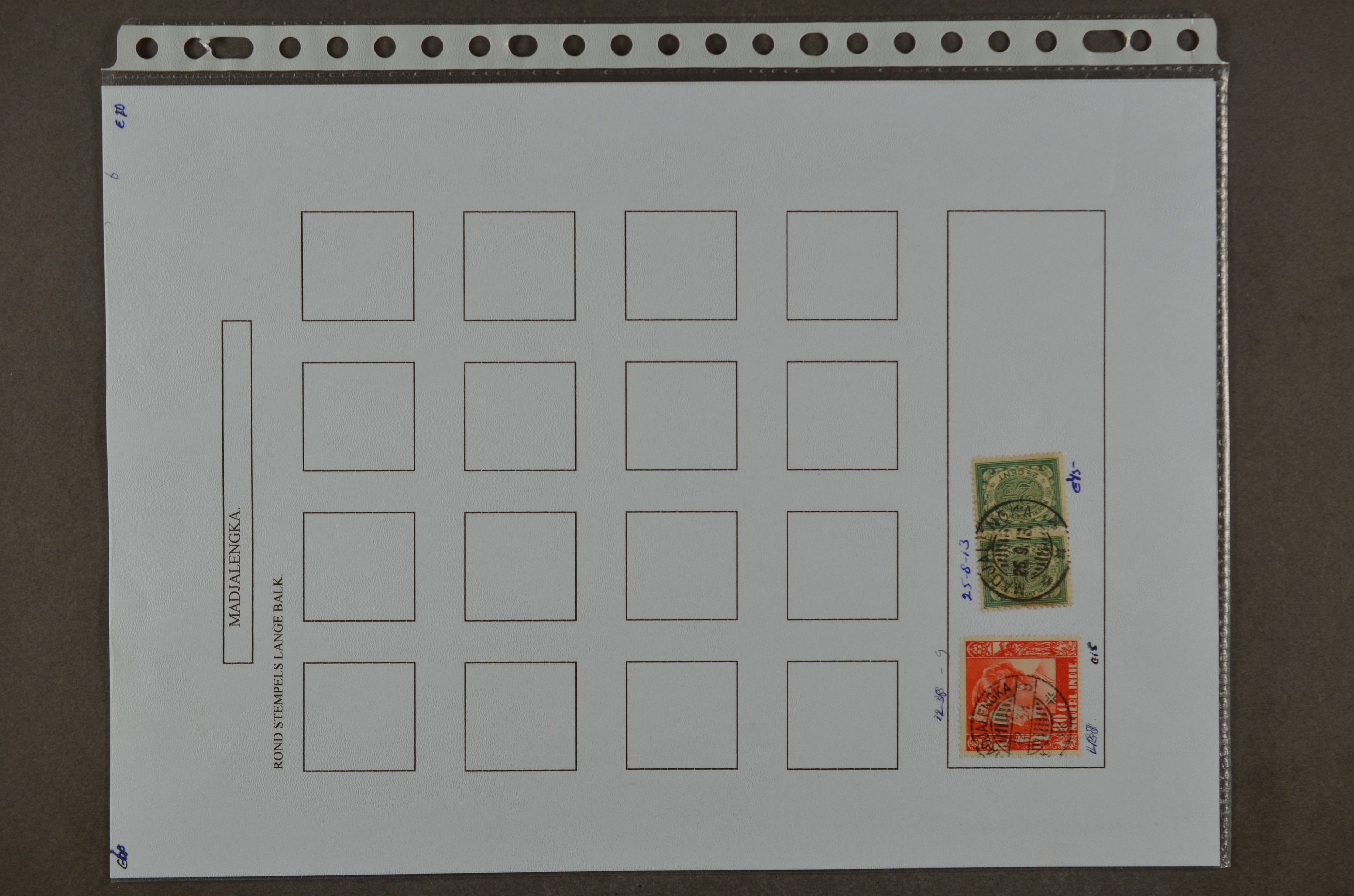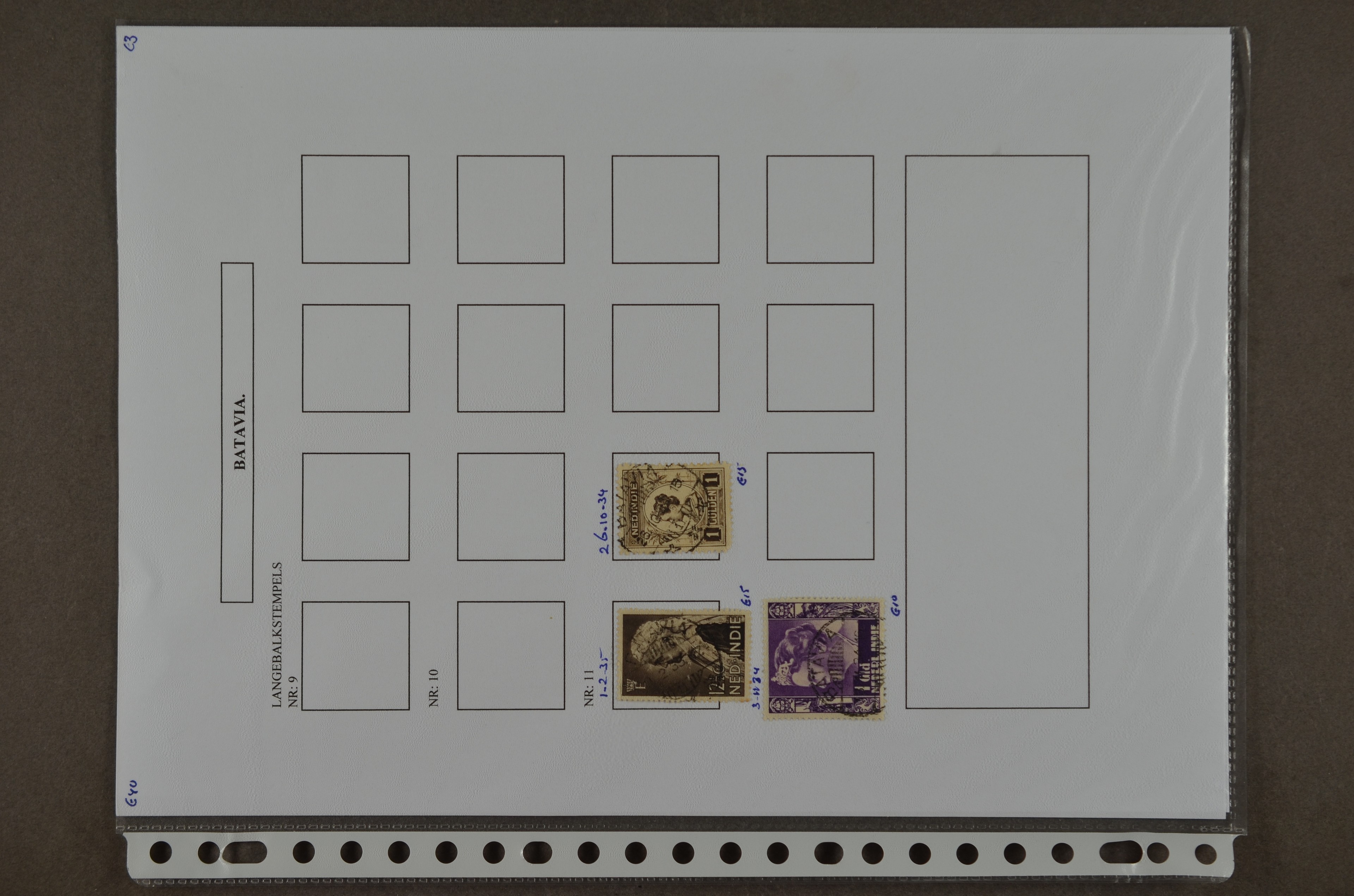 NED.- INDIË Langebalkstempels vanaf 1917, uitgebreide collectie met meerdere schaarse kantoren, verschillende typen per kantoor, veel mooie afstempelingen, ook andere typen als KB, PV1, PV2, LBnr, opgezet op bladen (w.o. door verzamelaar diverse foutief genoemde kantoornamen) in 8 ringbanden