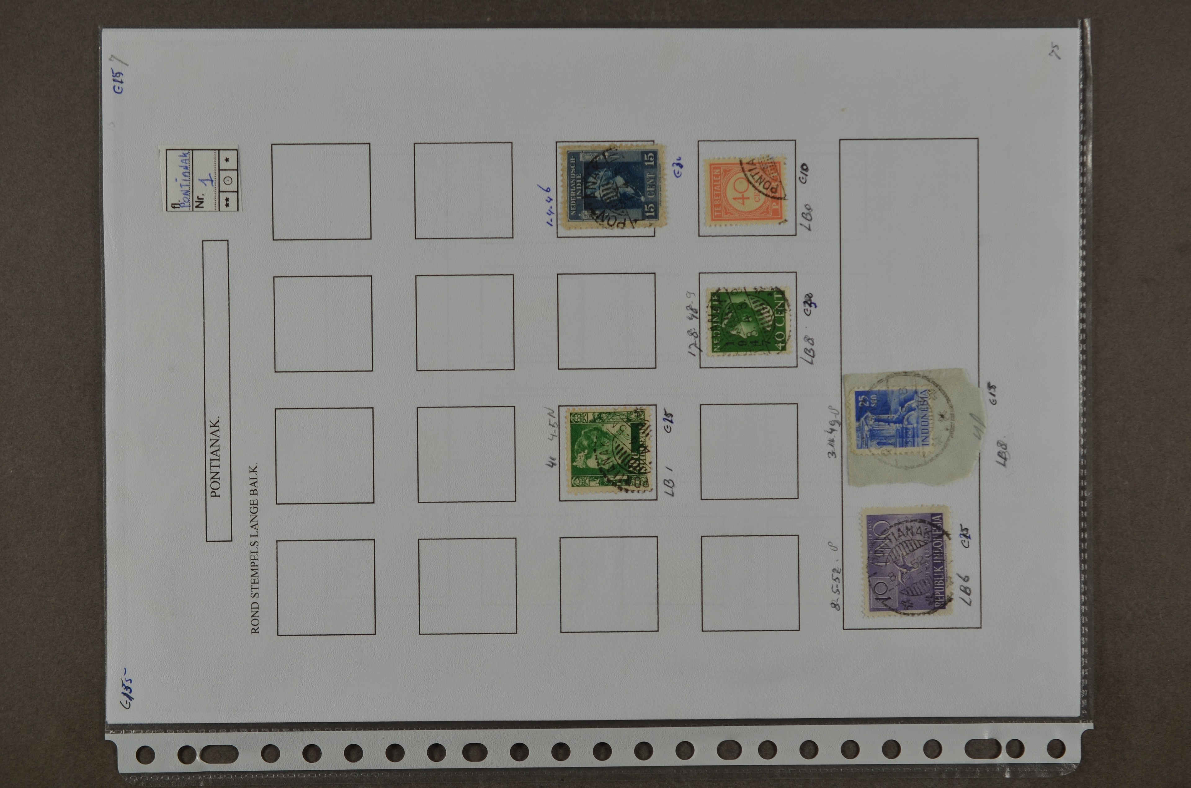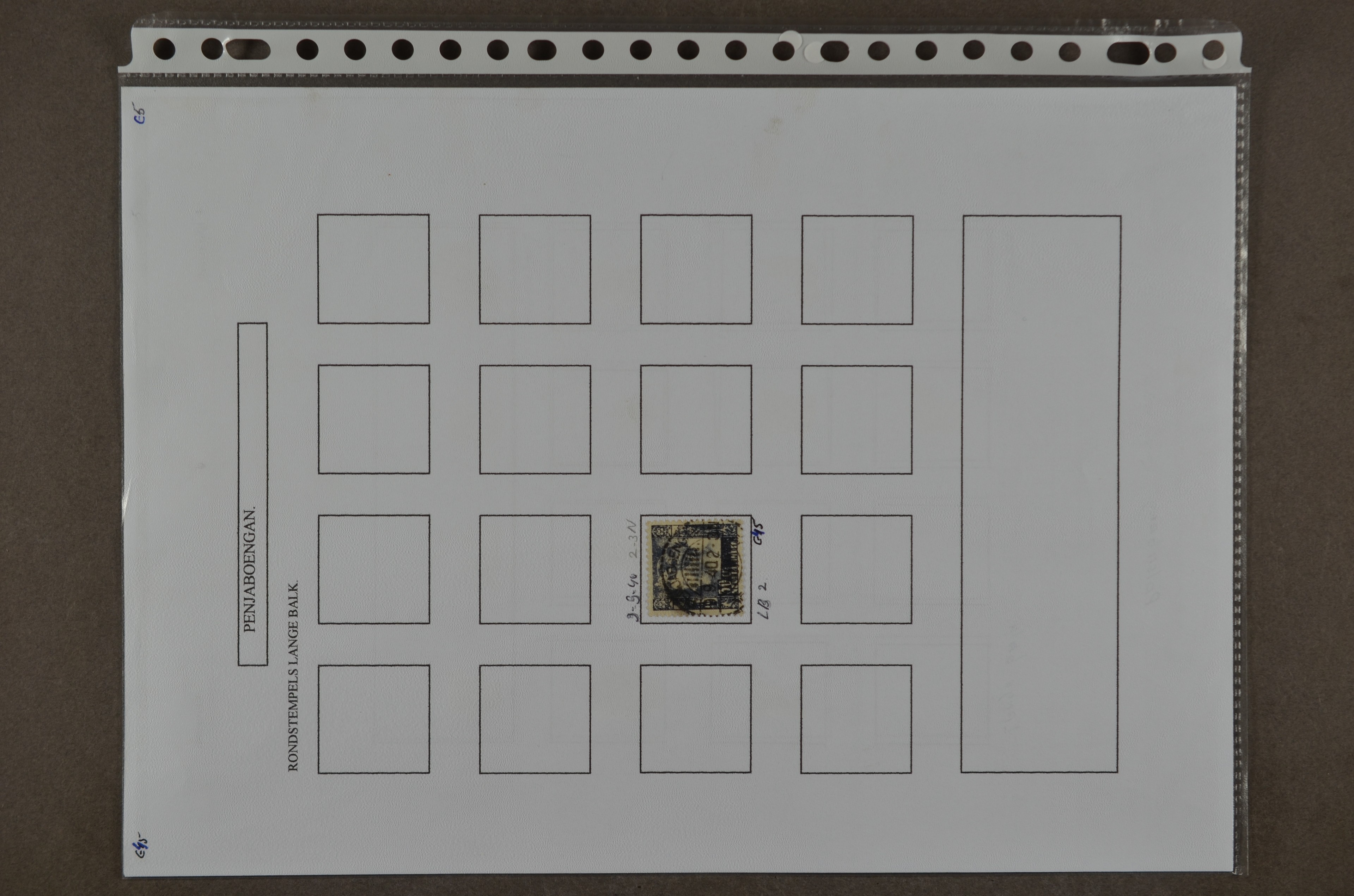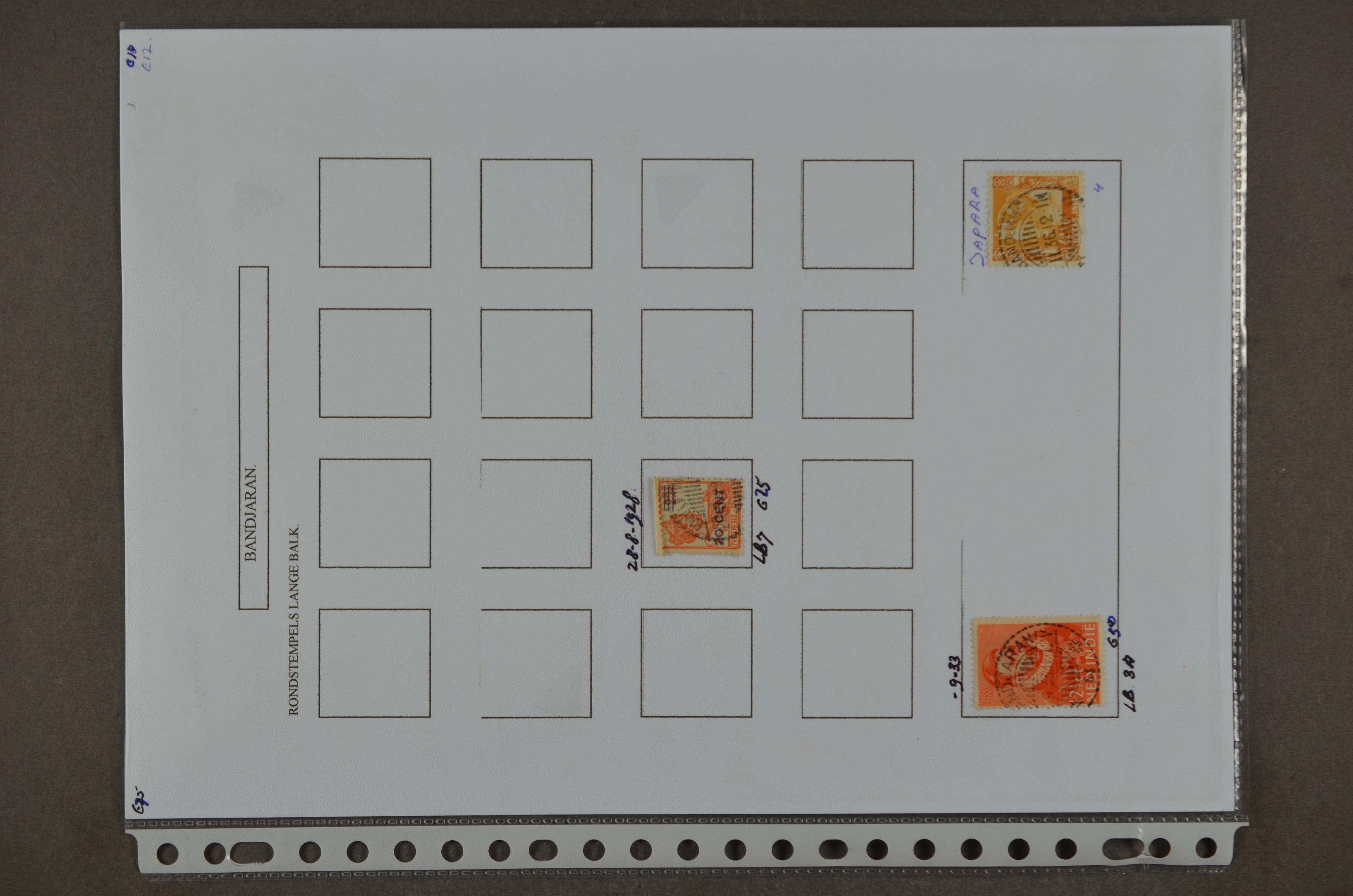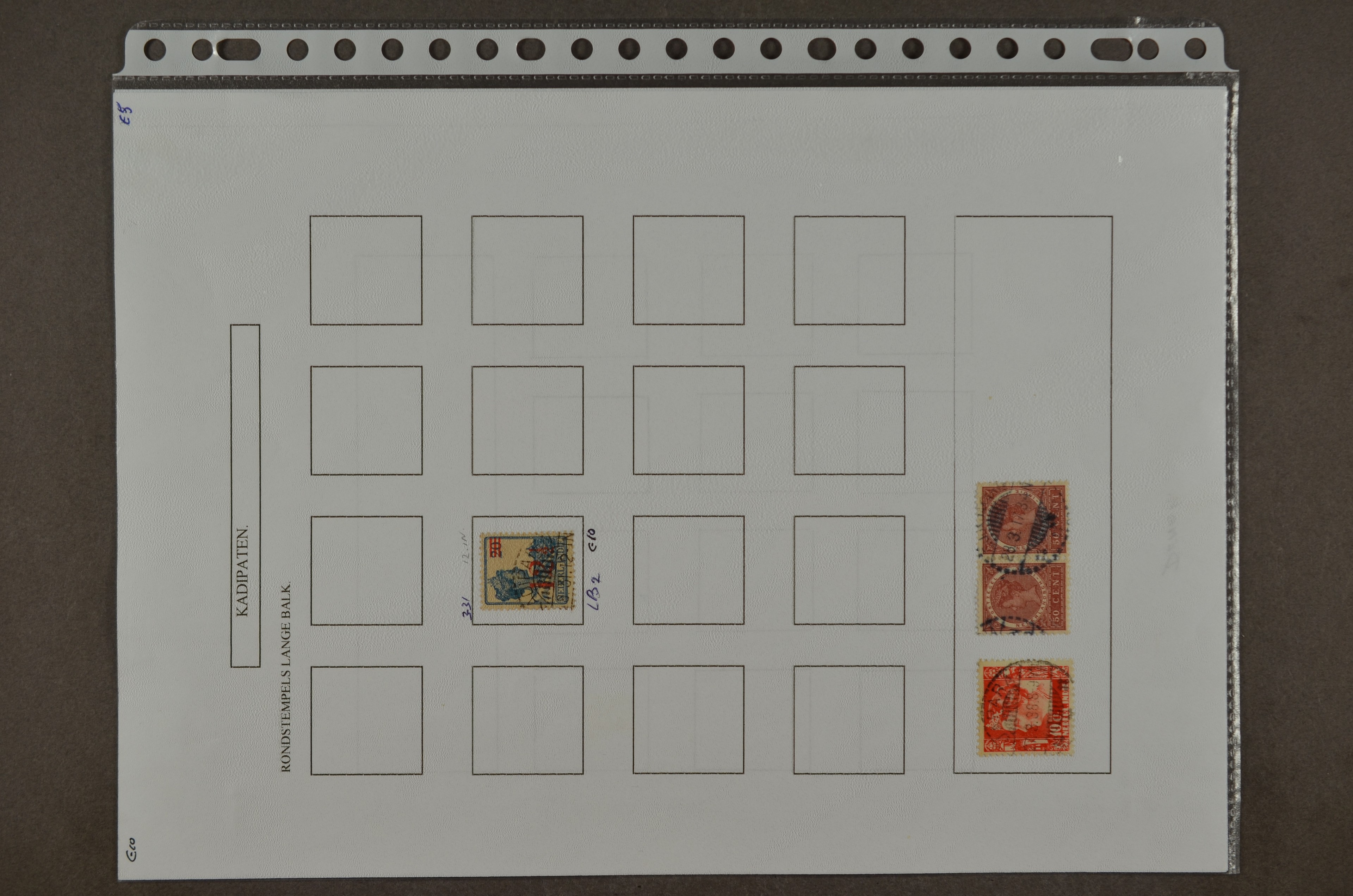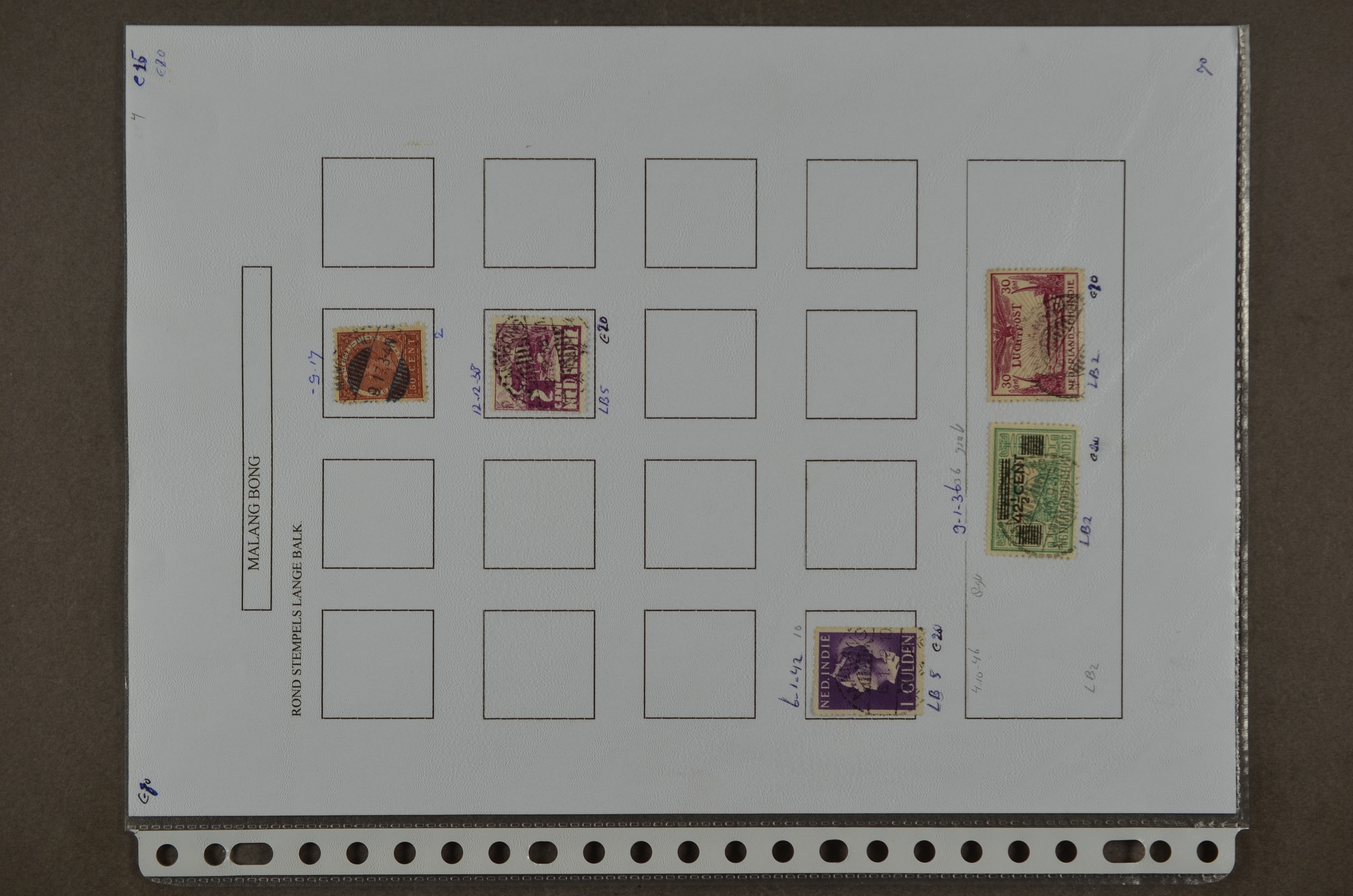 NED.- INDIË Langebalkstempels vanaf 1917, uitgebreide collectie met meerdere schaarse kantoren, verschillende typen per kantoor, veel mooie afstempelingen, ook andere typen als KB, PV1, PV2, LBnr, opgezet op bladen (w.o. door verzamelaar diverse foutief genoemde kantoornamen) in 8 ringbanden