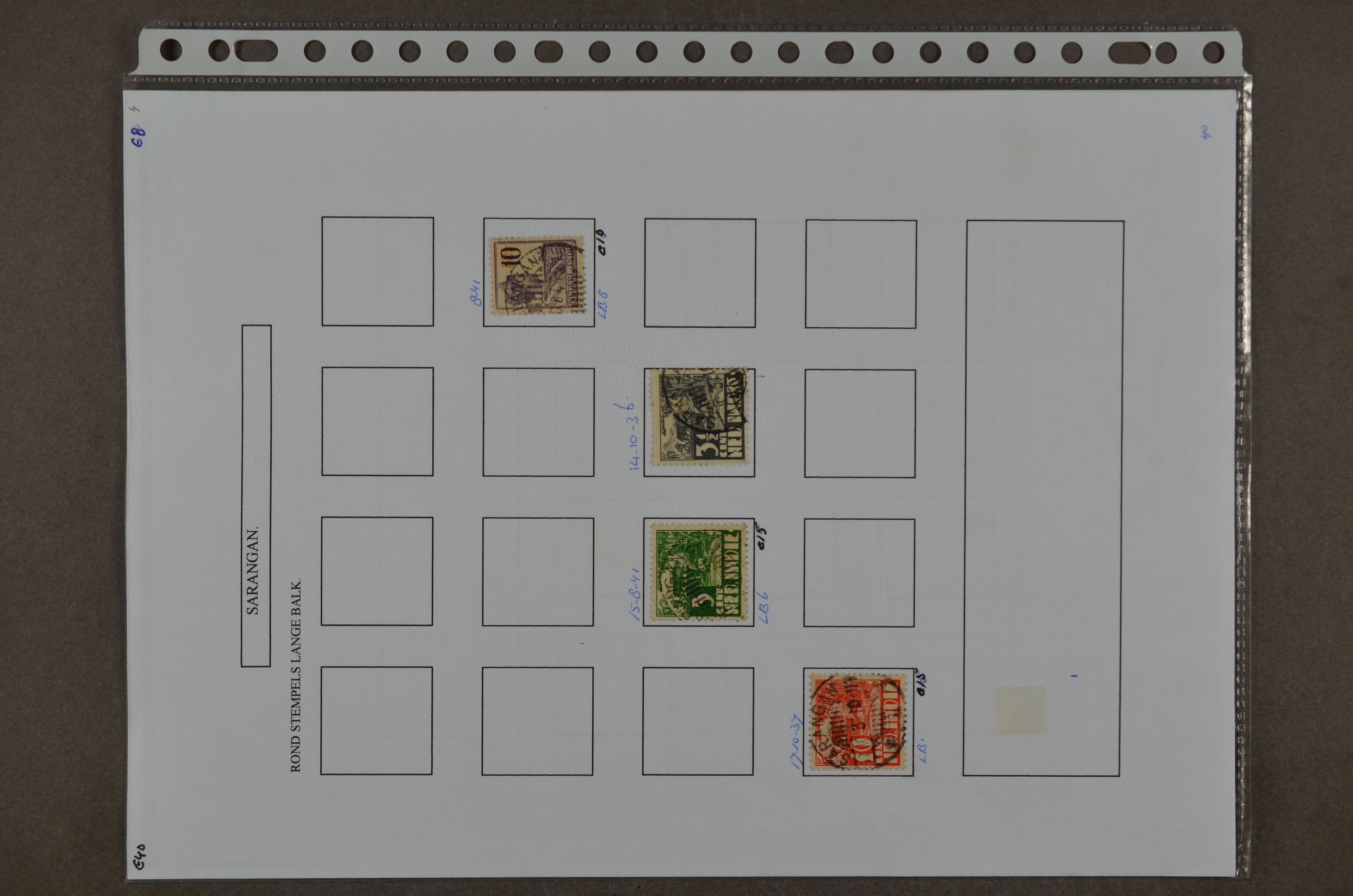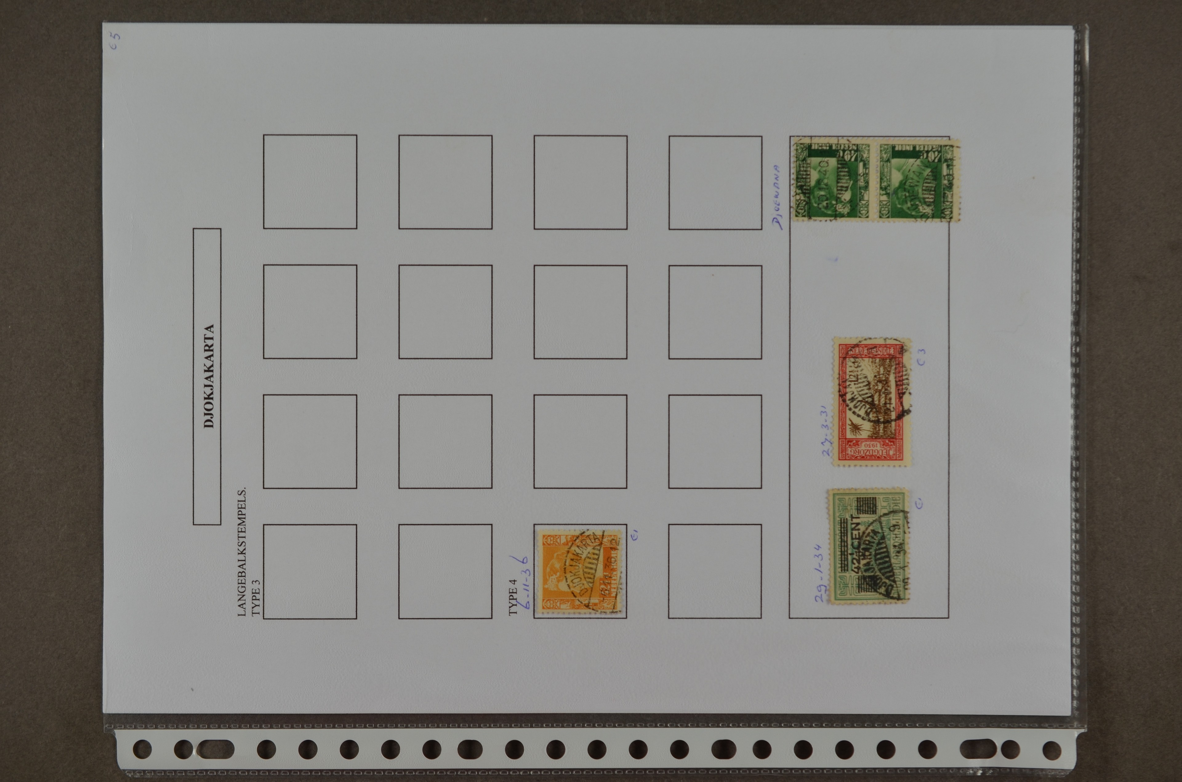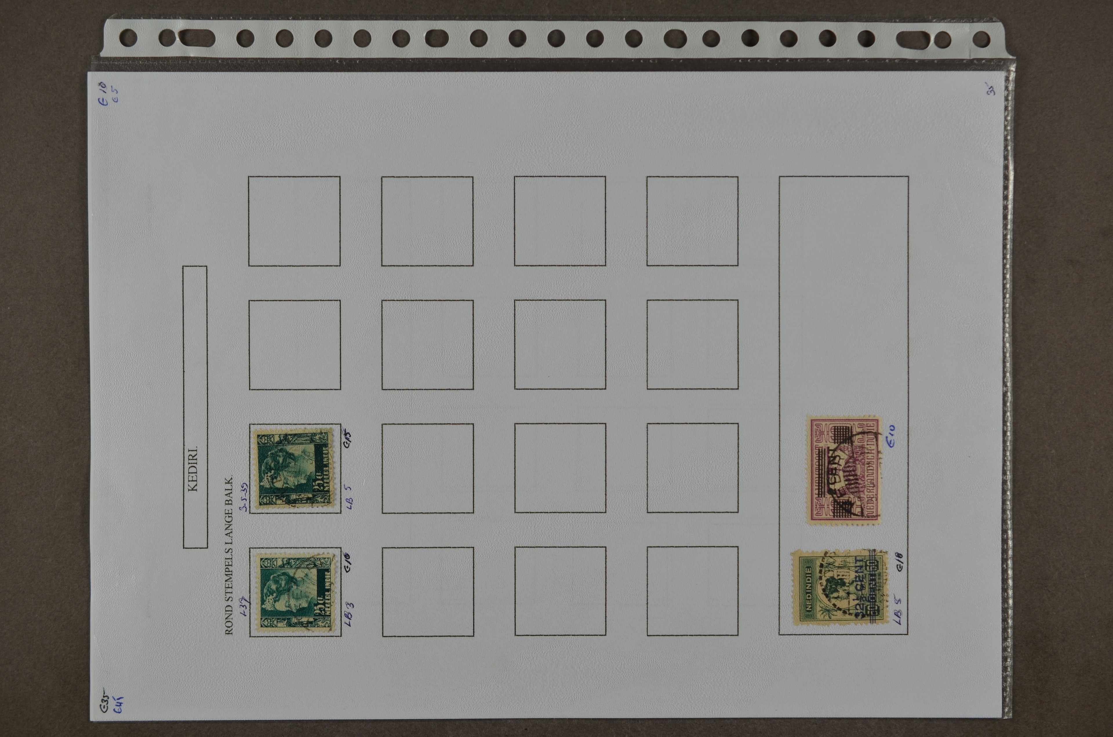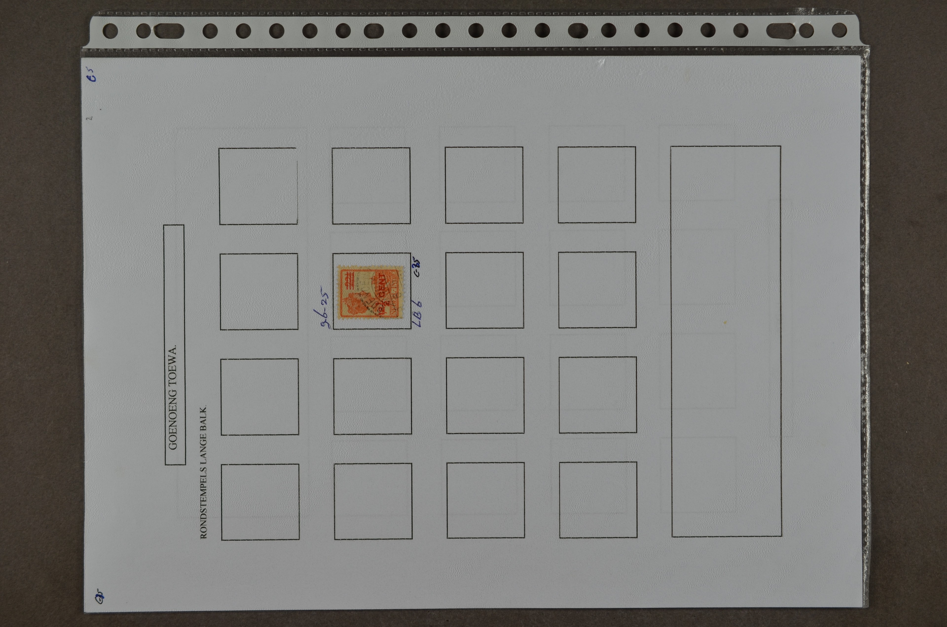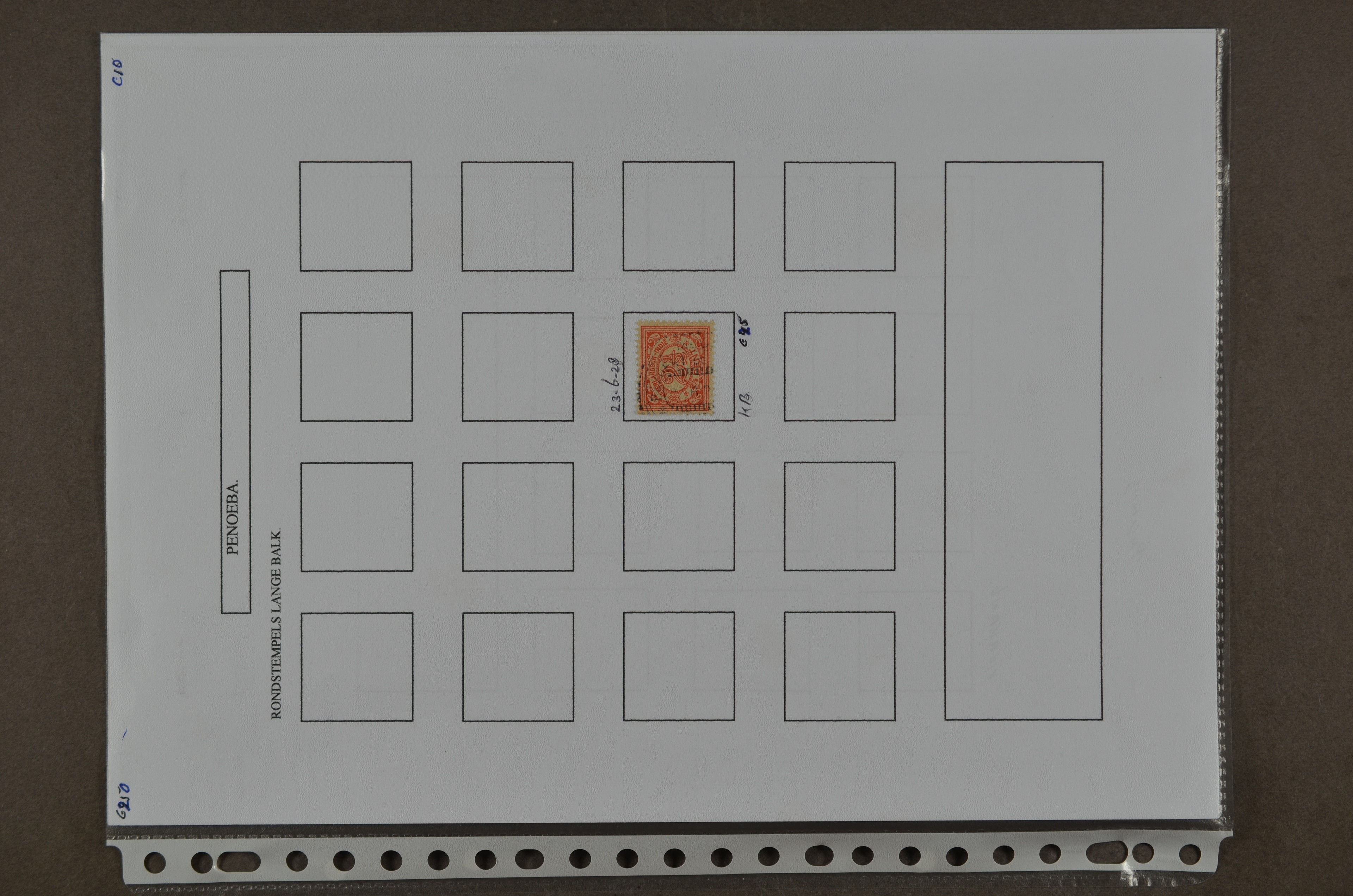 NED.- INDIË Langebalkstempels vanaf 1917, uitgebreide collectie met meerdere schaarse kantoren, verschillende typen per kantoor, veel mooie afstempelingen, ook andere typen als KB, PV1, PV2, LBnr, opgezet op bladen (w.o. door verzamelaar diverse foutief genoemde kantoornamen) in 8 ringbanden
