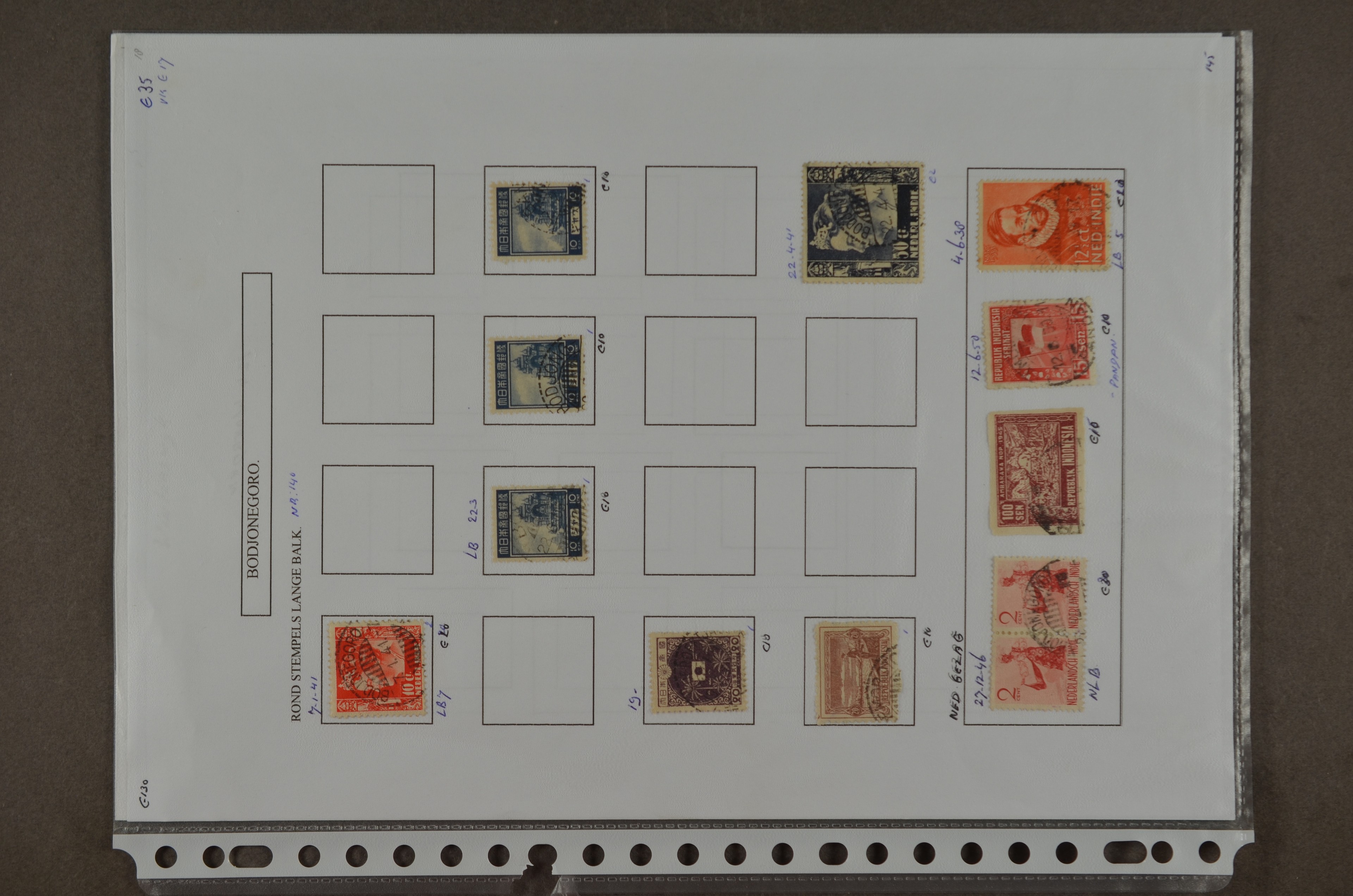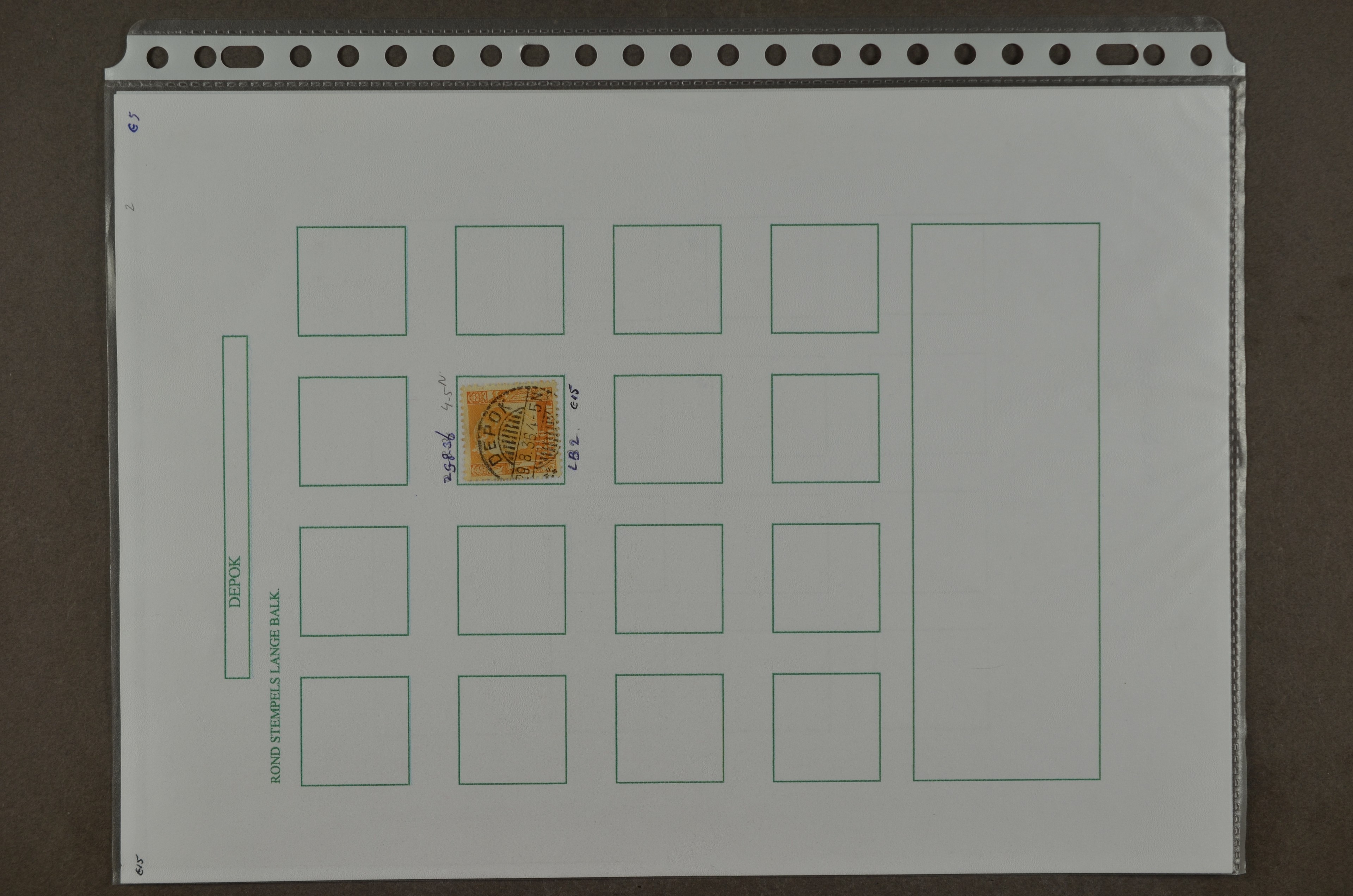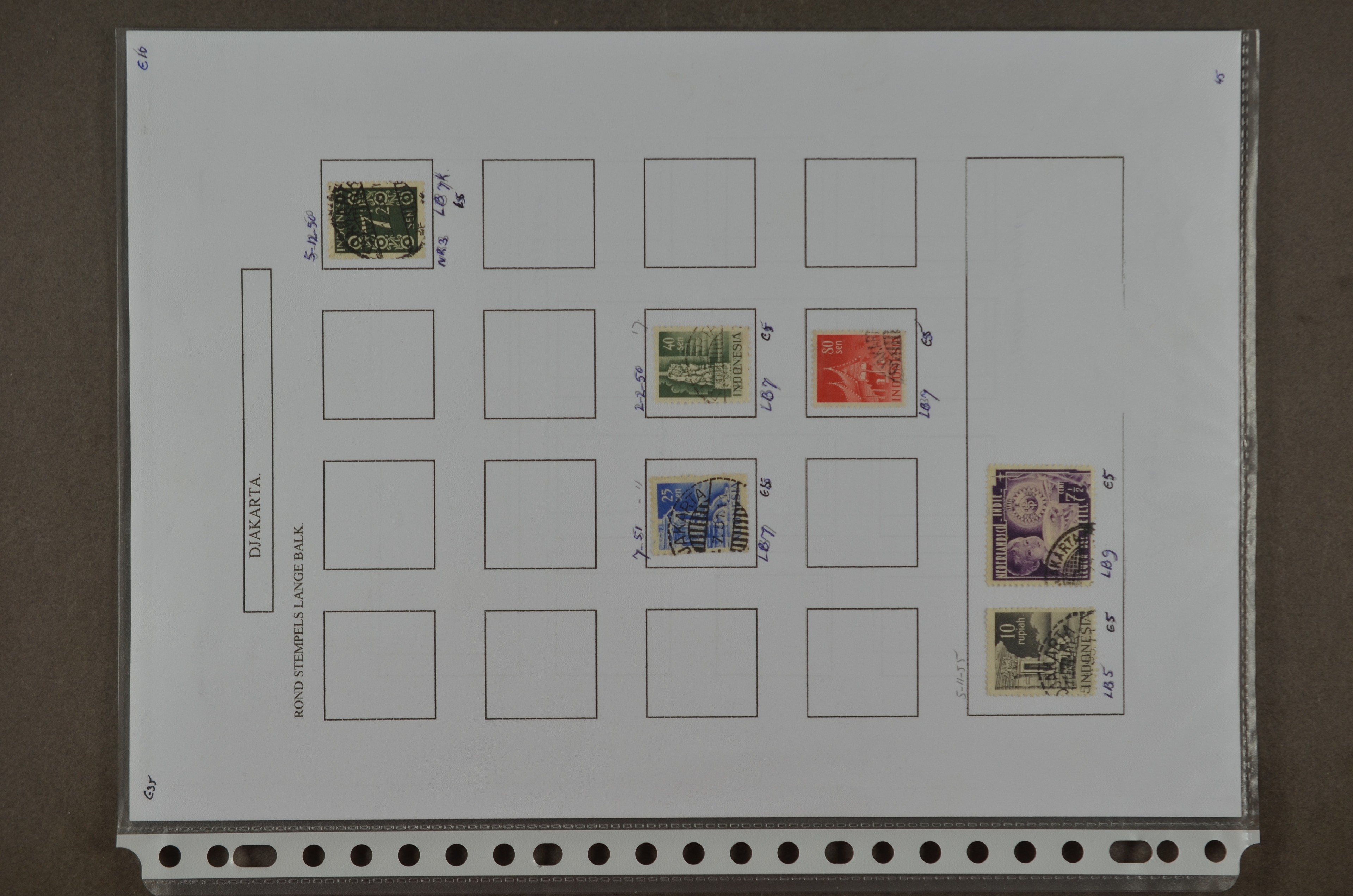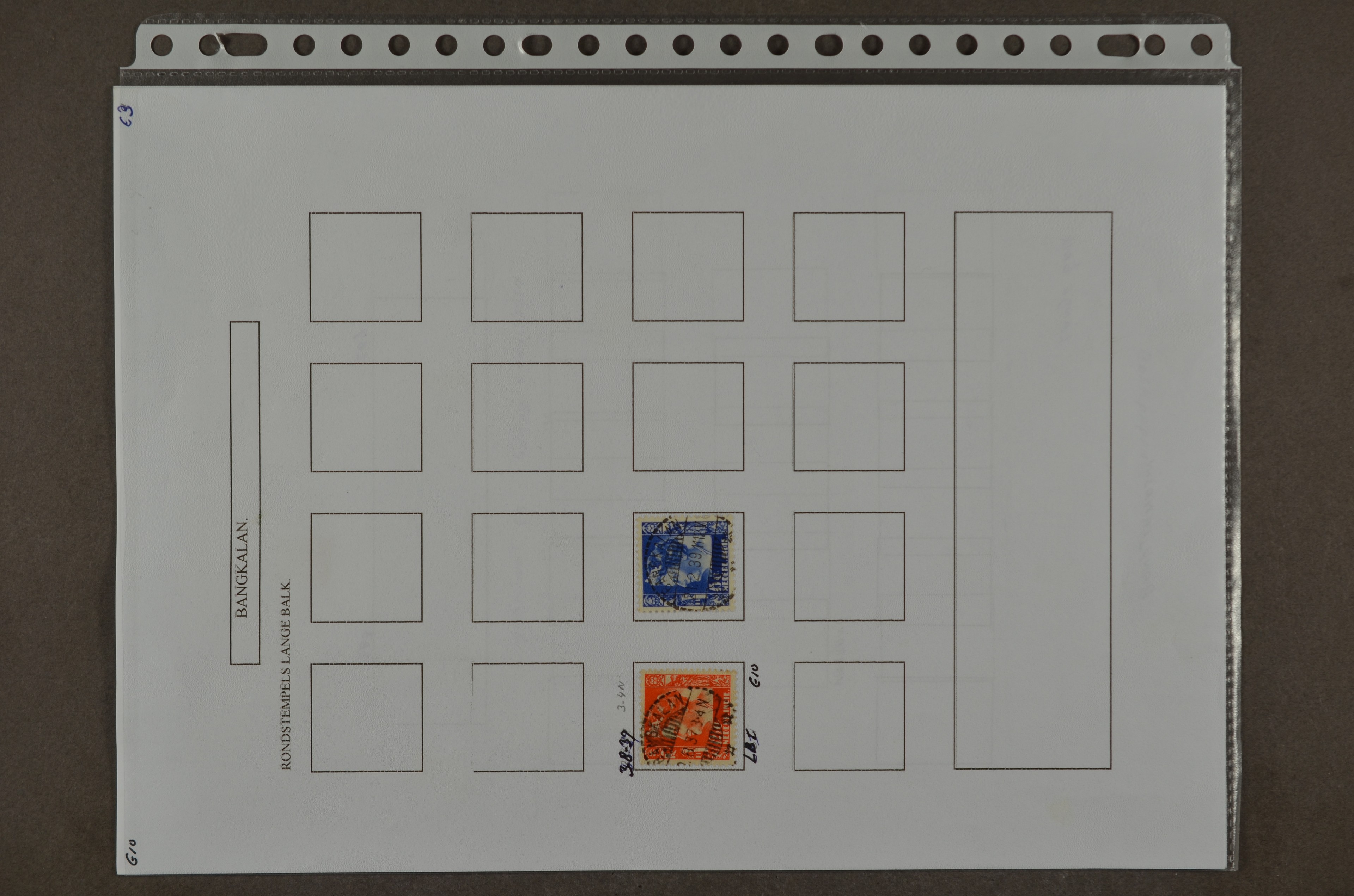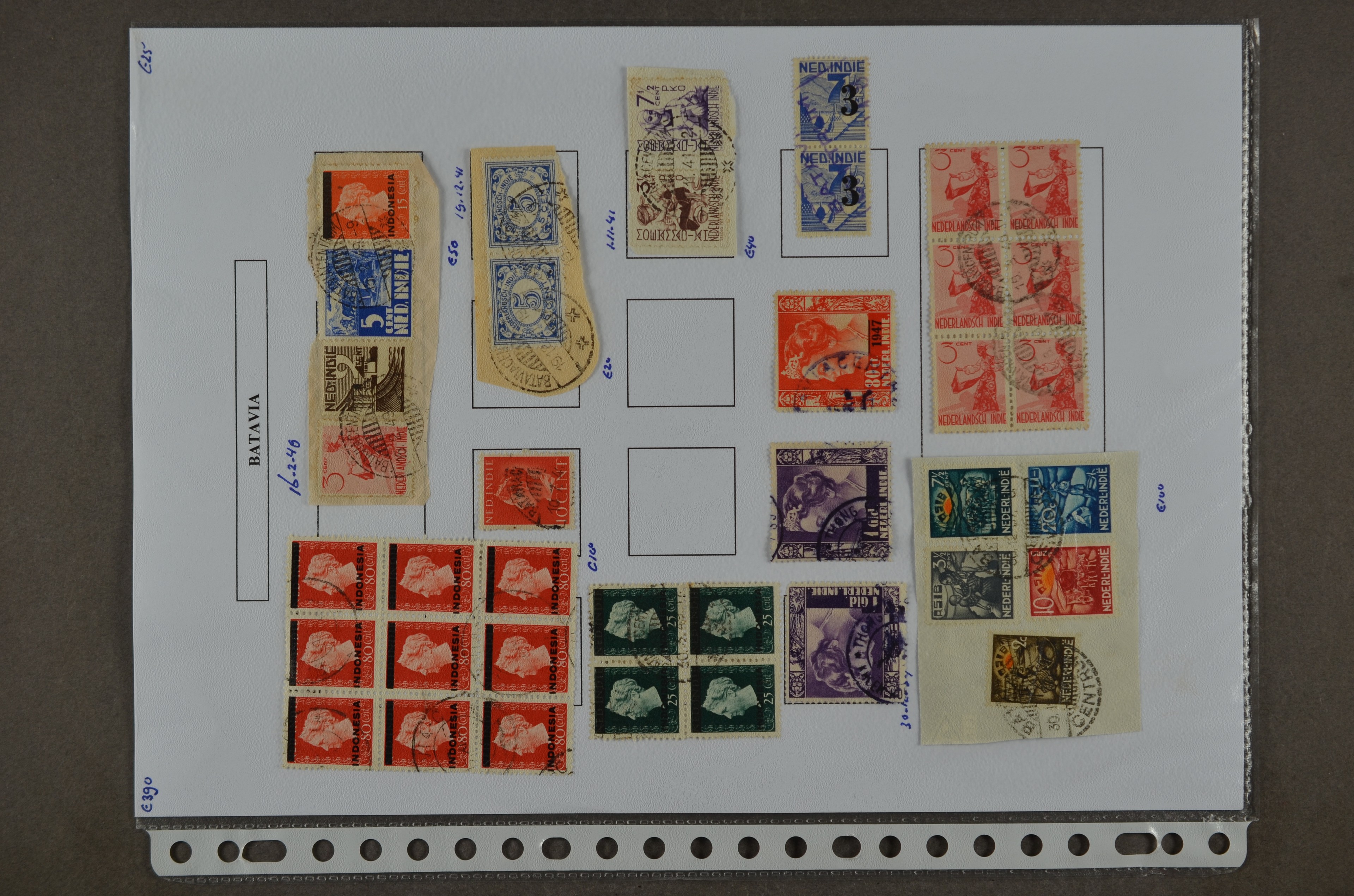 NED.- INDIË Langebalkstempels vanaf 1917, uitgebreide collectie met meerdere schaarse kantoren, verschillende typen per kantoor, veel mooie afstempelingen, ook andere typen als KB, PV1, PV2, LBnr, opgezet op bladen (w.o. door verzamelaar diverse foutief genoemde kantoornamen) in 8 ringbanden