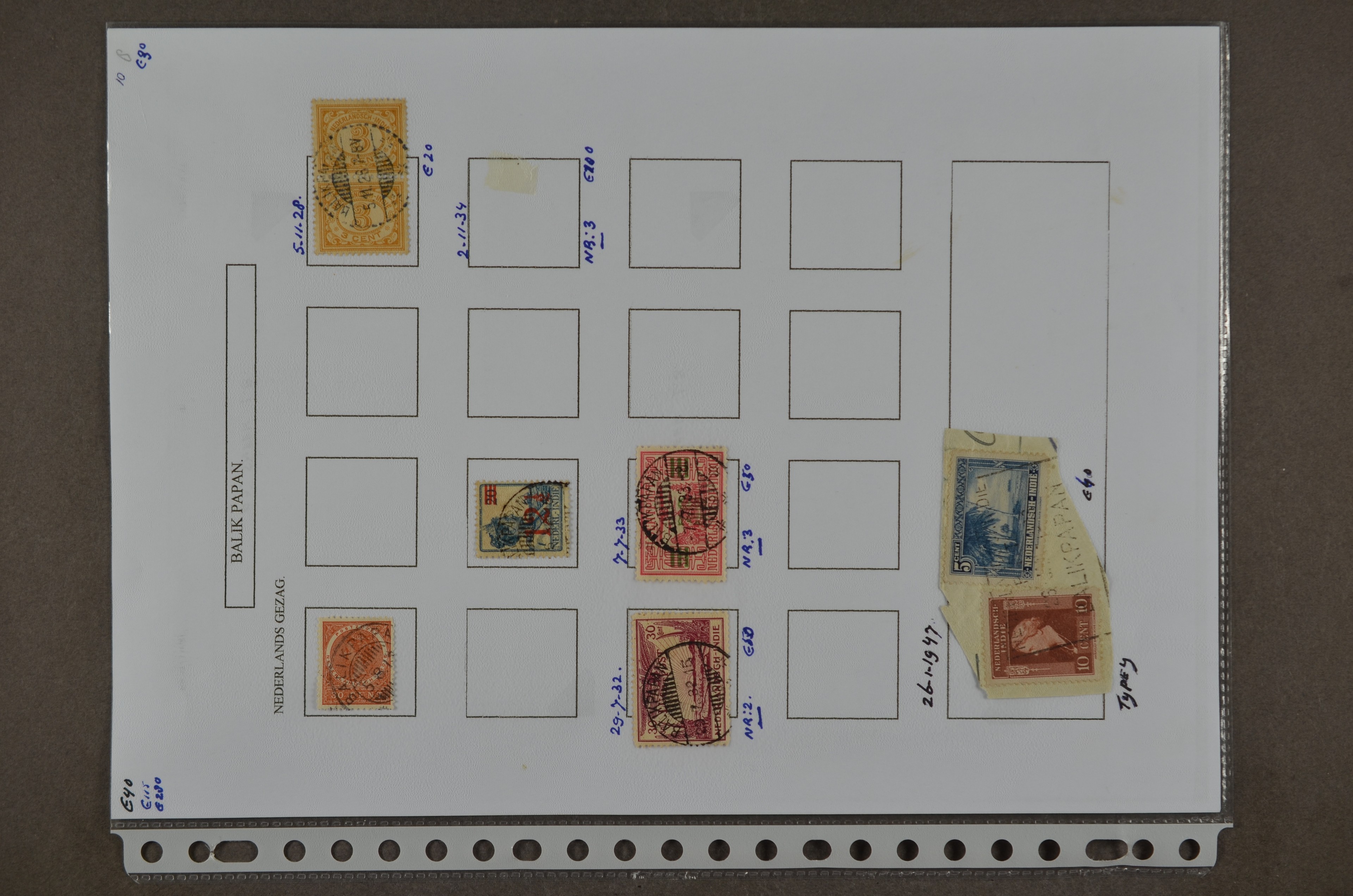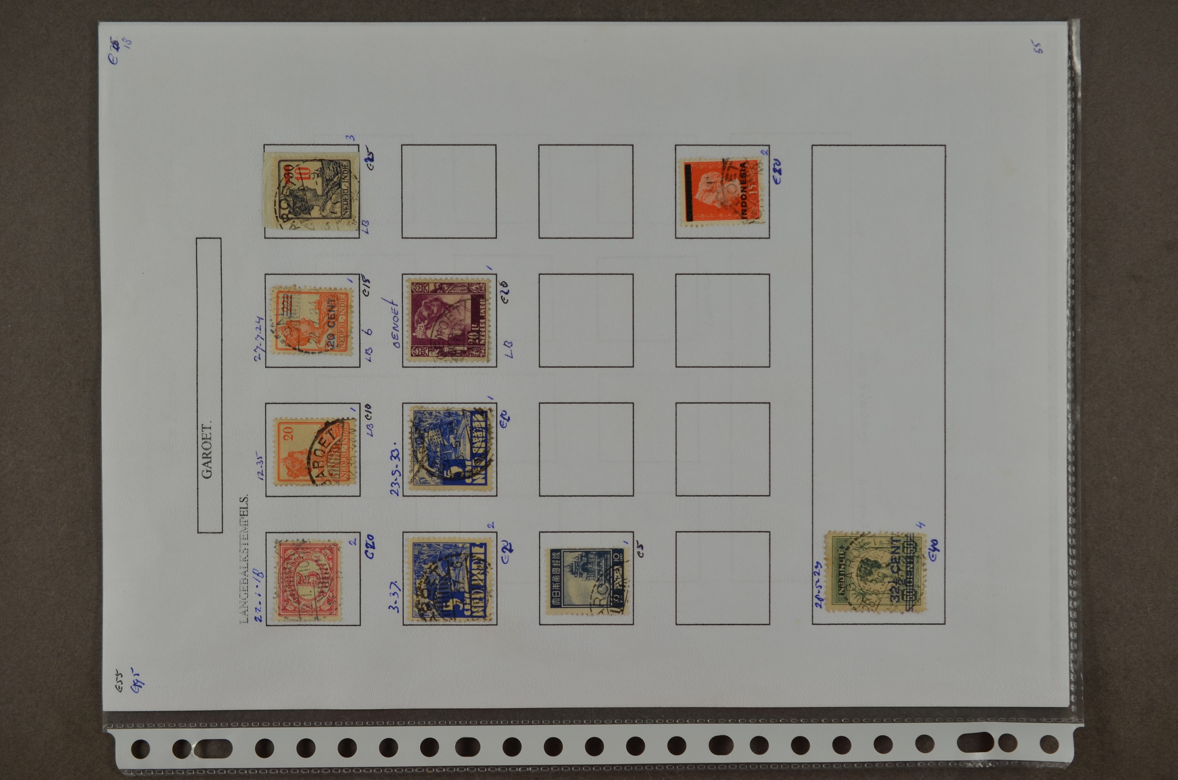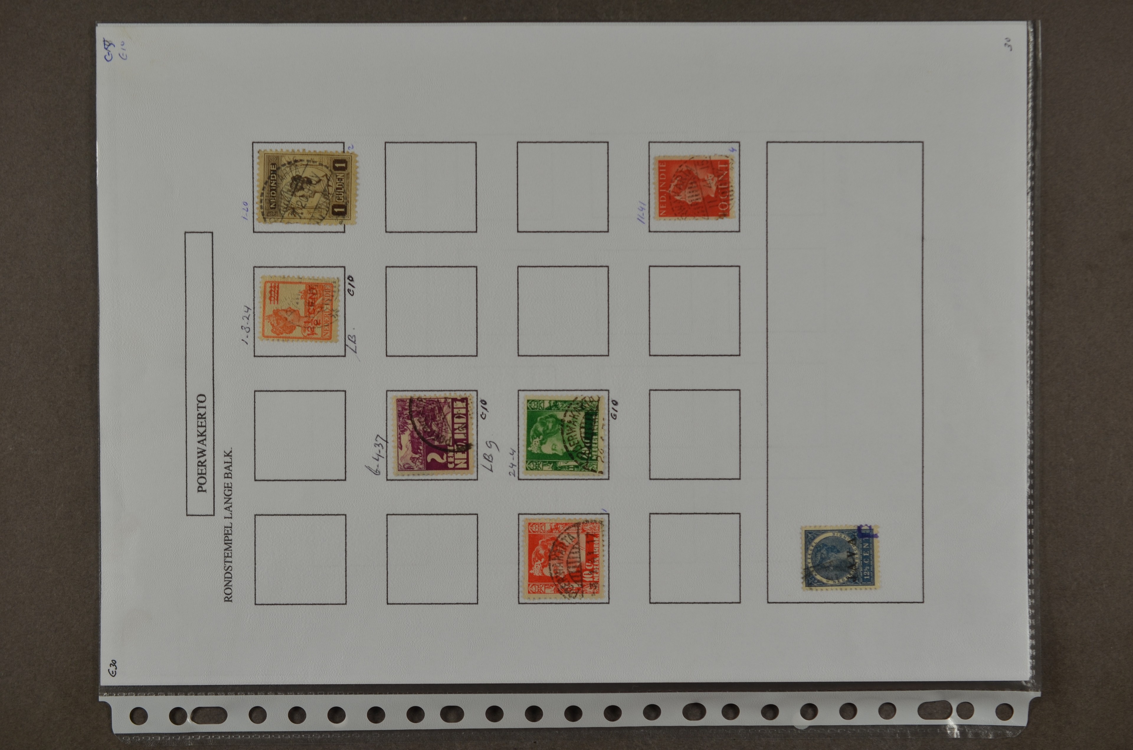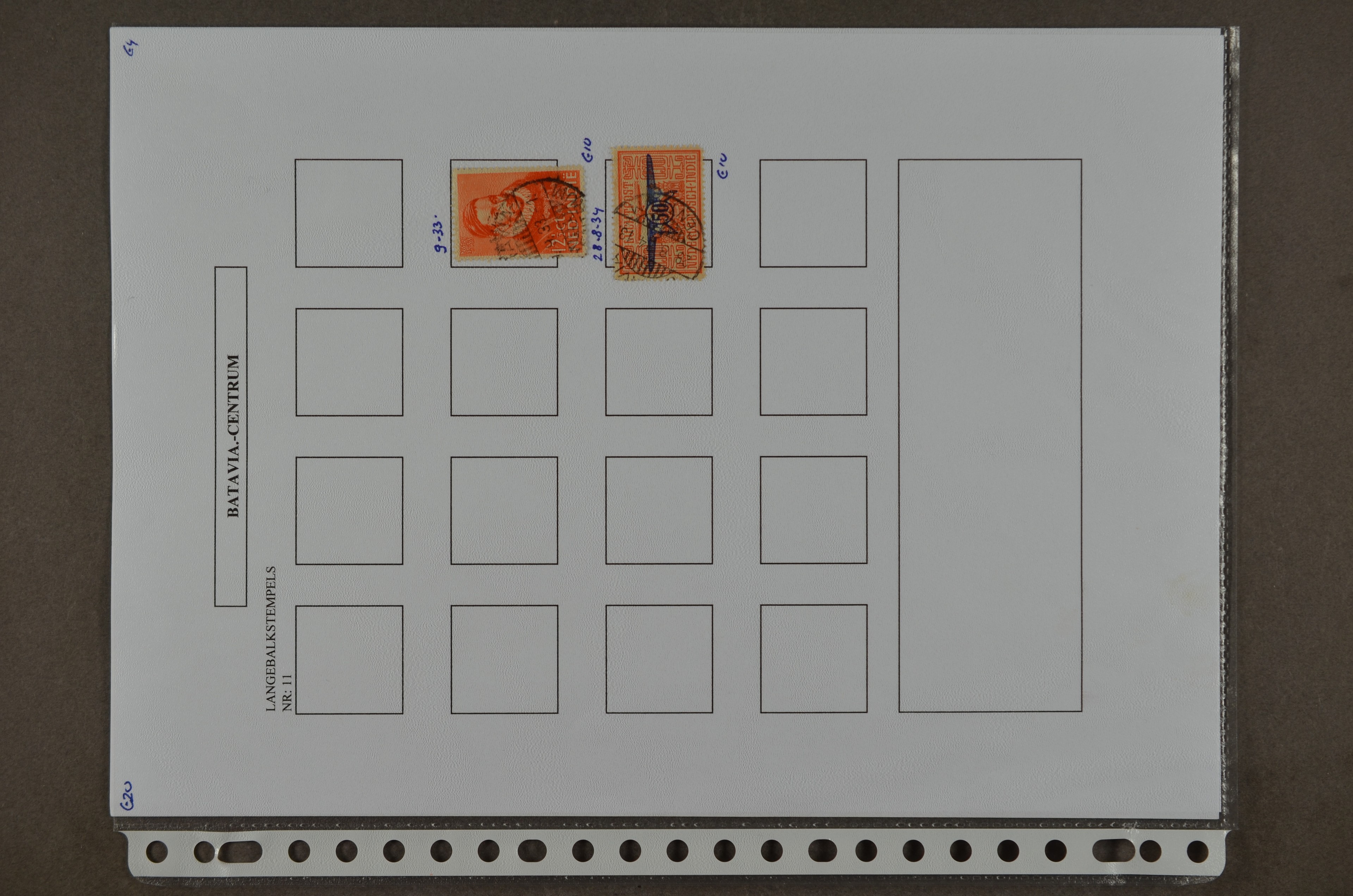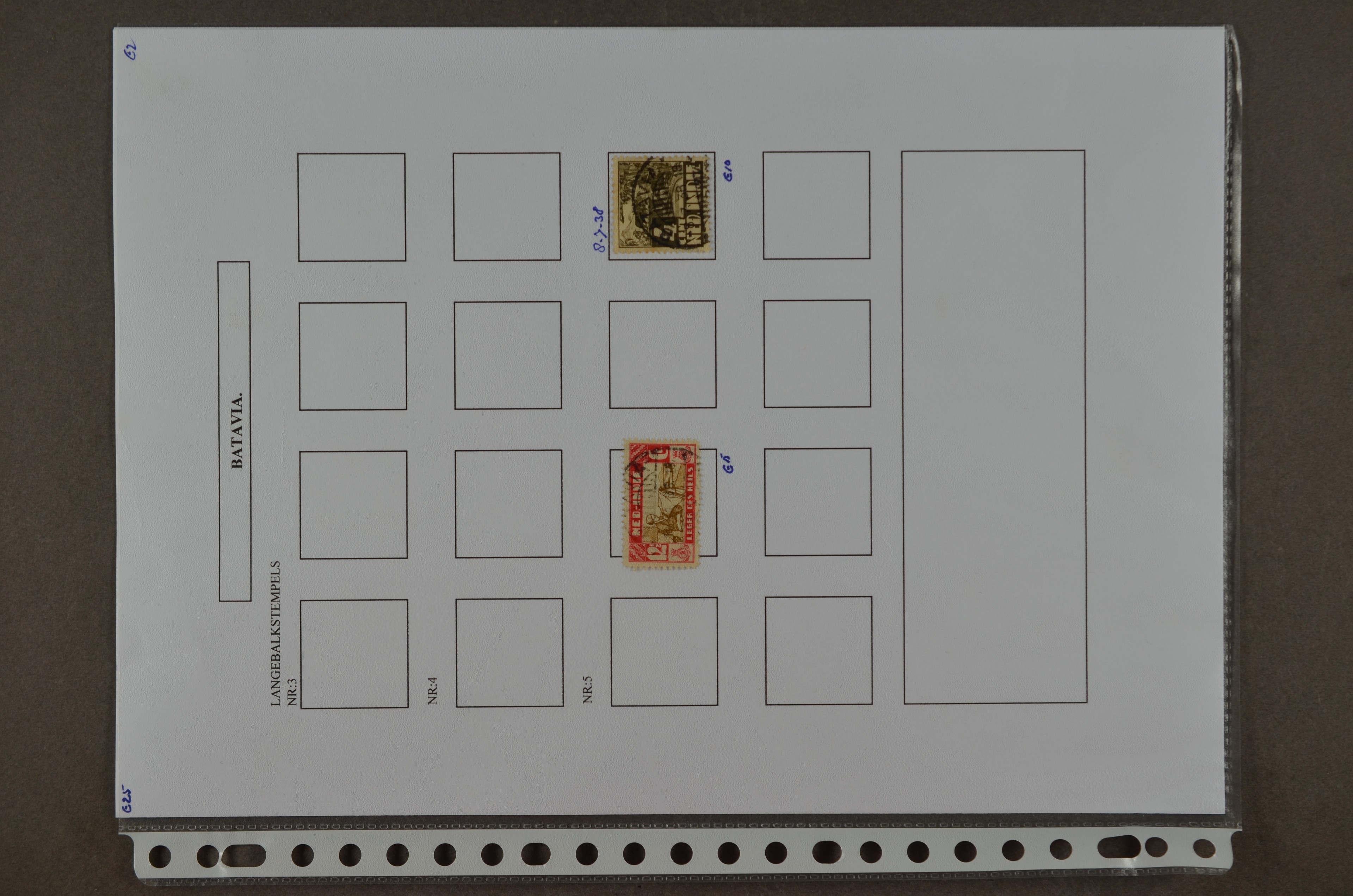 NED.- INDIË Langebalkstempels vanaf 1917, uitgebreide collectie met meerdere schaarse kantoren, verschillende typen per kantoor, veel mooie afstempelingen, ook andere typen als KB, PV1, PV2, LBnr, opgezet op bladen (w.o. door verzamelaar diverse foutief genoemde kantoornamen) in 8 ringbanden