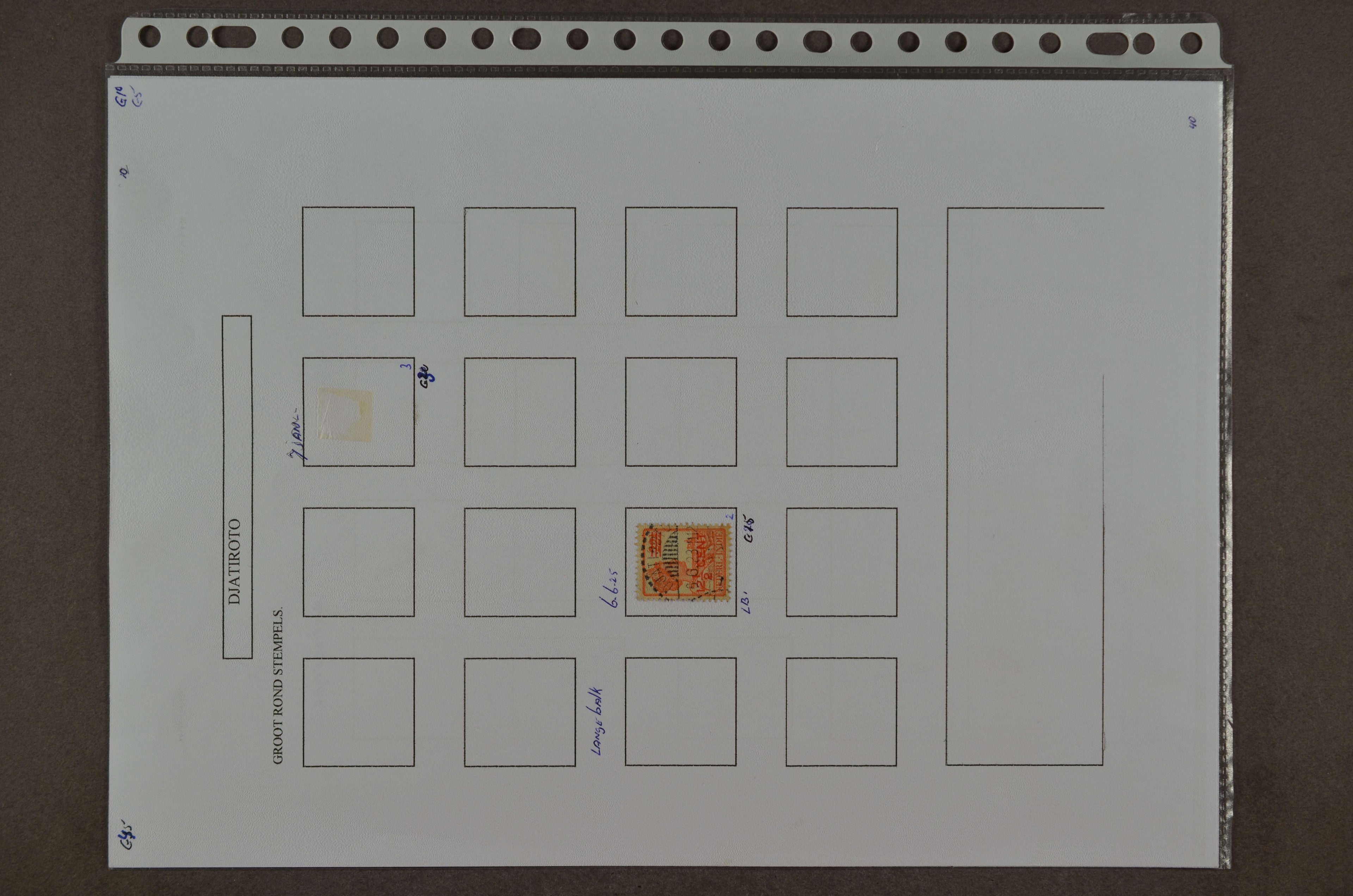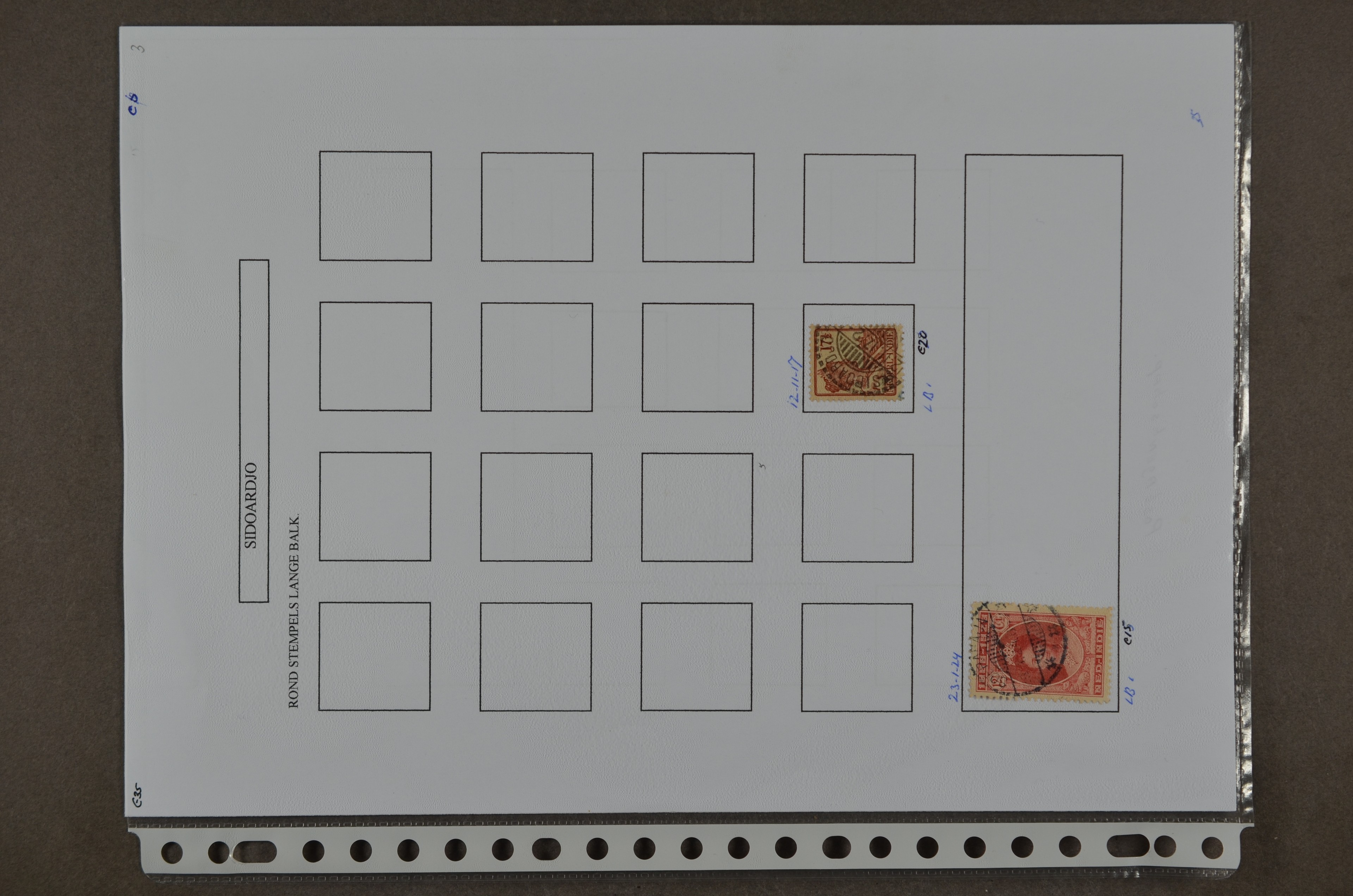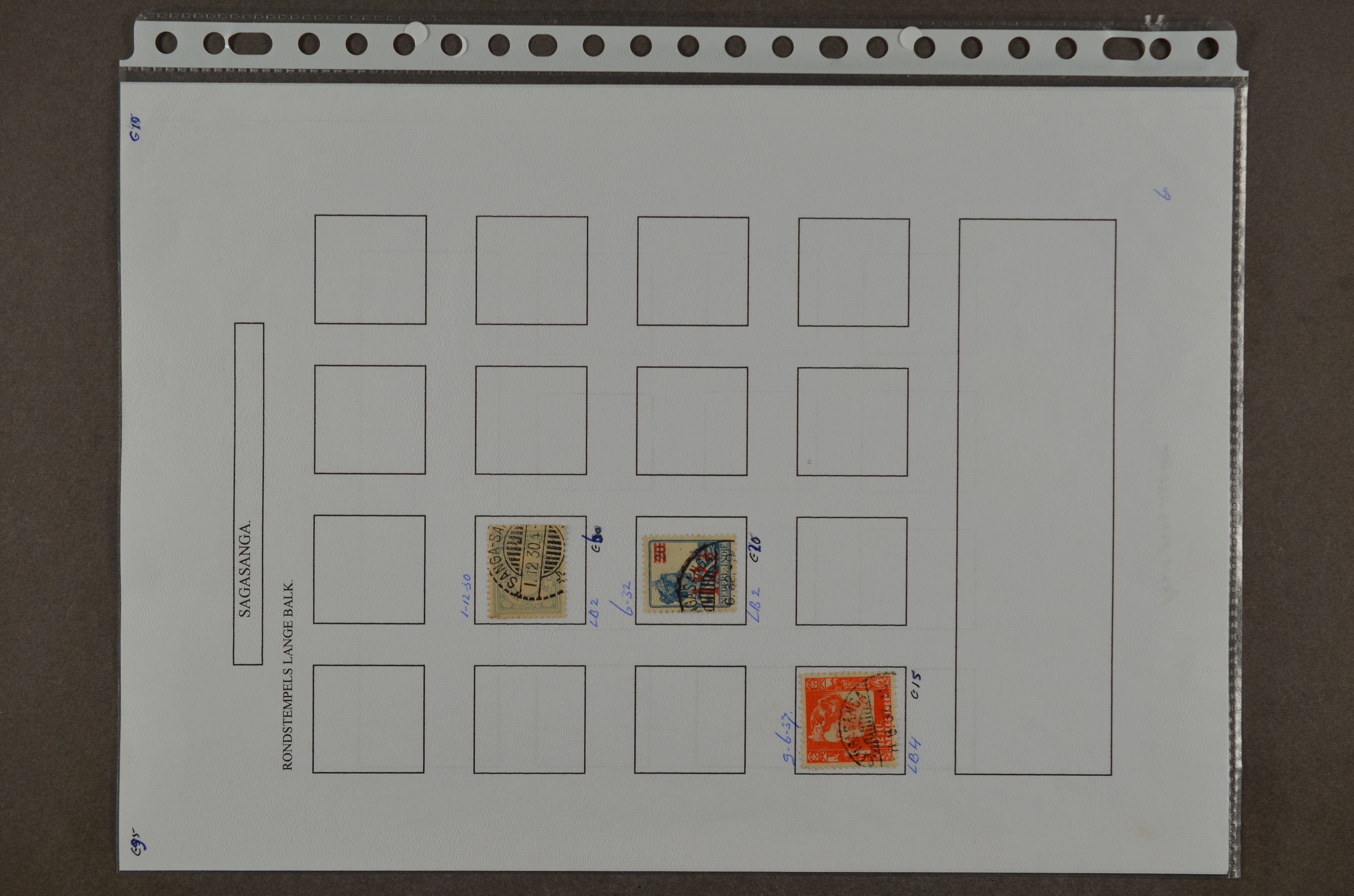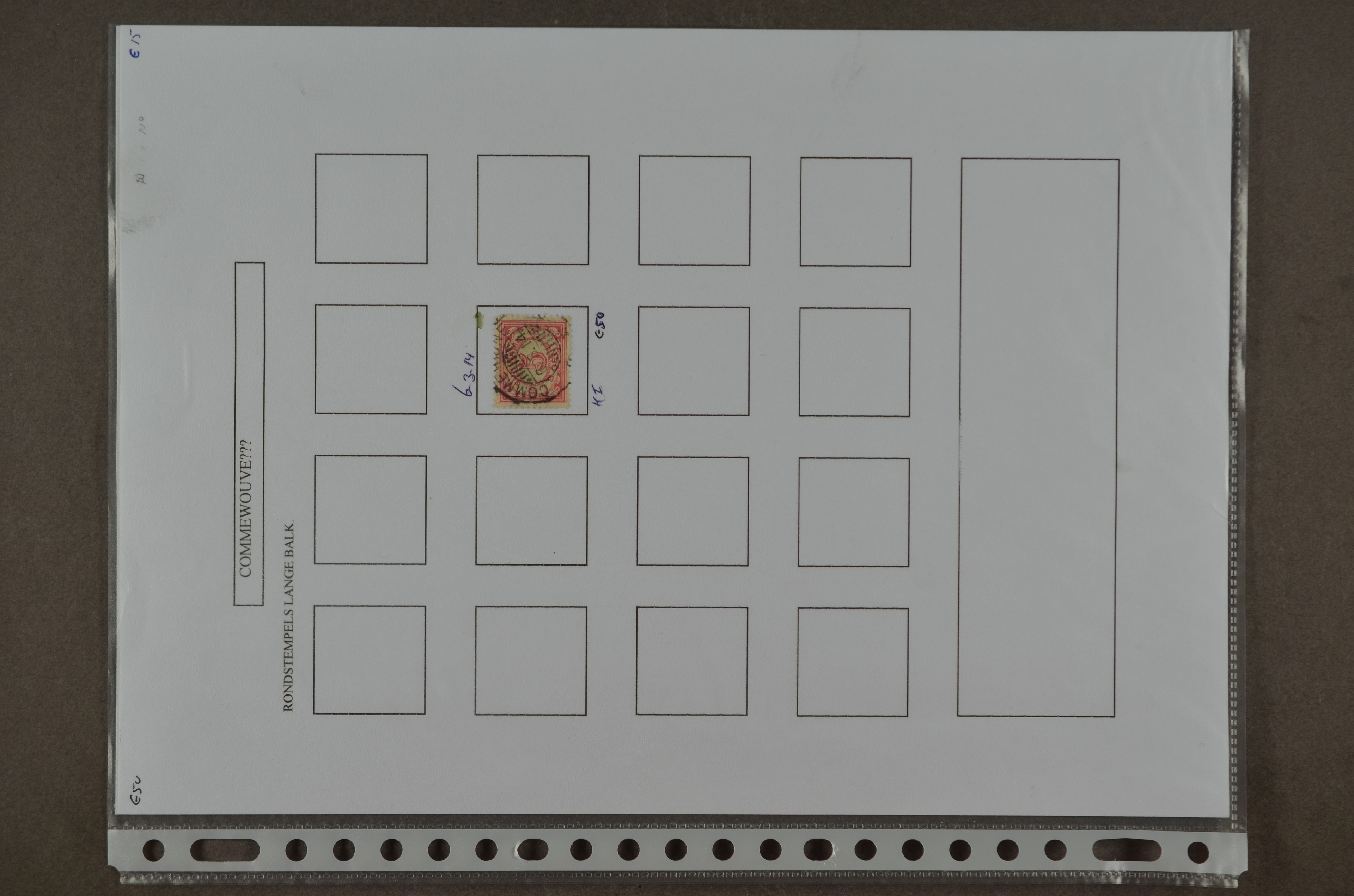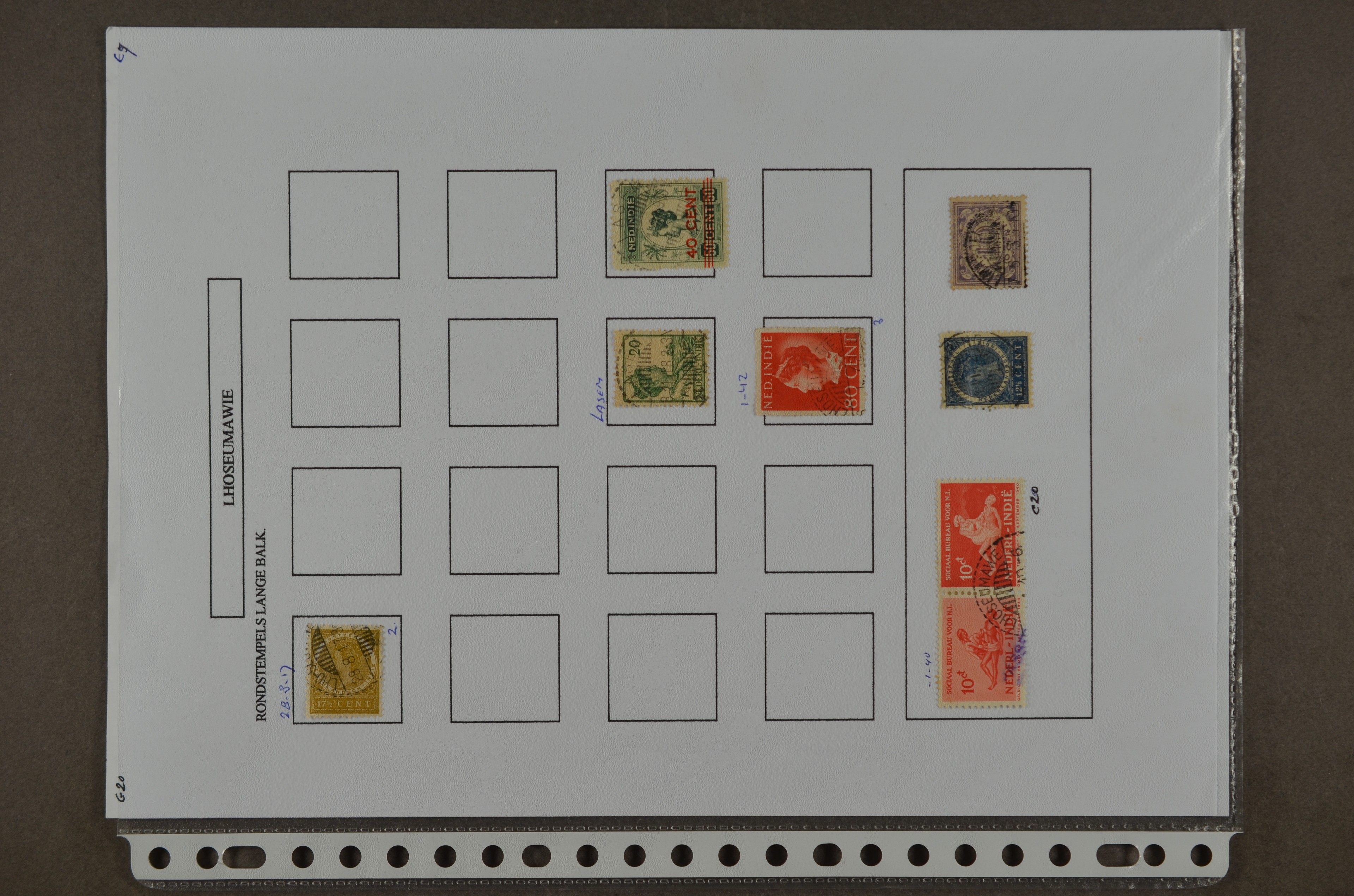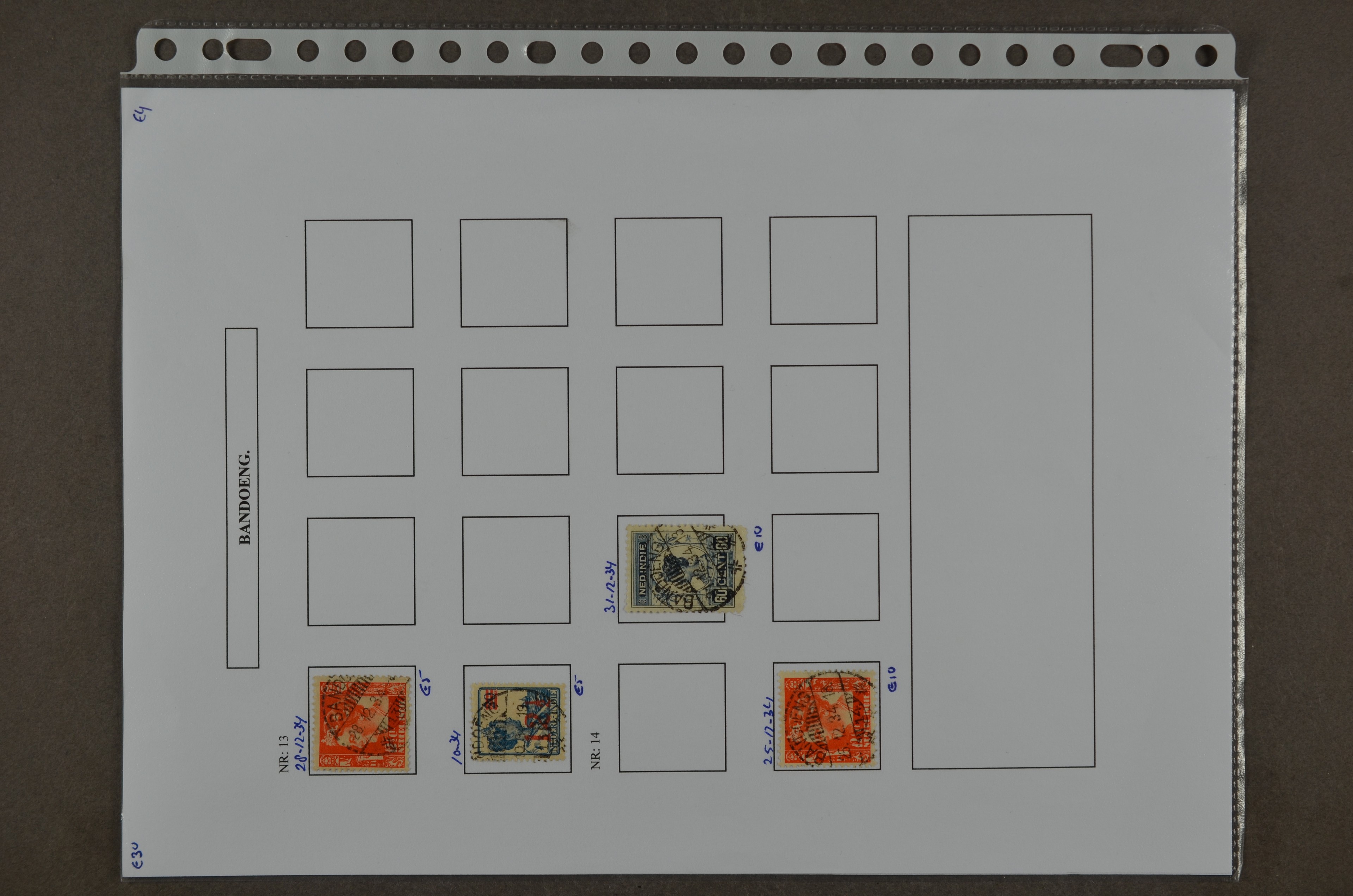 NED.- INDIË Langebalkstempels vanaf 1917, uitgebreide collectie met meerdere schaarse kantoren, verschillende typen per kantoor, veel mooie afstempelingen, ook andere typen als KB, PV1, PV2, LBnr, opgezet op bladen (w.o. door verzamelaar diverse foutief genoemde kantoornamen) in 8 ringbanden