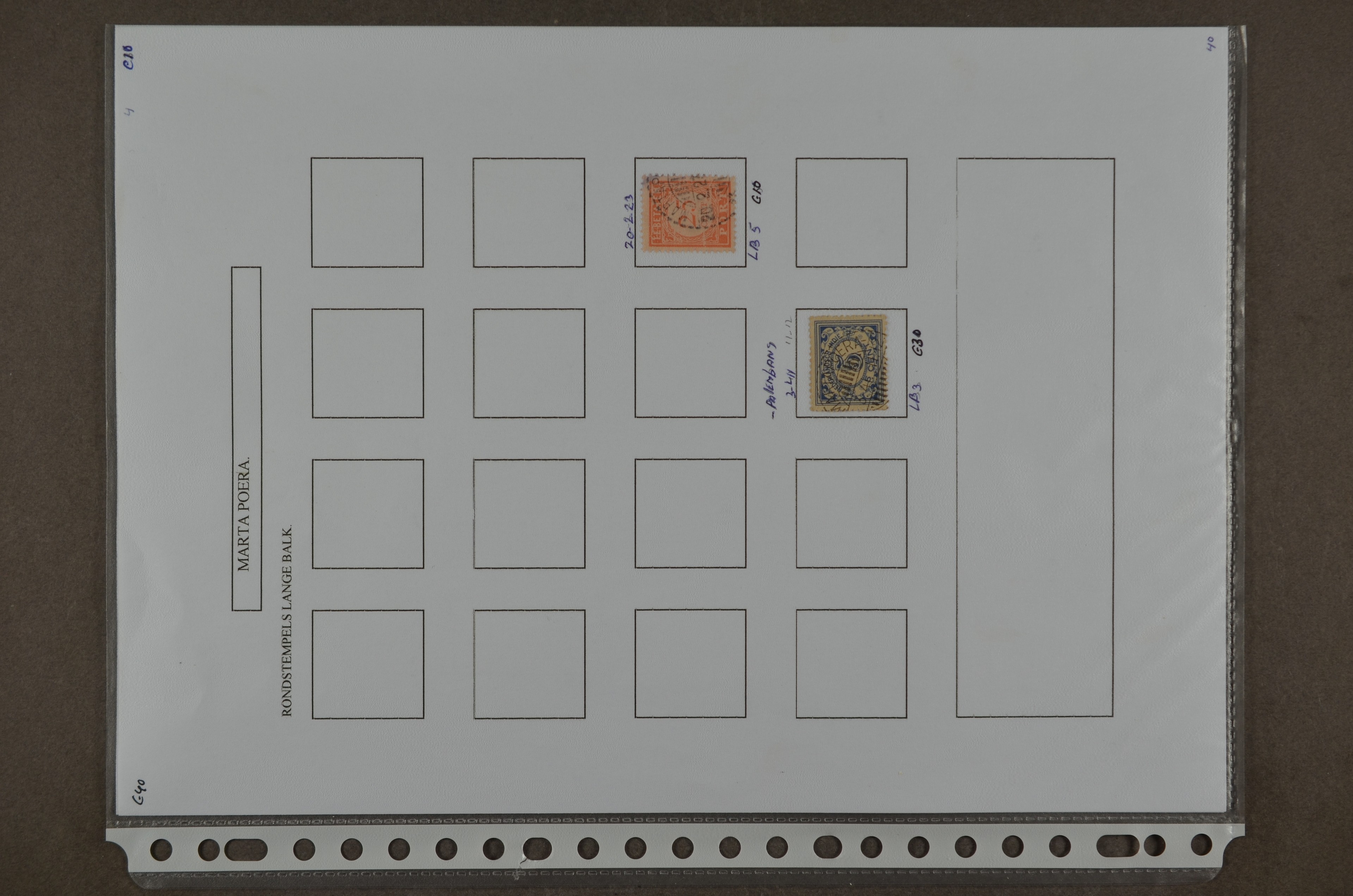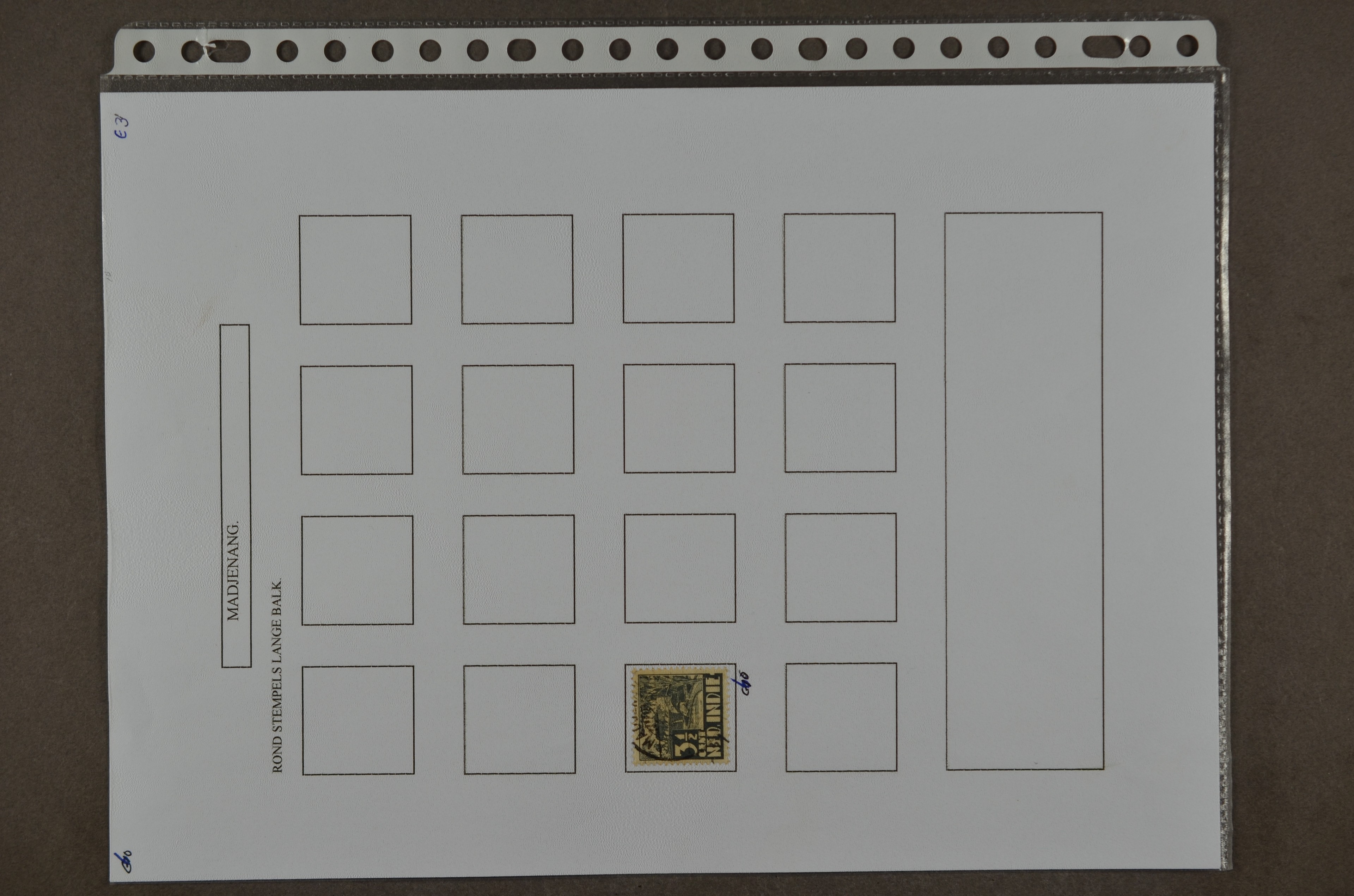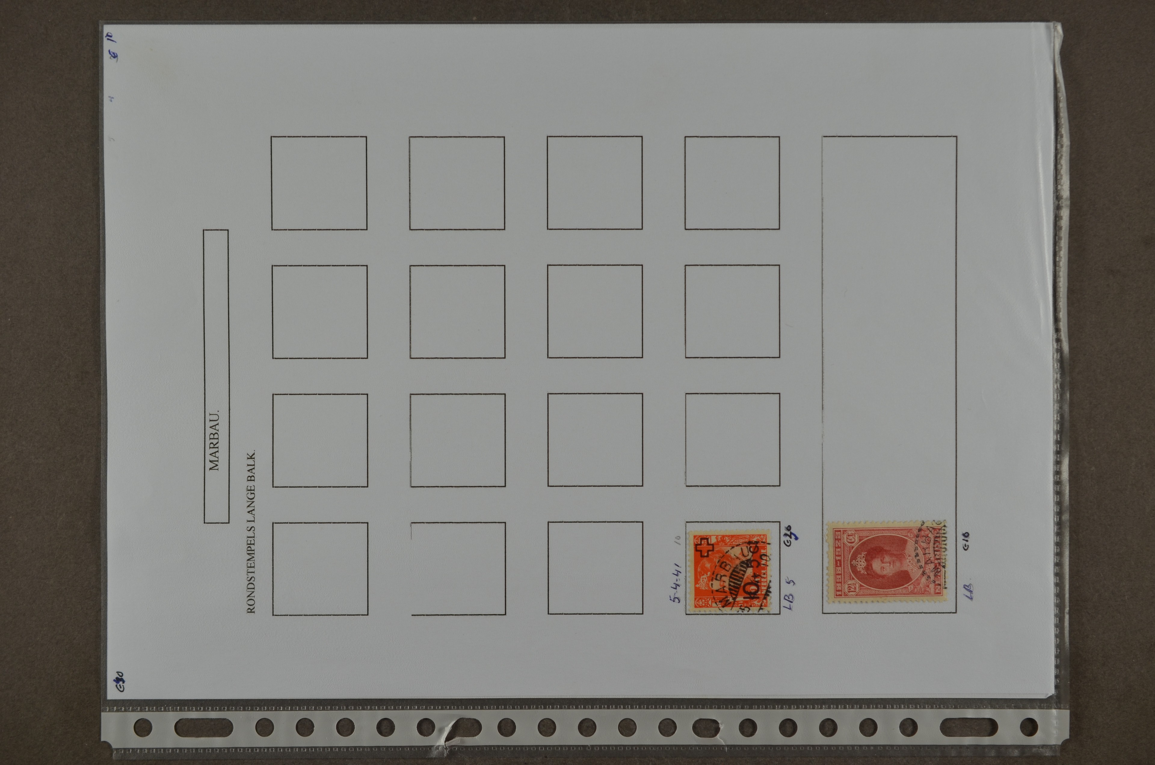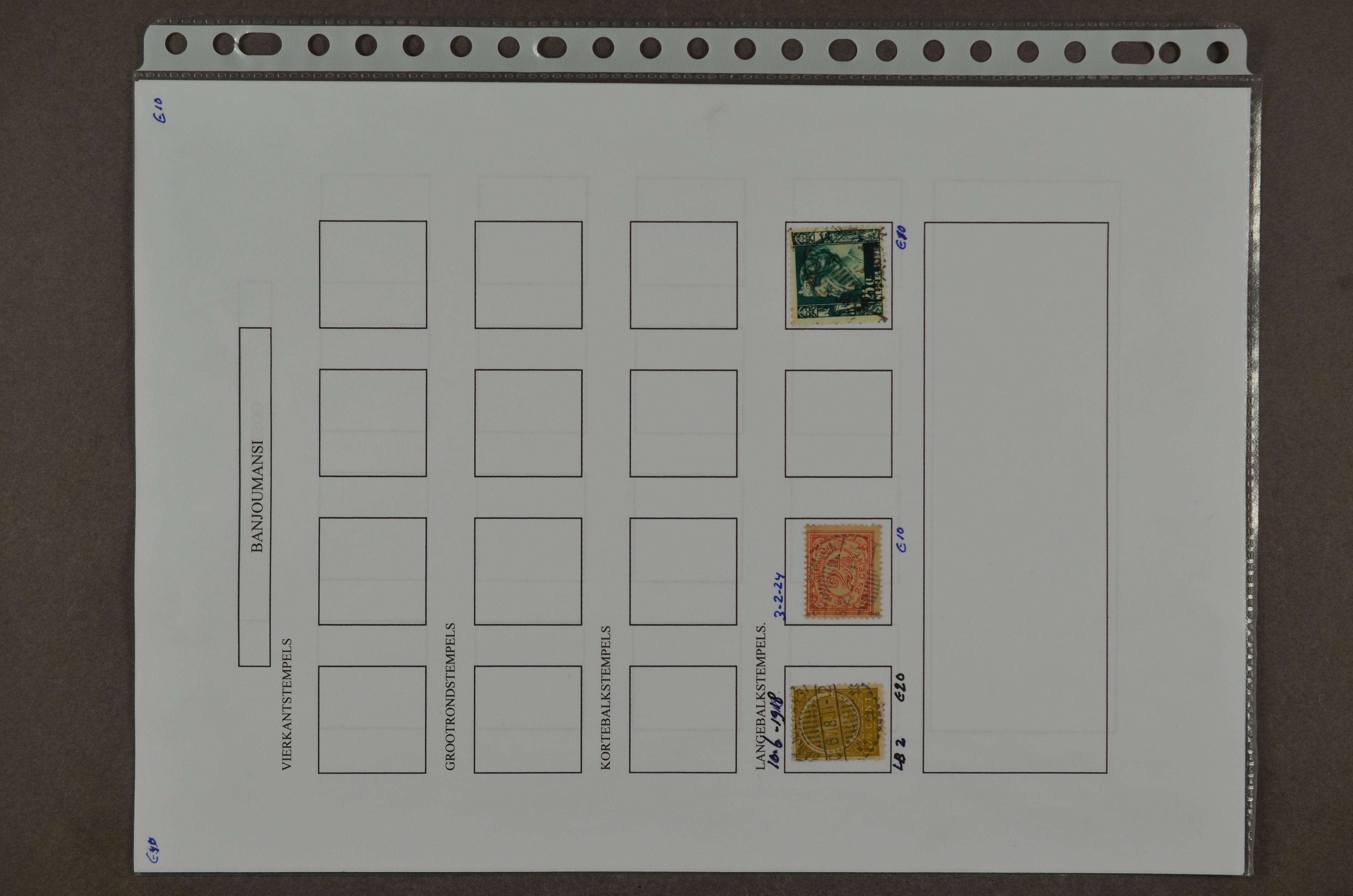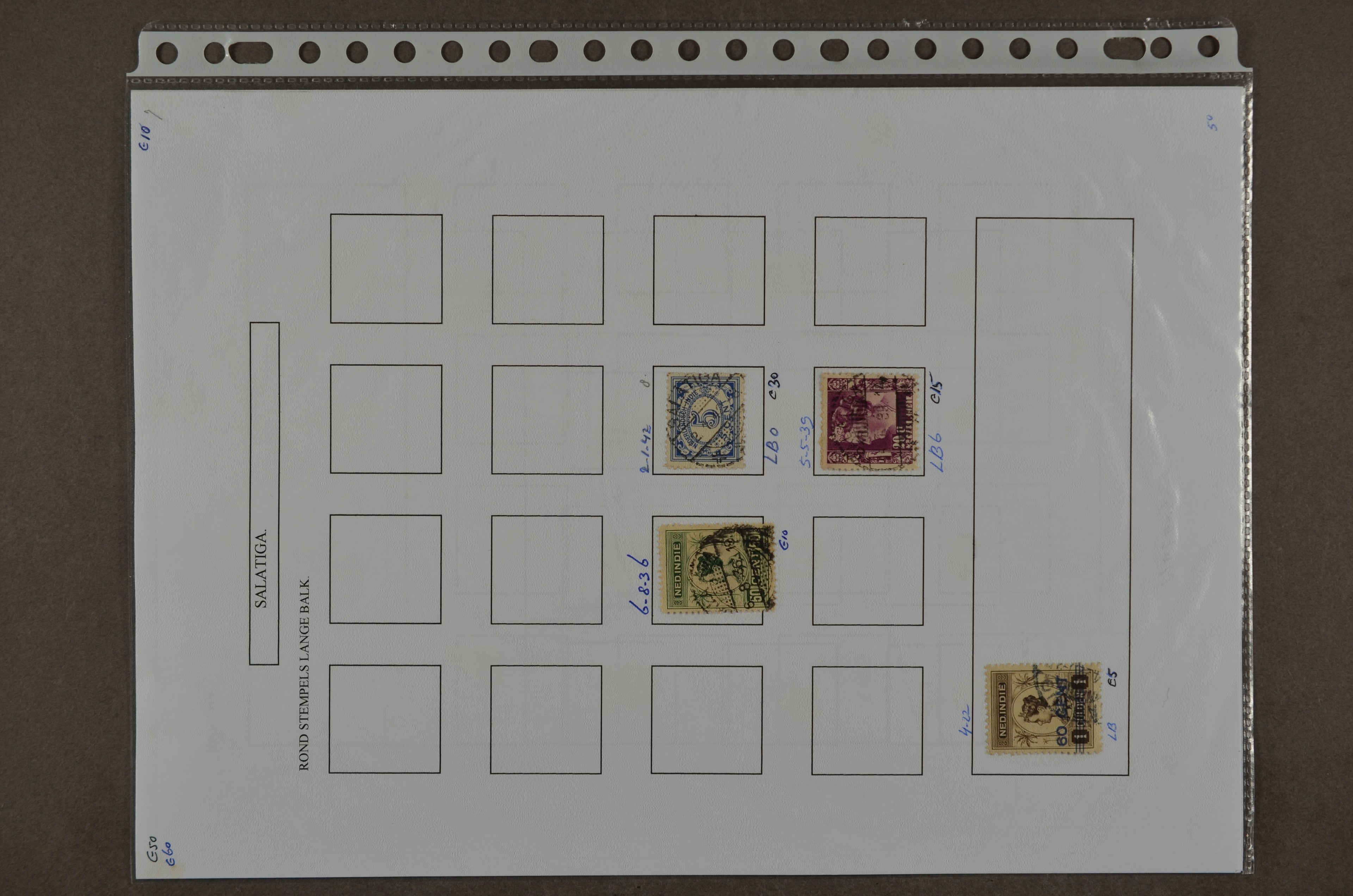 NED.- INDIË Langebalkstempels vanaf 1917, uitgebreide collectie met meerdere schaarse kantoren, verschillende typen per kantoor, veel mooie afstempelingen, ook andere typen als KB, PV1, PV2, LBnr, opgezet op bladen (w.o. door verzamelaar diverse foutief genoemde kantoornamen) in 8 ringbanden