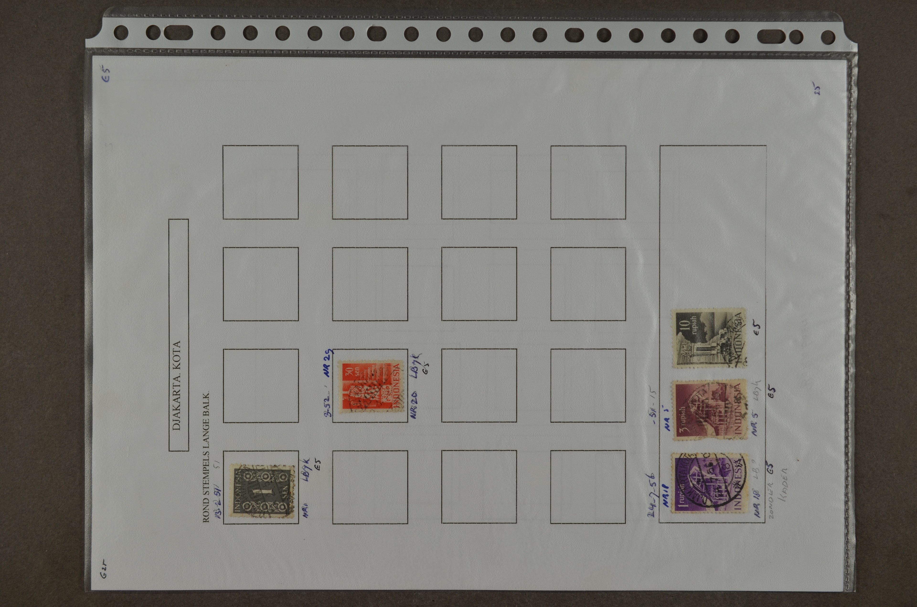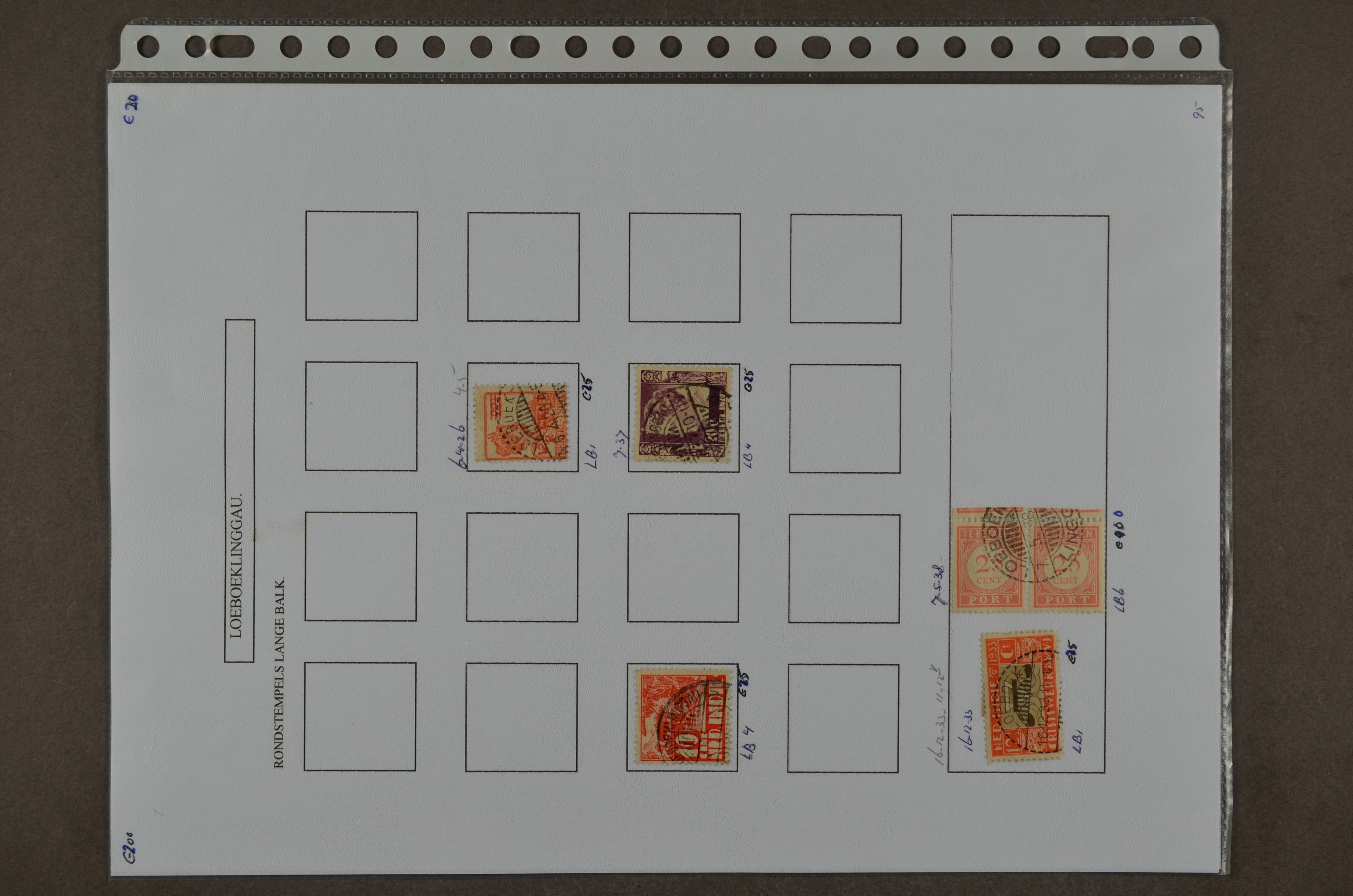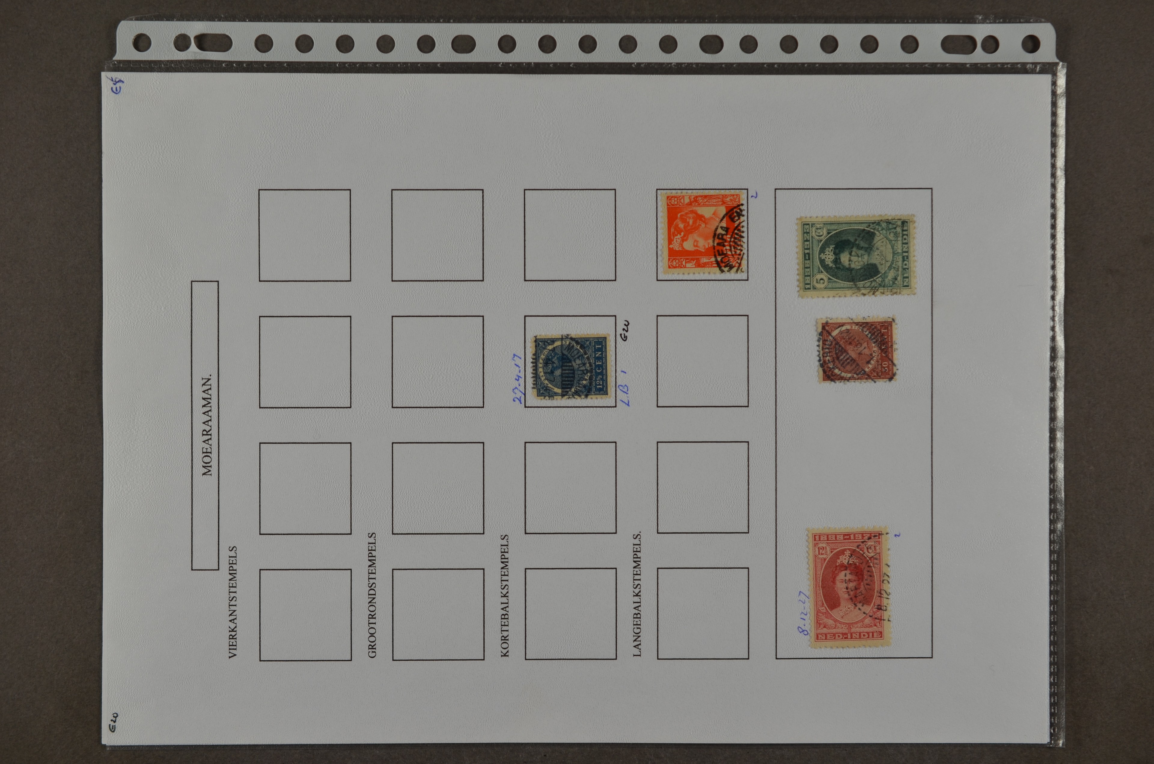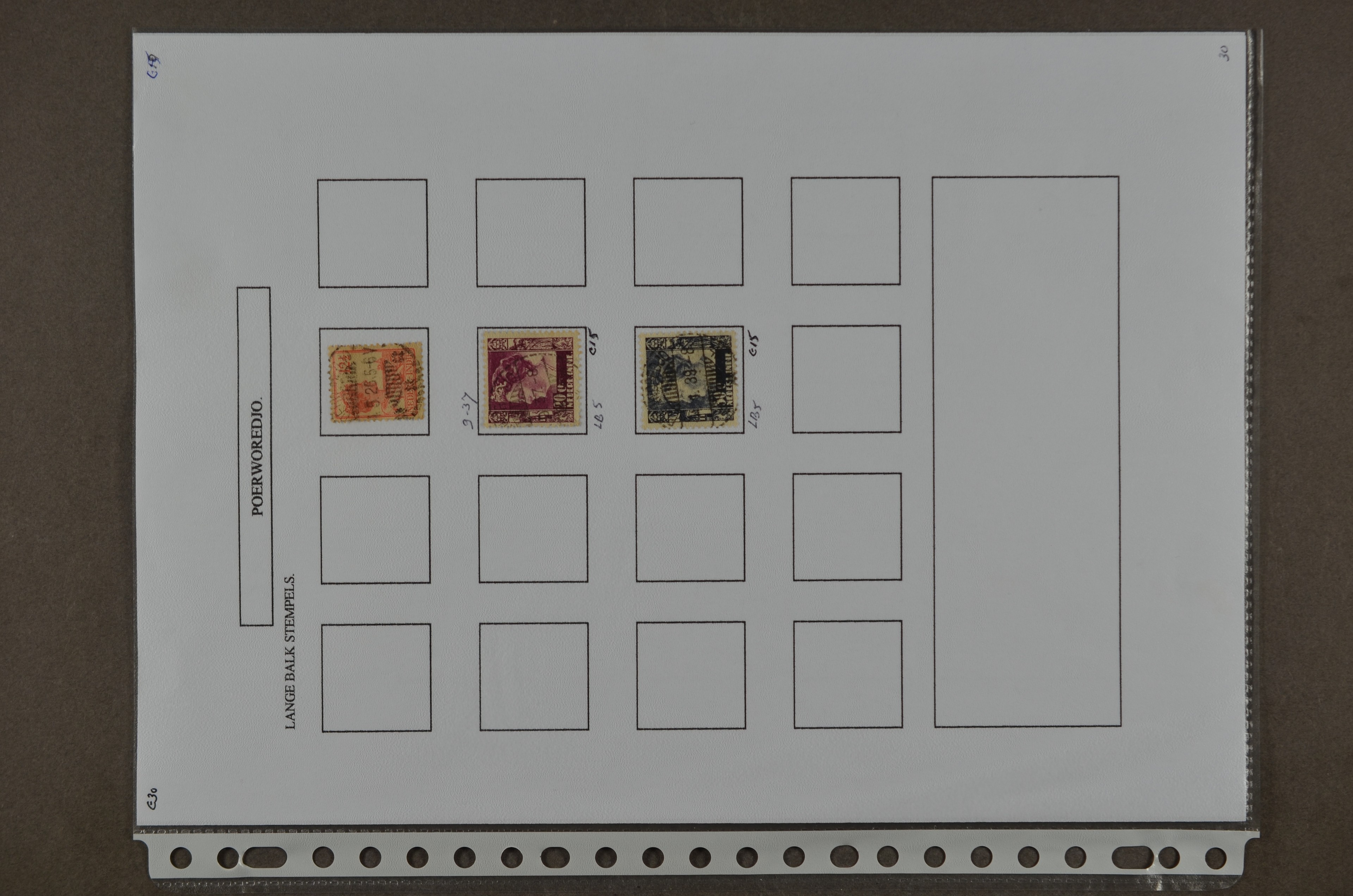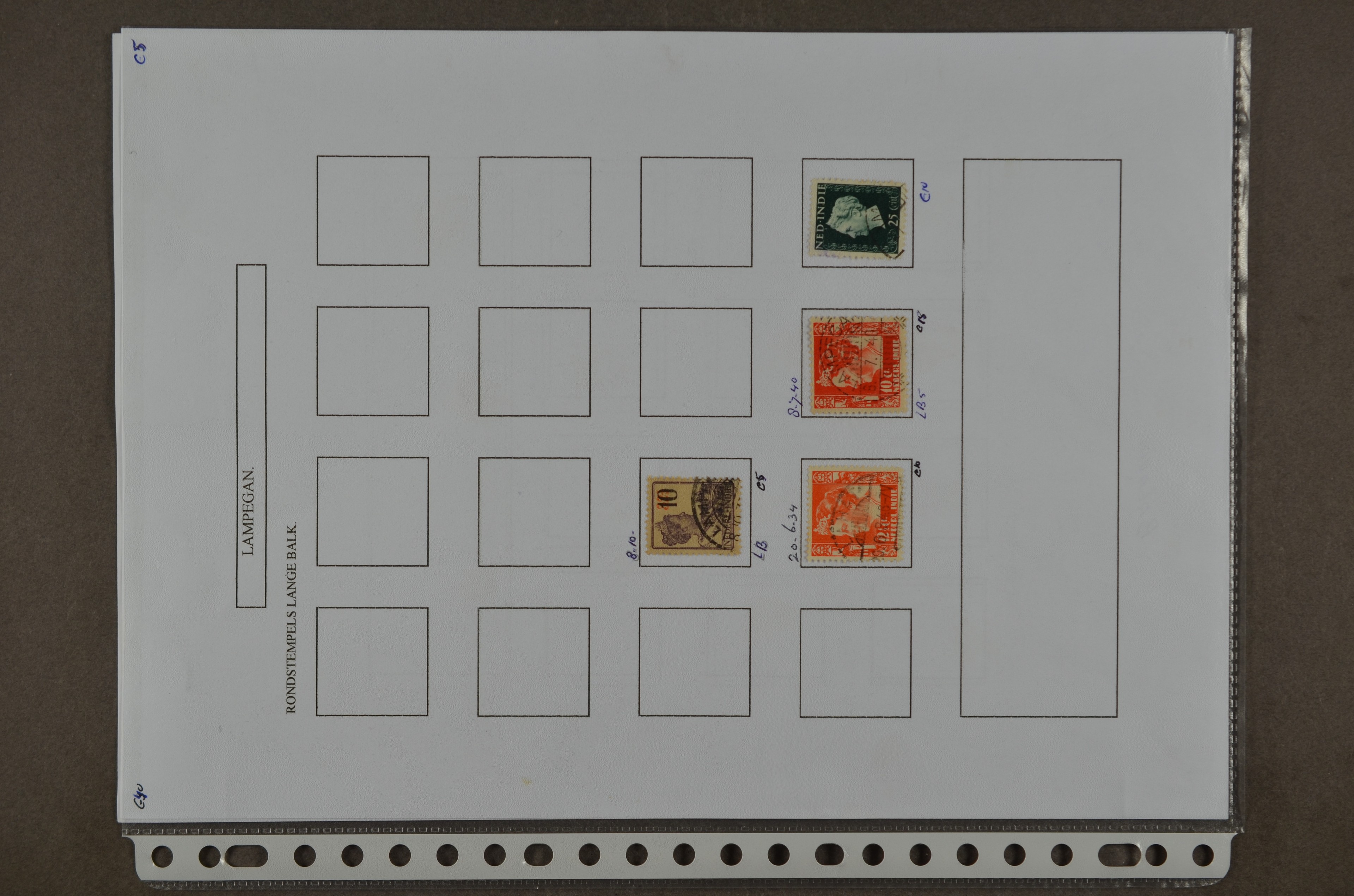 NED.- INDIË Langebalkstempels vanaf 1917, uitgebreide collectie met meerdere schaarse kantoren, verschillende typen per kantoor, veel mooie afstempelingen, ook andere typen als KB, PV1, PV2, LBnr, opgezet op bladen (w.o. door verzamelaar diverse foutief genoemde kantoornamen) in 8 ringbanden