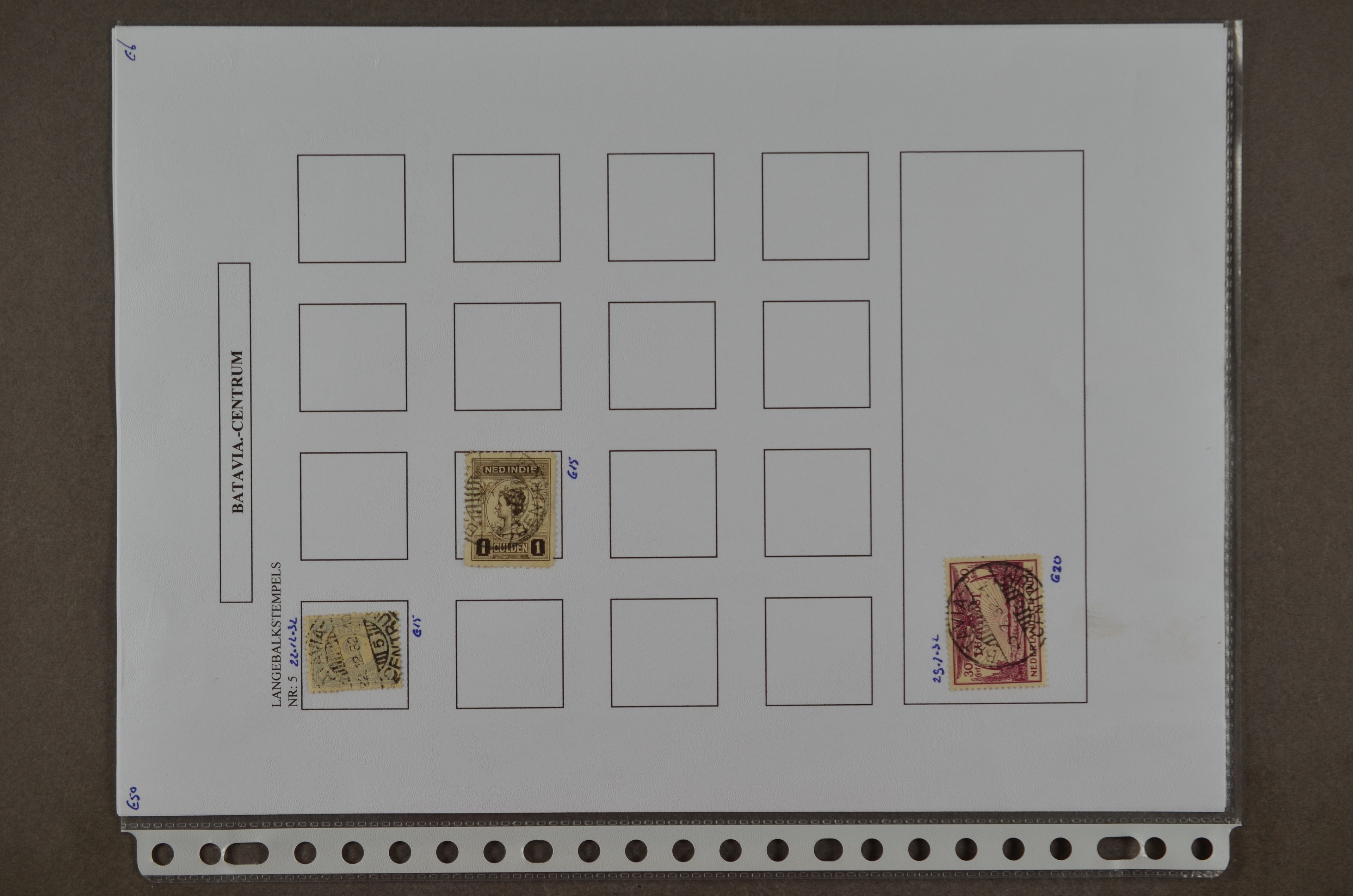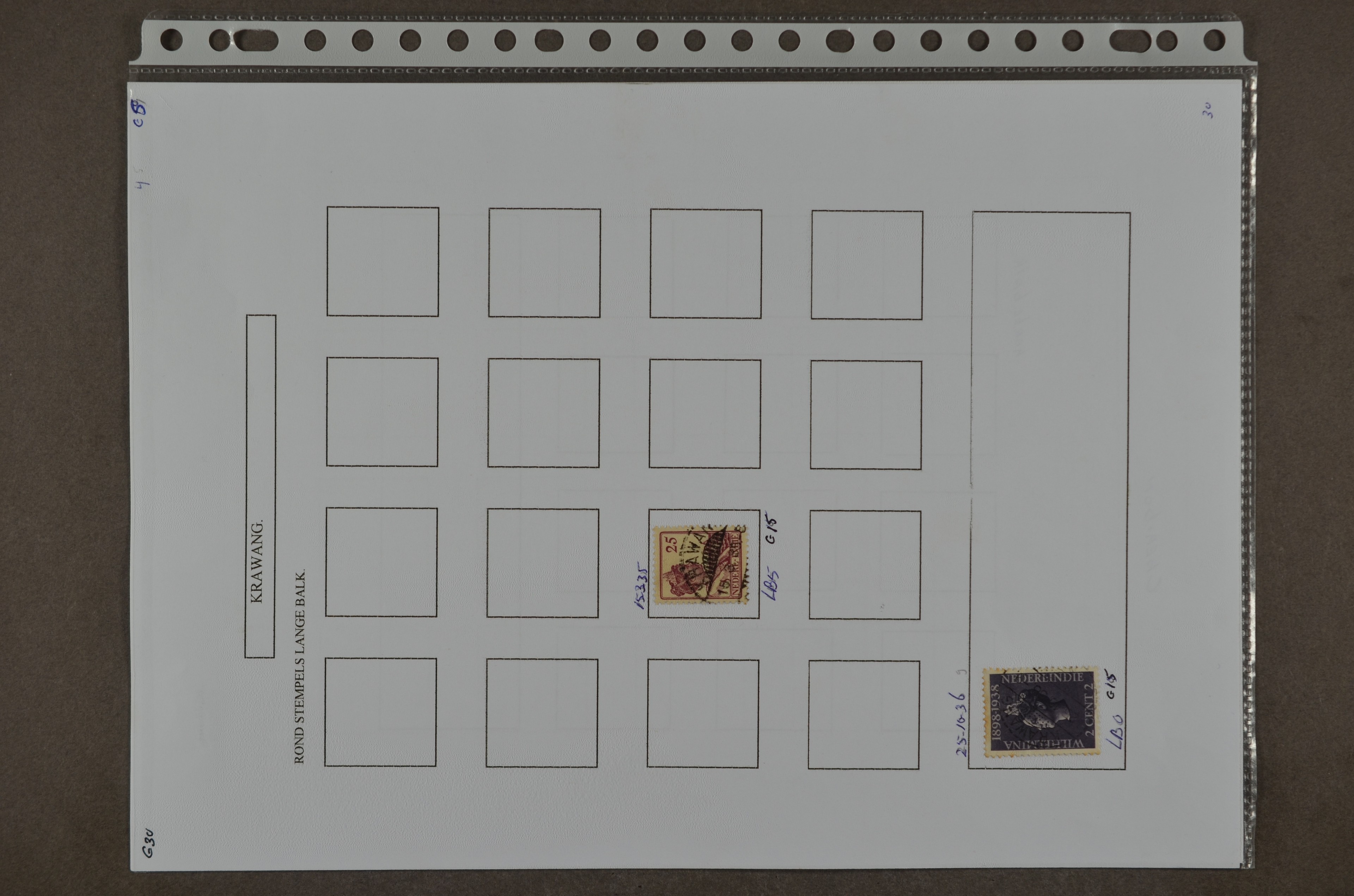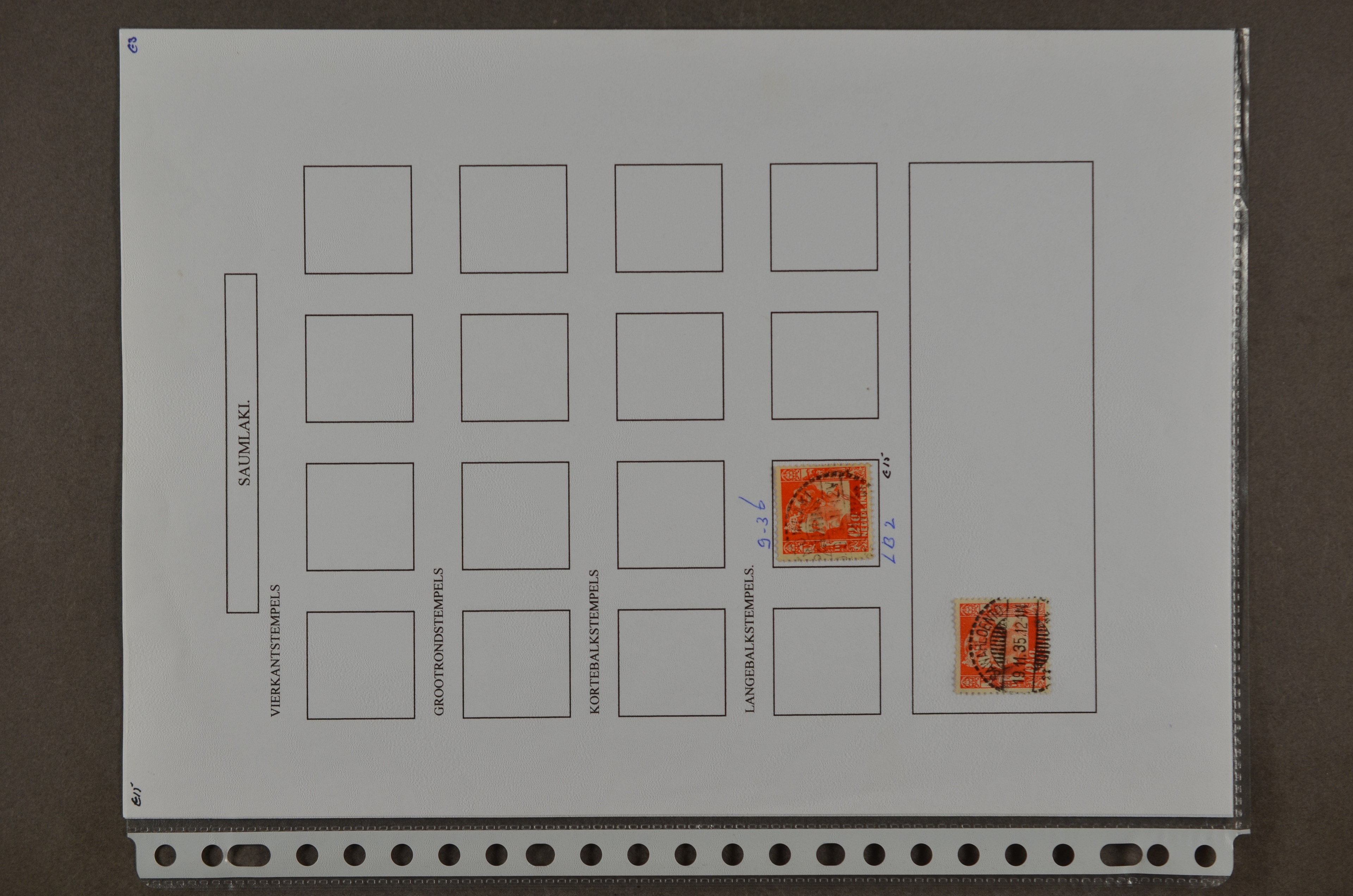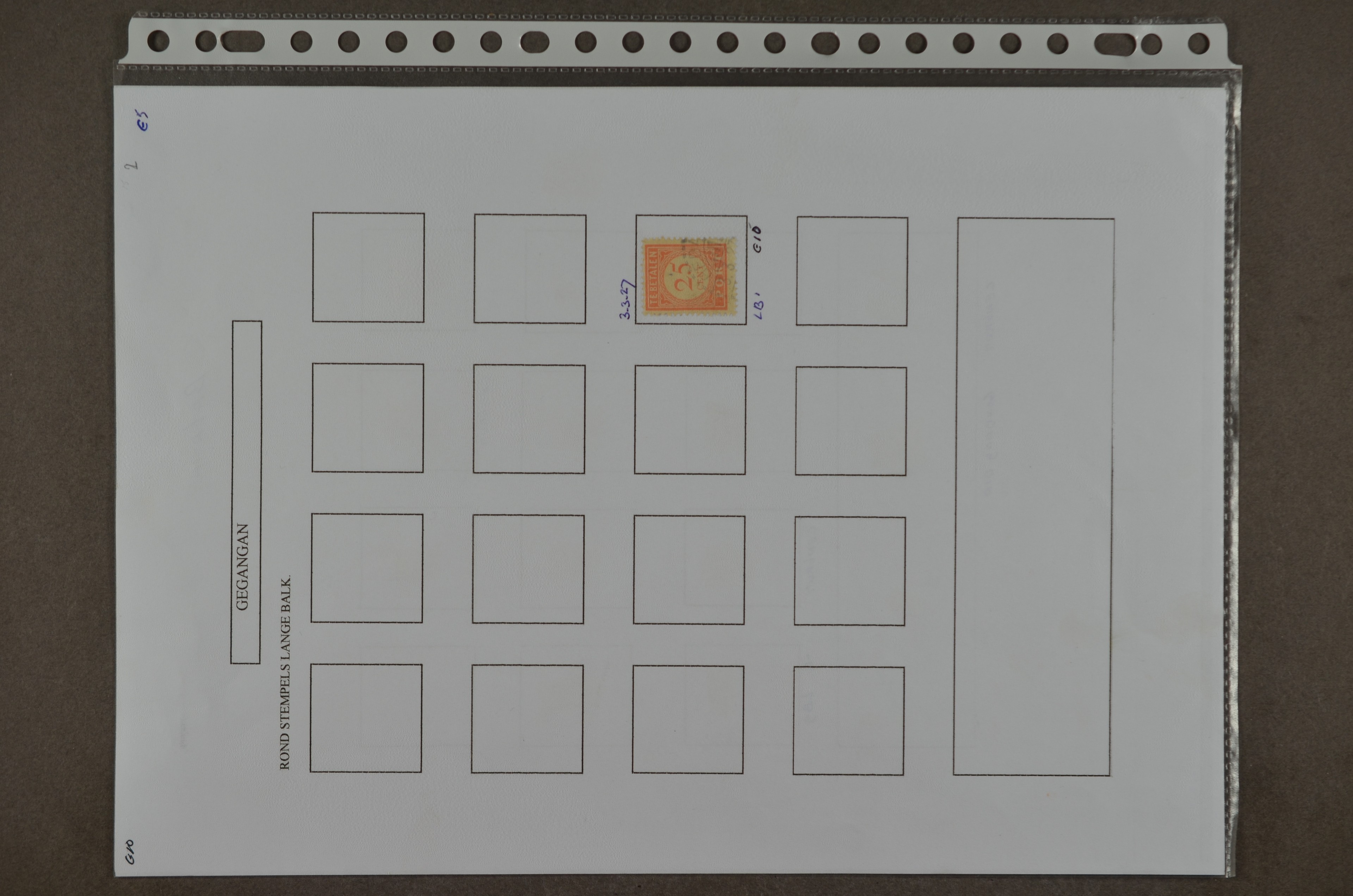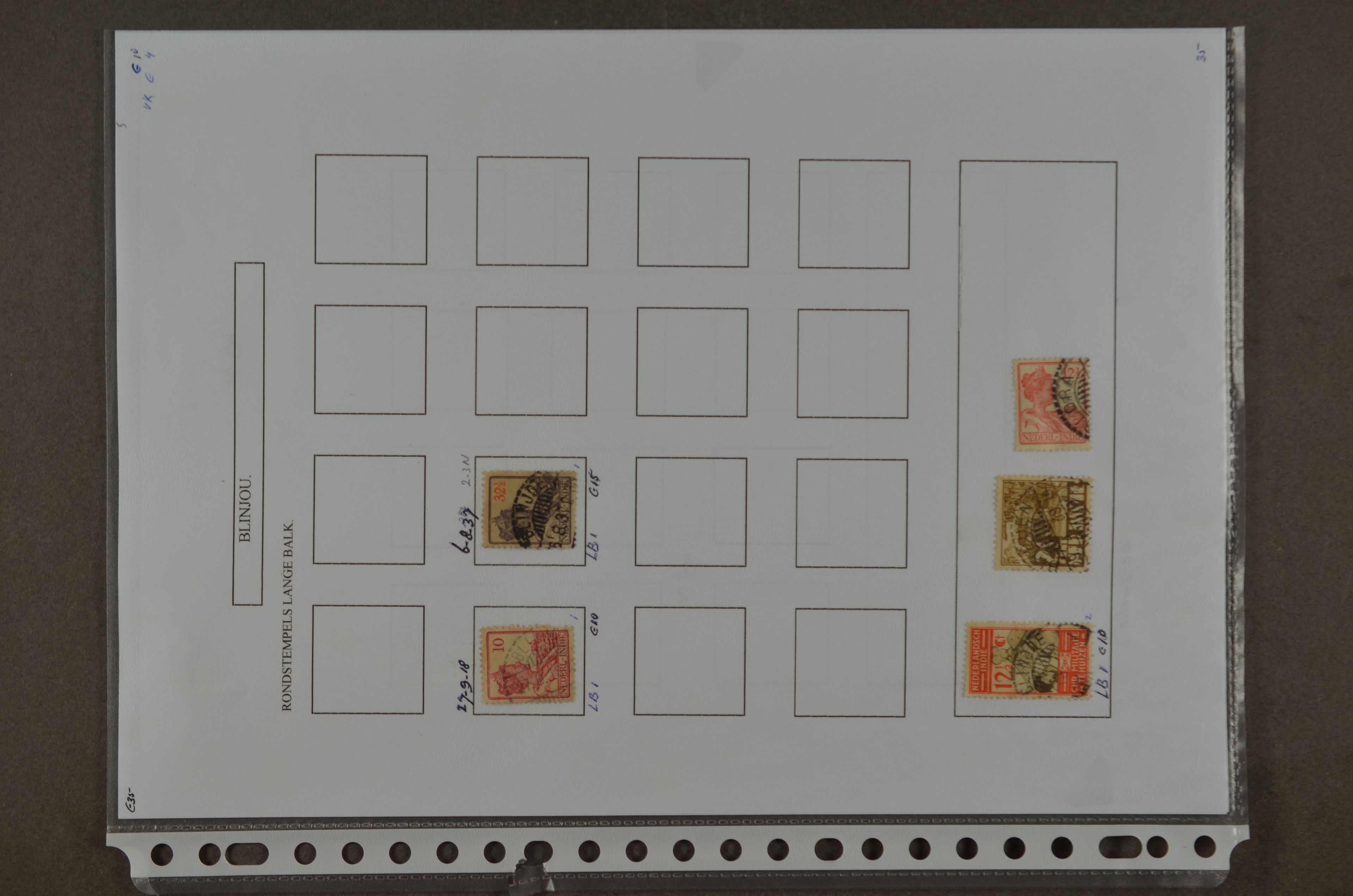 NED.- INDIË Langebalkstempels vanaf 1917, uitgebreide collectie met meerdere schaarse kantoren, verschillende typen per kantoor, veel mooie afstempelingen, ook andere typen als KB, PV1, PV2, LBnr, opgezet op bladen (w.o. door verzamelaar diverse foutief genoemde kantoornamen) in 8 ringbanden