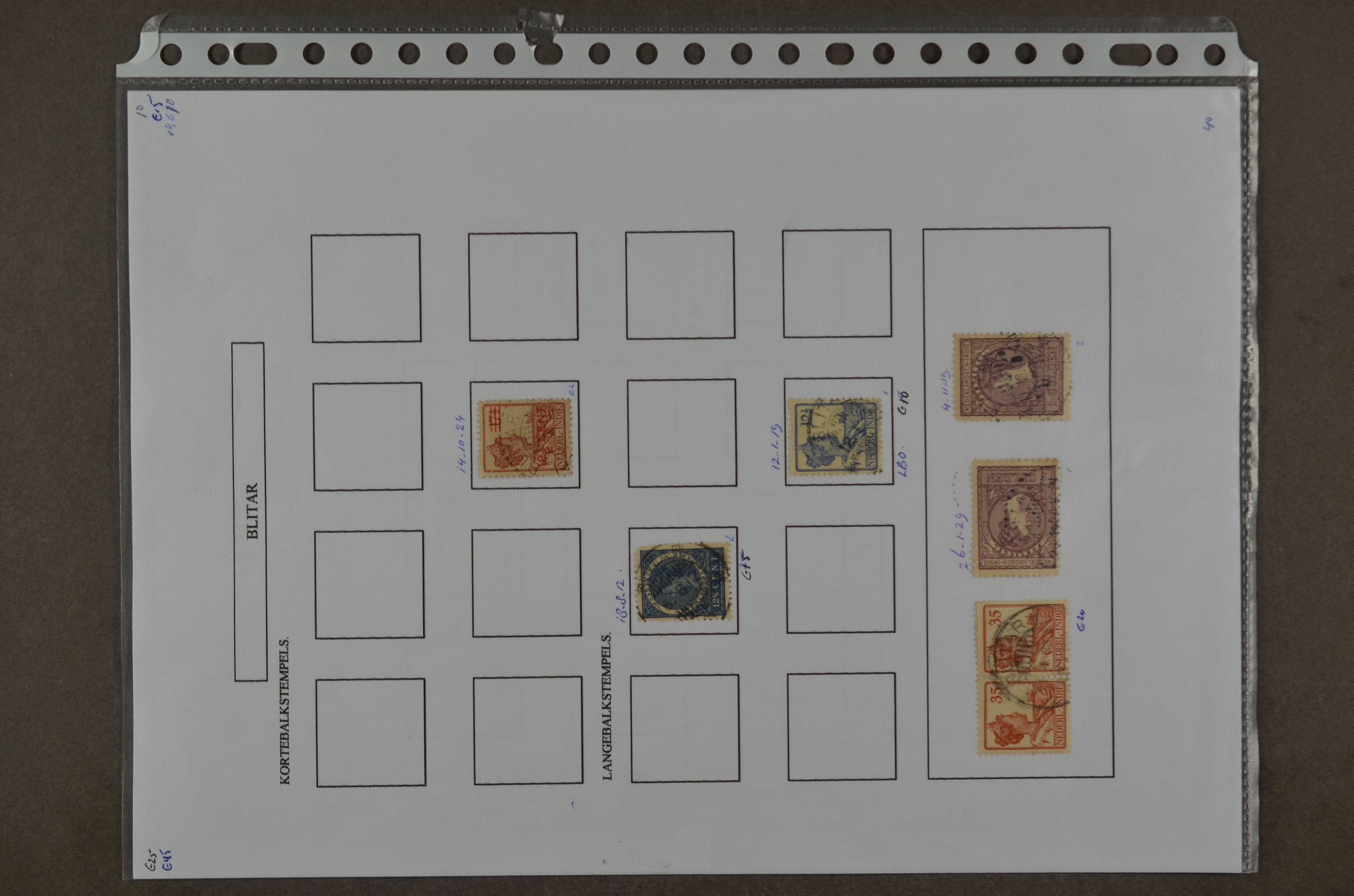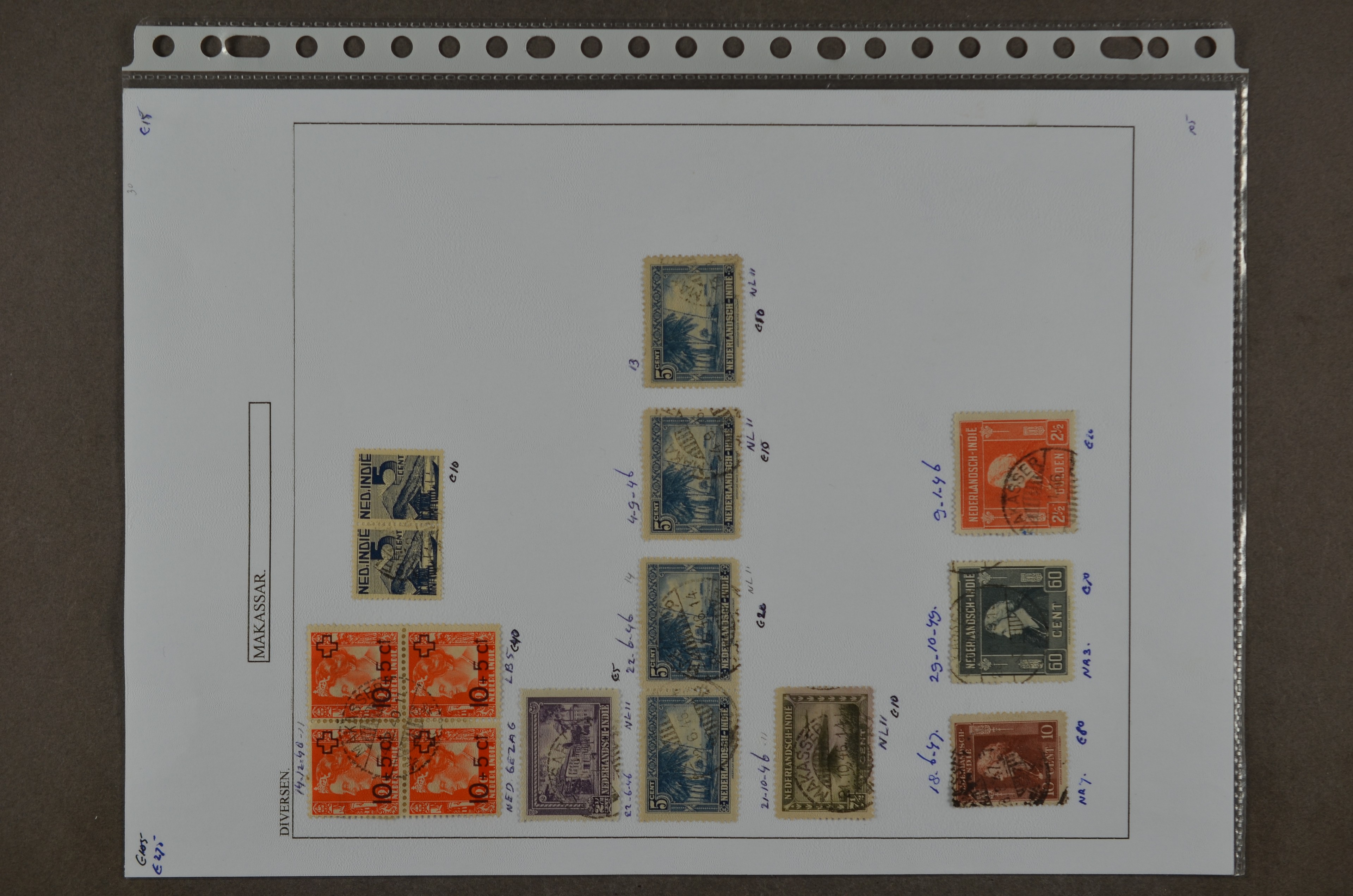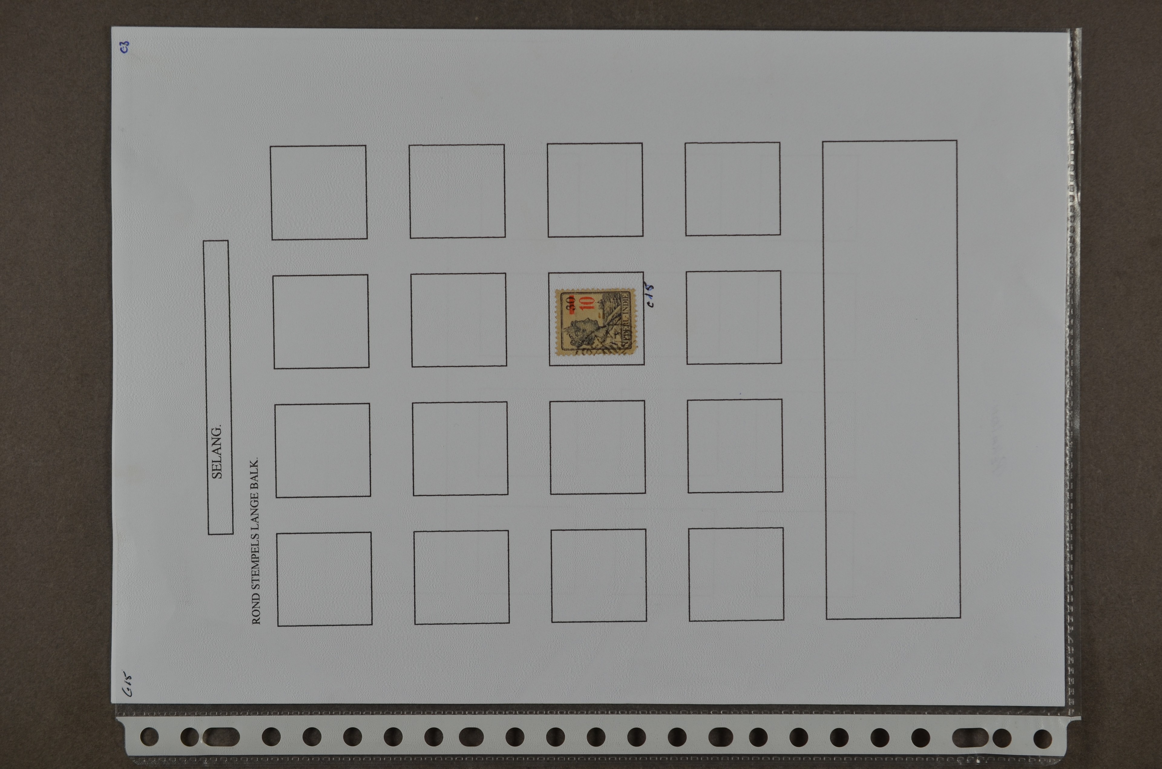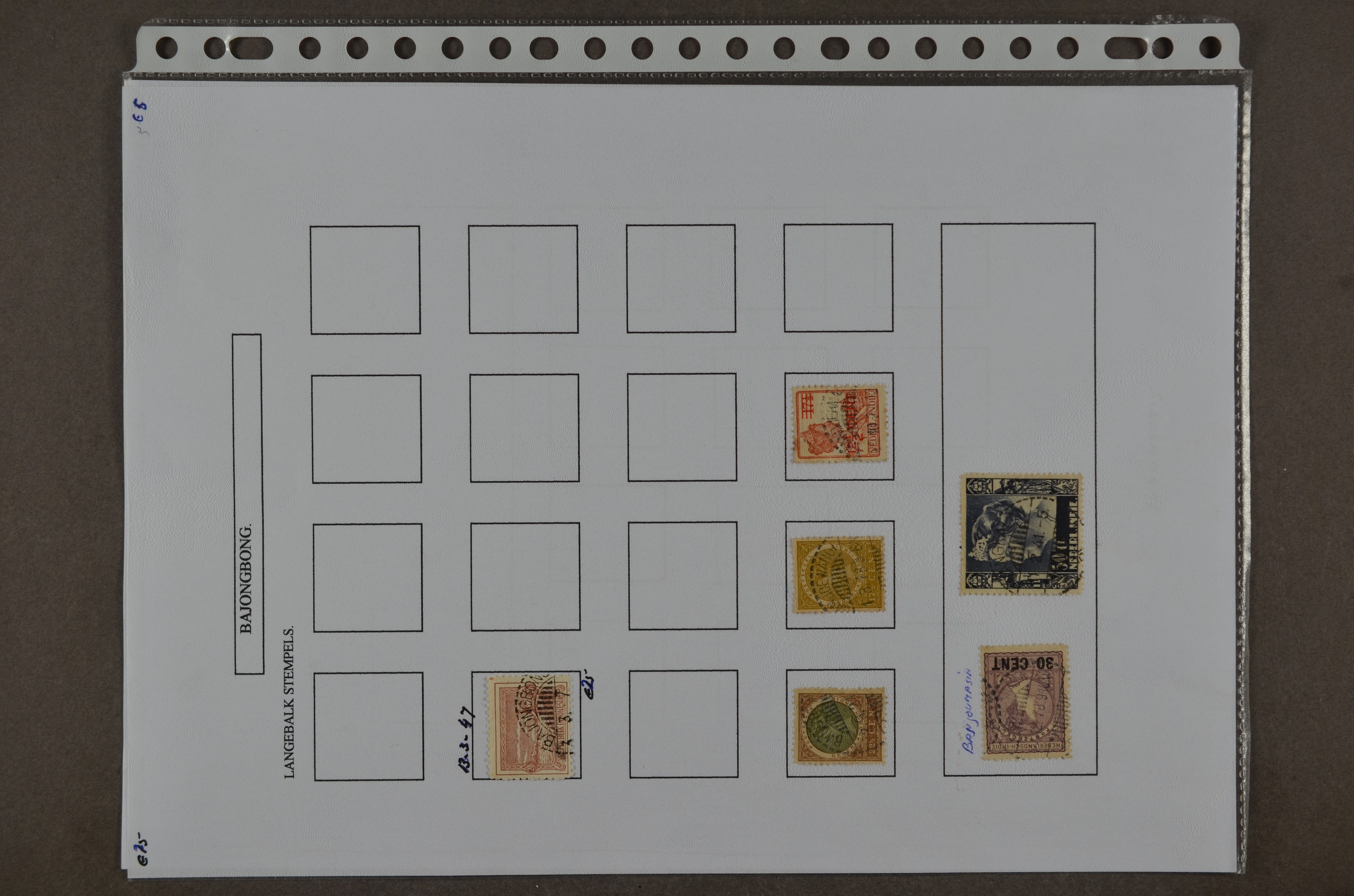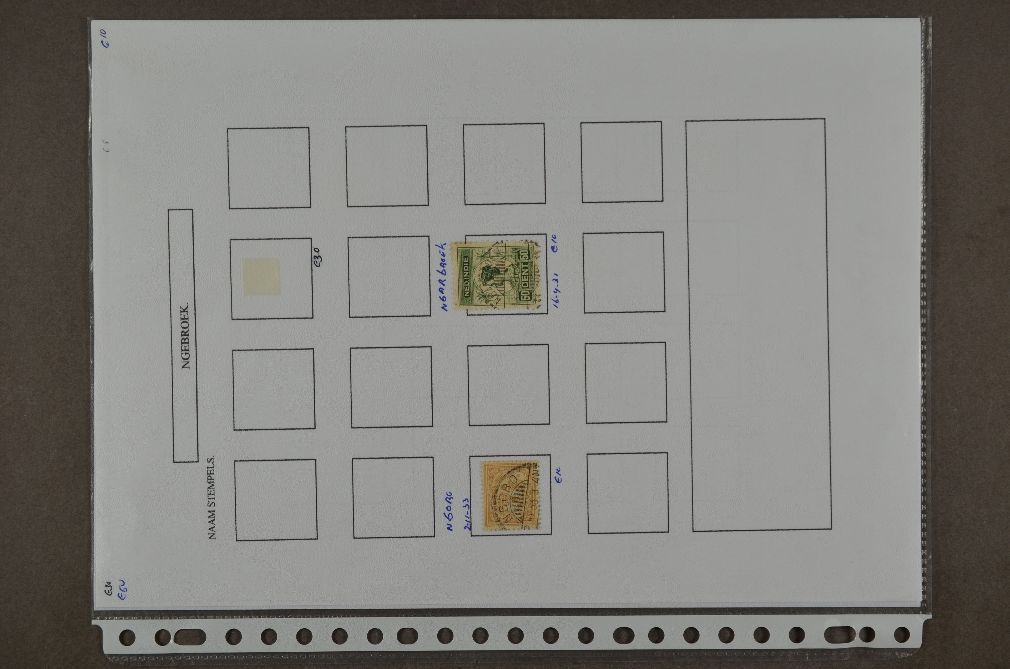 NED.- INDIË Langebalkstempels vanaf 1917, uitgebreide collectie met meerdere schaarse kantoren, verschillende typen per kantoor, veel mooie afstempelingen, ook andere typen als KB, PV1, PV2, LBnr, opgezet op bladen (w.o. door verzamelaar diverse foutief genoemde kantoornamen) in 8 ringbanden
