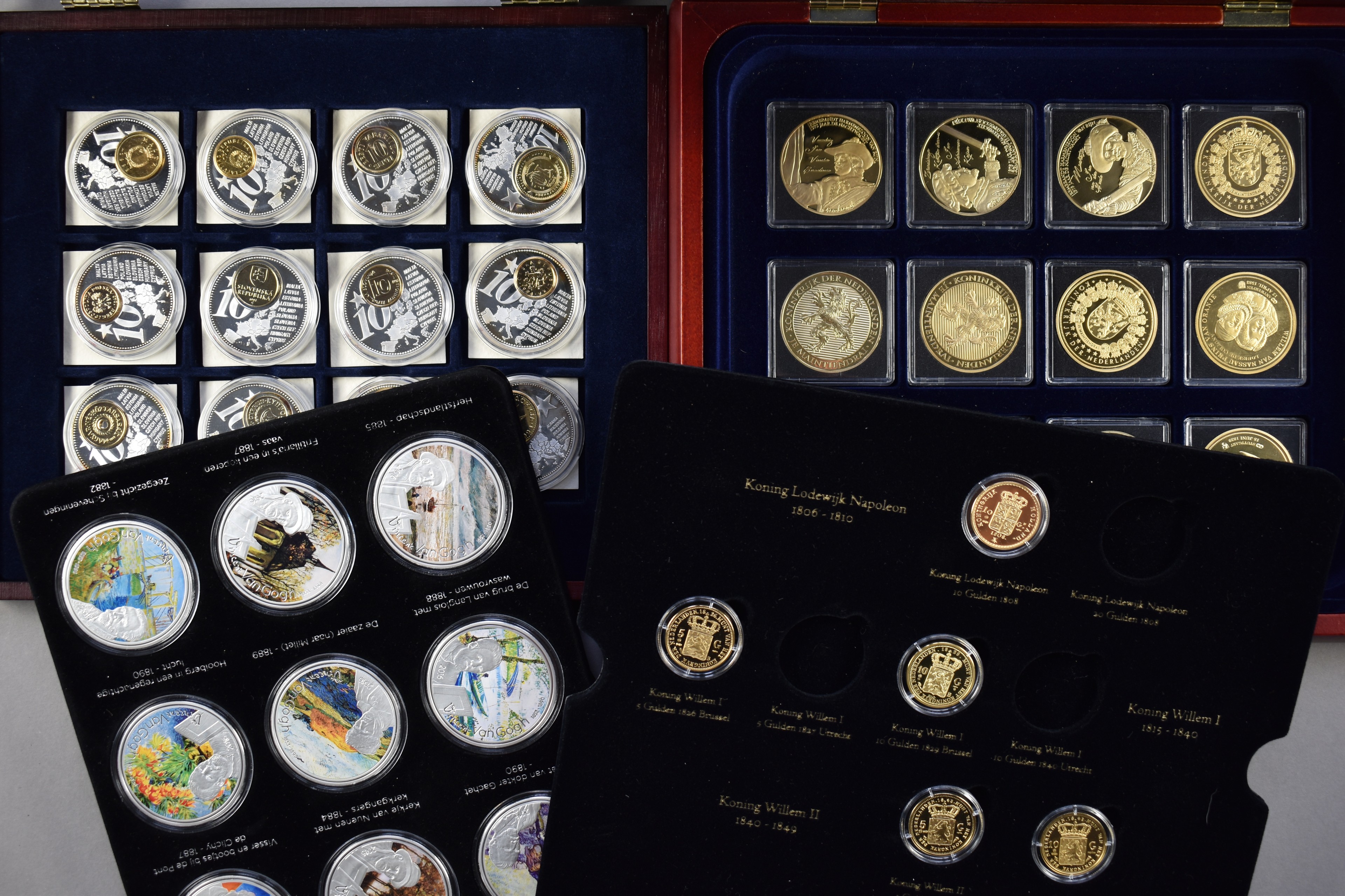 NEDERLAND, Speciale uitgiften en Herdenkings-uitgiften verzilverd, verguld en geëmailleerd