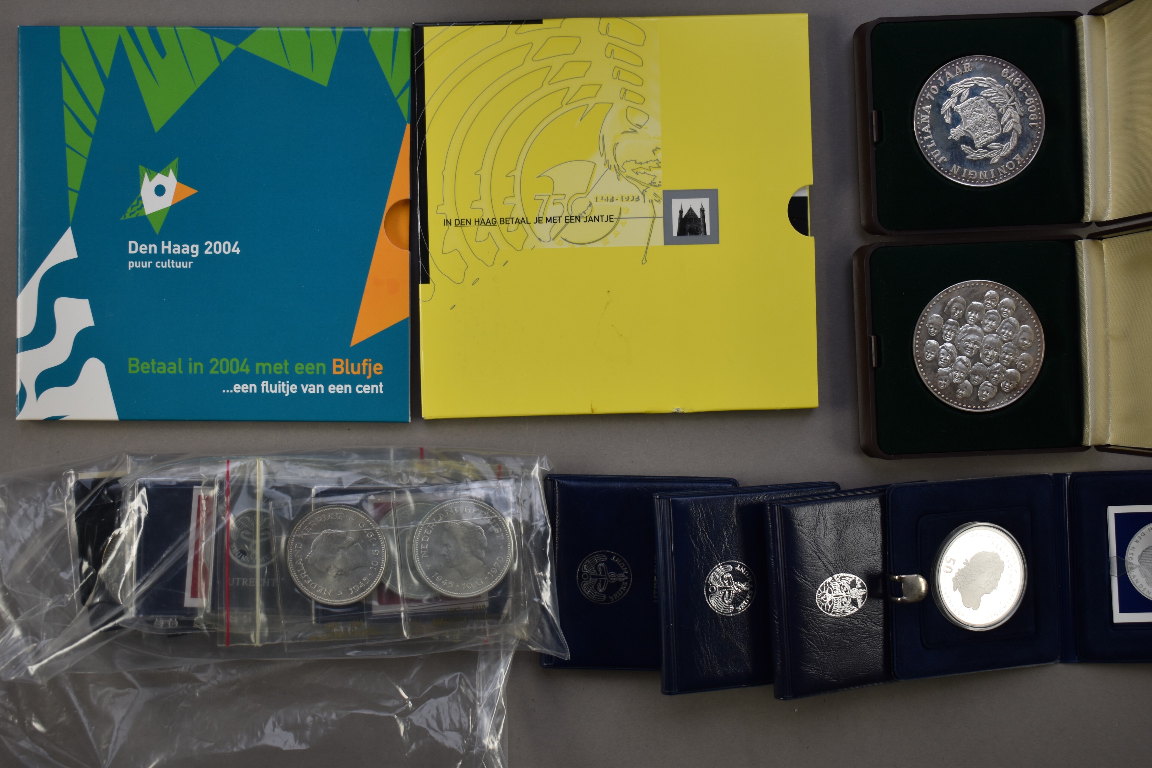 NEDERLAND, zilveren Rijksdaalders, 50 gulden-stukken, zilveren penningen, jaarsets, alsmede iets buitenland