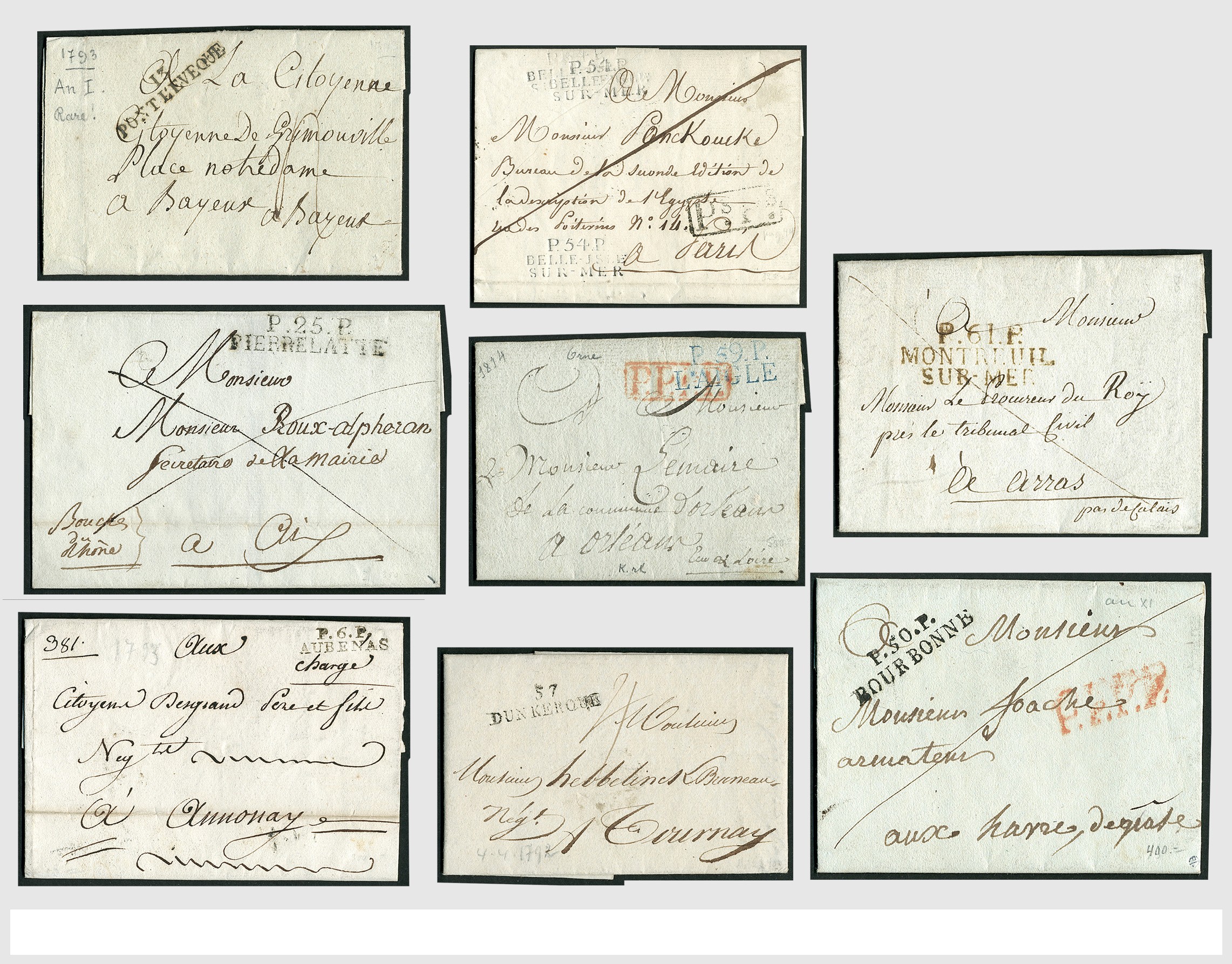 FRANCE 1749-1841, Pré-Philatelic covers, 437 ex. in 10 albums in overall good quality. Beautiful lot for the specialist