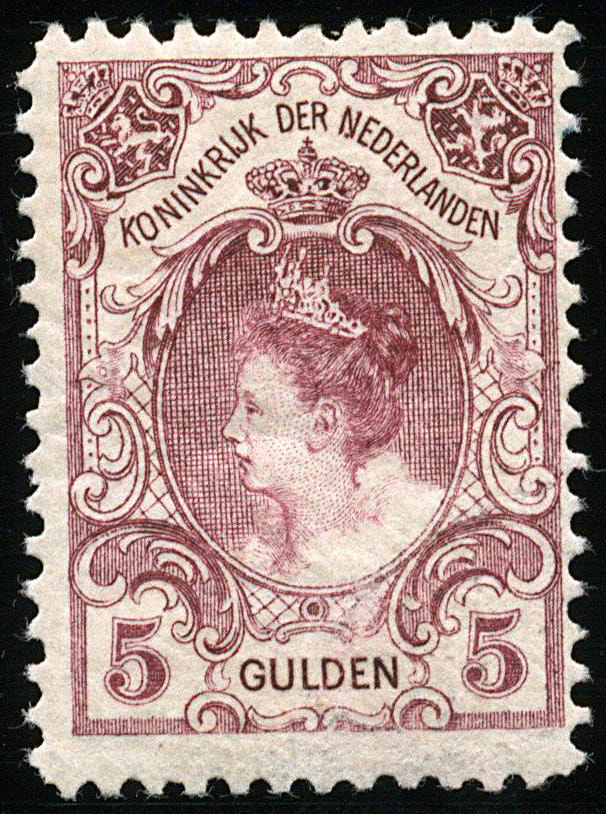 79PM, 5 gulden wijnrood, Lt. 11, met plaatfout 'Puntje onderin eerste N van Nederland', behoudens minimaal groen tandpuntje, een postfris prachtex. Cert. Vleeming (2024). Mast € 3500