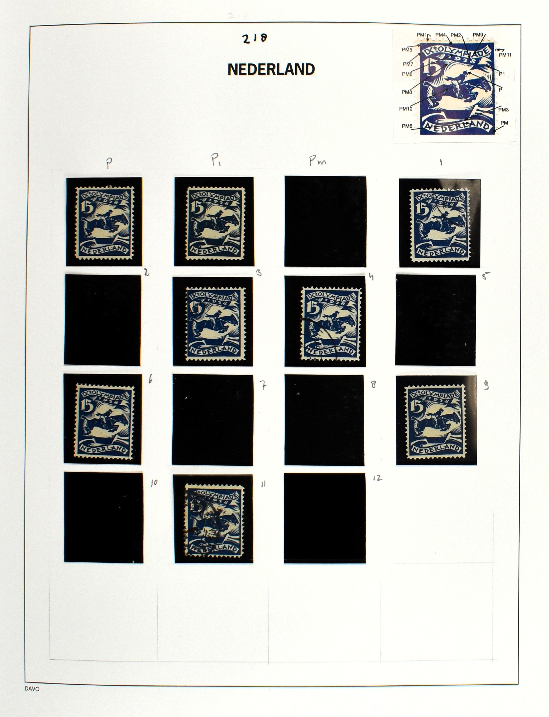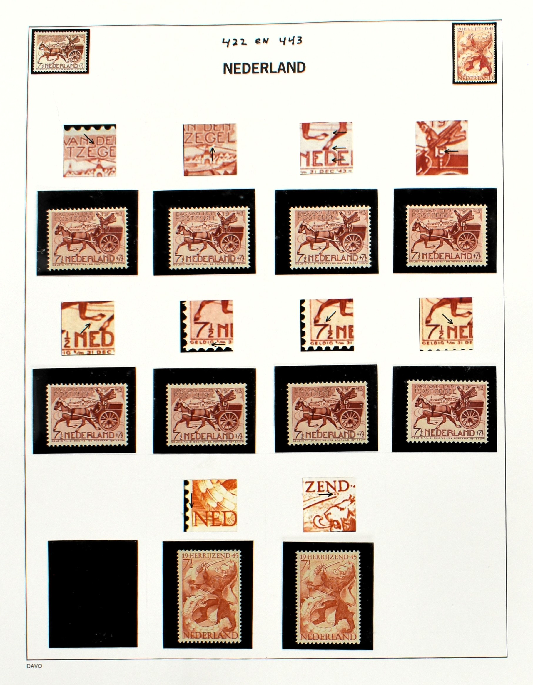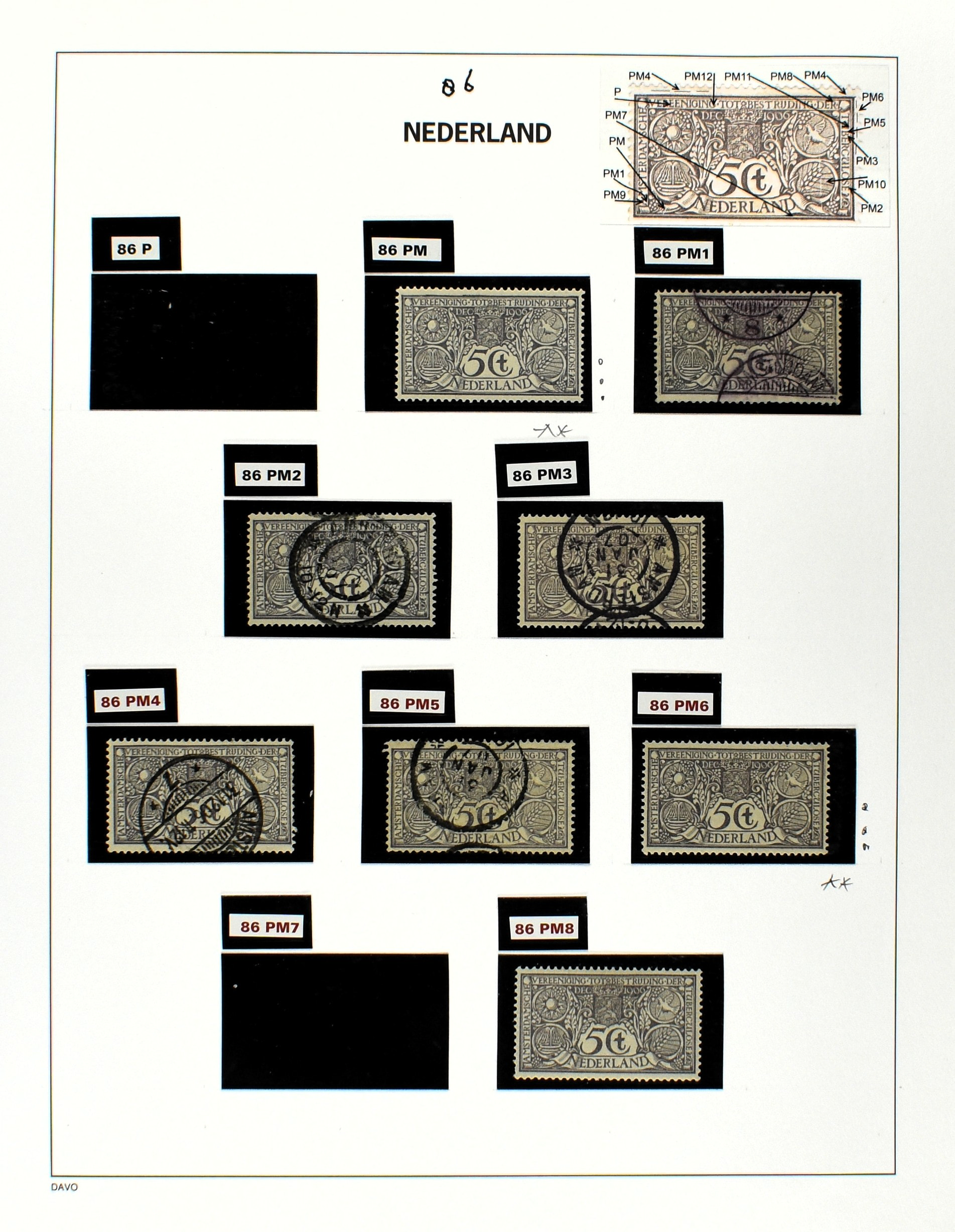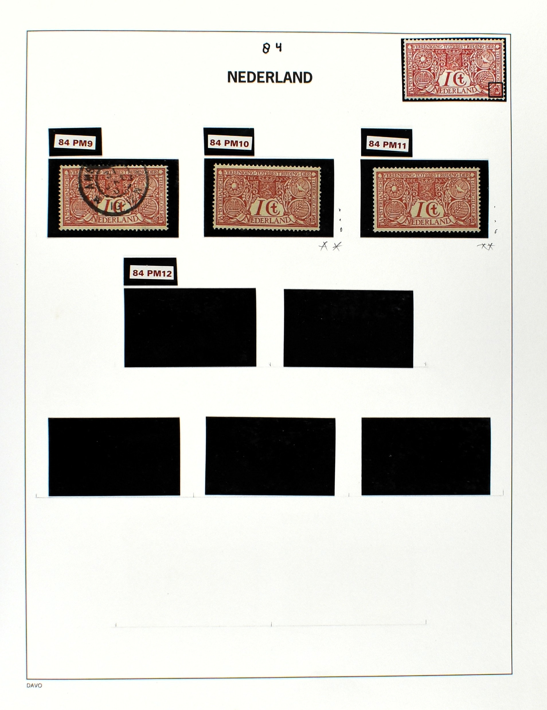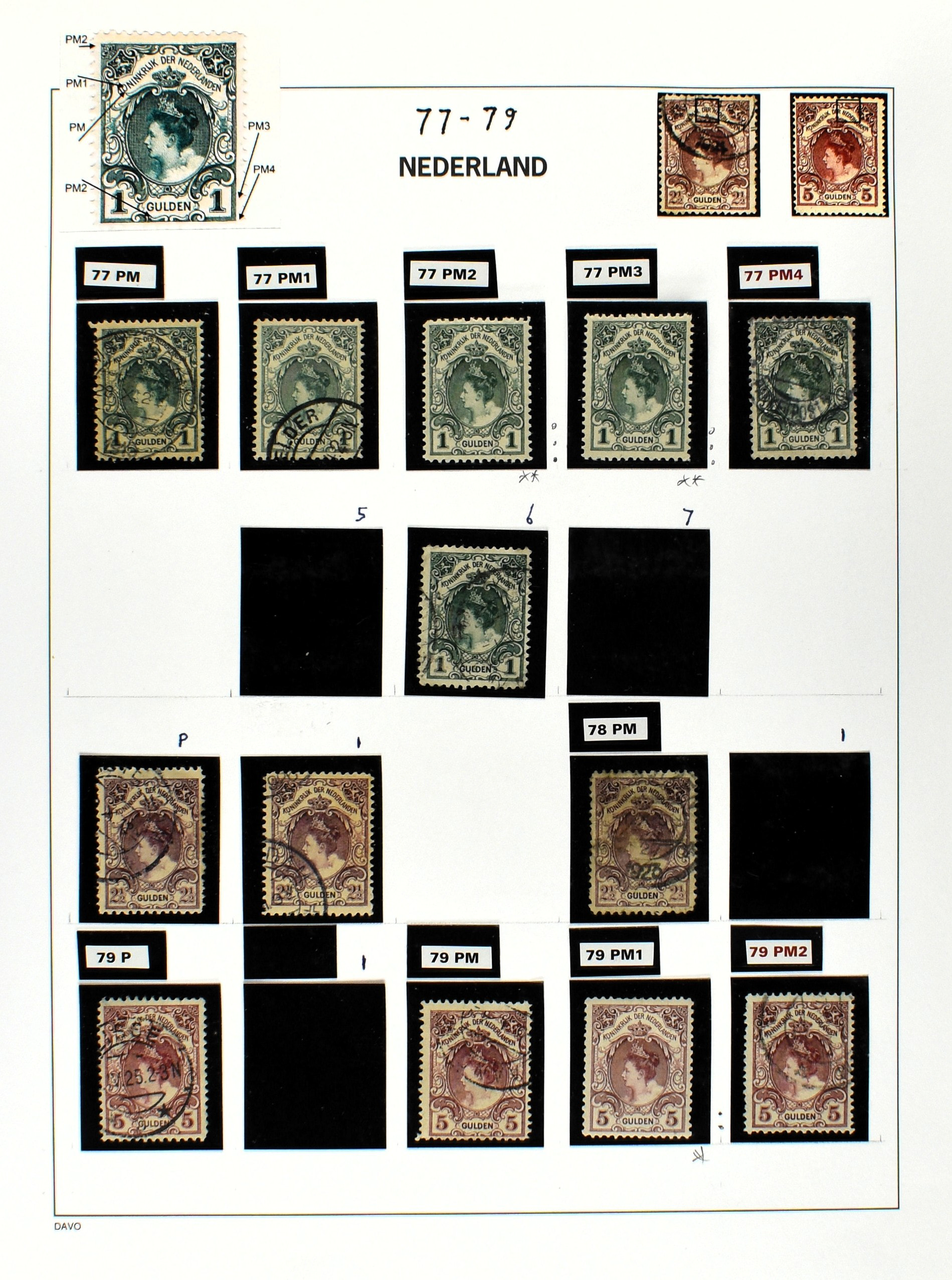 NEDERLAND 1852-2002, verzameling plaatfouten in 7 Davo albums volgens NVPH- en Mast-nummers waarbij diverse aardige klassieke nummers 14P*, 36PM5**, 77PM2**, 99PM**, 101P+PM, 104PM** enz., enz. Verzameling met enorme cataloguswaarde, ideaal om voort te zetten/completeren