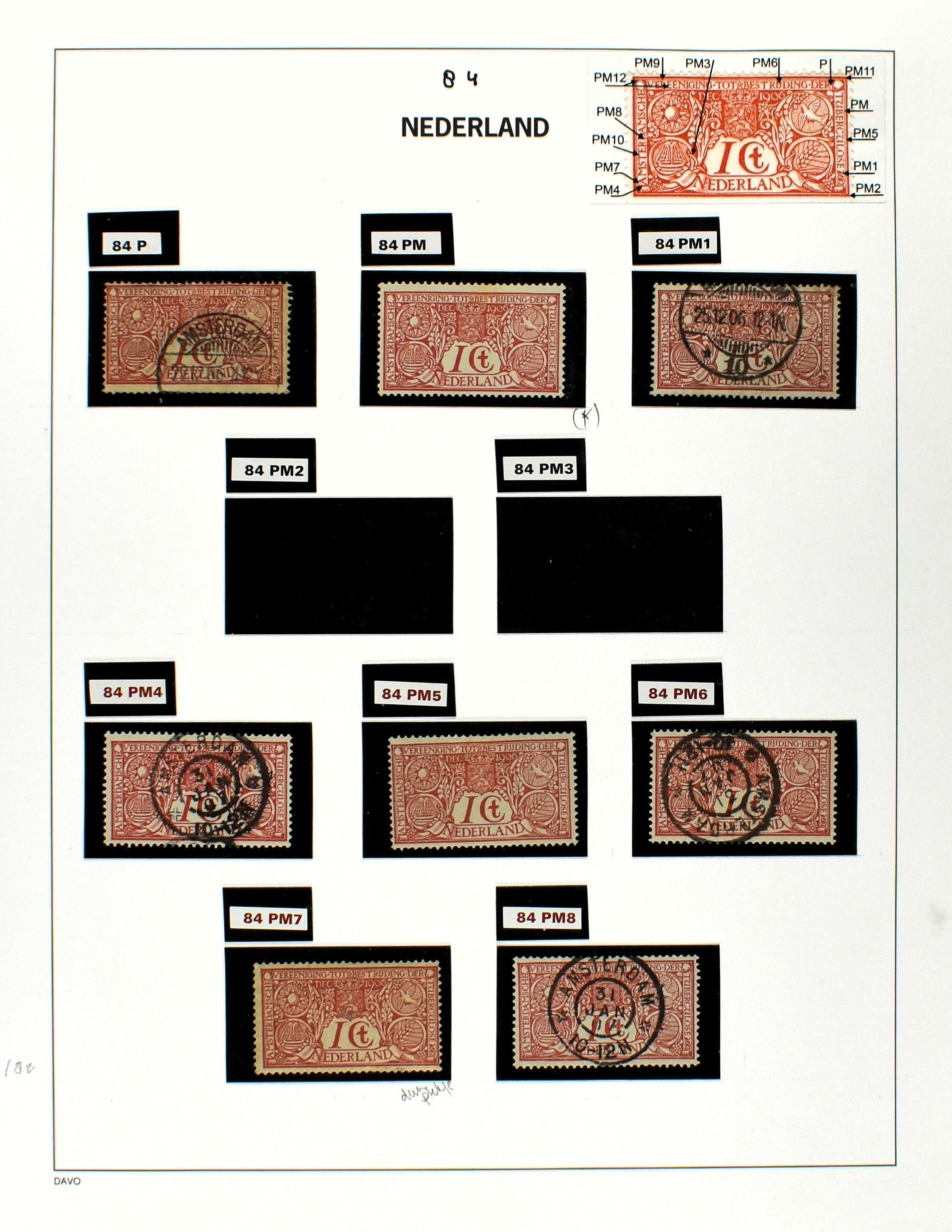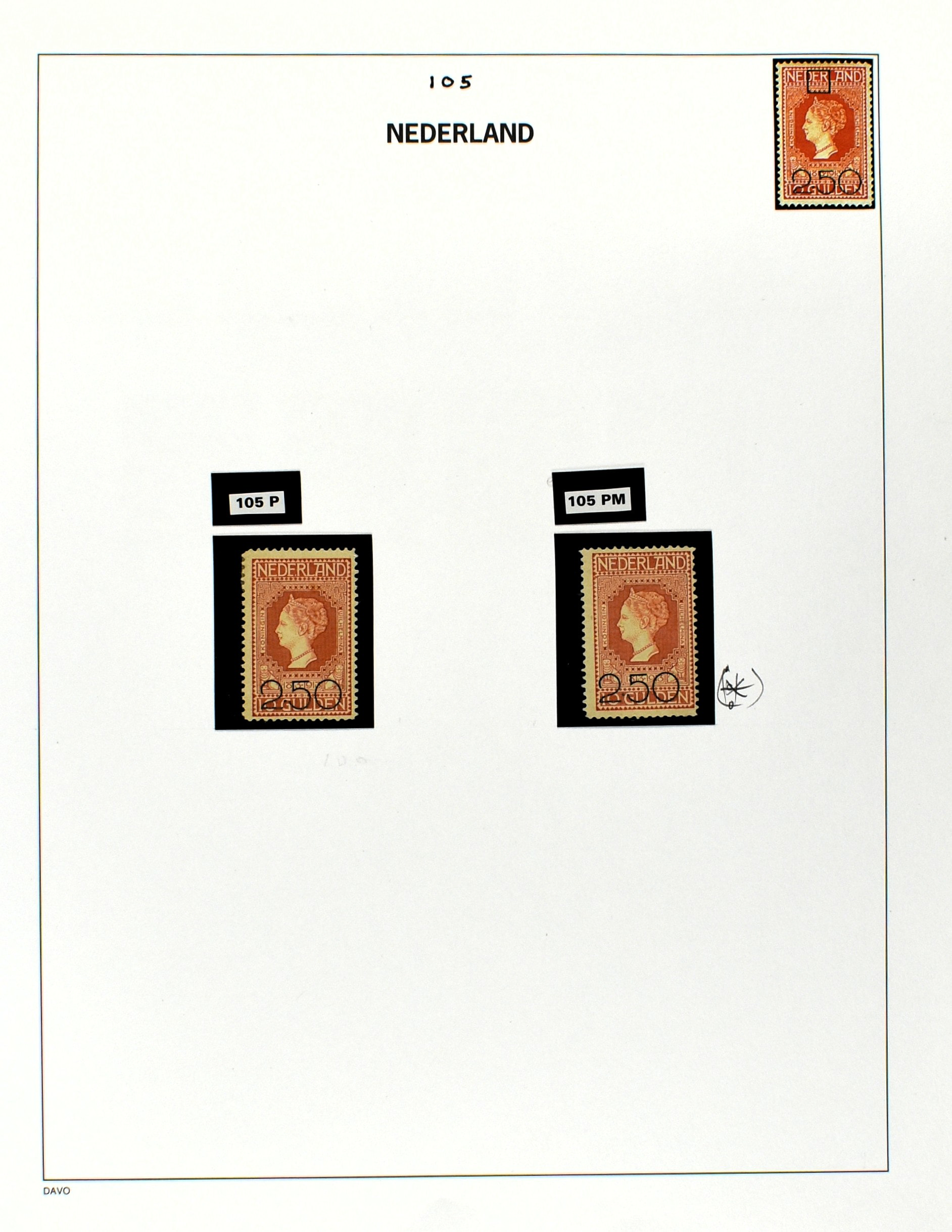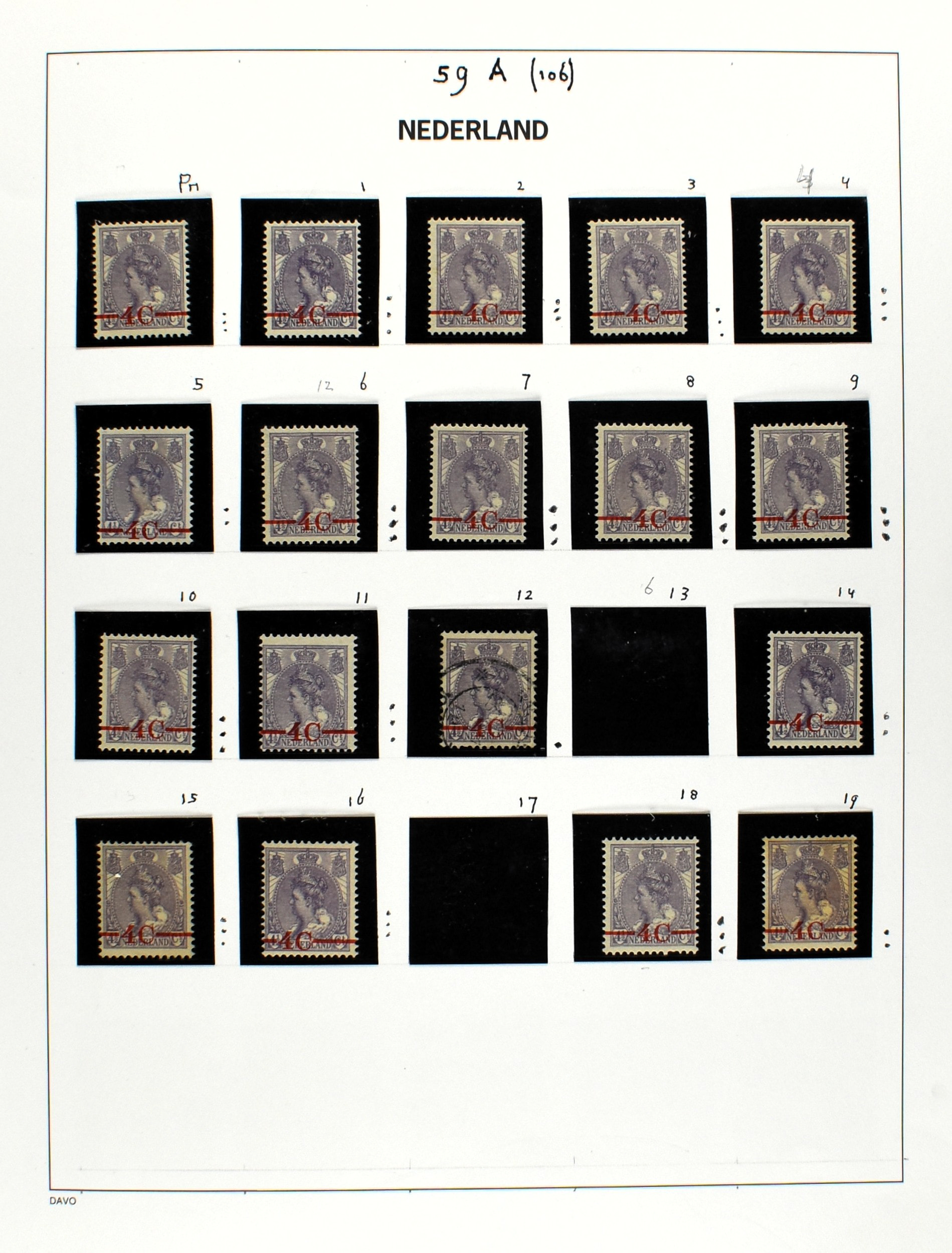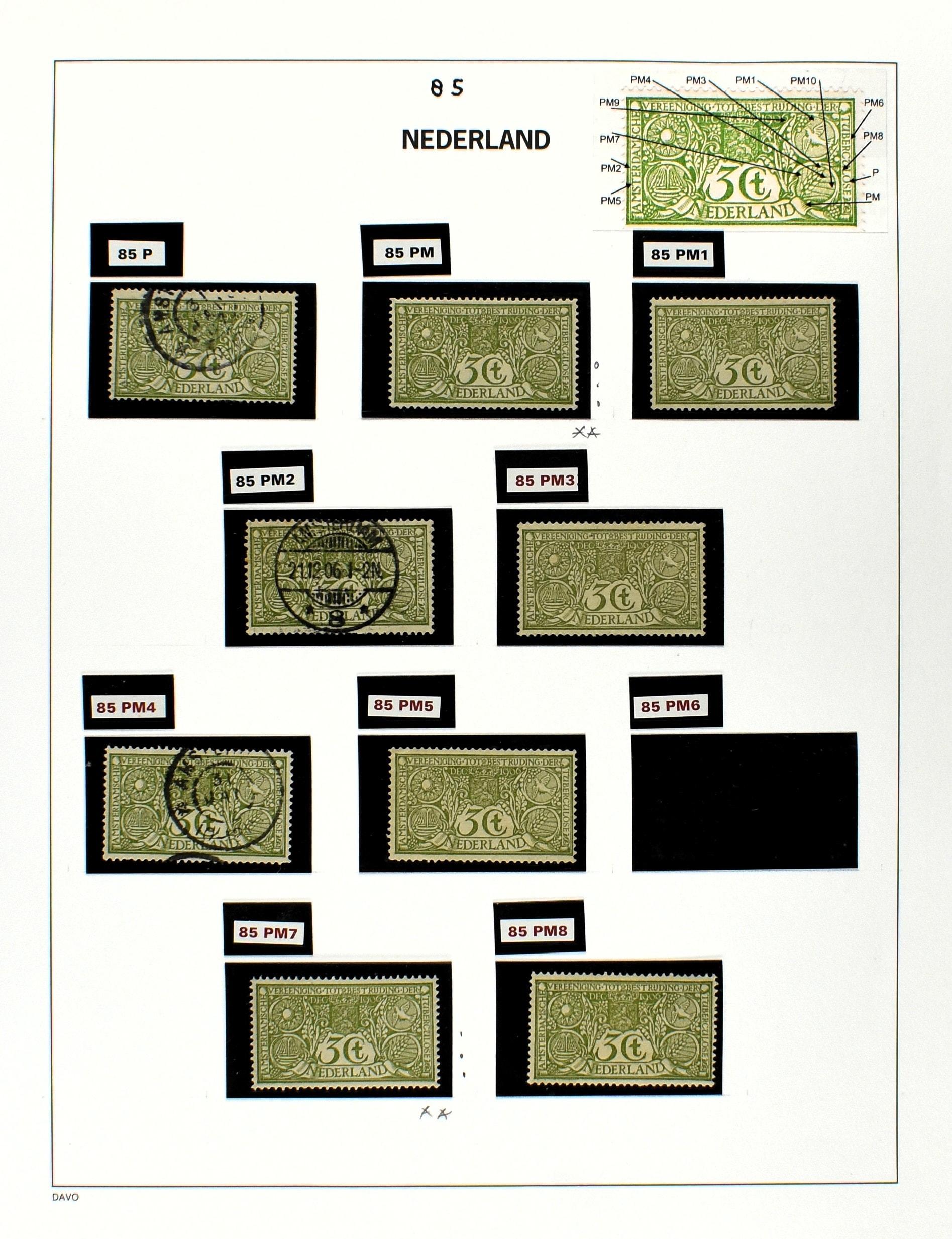 NEDERLAND 1852-2002, verzameling plaatfouten in 7 Davo albums volgens NVPH- en Mast-nummers waarbij diverse aardige klassieke nummers 14P*, 36PM5**, 77PM2**, 99PM**, 101P+PM, 104PM** enz., enz. Verzameling met enorme cataloguswaarde, ideaal om voort te zetten/completeren