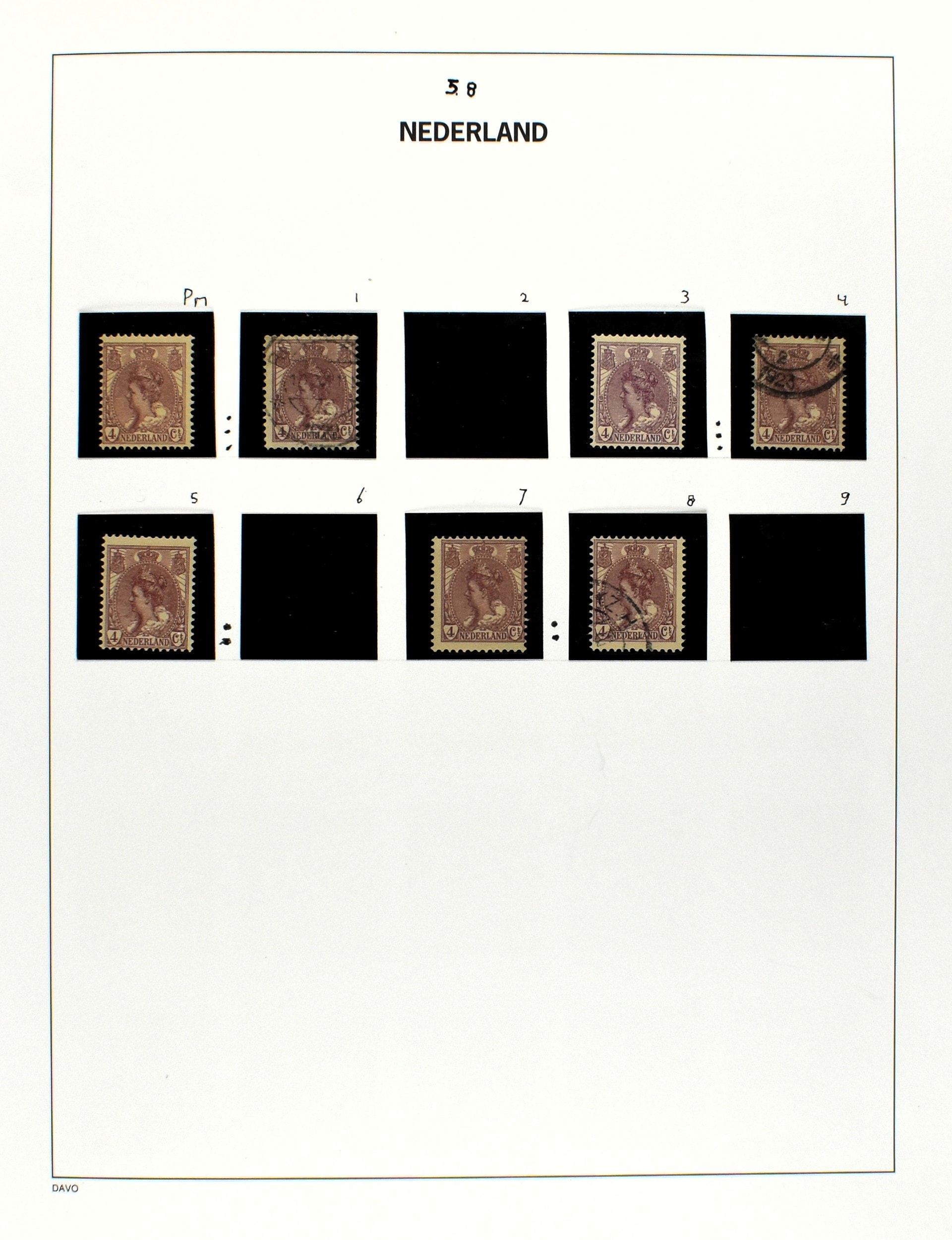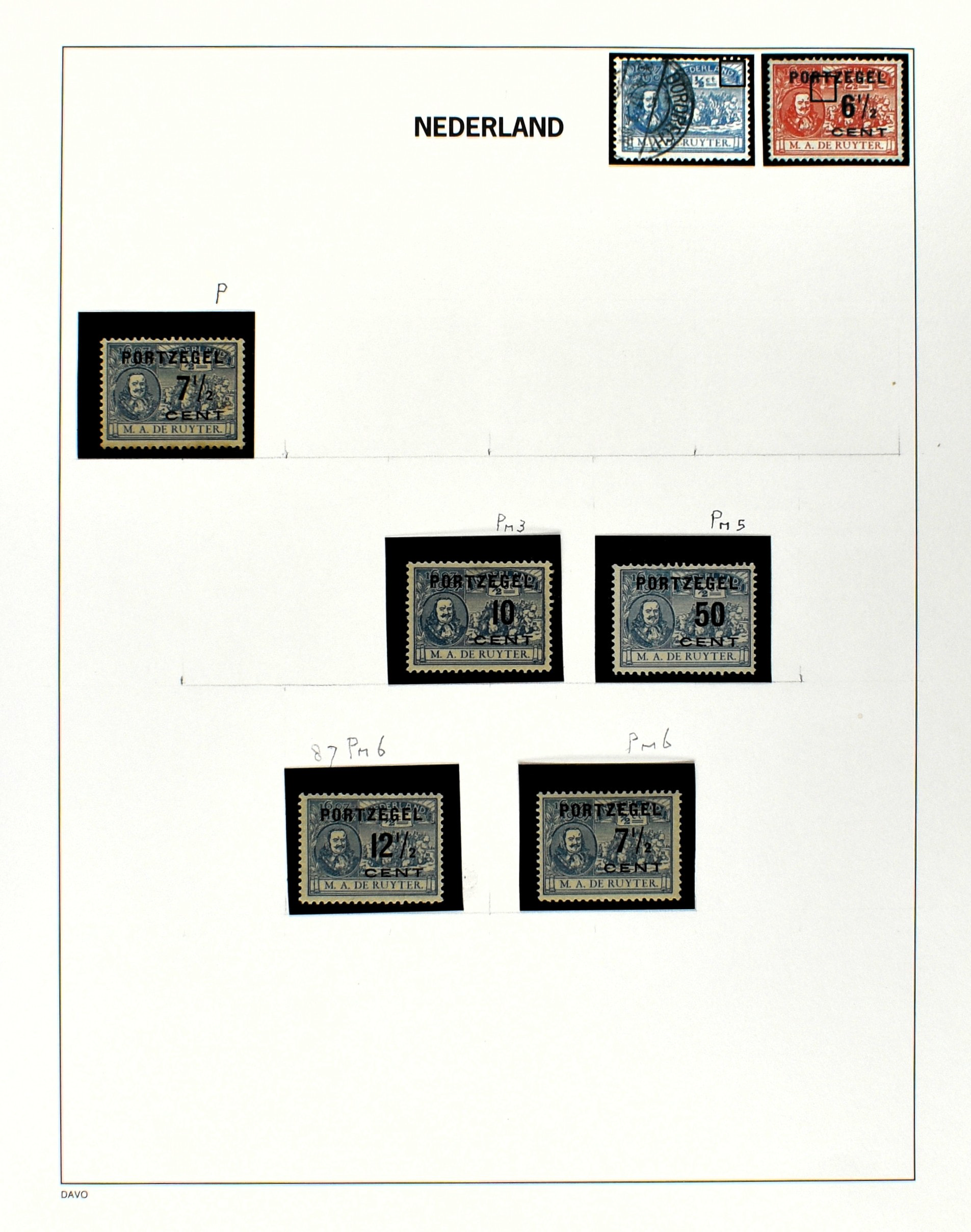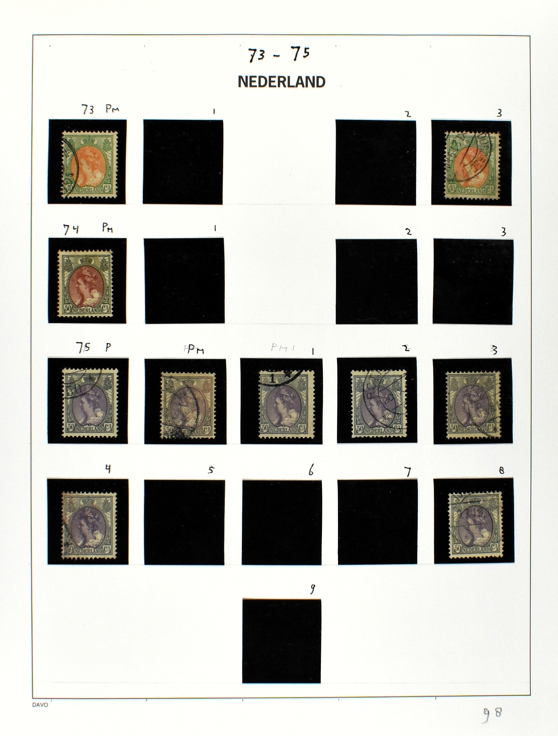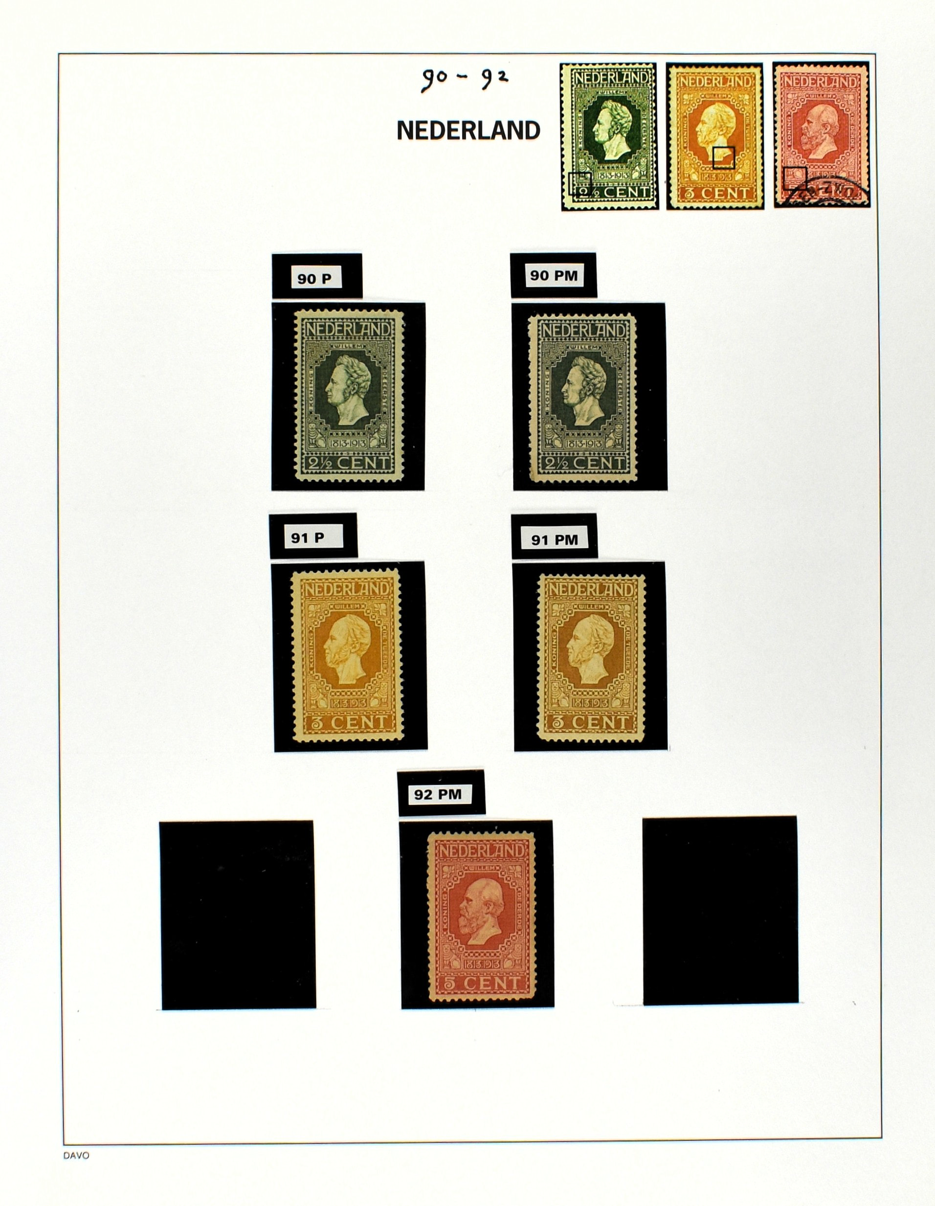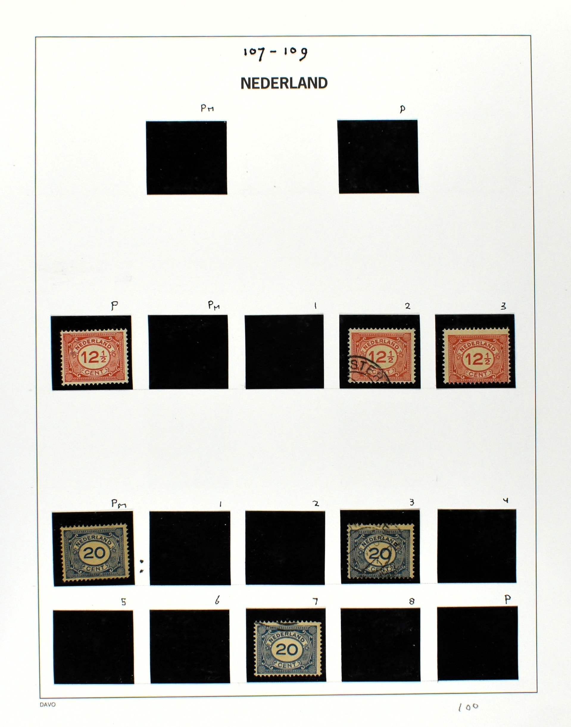 NEDERLAND 1852-2002, verzameling plaatfouten in 7 Davo albums volgens NVPH- en Mast-nummers waarbij diverse aardige klassieke nummers 14P*, 36PM5**, 77PM2**, 99PM**, 101P+PM, 104PM** enz., enz. Verzameling met enorme cataloguswaarde, ideaal om voort te zetten/completeren