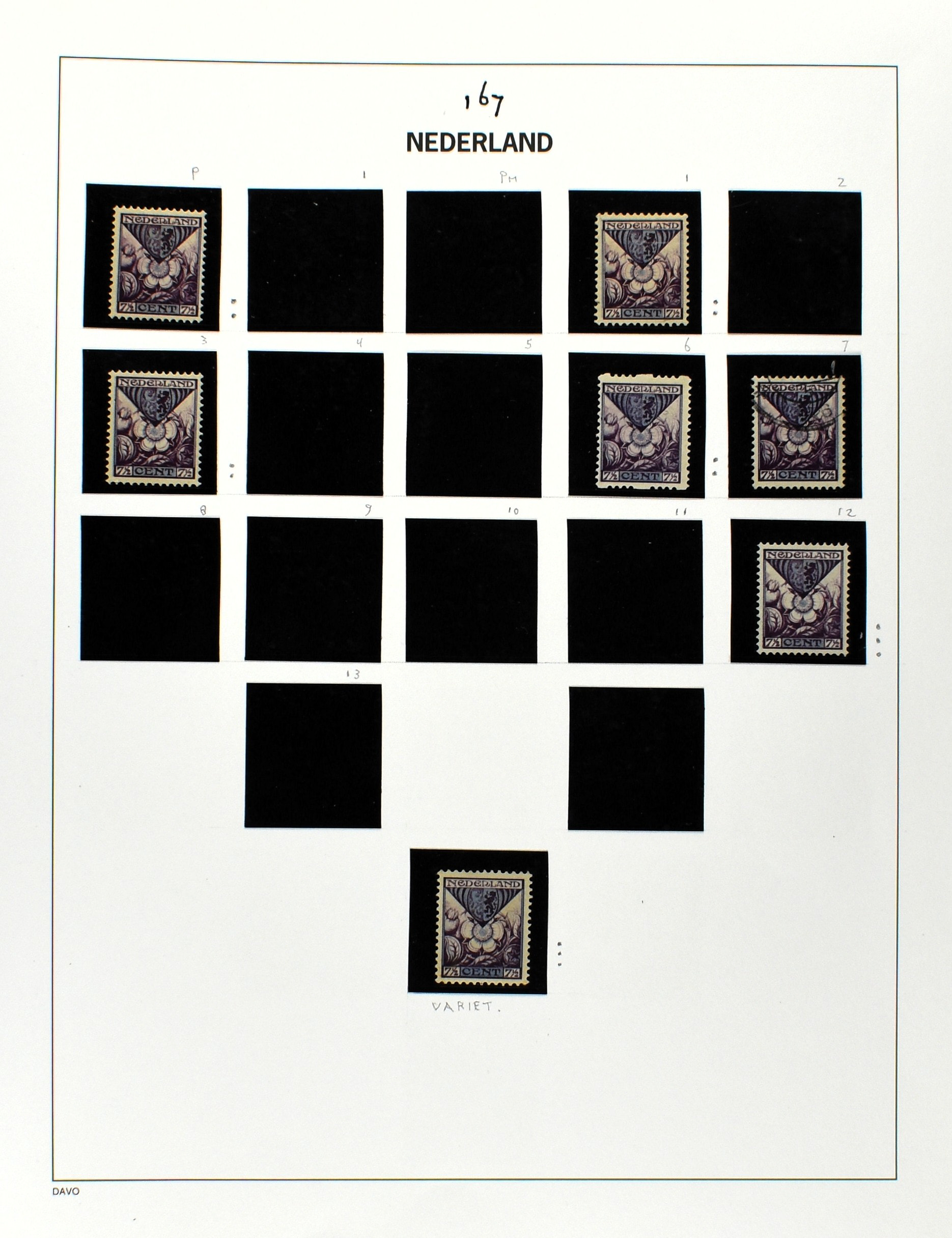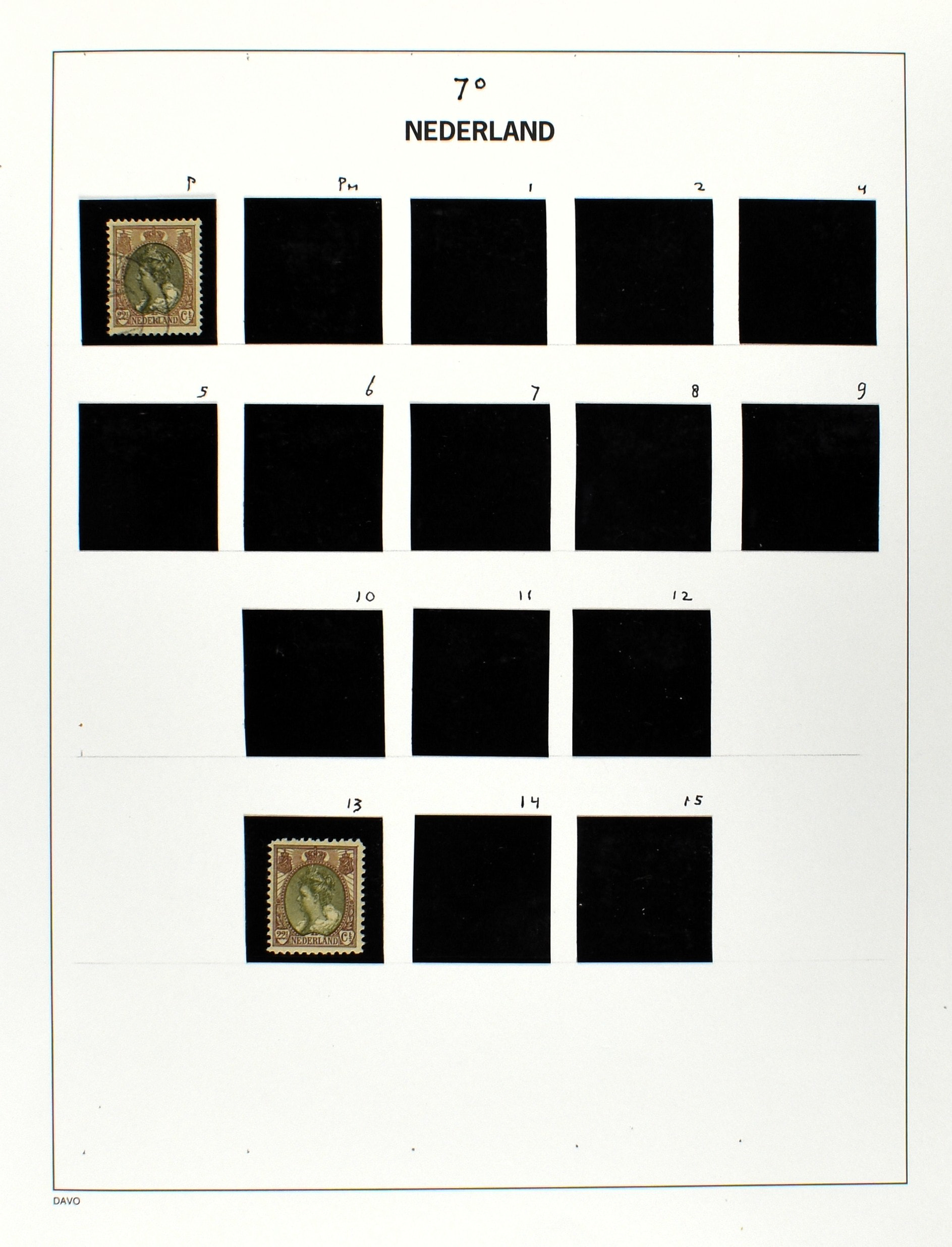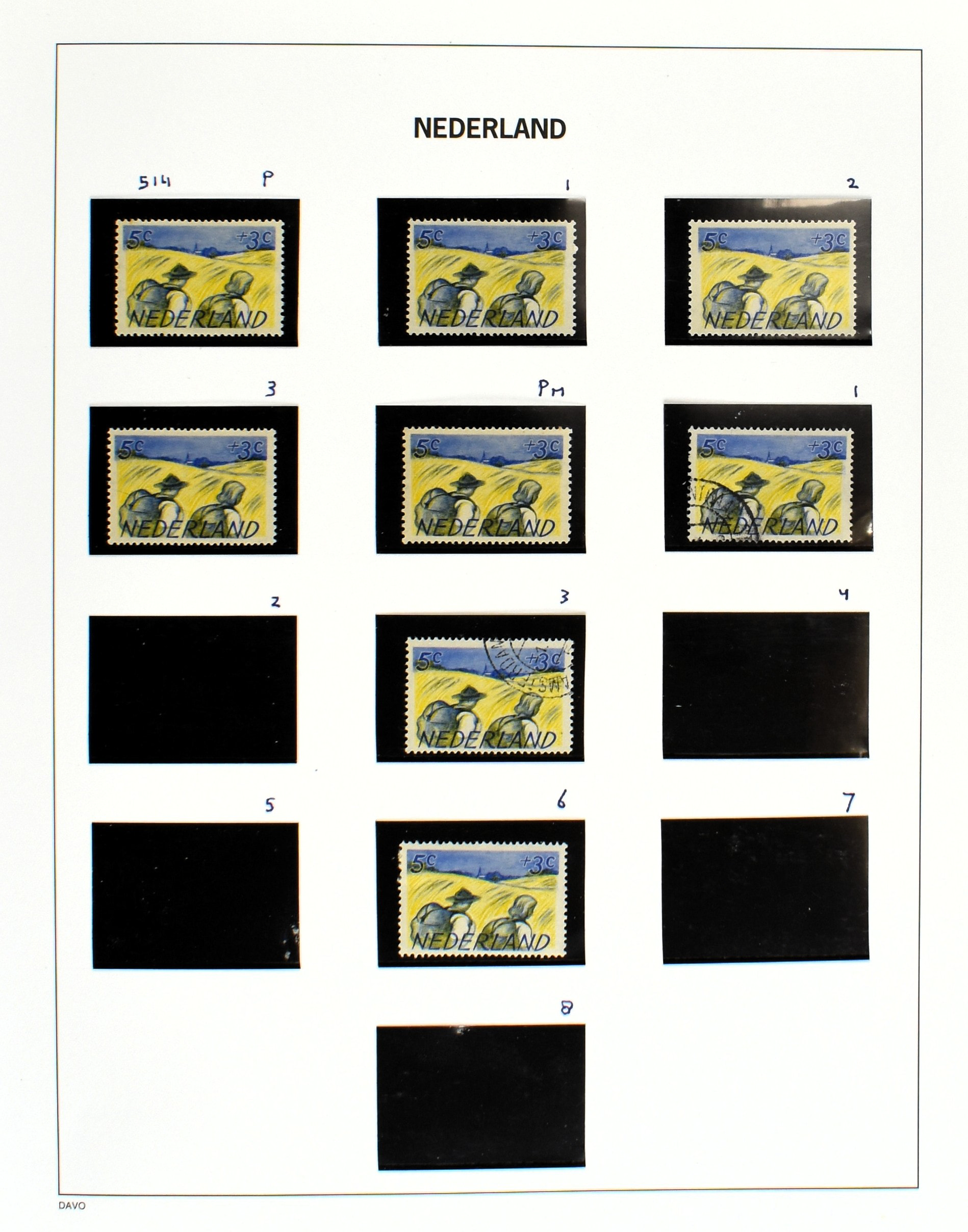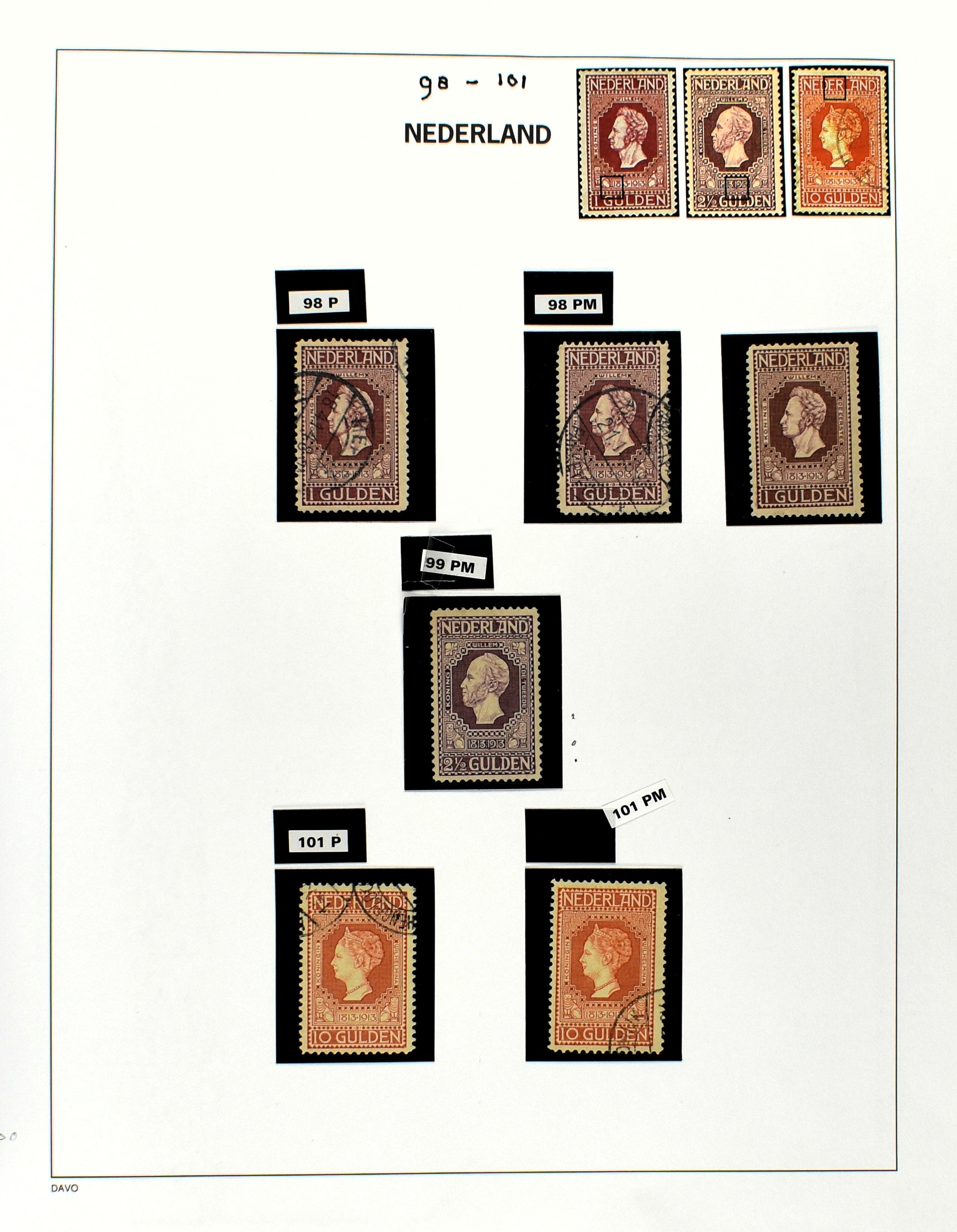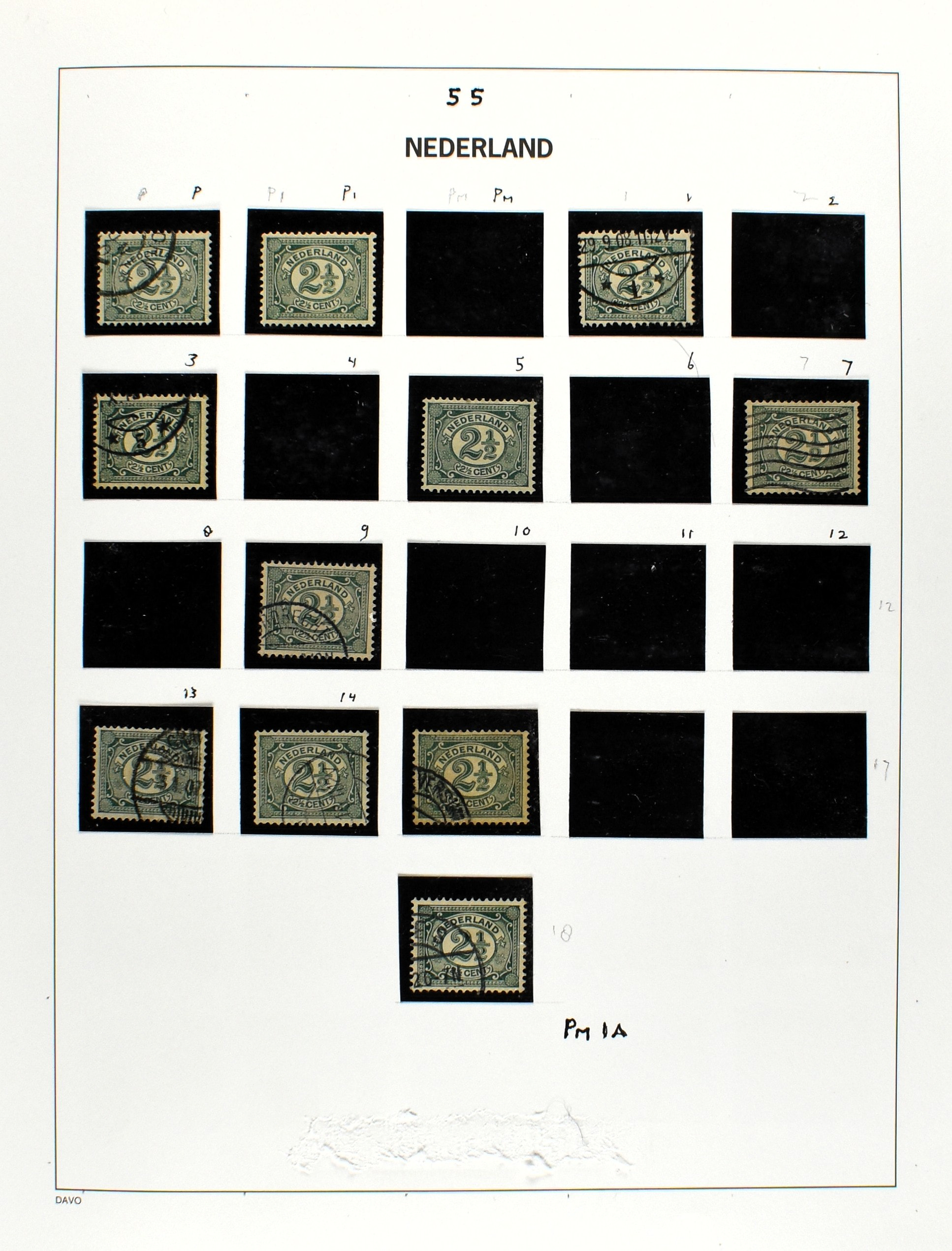 NEDERLAND 1852-2002, verzameling plaatfouten in 7 Davo albums volgens NVPH- en Mast-nummers waarbij diverse aardige klassieke nummers 14P*, 36PM5**, 77PM2**, 99PM**, 101P+PM, 104PM** enz., enz. Verzameling met enorme cataloguswaarde, ideaal om voort te zetten/completeren