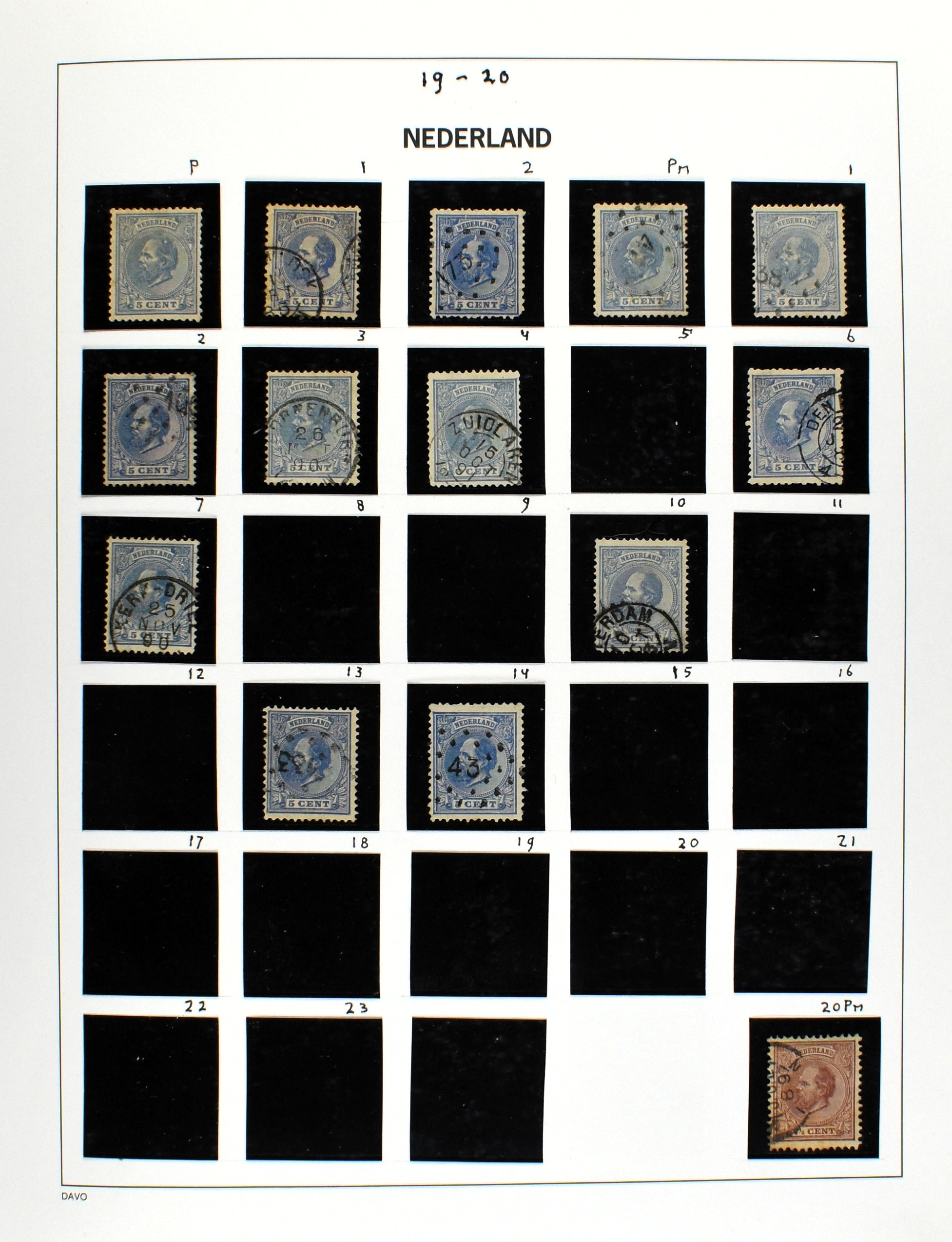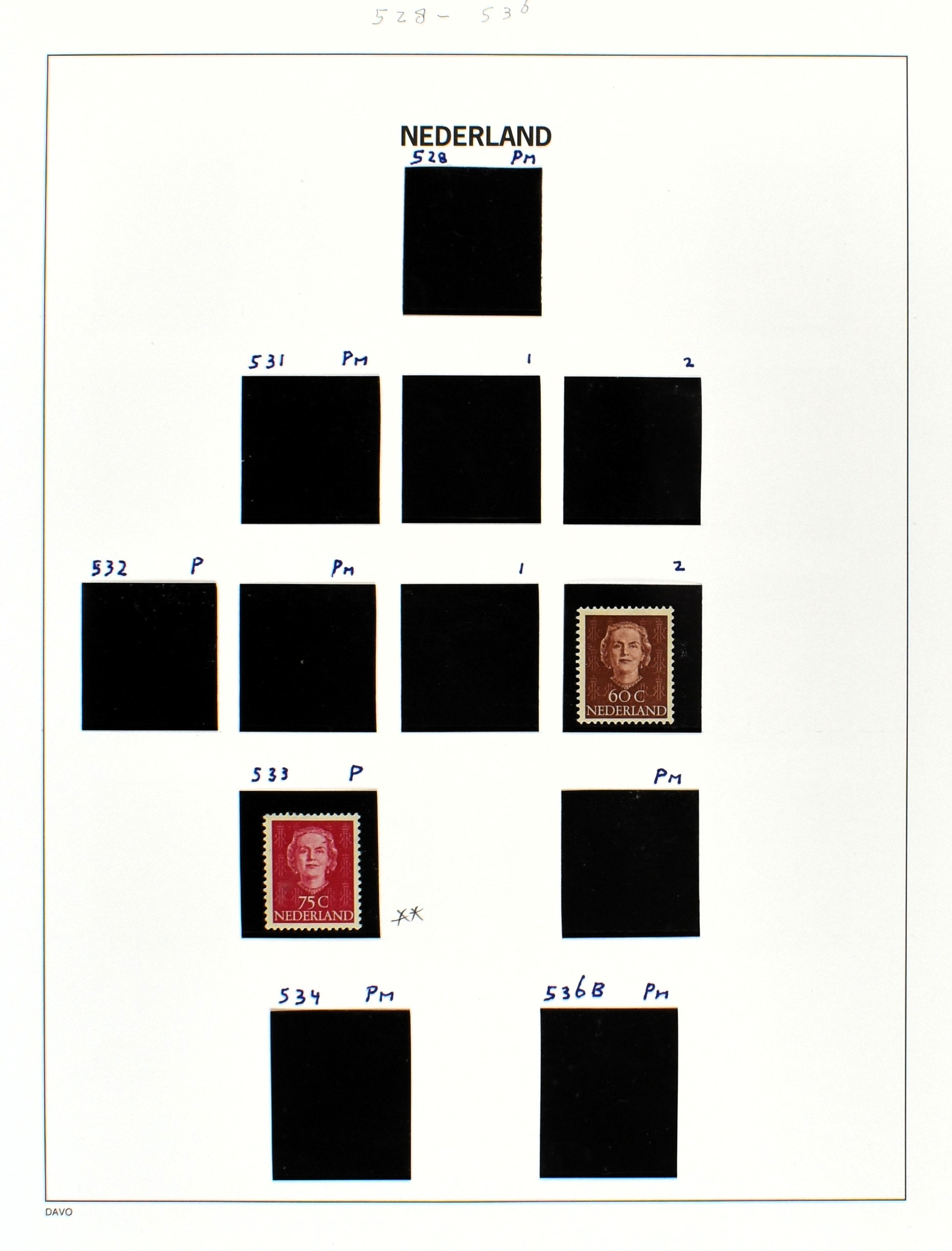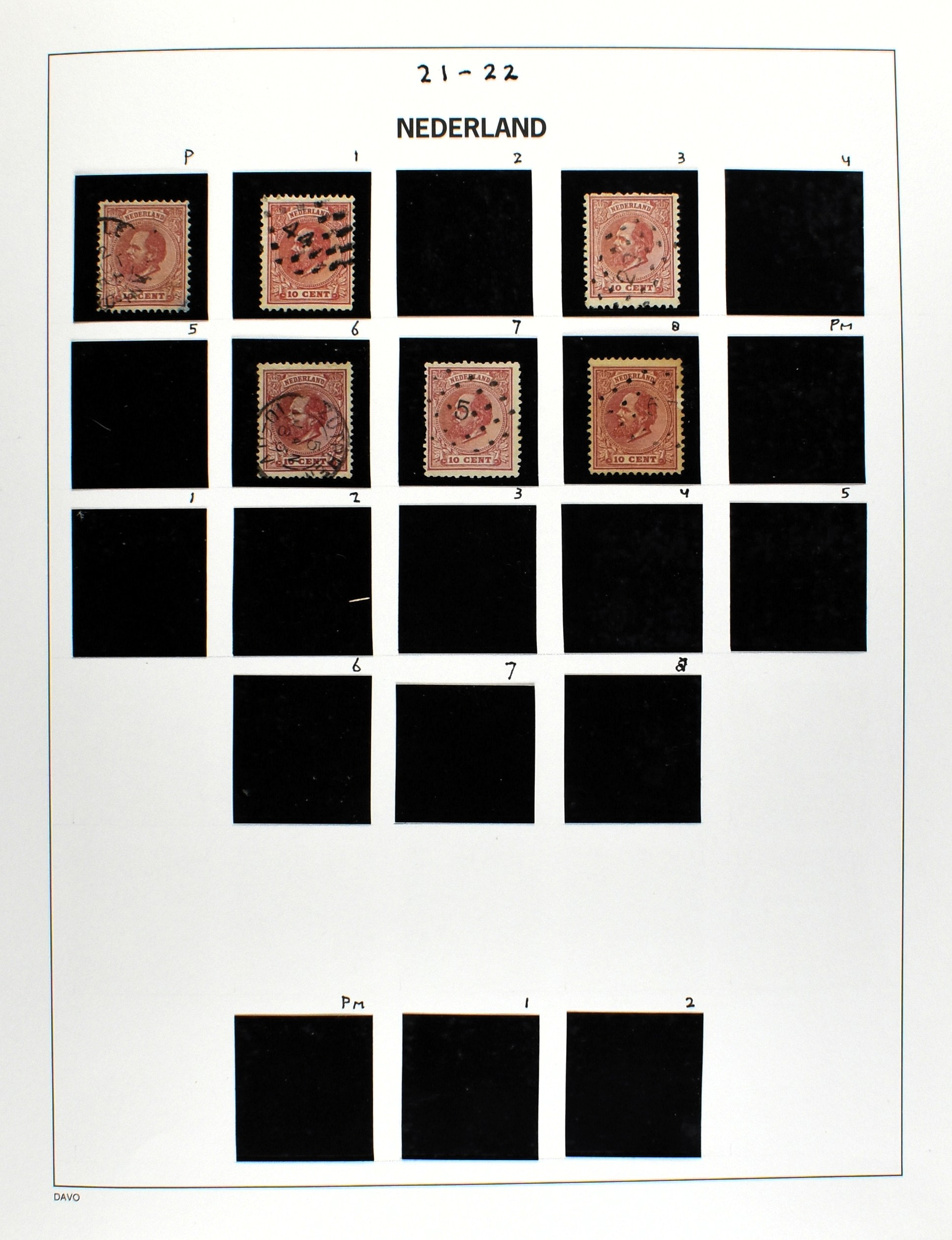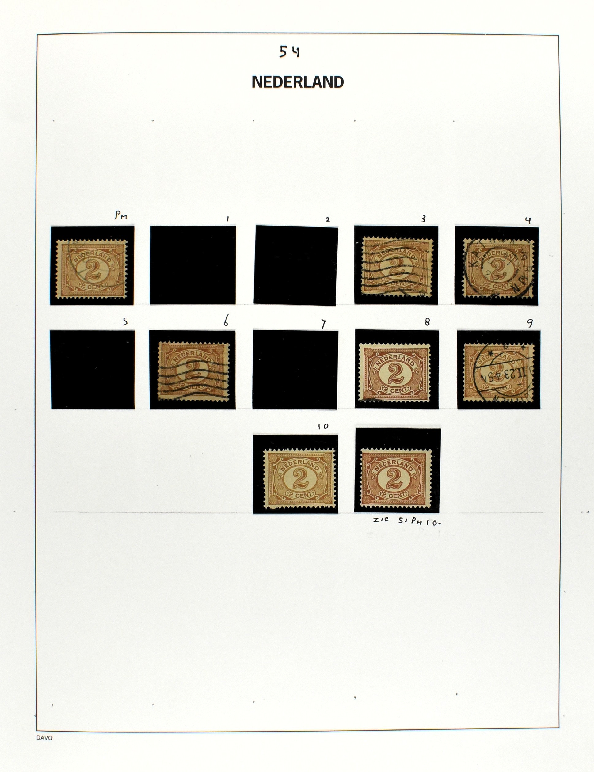 NEDERLAND 1852-2002, verzameling plaatfouten in 7 Davo albums volgens NVPH- en Mast-nummers waarbij diverse aardige klassieke nummers 14P*, 36PM5**, 77PM2**, 99PM**, 101P+PM, 104PM** enz., enz. Verzameling met enorme cataloguswaarde, ideaal om voort te zetten/completeren