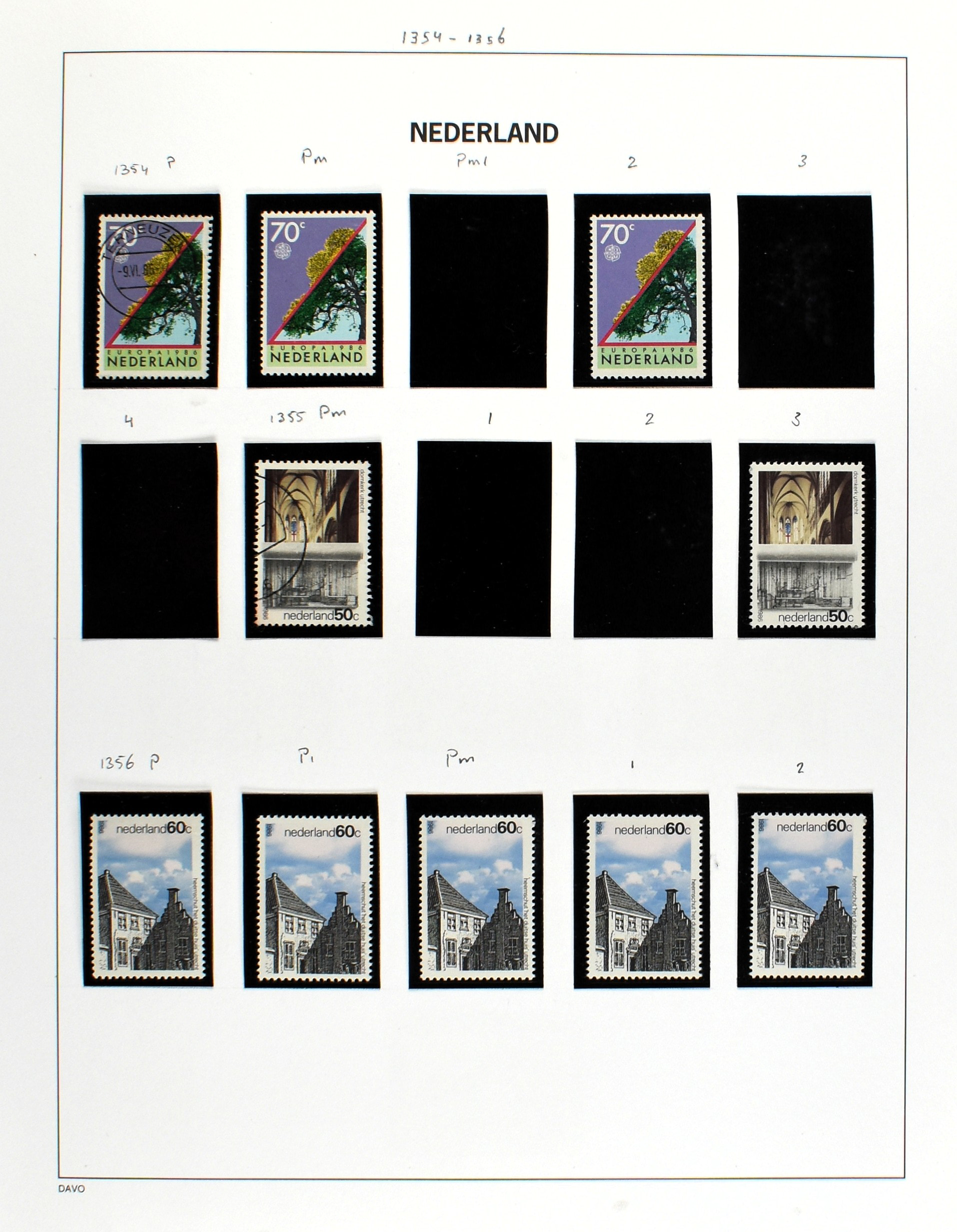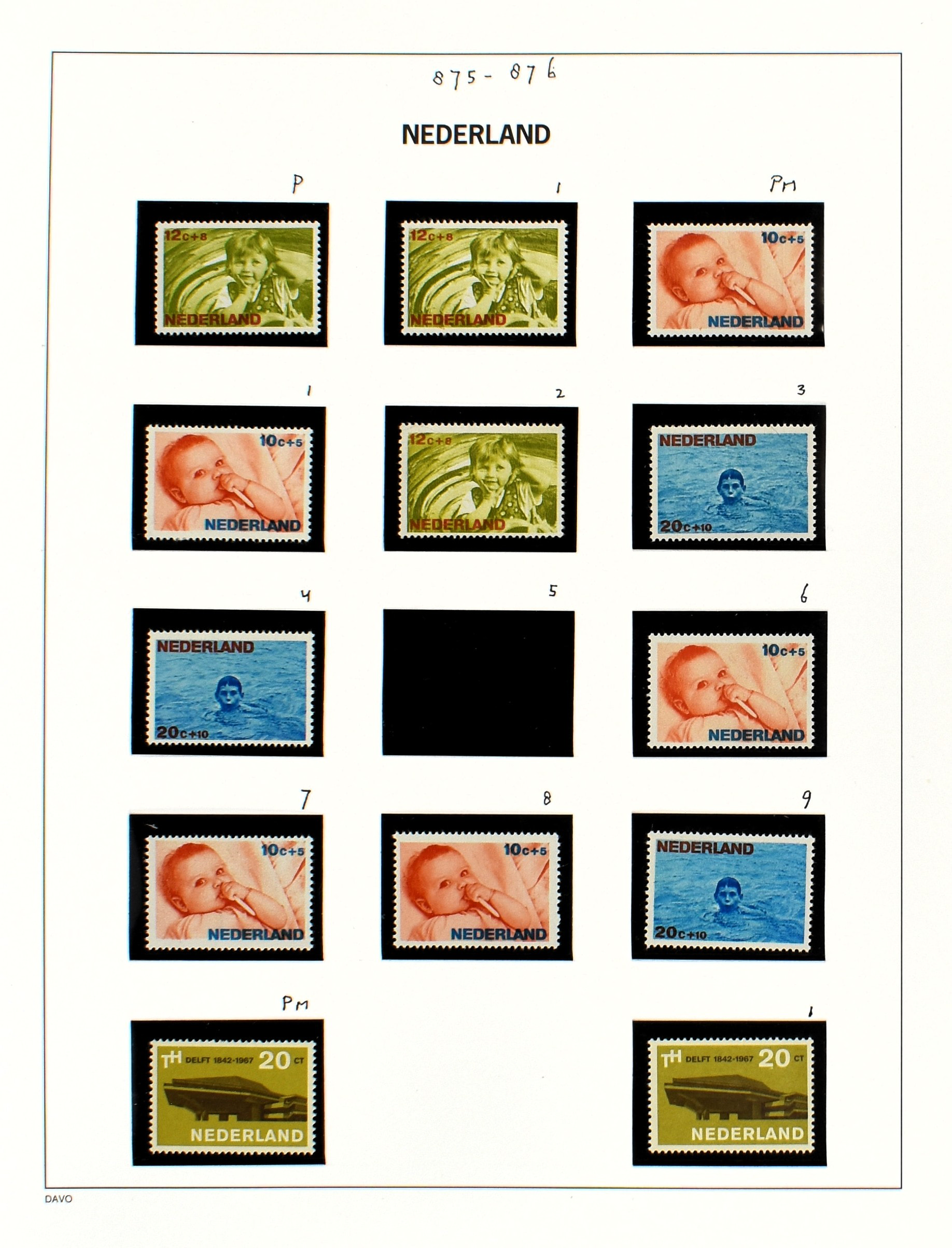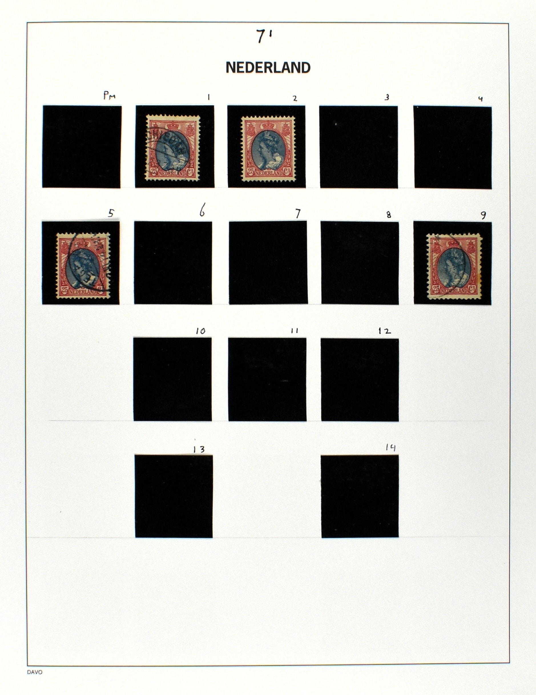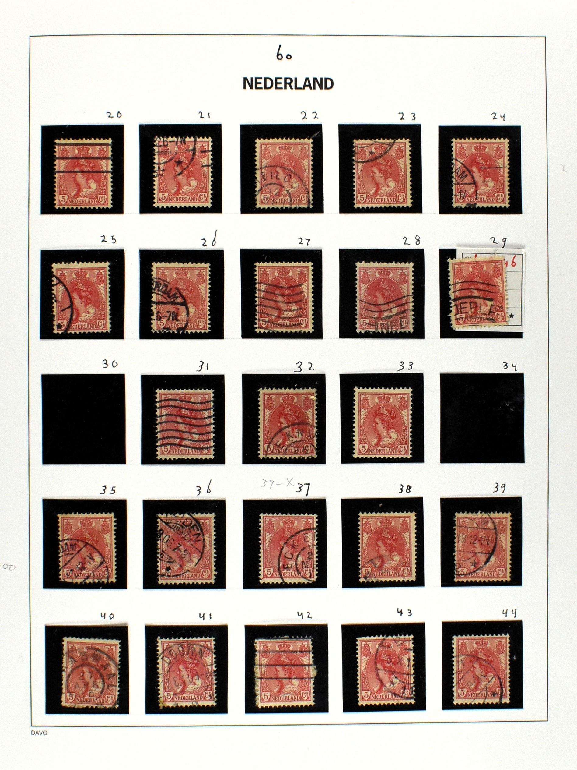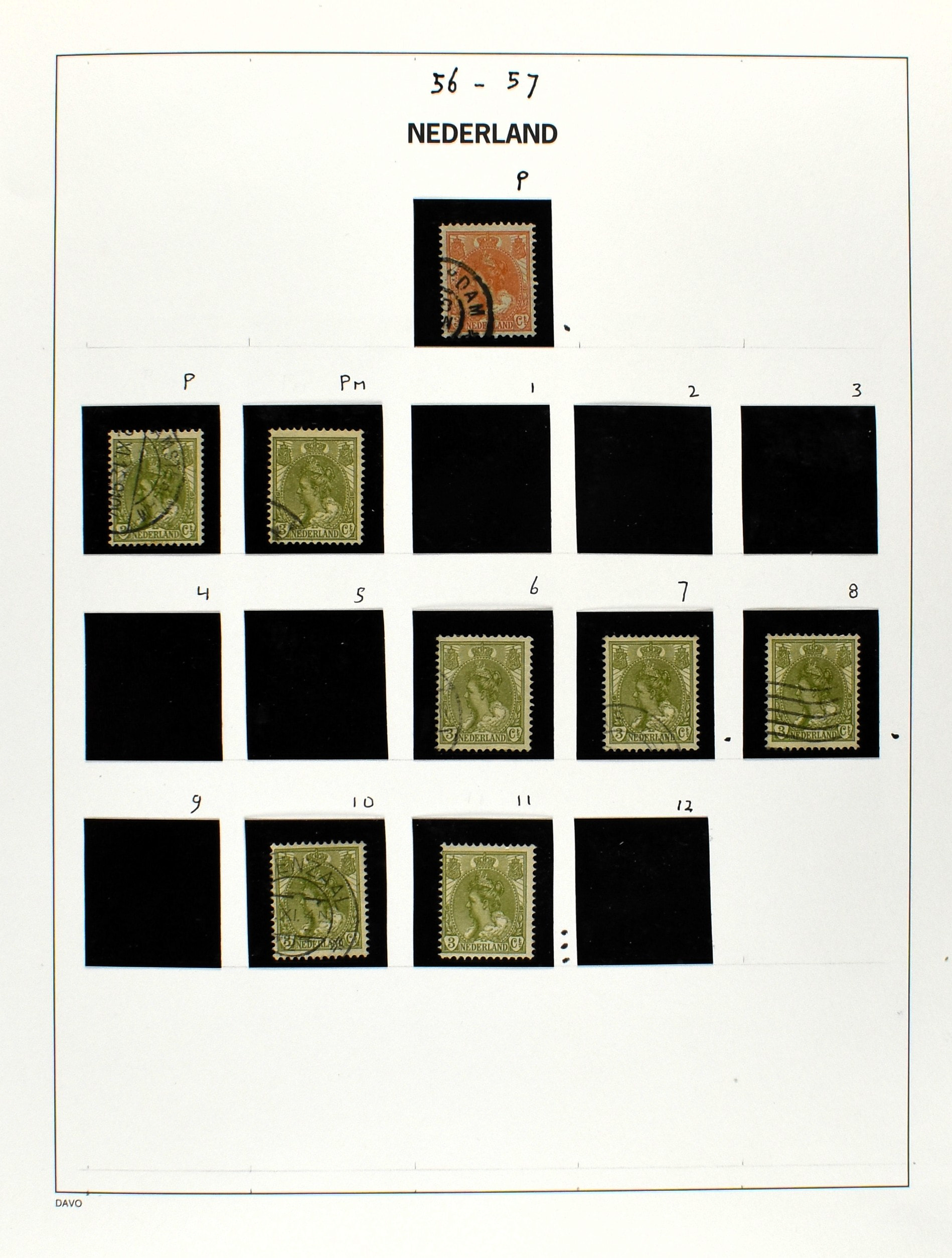 NEDERLAND 1852-2002, verzameling plaatfouten in 7 Davo albums volgens NVPH- en Mast-nummers waarbij diverse aardige klassieke nummers 14P*, 36PM5**, 77PM2**, 99PM**, 101P+PM, 104PM** enz., enz. Verzameling met enorme cataloguswaarde, ideaal om voort te zetten/completeren