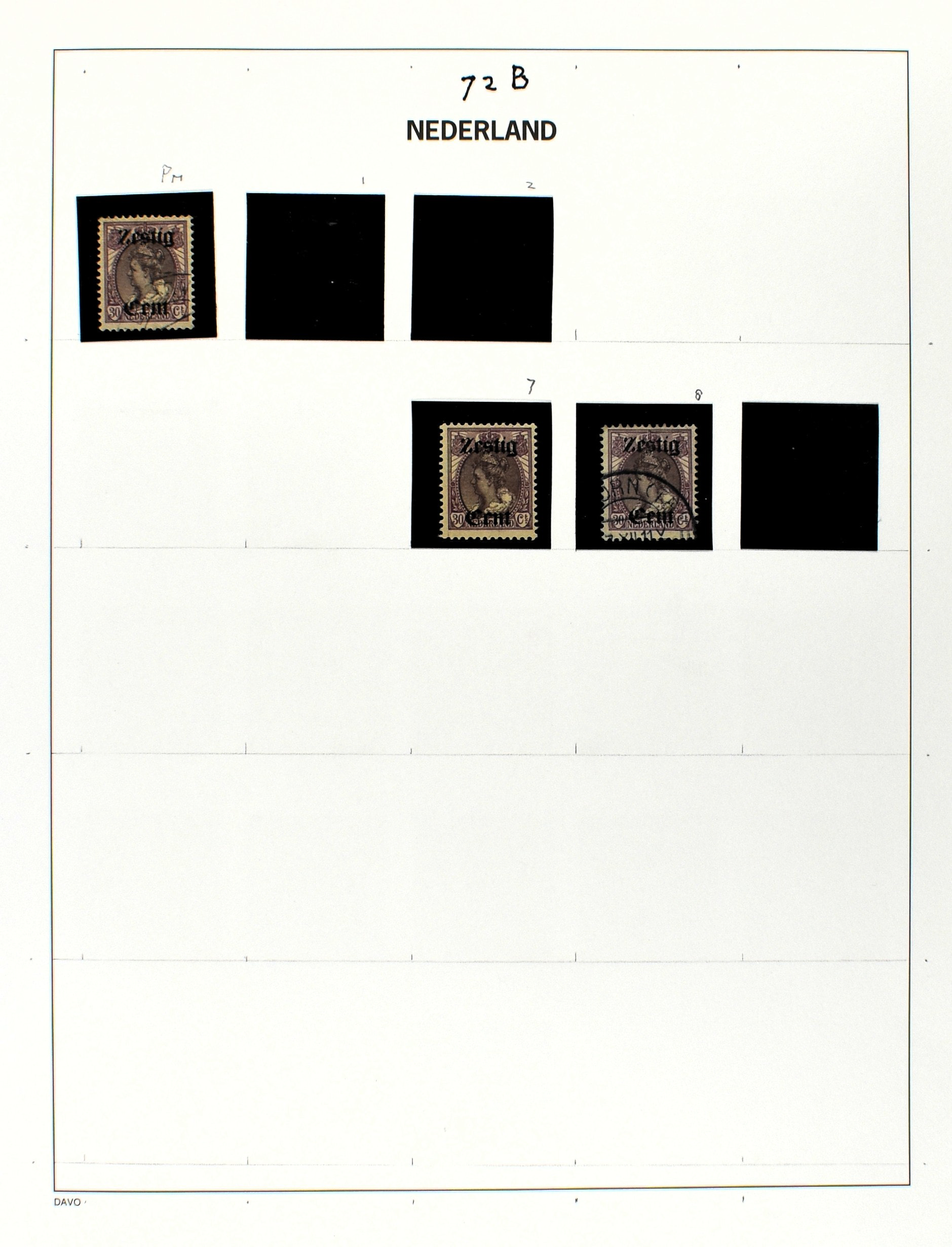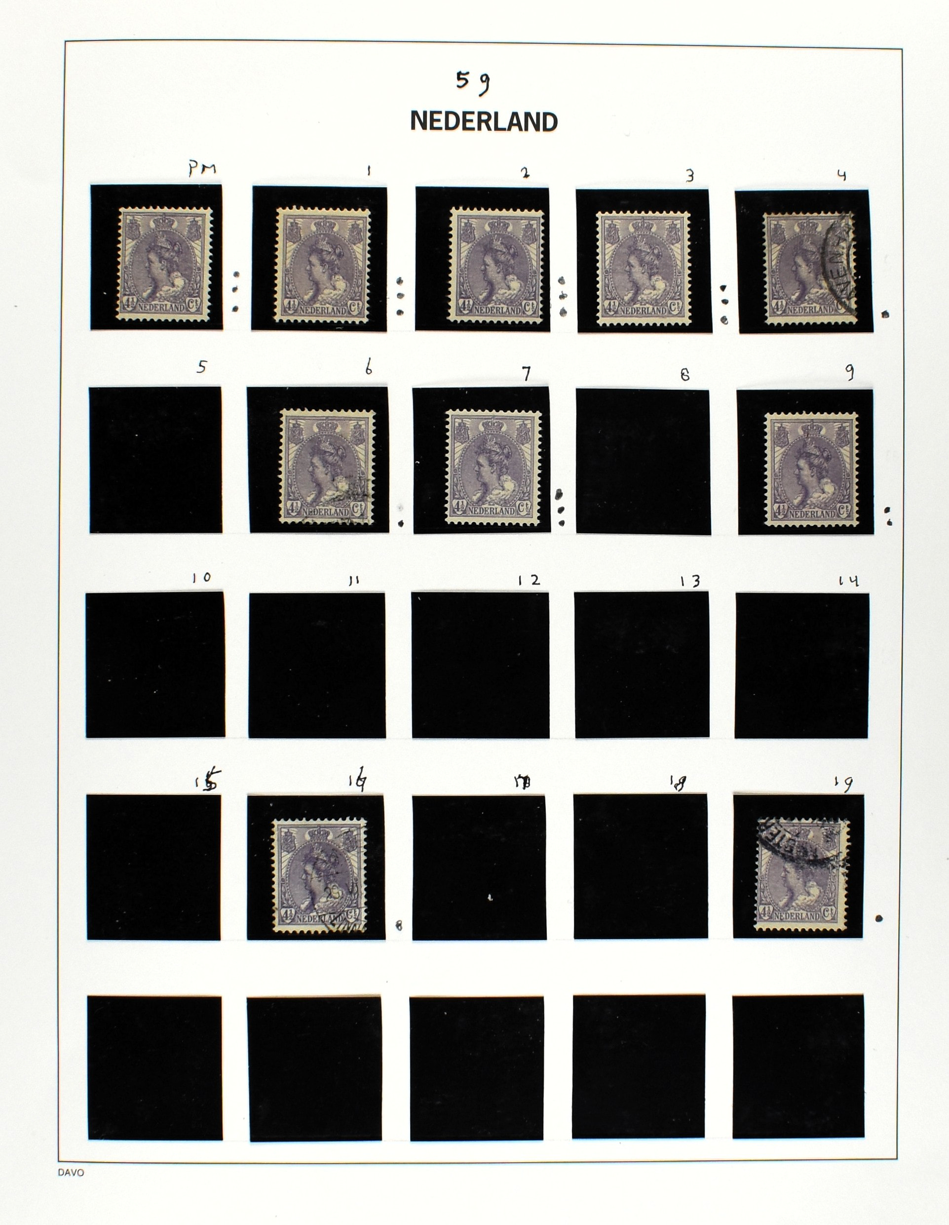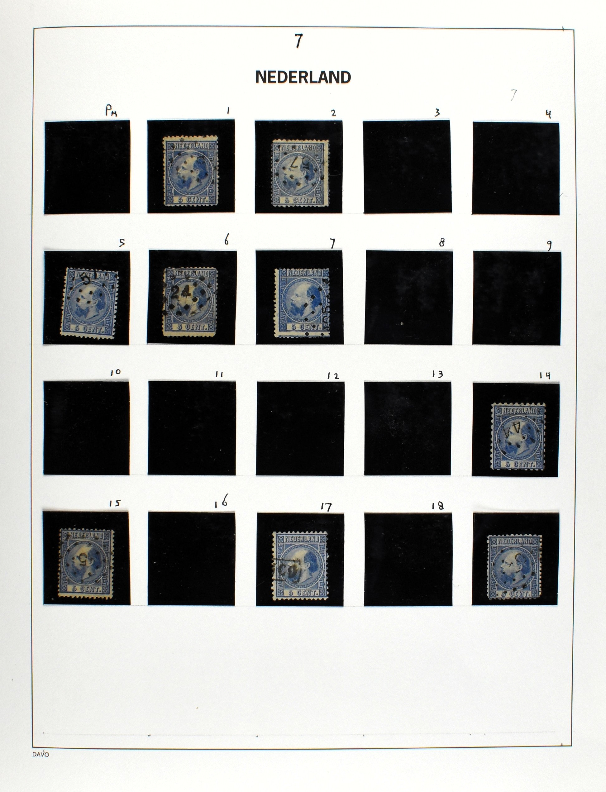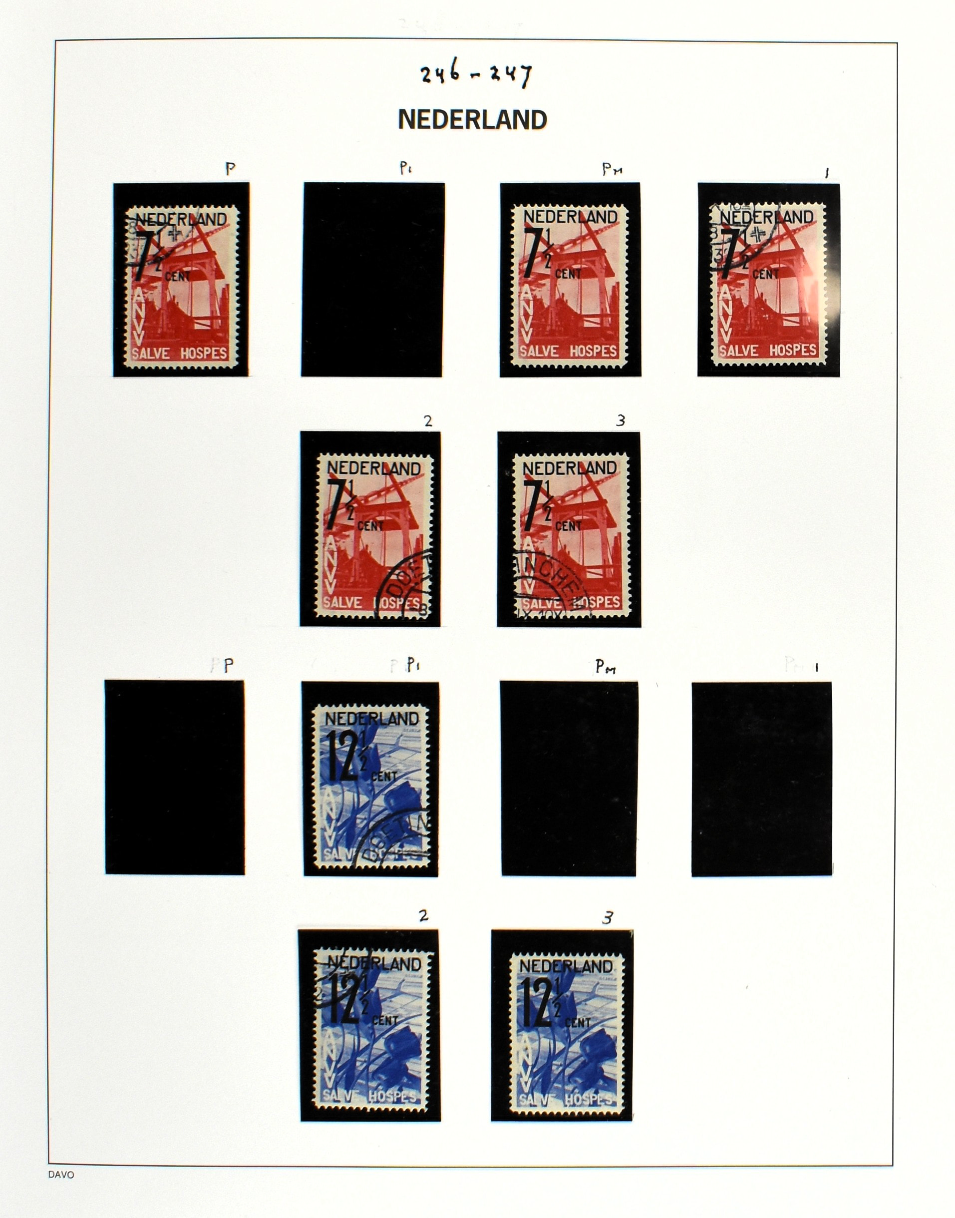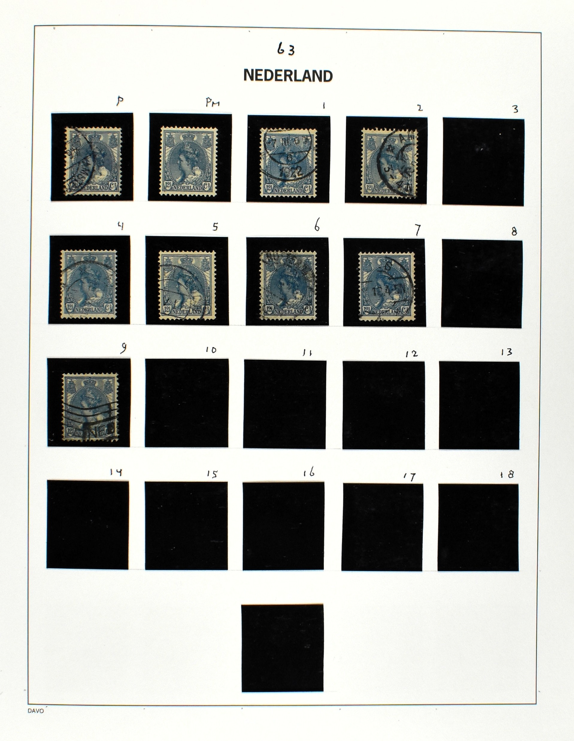 NEDERLAND 1852-2002, verzameling plaatfouten in 7 Davo albums volgens NVPH- en Mast-nummers waarbij diverse aardige klassieke nummers 14P*, 36PM5**, 77PM2**, 99PM**, 101P+PM, 104PM** enz., enz. Verzameling met enorme cataloguswaarde, ideaal om voort te zetten/completeren