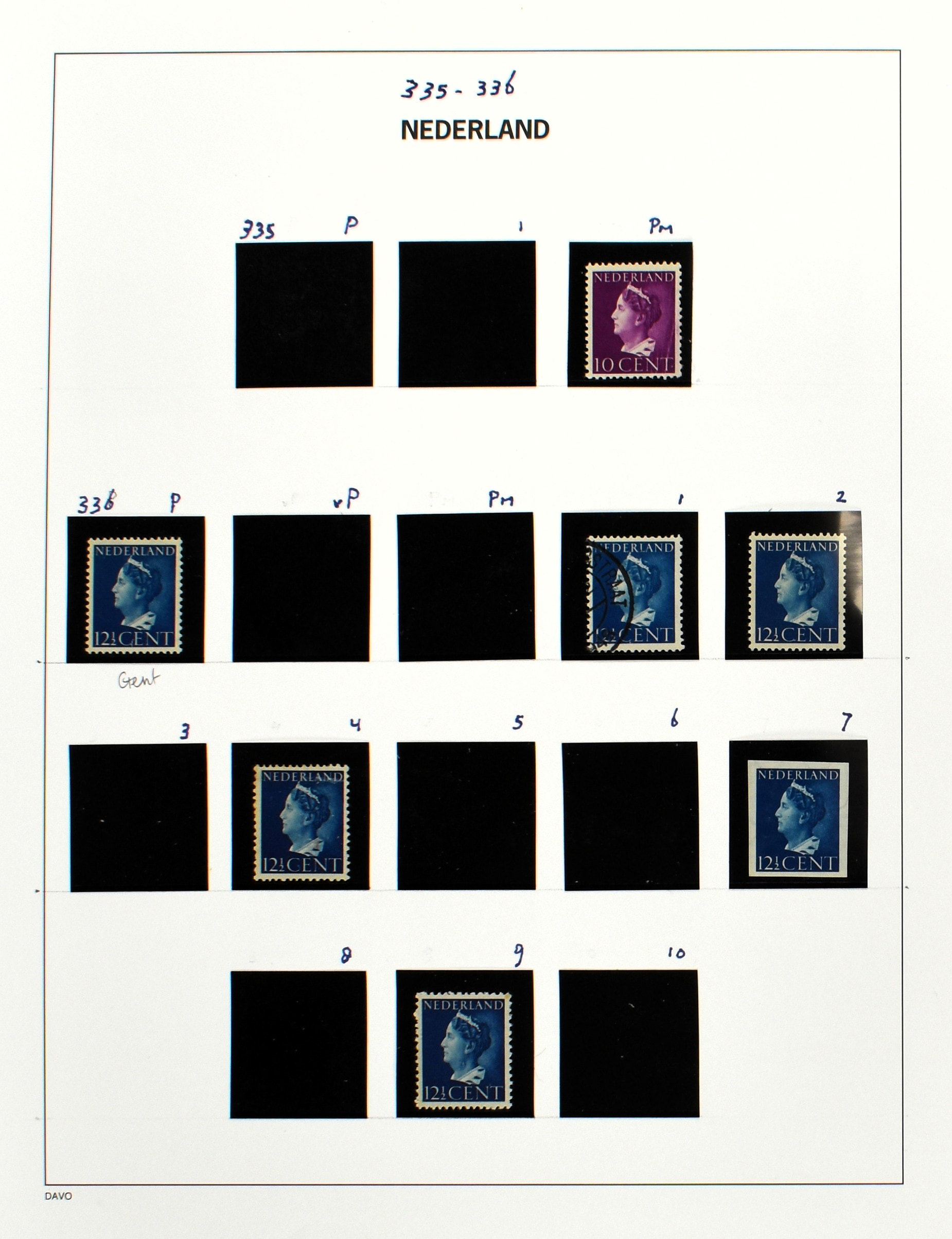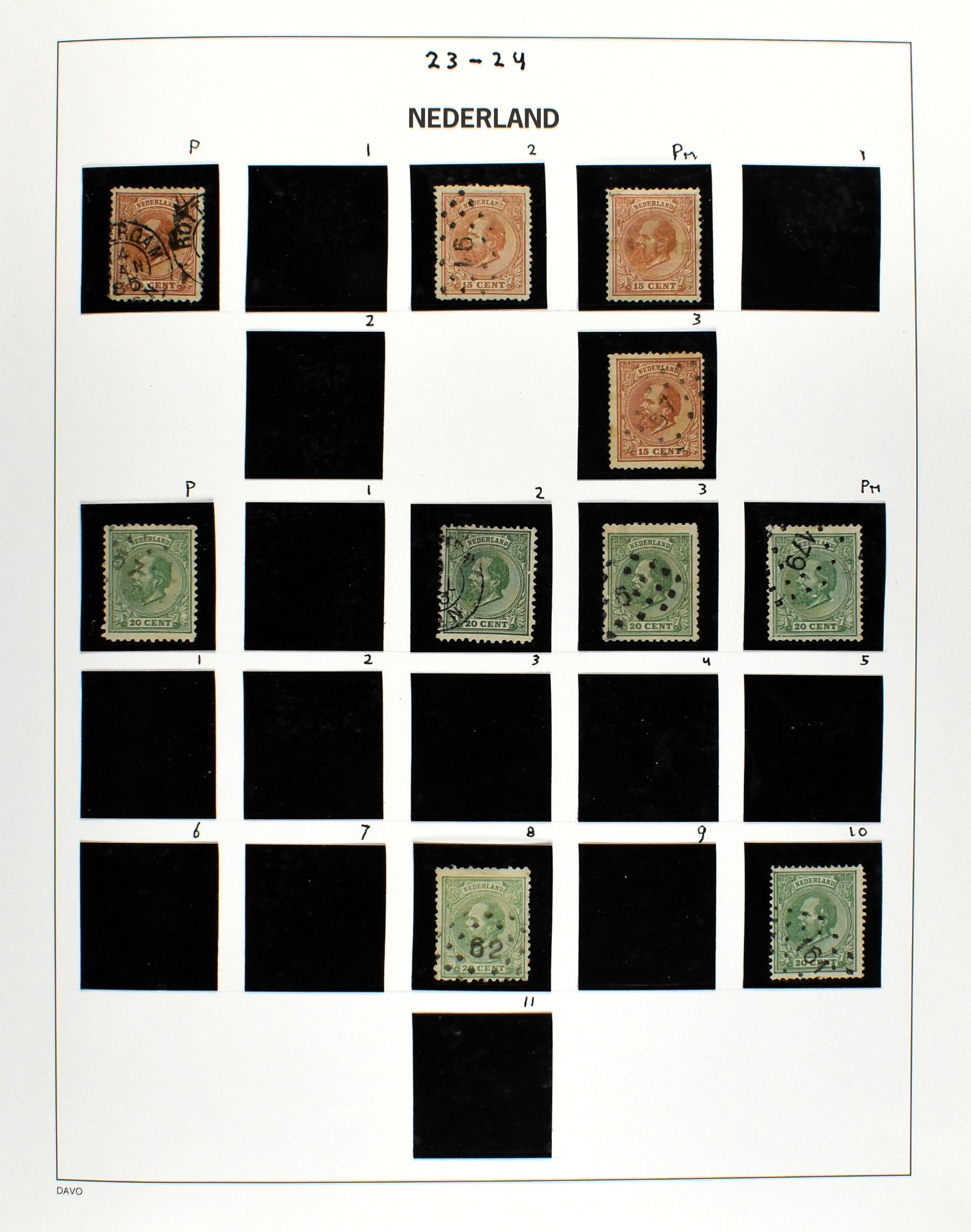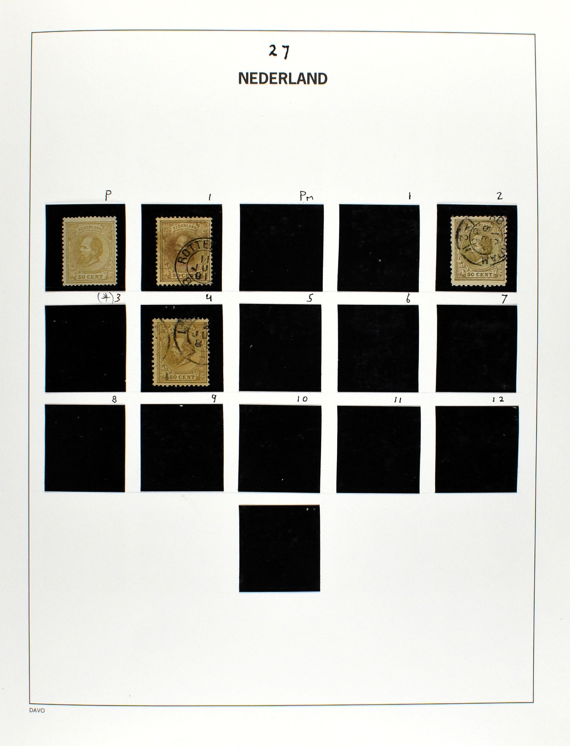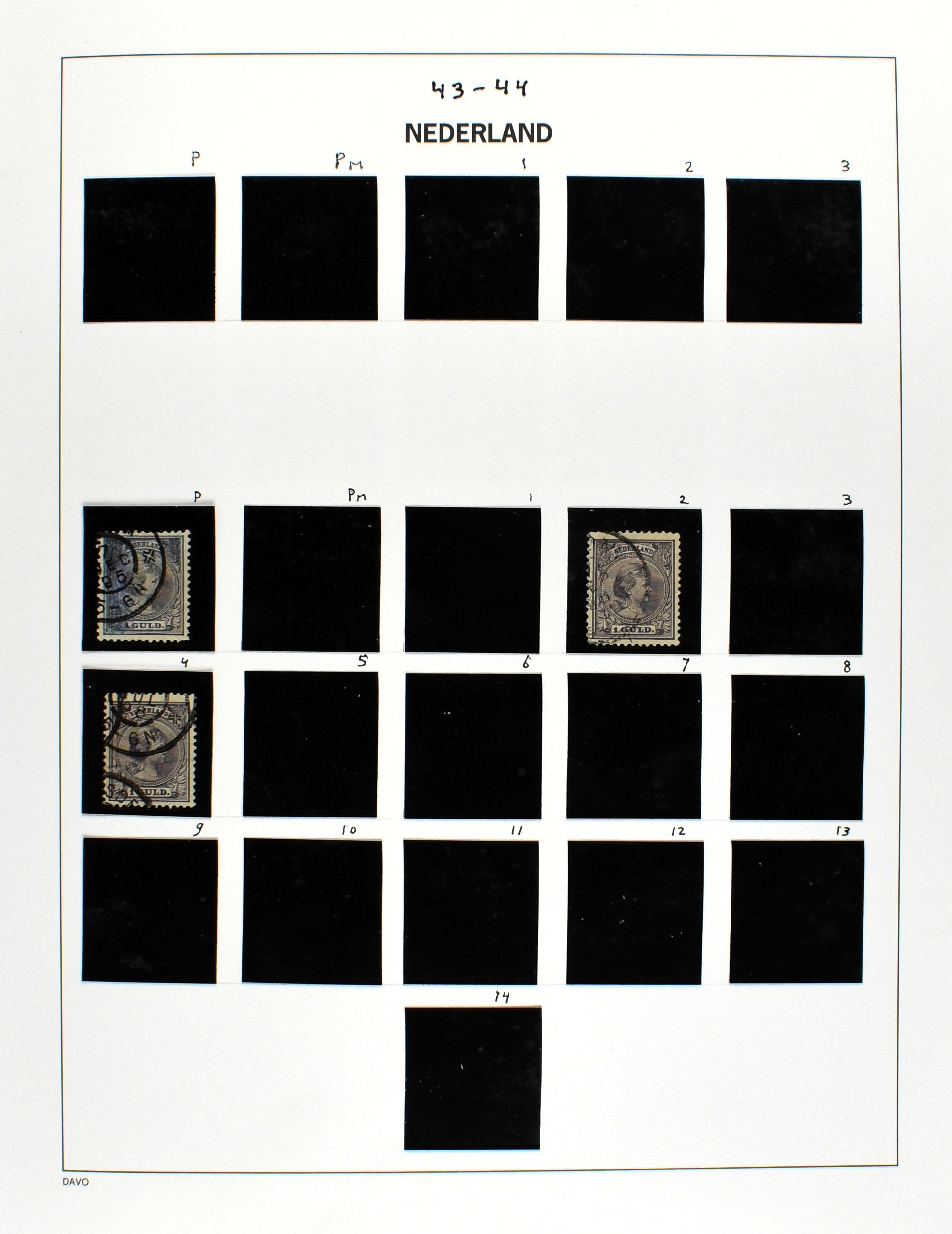 NEDERLAND 1852-2002, verzameling plaatfouten in 7 Davo albums volgens NVPH- en Mast-nummers waarbij diverse aardige klassieke nummers 14P*, 36PM5**, 77PM2**, 99PM**, 101P+PM, 104PM** enz., enz. Verzameling met enorme cataloguswaarde, ideaal om voort te zetten/completeren