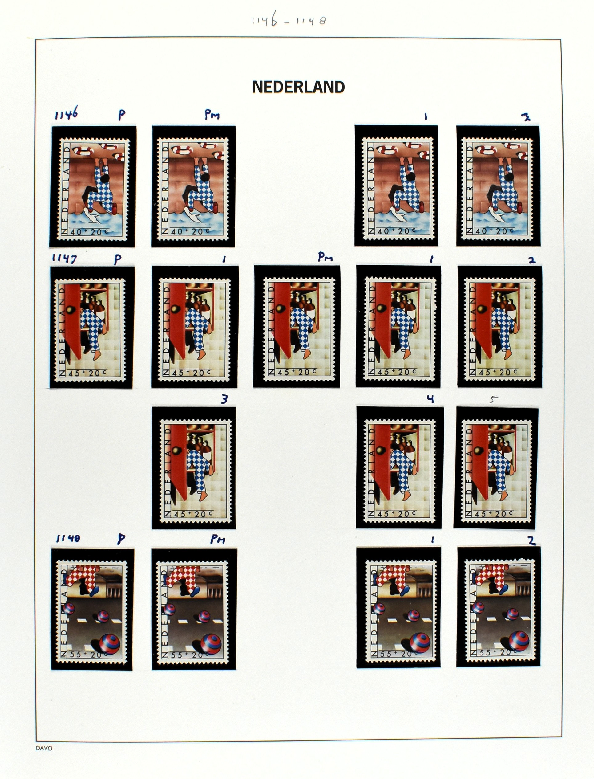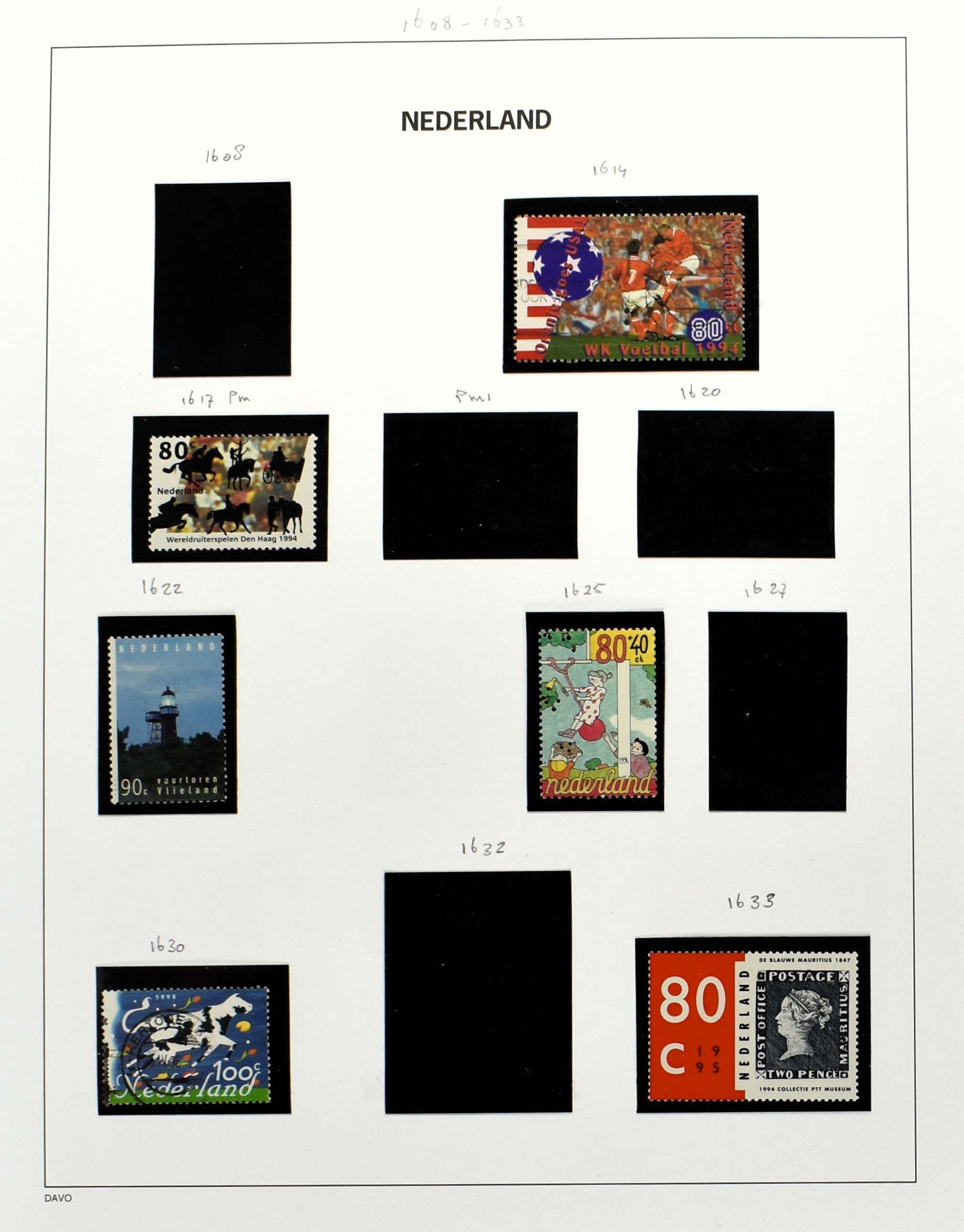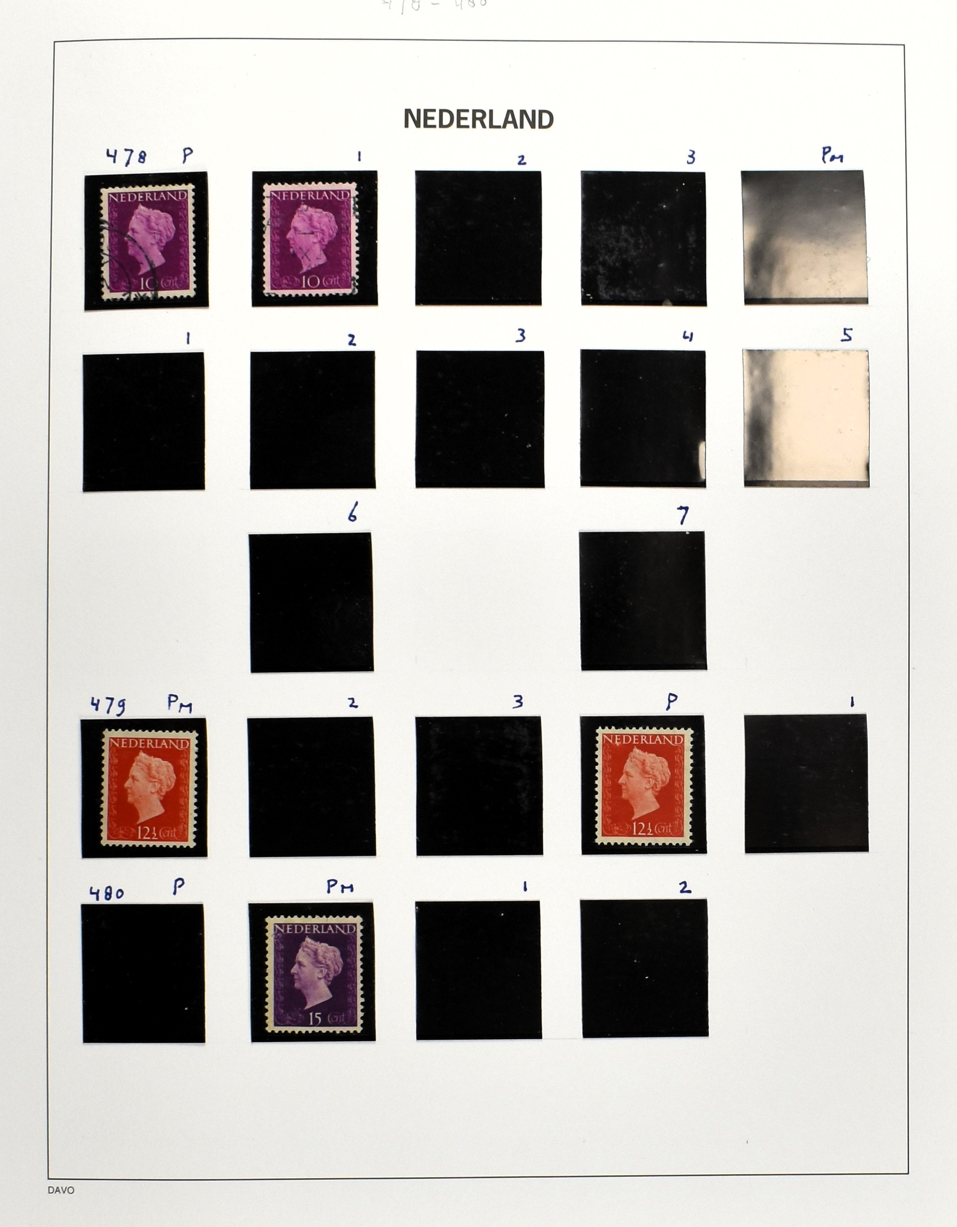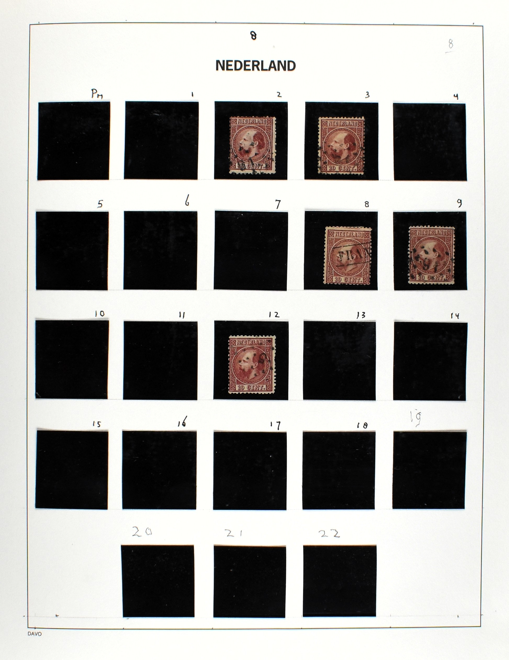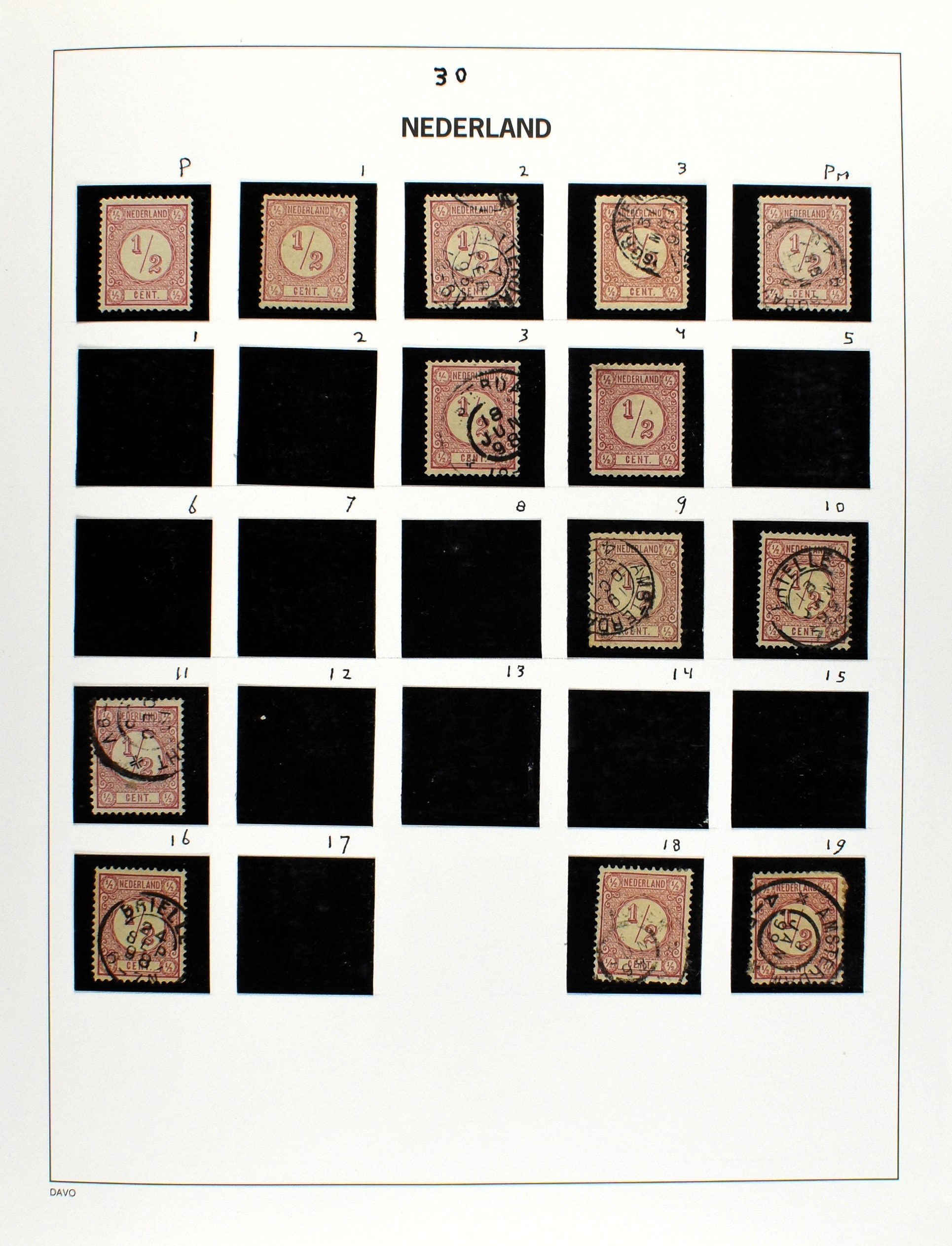 NEDERLAND 1852-2002, verzameling plaatfouten in 7 Davo albums volgens NVPH- en Mast-nummers waarbij diverse aardige klassieke nummers 14P*, 36PM5**, 77PM2**, 99PM**, 101P+PM, 104PM** enz., enz. Verzameling met enorme cataloguswaarde, ideaal om voort te zetten/completeren