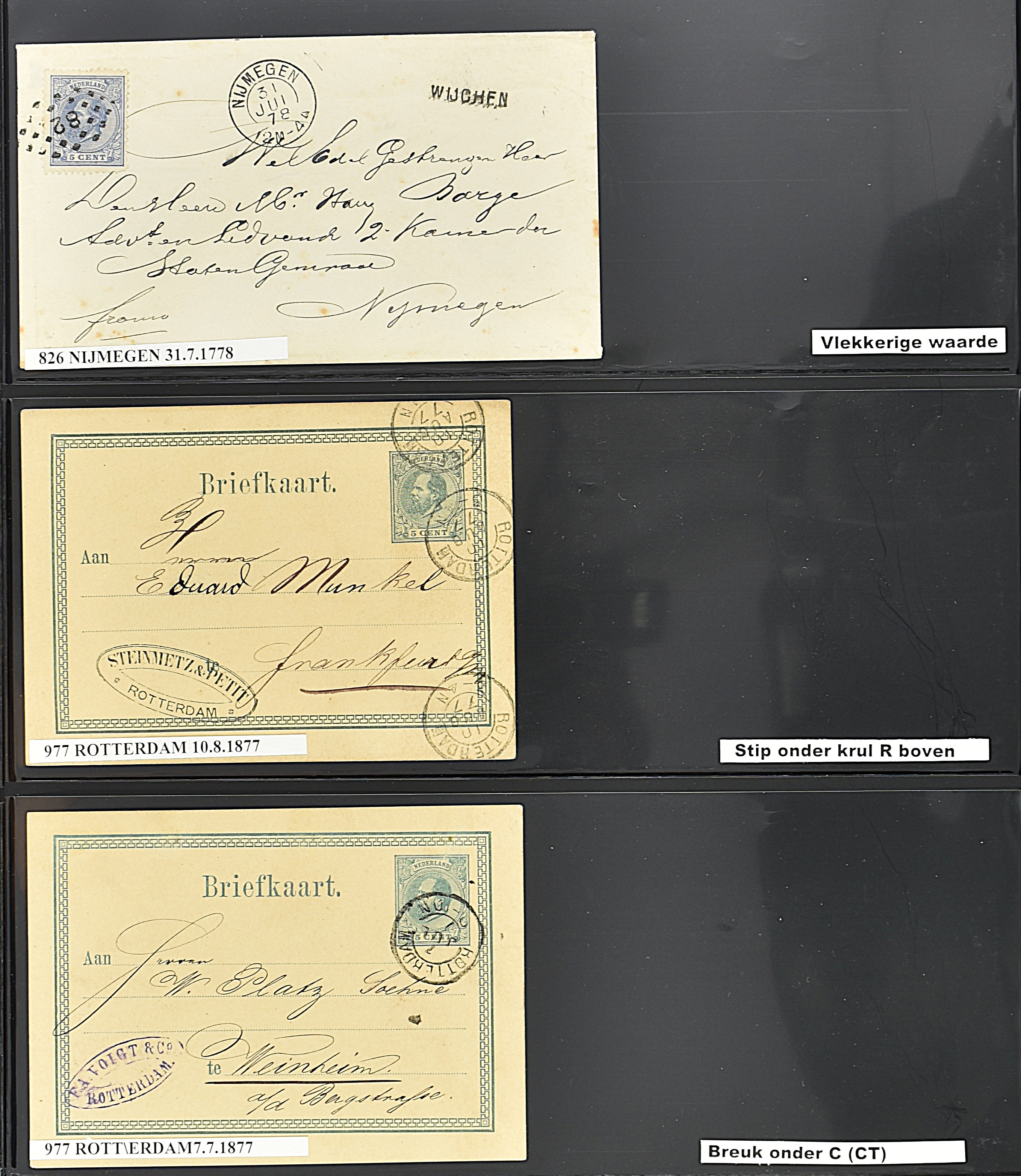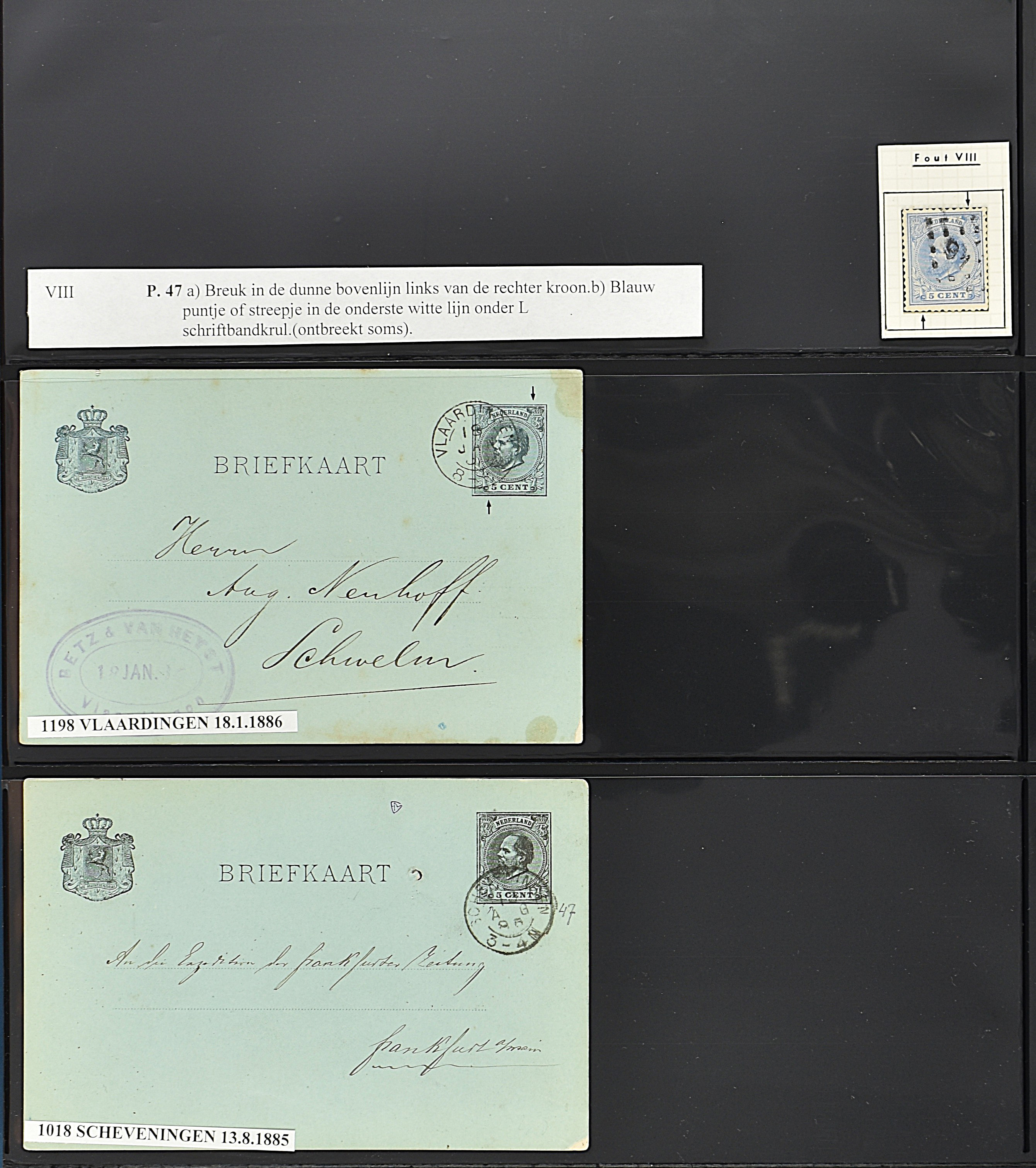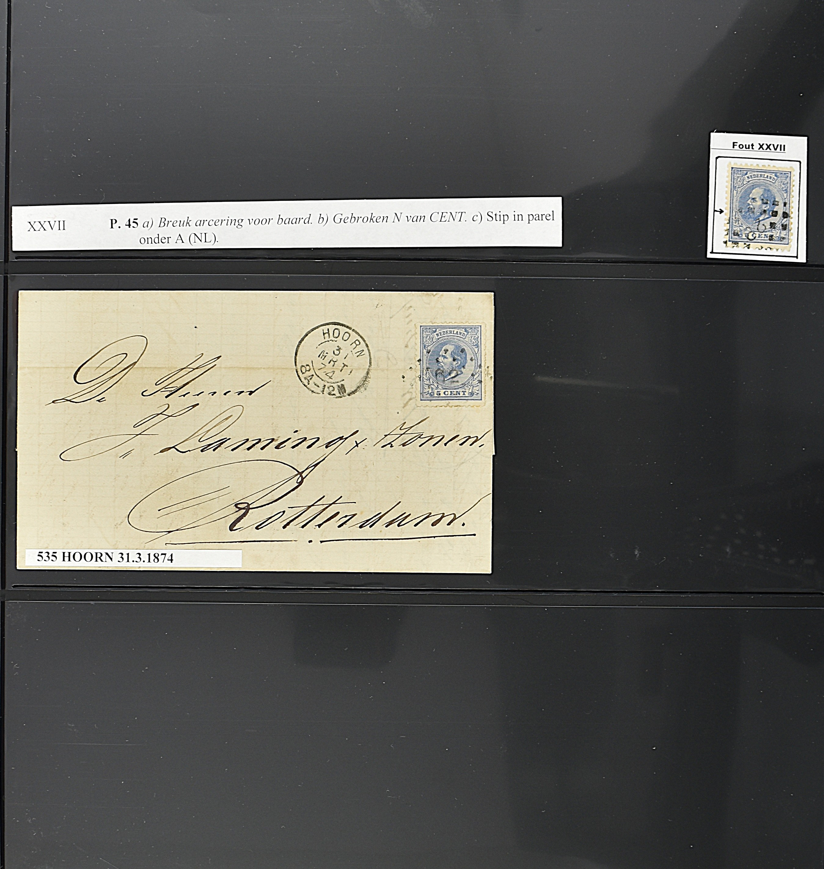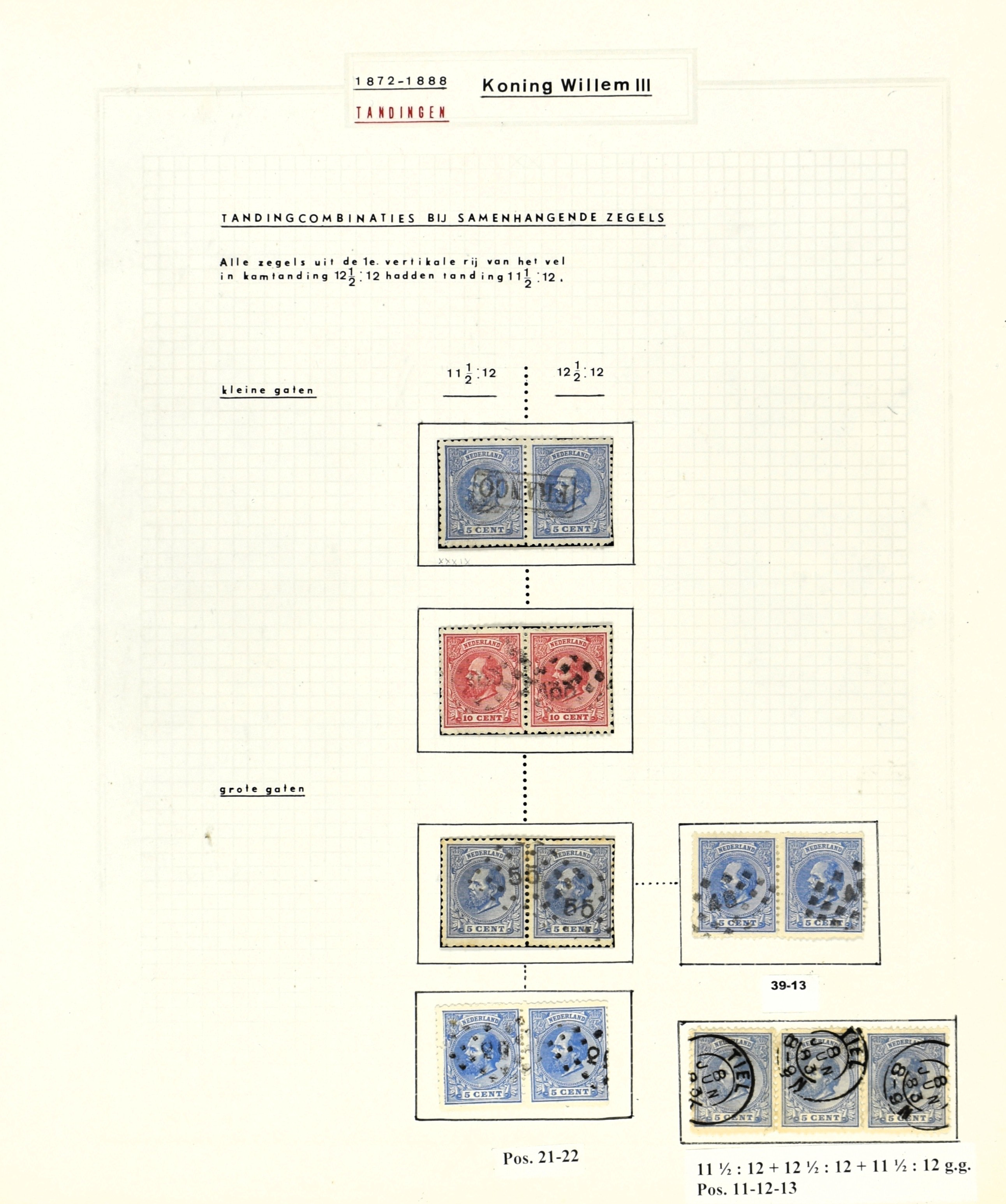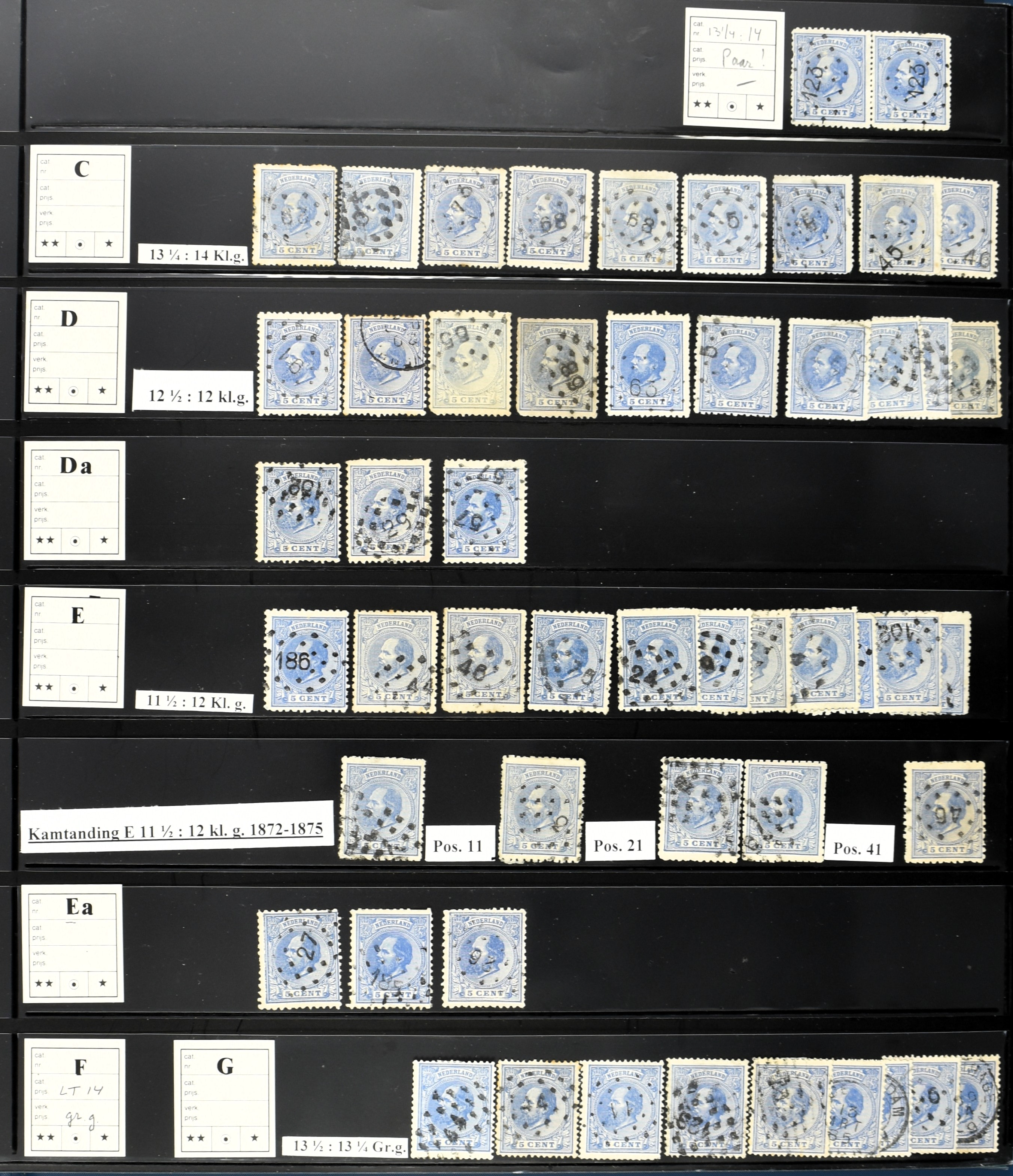 NEDERLAND 5 CENT EMISSIE 1872, uitgebreide en sterk gespecialiseerde verzameling primaire en secundaire plaatfouten, tandingen, papiersoorten, kleurnuances, perfins, poststukken o.a. briefkaarten ook met plaatfouten, in 8 Lindner ringbanden. Tevens literatuur in ringband en Handboek Emissie 1872 A. Dekker cs. Spannende koop!