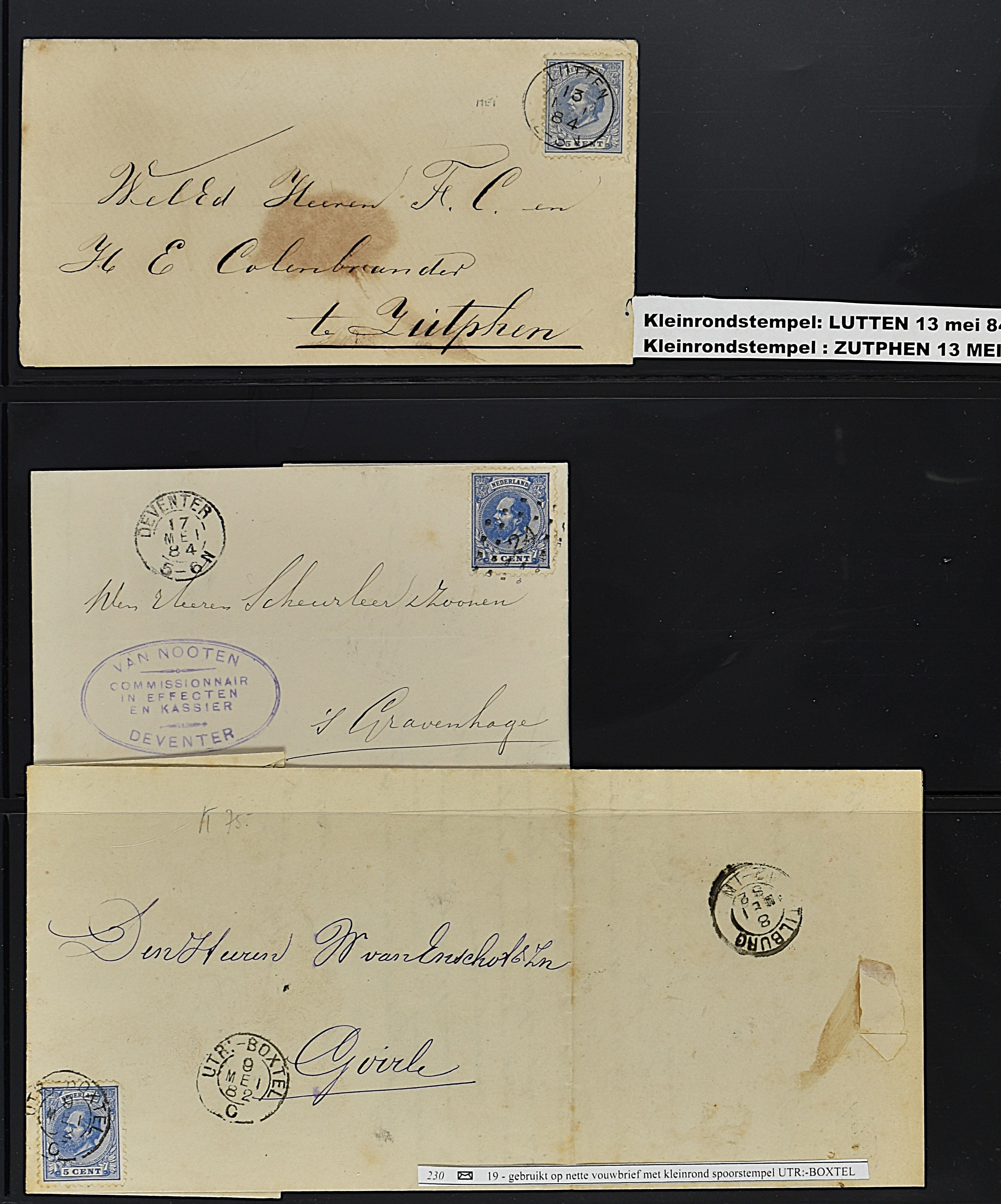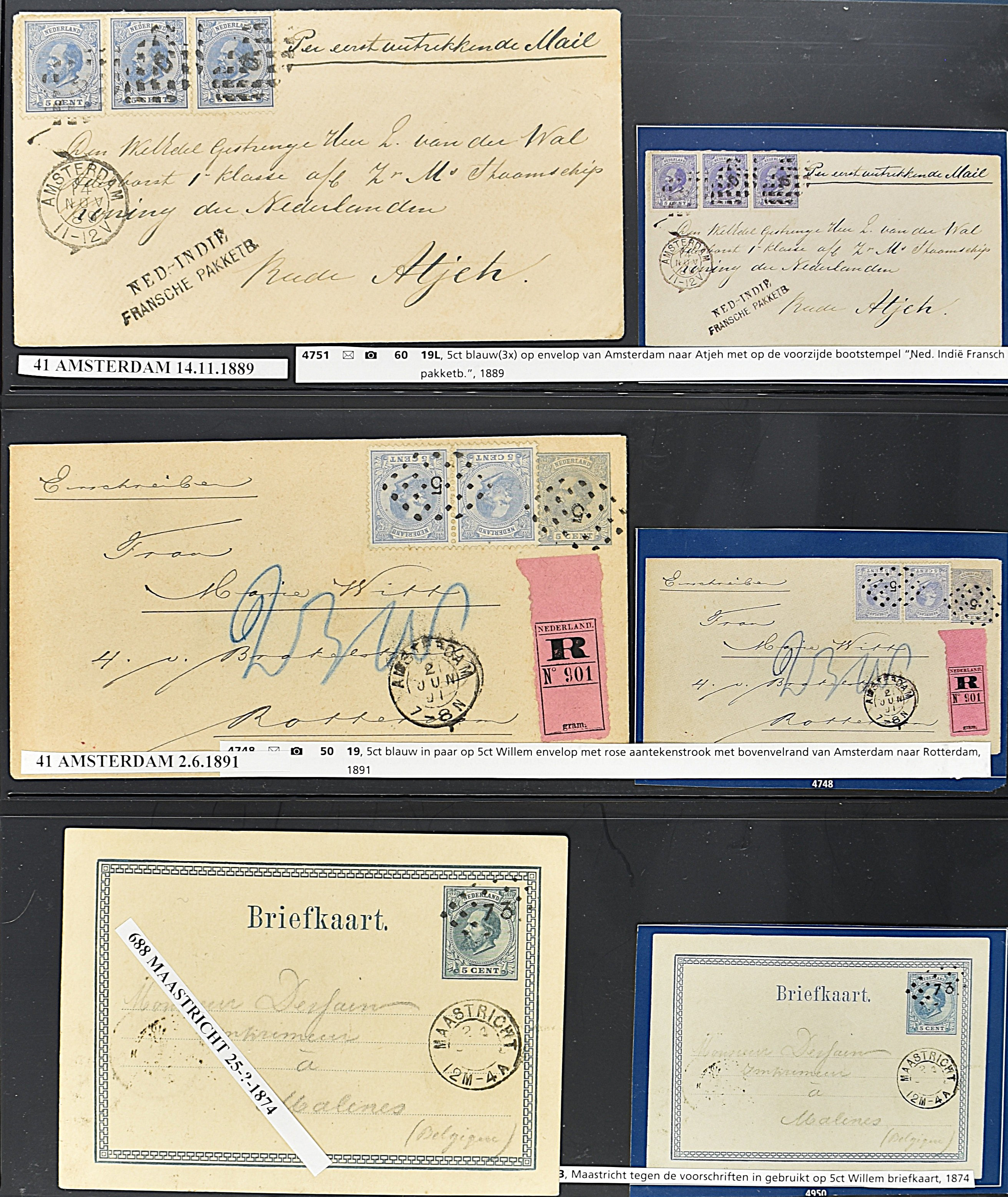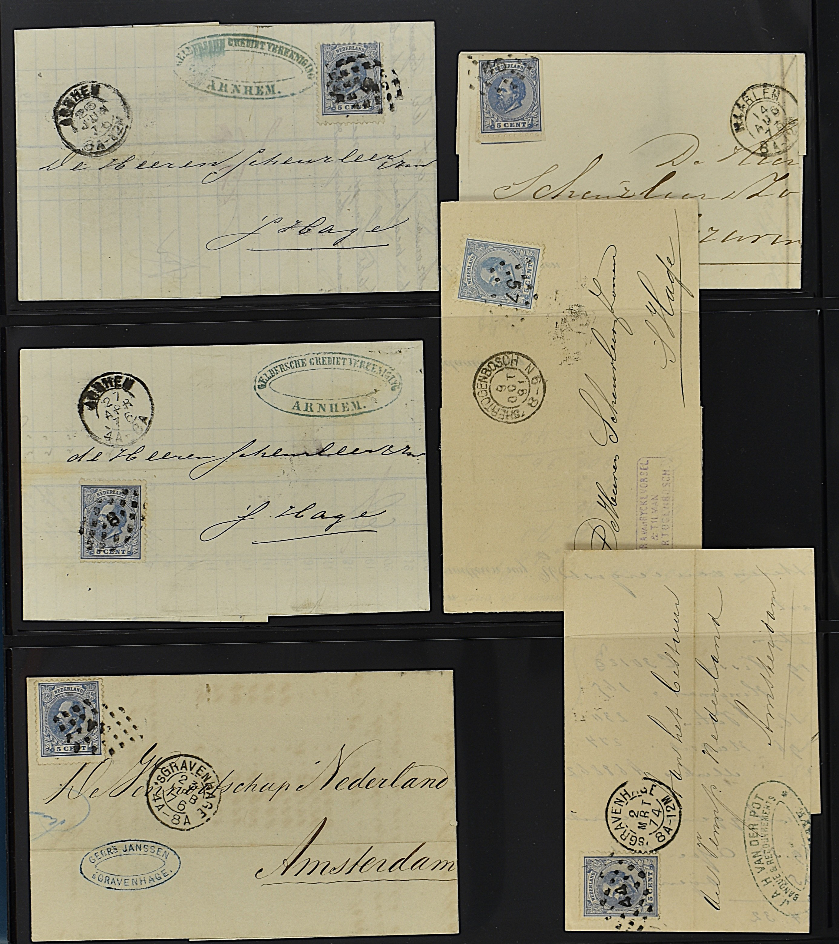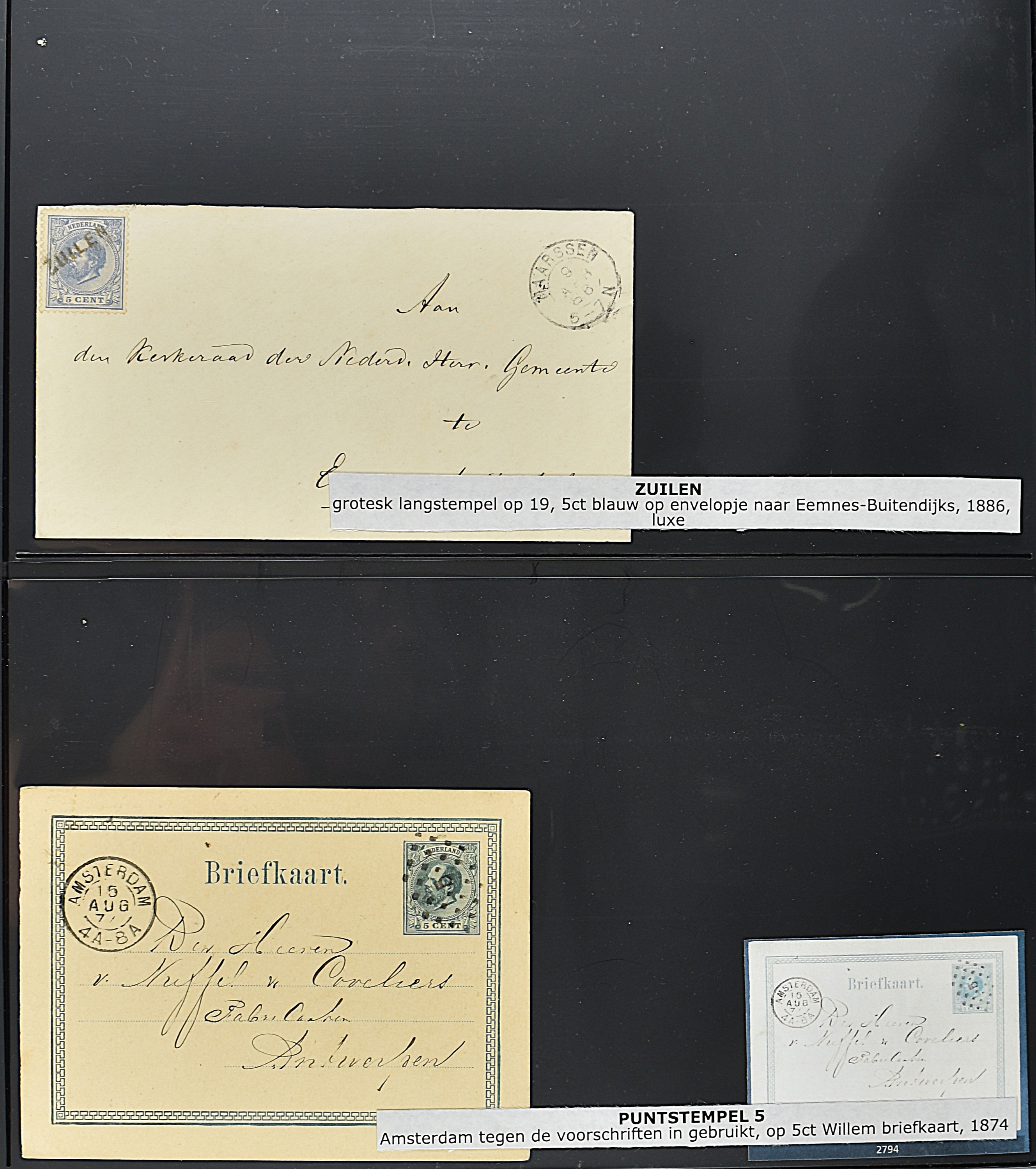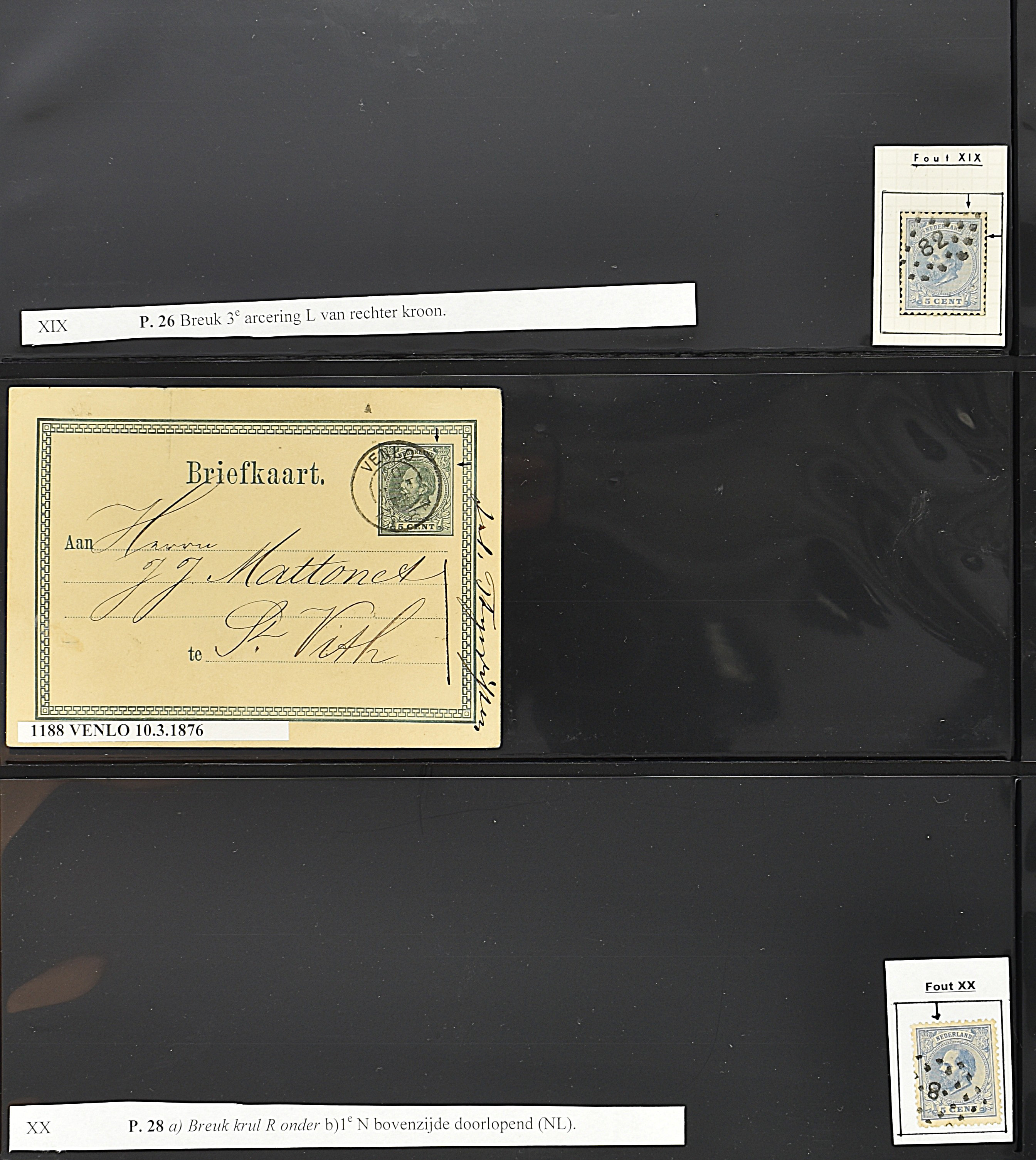 NEDERLAND 5 CENT EMISSIE 1872, uitgebreide en sterk gespecialiseerde verzameling primaire en secundaire plaatfouten, tandingen, papiersoorten, kleurnuances, perfins, poststukken o.a. briefkaarten ook met plaatfouten, in 8 Lindner ringbanden. Tevens literatuur in ringband en Handboek Emissie 1872 A. Dekker cs. Spannende koop!