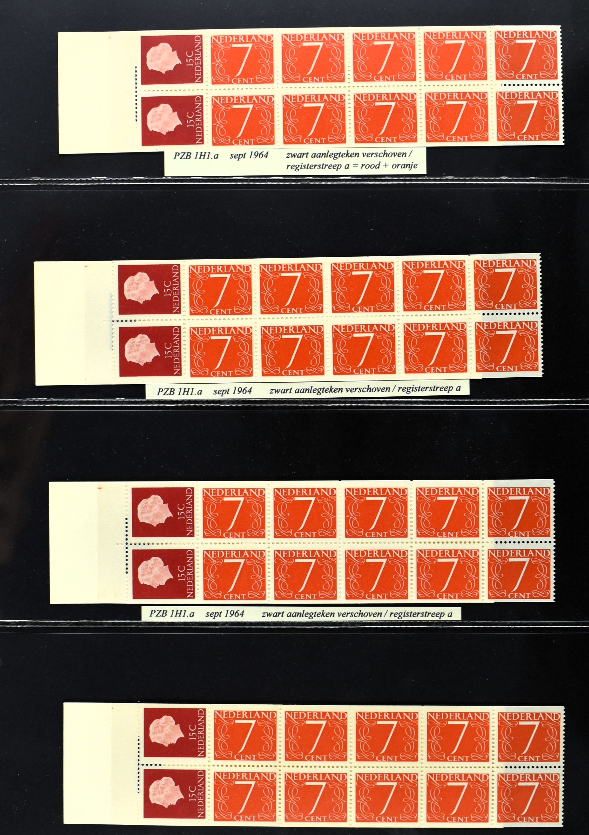 NEDERLAND AUTOMAATBOEKJES 1964-1982, sterk gespecialiseerde verzameling met daarin nagenoeg alle variëteiten, beschreven in het Handboek Automaatboekjes van De Rooy/Hali, behalve tekst- en zegelversnijdingen, goed gedocumenteerd beschreven in 10 speciale Importa en Safe ringbanden