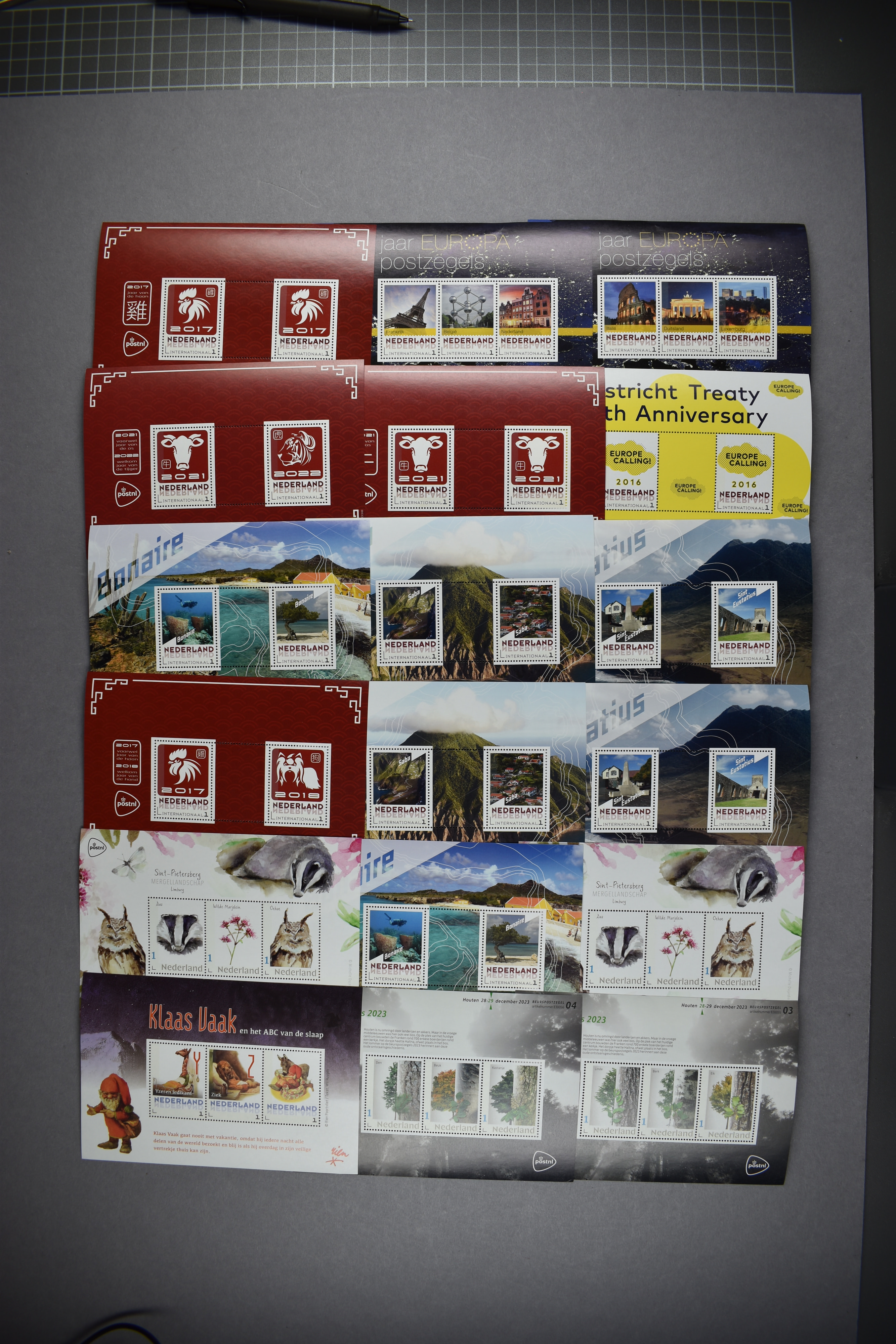 NEDERLAND 2010-2020, verzameling PTT Mapjes nr. 407 t/m 672 en Prestigeboekjes 1 t/m 107. In 14 Davo bandjes, en 1 doosje. De frankeerwaarde bedraagt € 3460,- totaal in 2 dozen