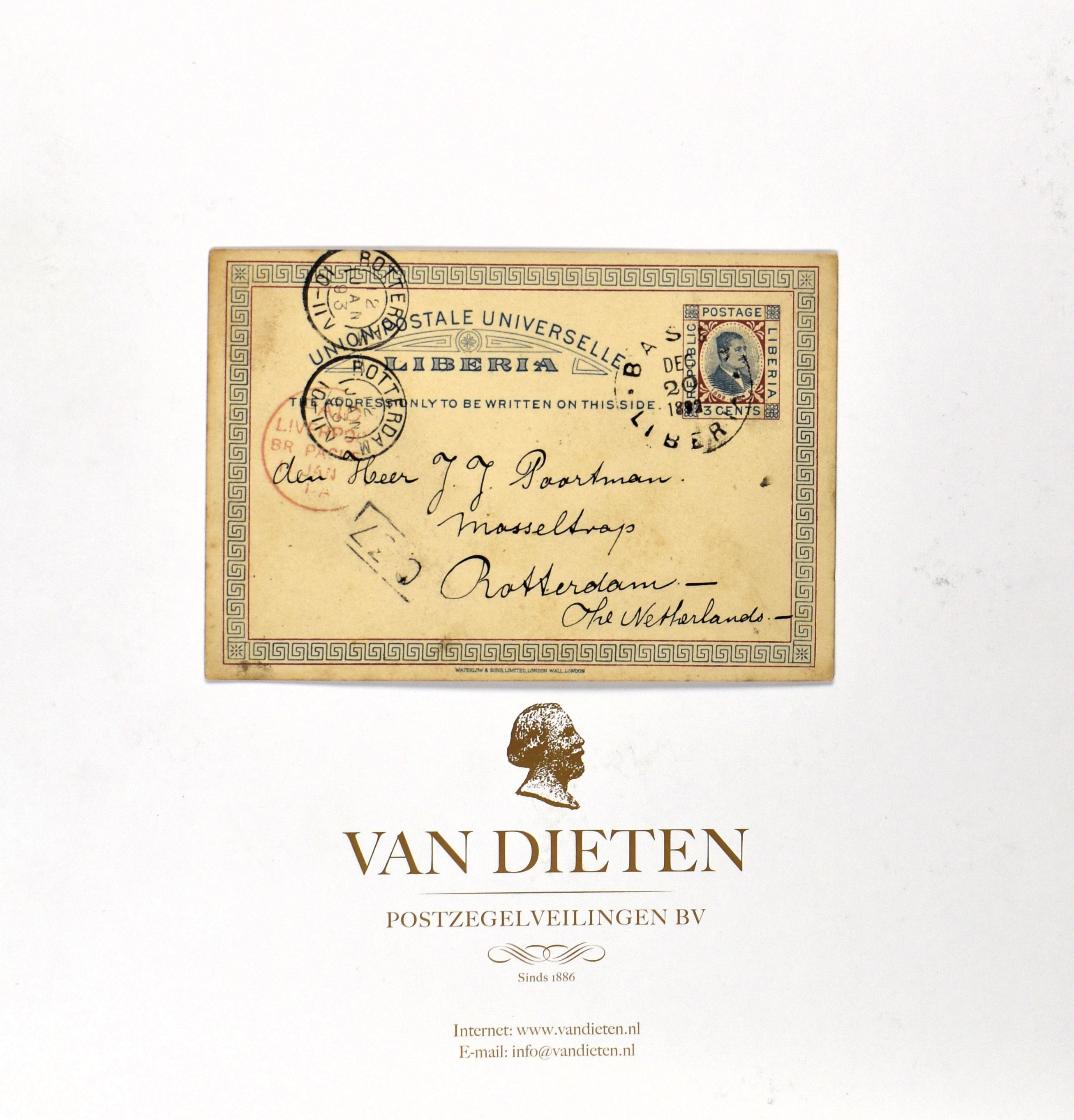 LIBERIA. 3 Cents postcard written at Edina on 22 Dec 1892, cancelled Bassa Dec 20 1892 (Cockrill type CP.14) via Liverpool 11 Jan 1893 to Rotterdam 12 Jan 1893 (a very quick shipment!). This postcard is genuinely used which is quite scarce!