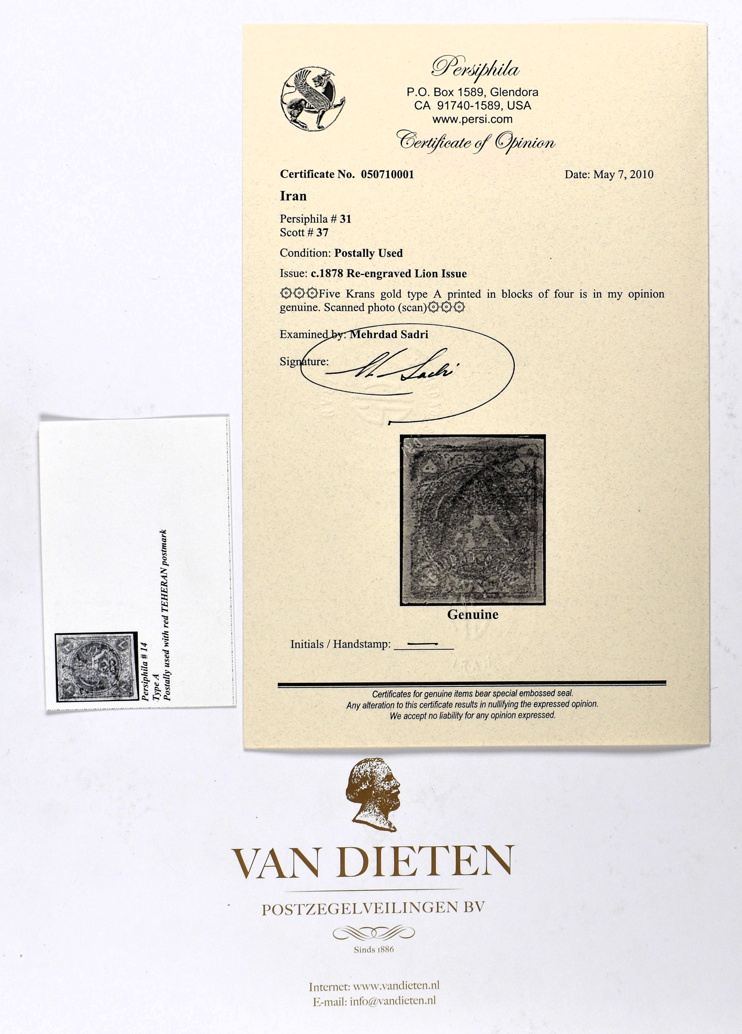 SHIPMENT OF LOTS OUTSIDE OF THE NETHERLANDS WILL BE ARRANGED BY COURIER, FULLY DECLARED AND INSURED.