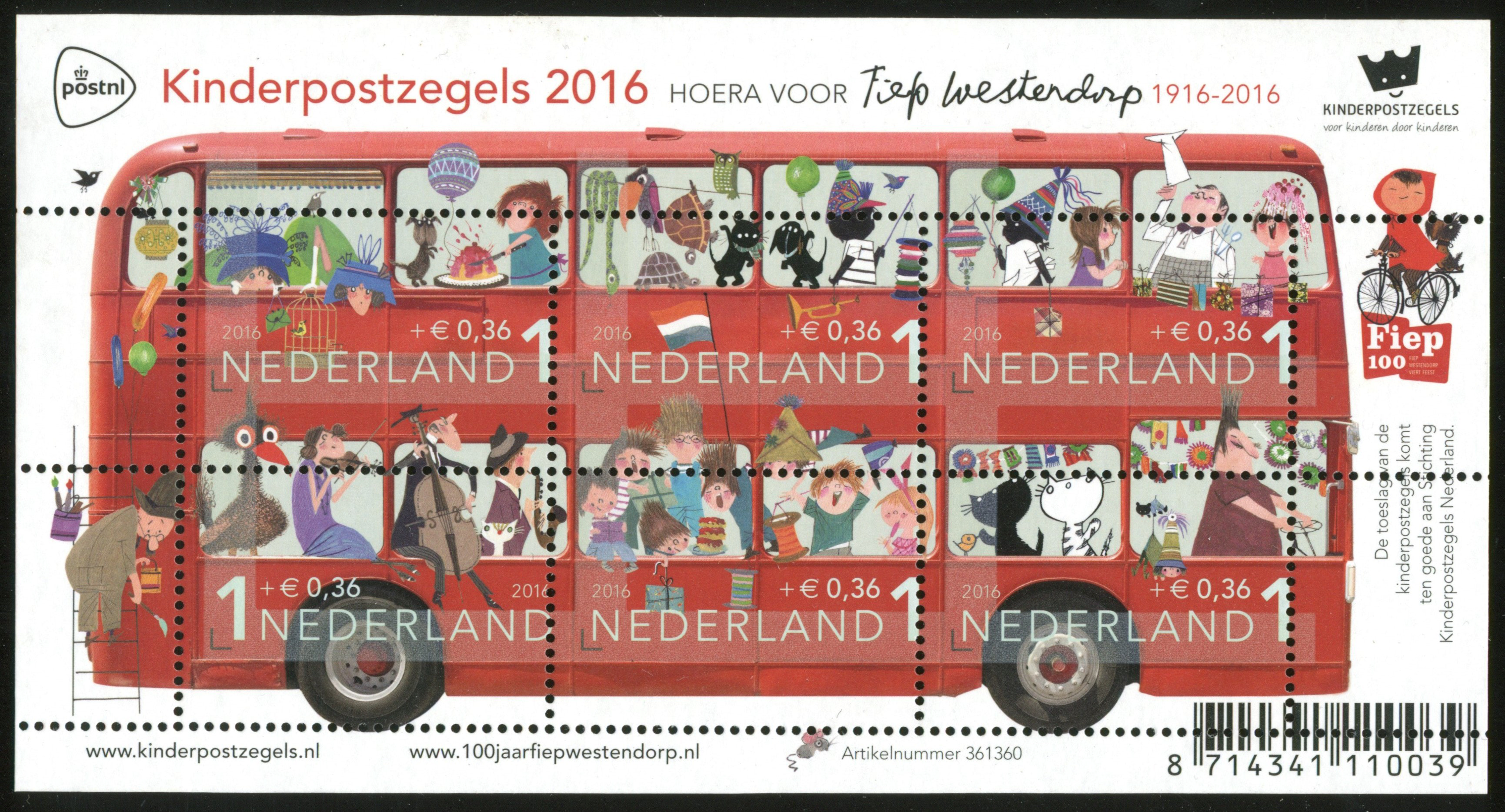 3473, velletje kinderzegels 2016 met variëteit: perforatie zeker 8 mm. verschoven. Postfris prachtex.