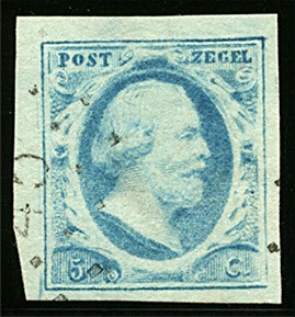 PUNTSTEMPEL 45 van Groningen op 5 cent nr. 1o-Pl.V-26 (EY.500). Breed gerand zeer fraai zegel (az. bovenrand dun plekje) met duidelijk herkenbare afst.