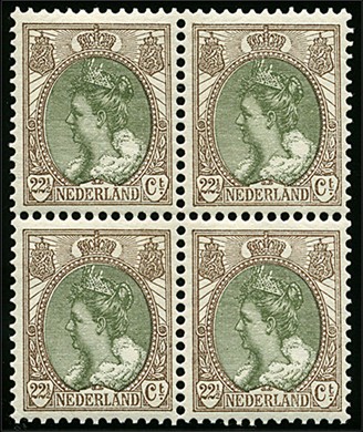 70, 22½ cent bruin en olijfgroen, postfris prachtblok van vier € 160
